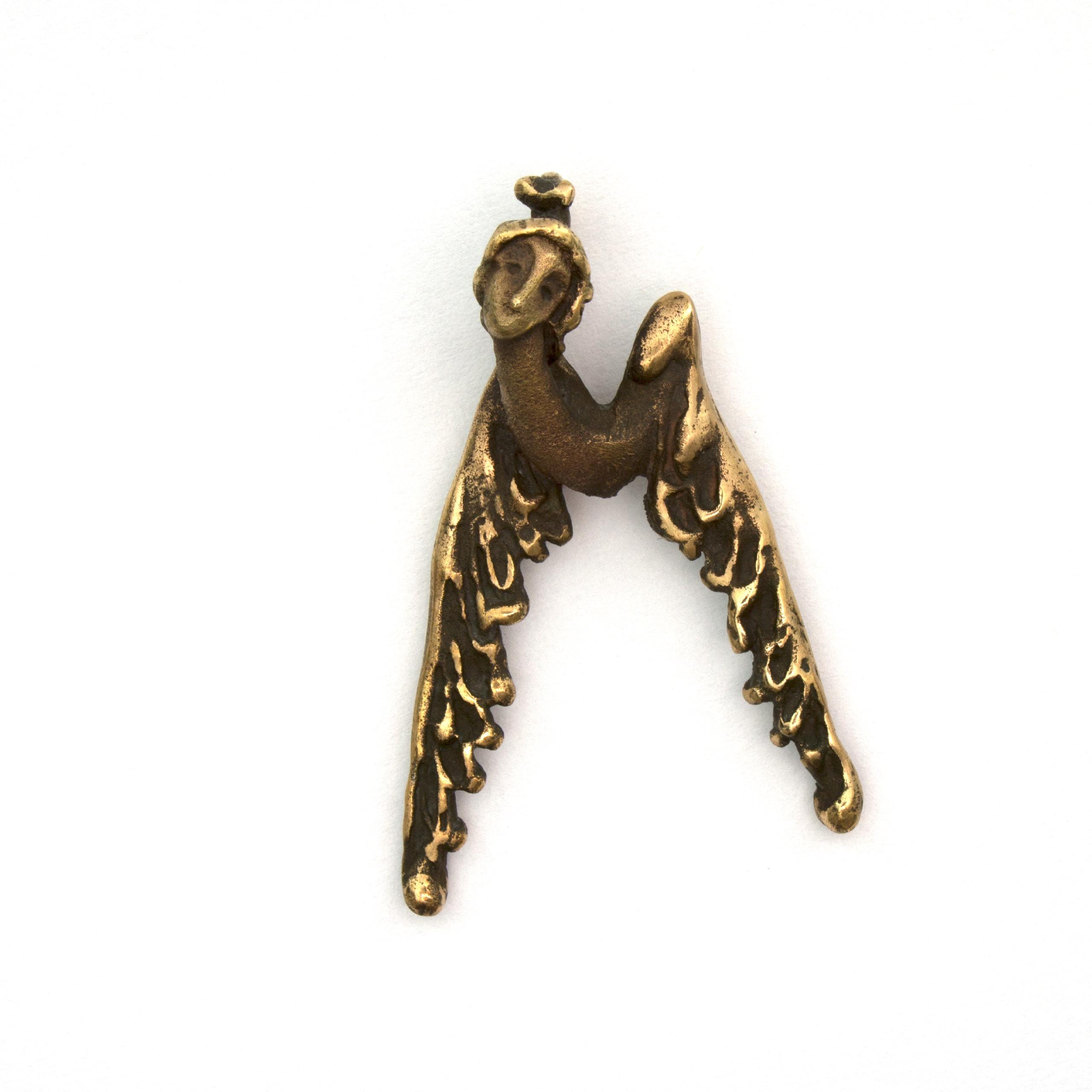 Original bronze pendant Angel with Fixed Bail by Czech sculptor and jewellery artist Vojtěška Vlčková (1948–2023). Handcrafted with the traditional lost-wax casting technique, this finely modelled piece reflects balance and enduring beauty. A refined work of wearable art with lasting artistic value.