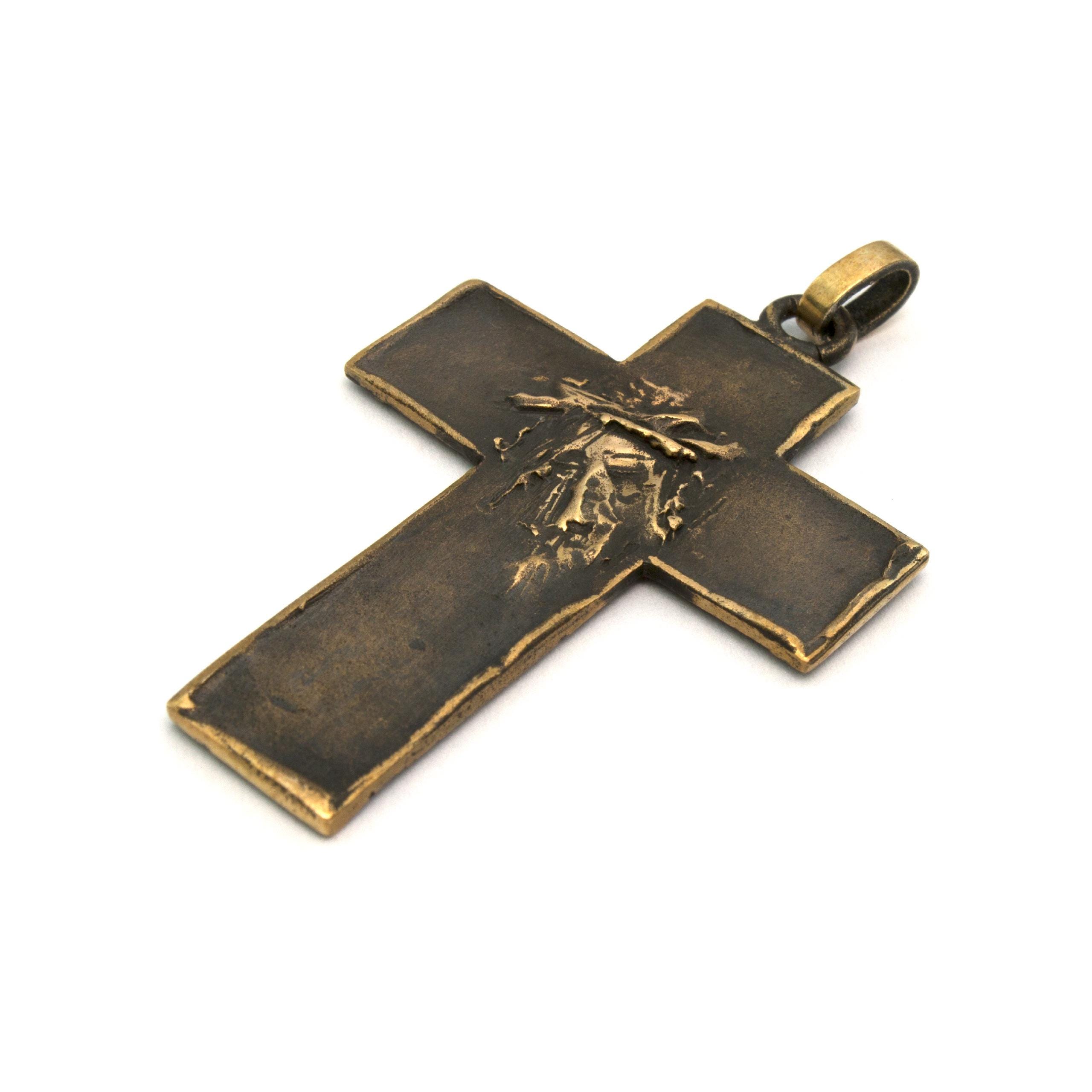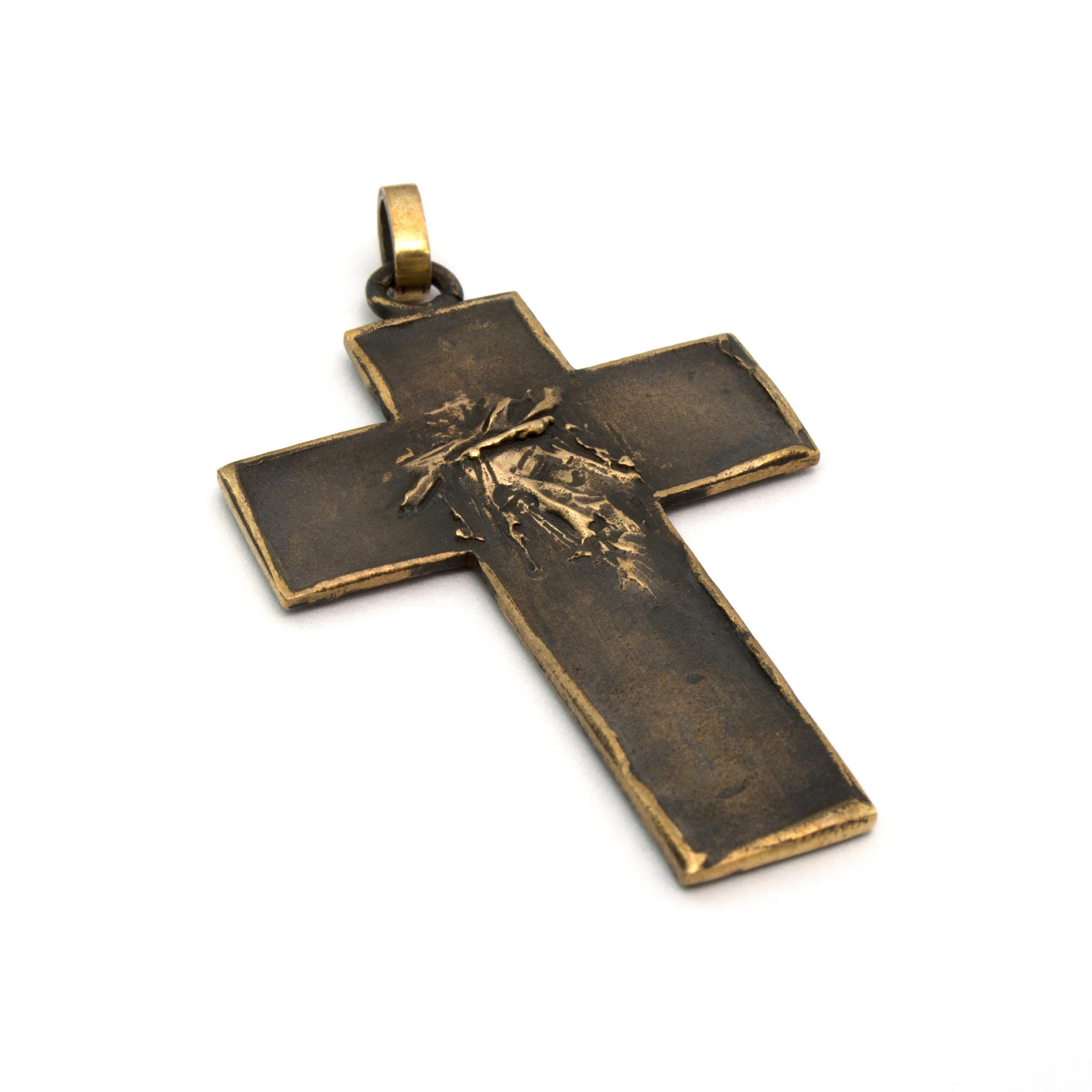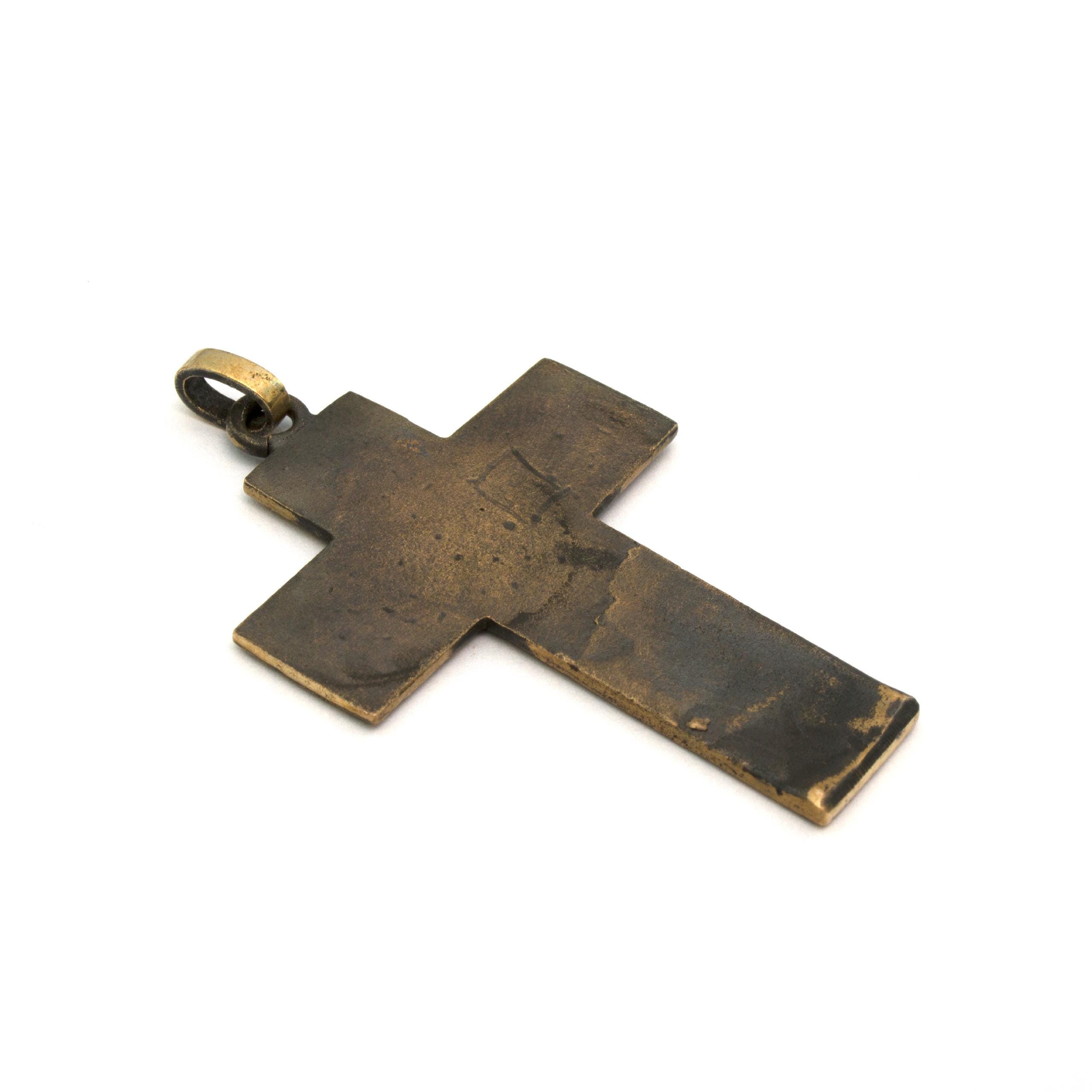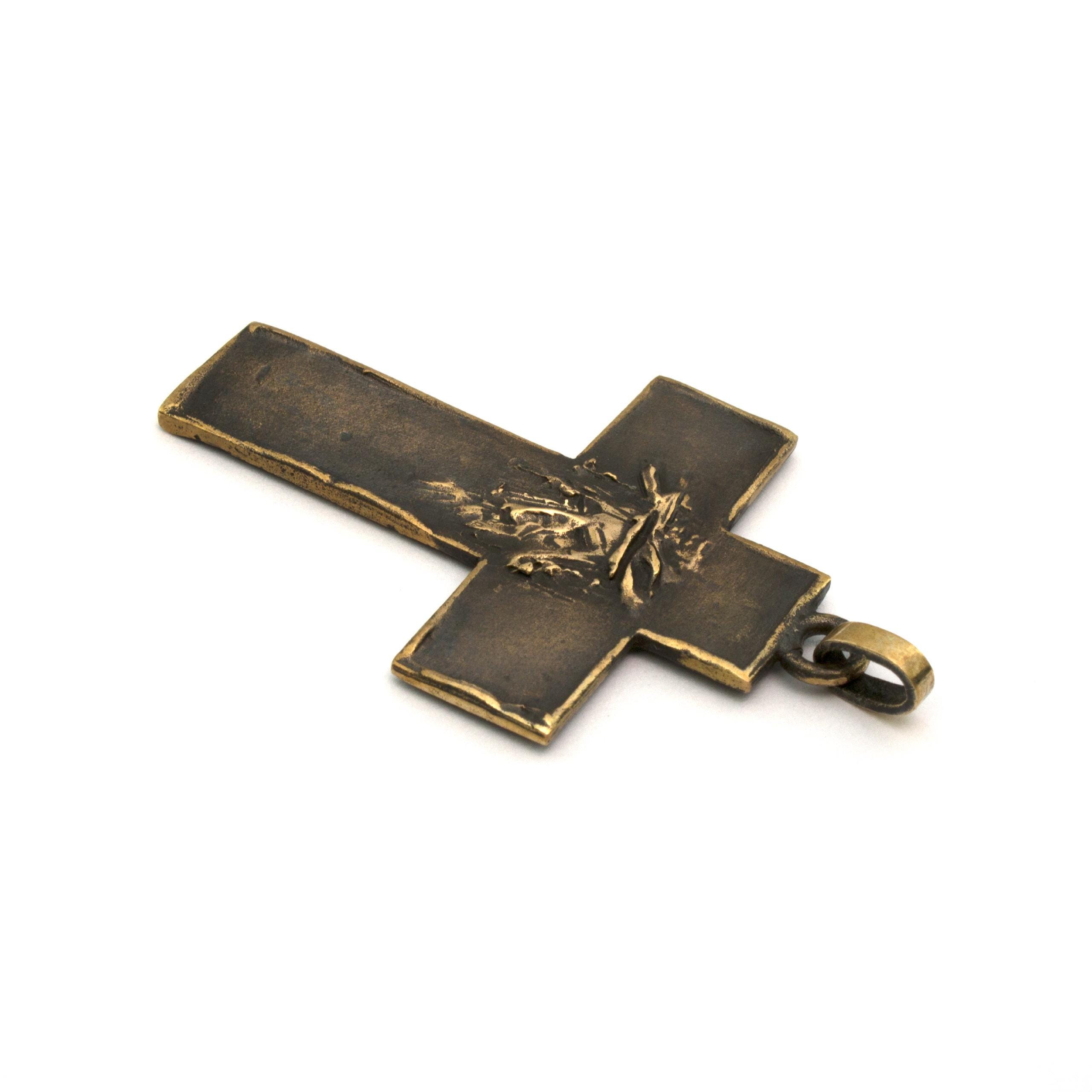 Original bronze pendant Small Flat Cross #2 by Czech sculptor and jewellery artist Vojtěška Vlčková (1948–2023). Handcrafted using the traditional lost-wax casting technique. A distinctive work of wearable art with lasting artistic and collectible value.