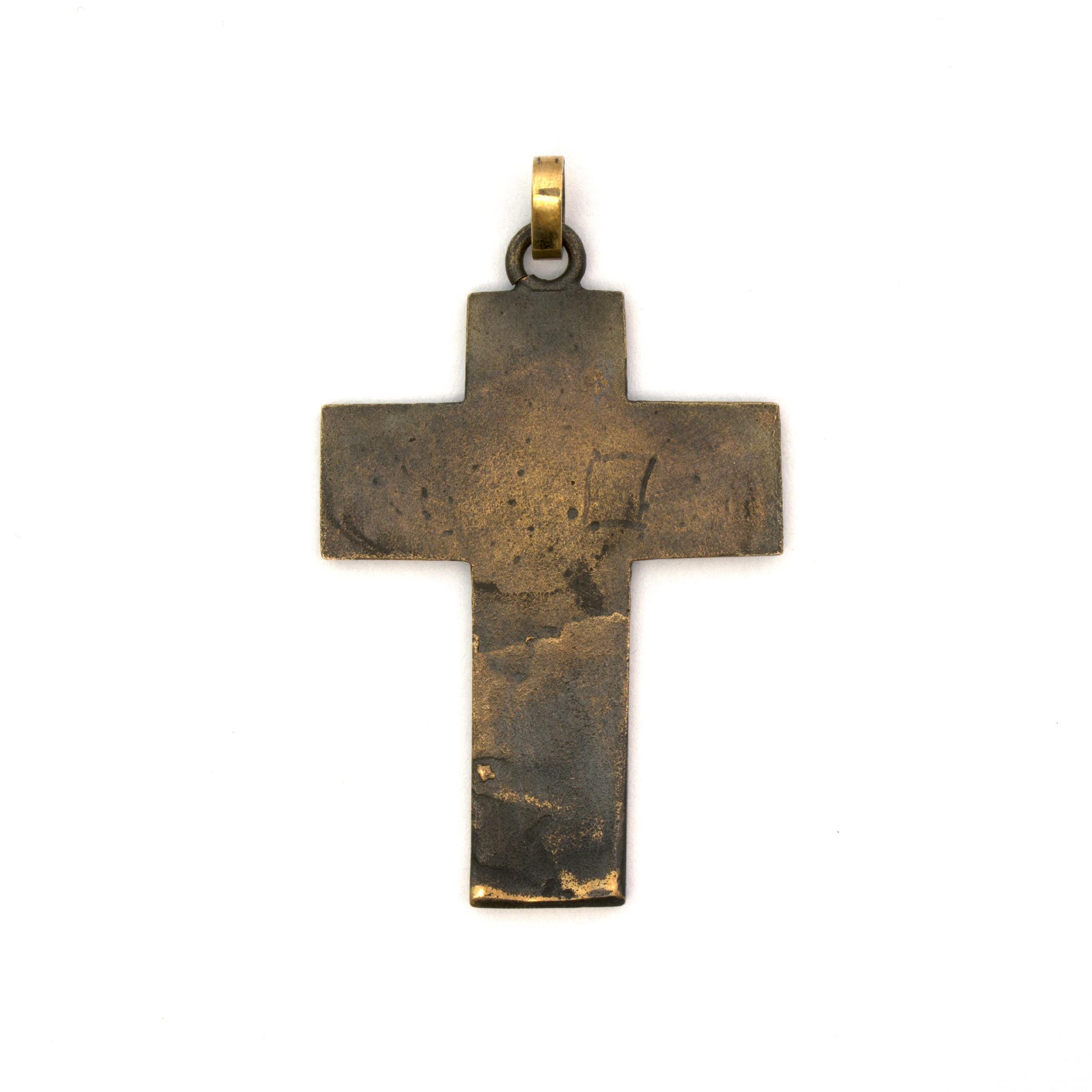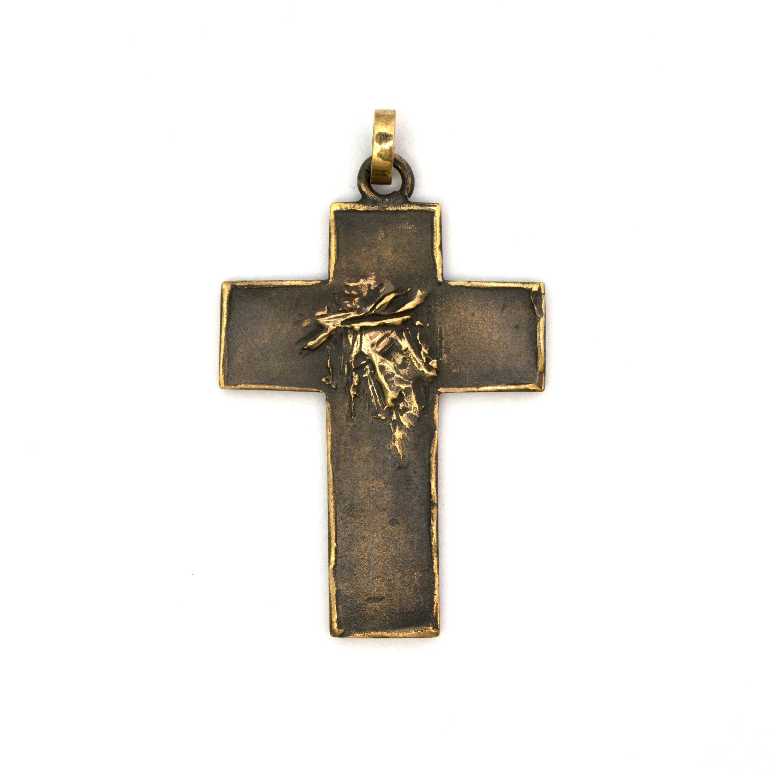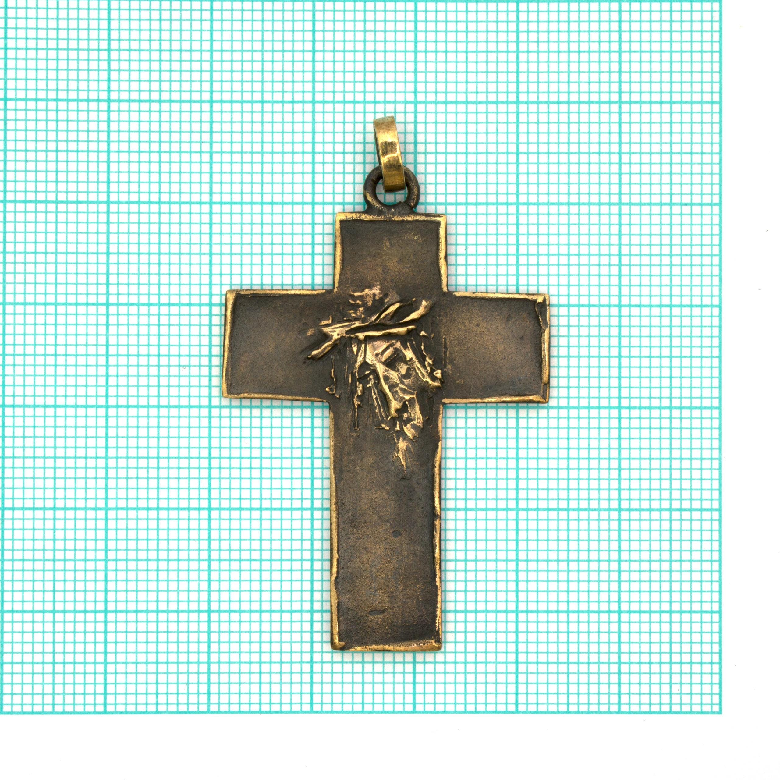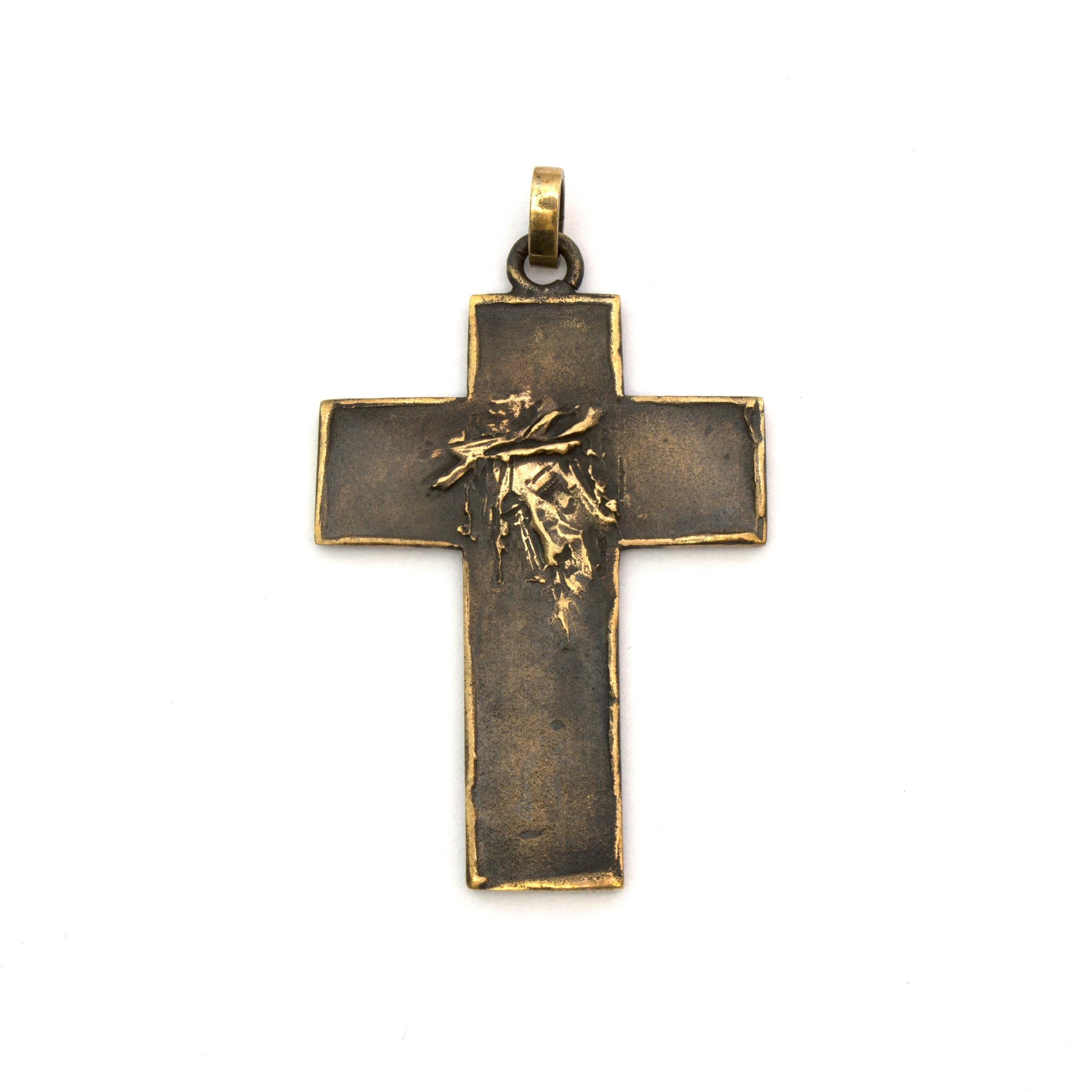 Original bronze pendant Small Flat Cross #2 by Czech sculptor and jewellery artist Vojtěška Vlčková (1948–2023). Handcrafted using the traditional lost-wax casting technique. A distinctive work of wearable art with lasting artistic and collectible value.