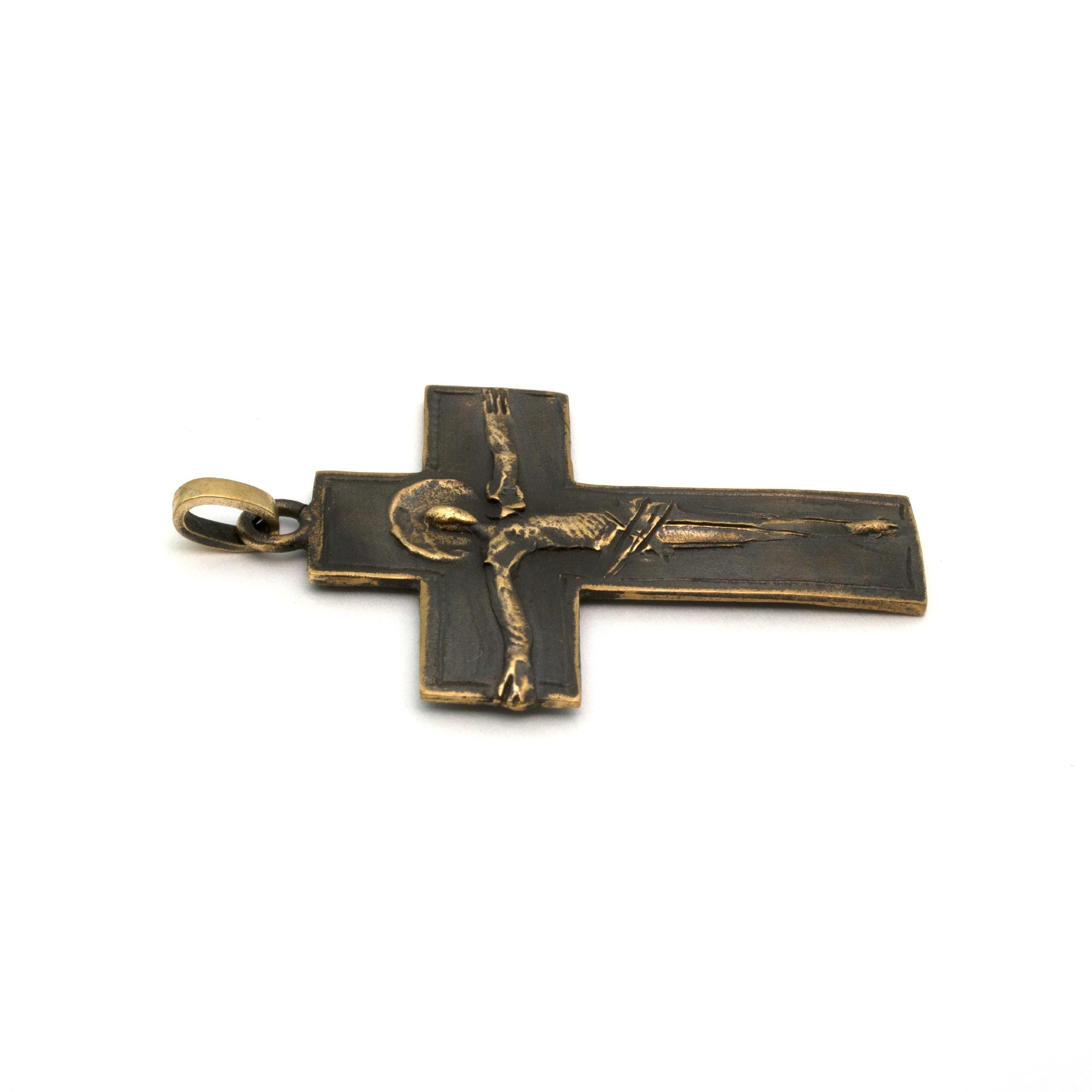 Bronze Pendant by Vojtěška Vlčková Catalogue number: 013 Original title: Křížek plochý #7 Author: Vojtěška Vlčková Production: Jaromíra Pavlíková Material: bronze Technology: lost wax casting