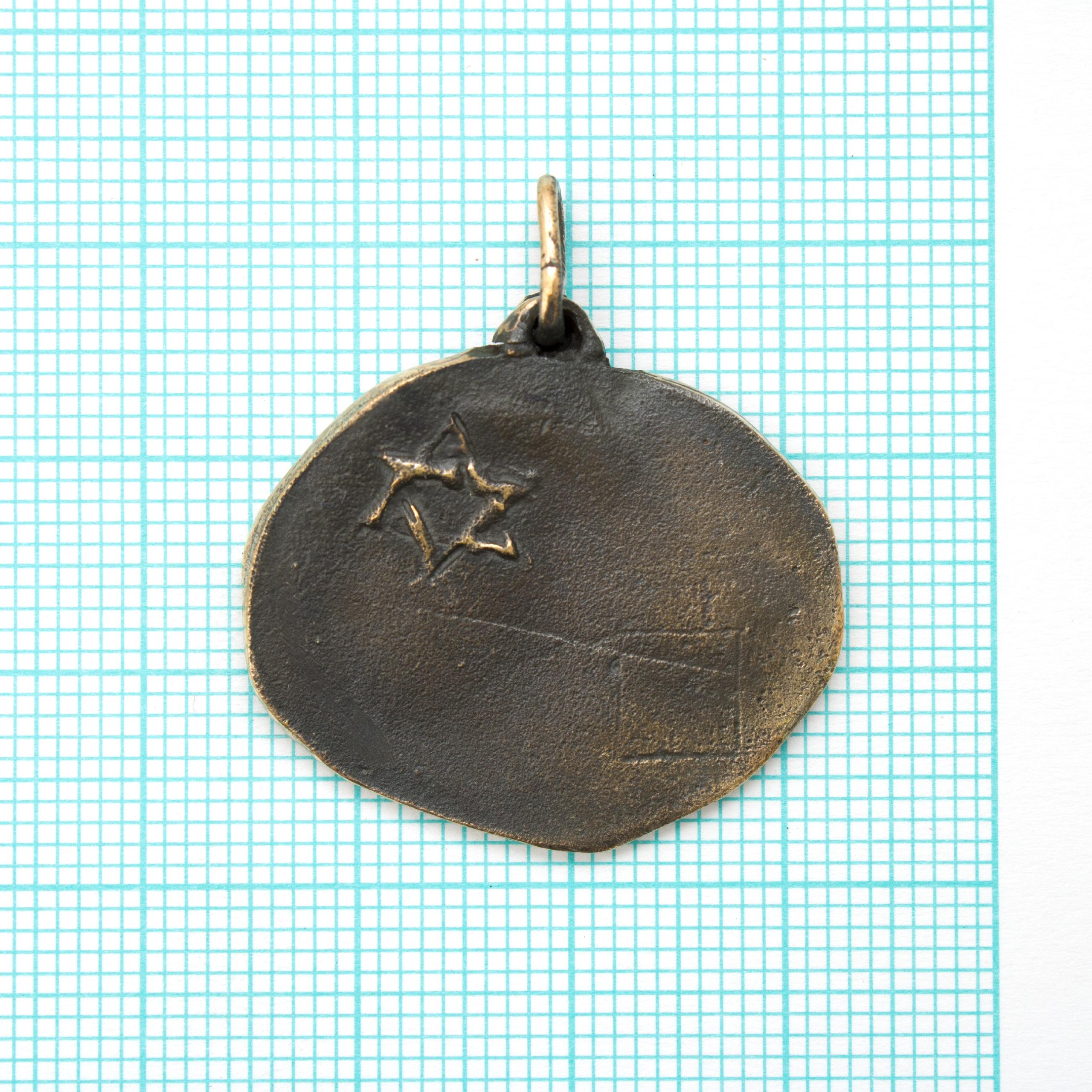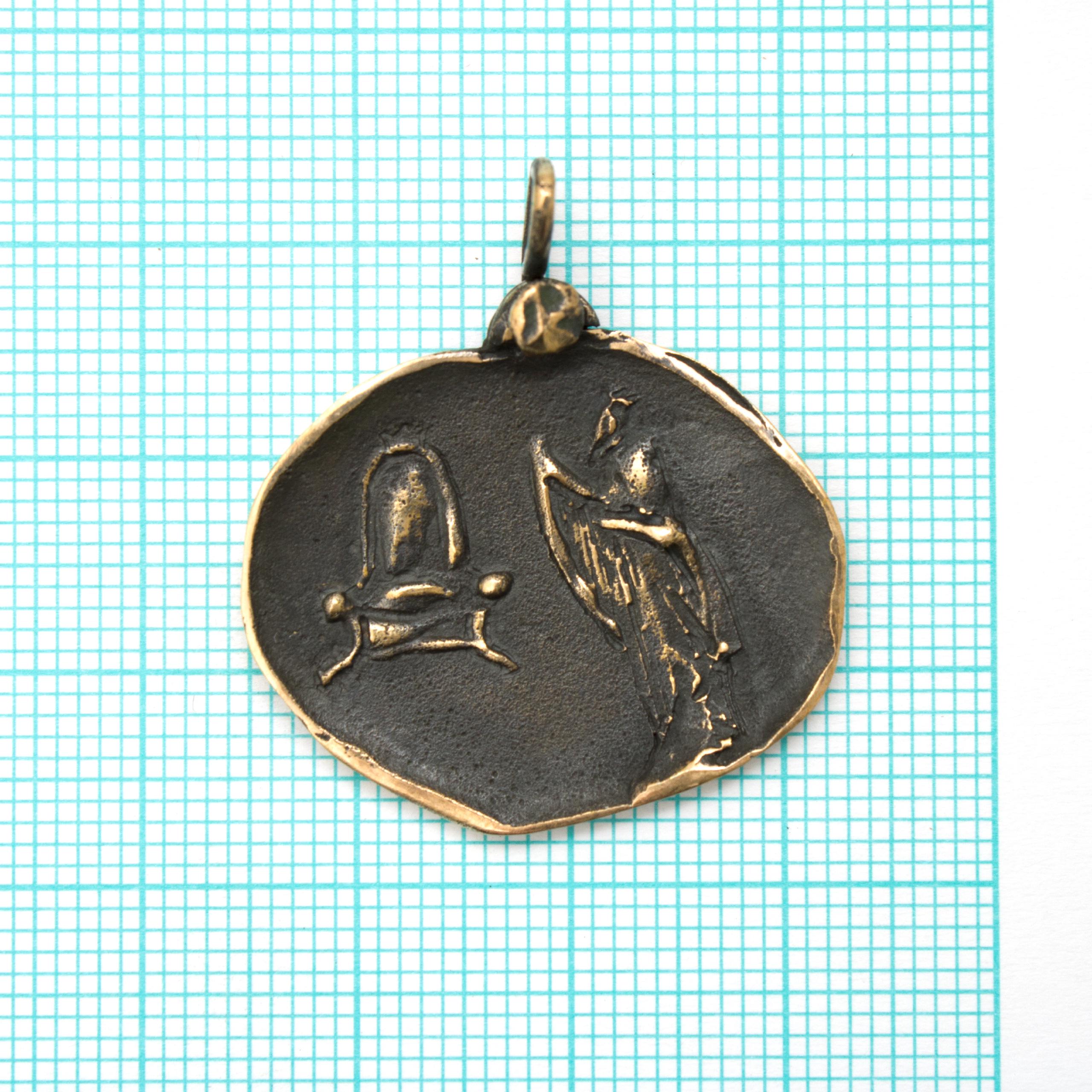 Bronze Pendant by Vojtěška Vlčková Catalogue number: 027008 Original title: David s loutnou Author: Vojtěška Vlčková Production: Jaromíra Pavlíková Material: bronze Technology: lost wax casting
