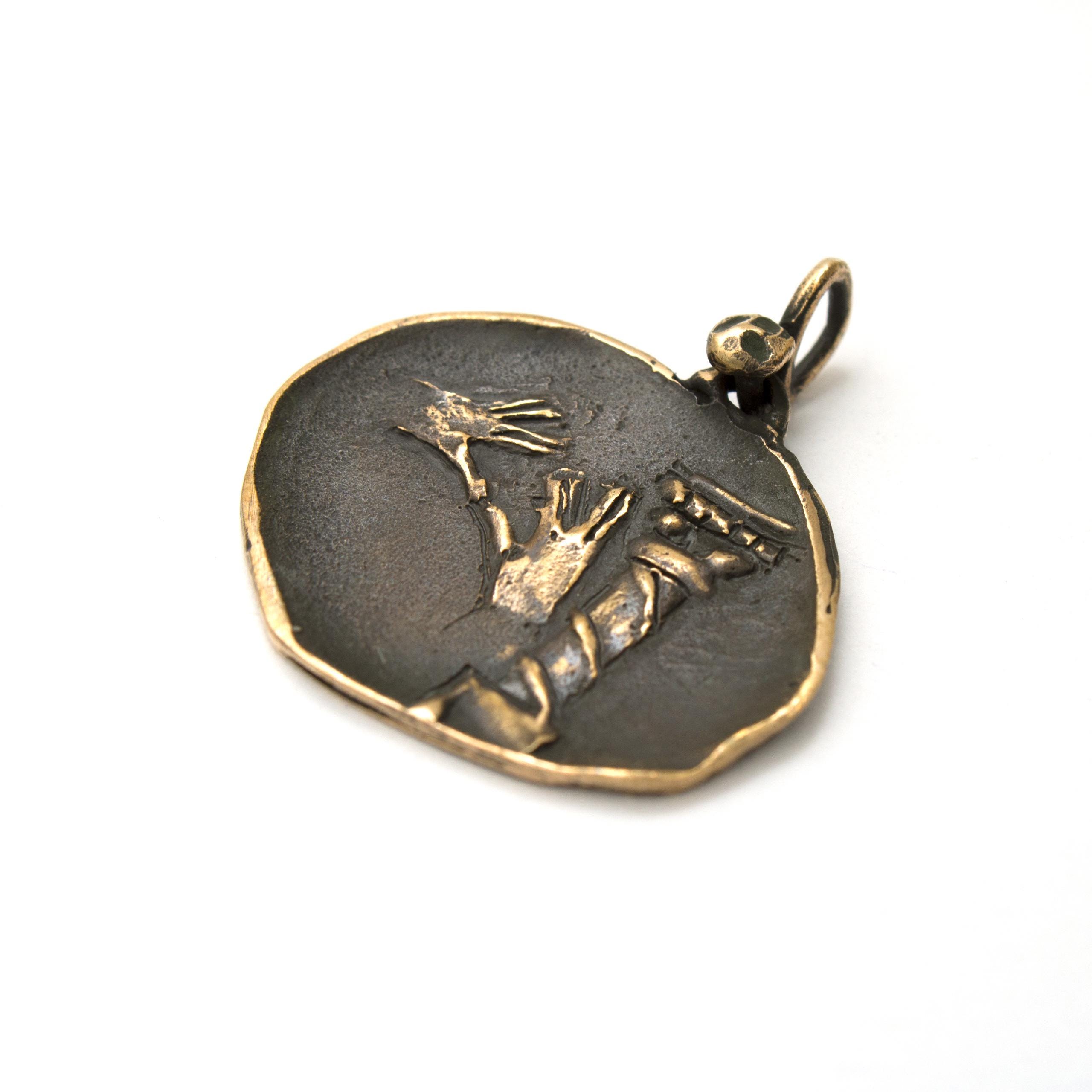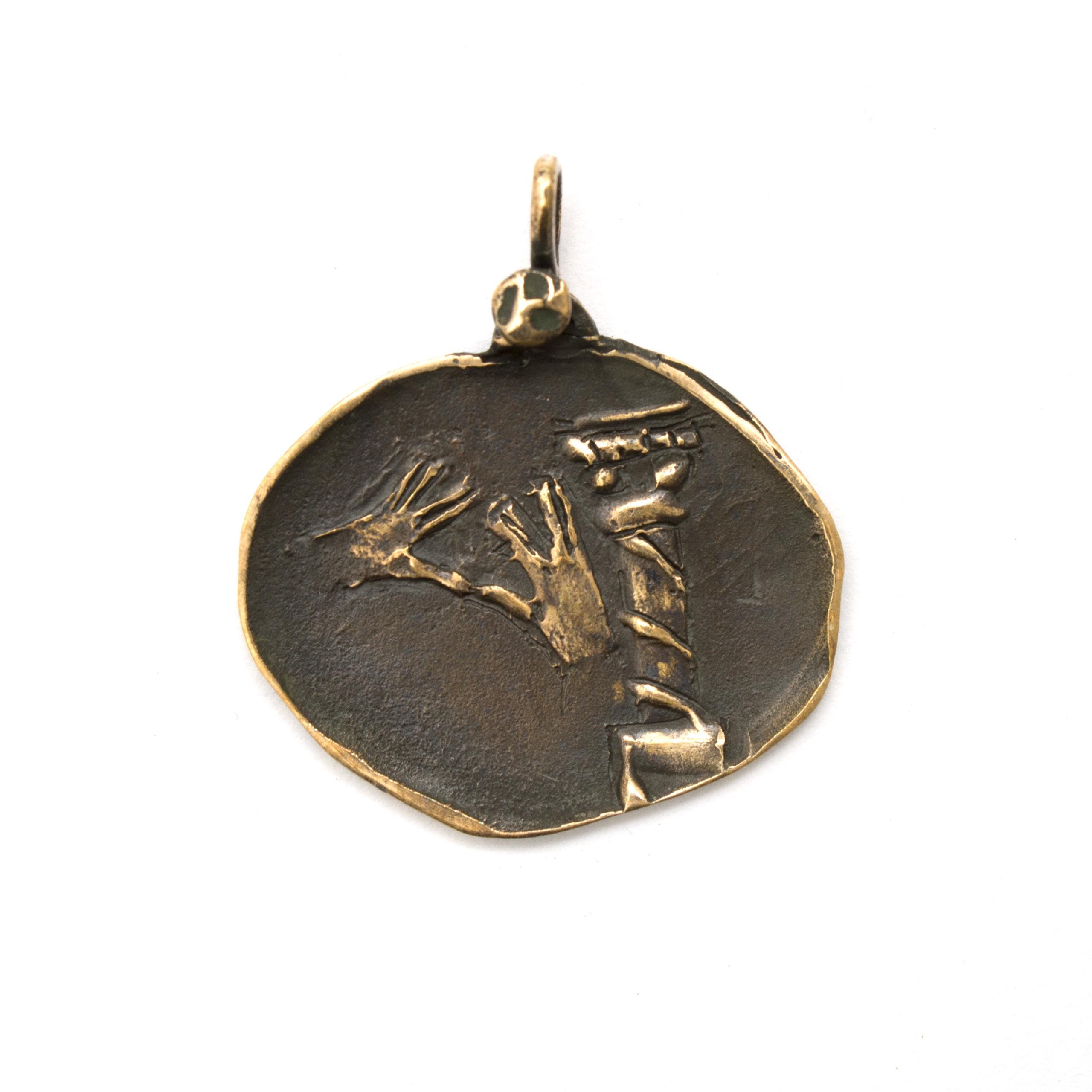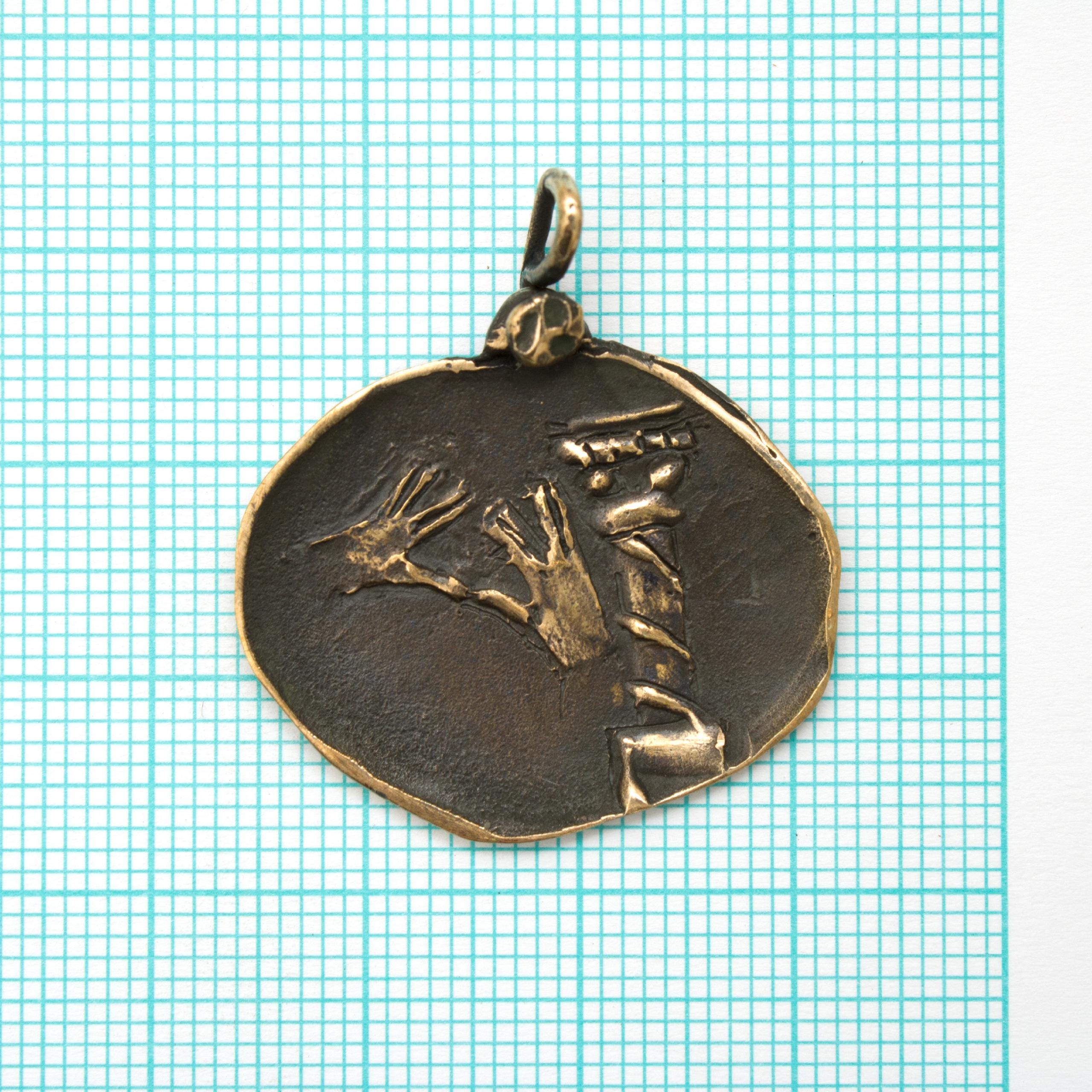 Bronze Pendant by Vojtěška Vlčková Catalogue number: 027010 Original title: Požehnání Author: Vojtěška Vlčková Production: Jaromíra Pavlíková Material: bronze Technology: lost wax casting