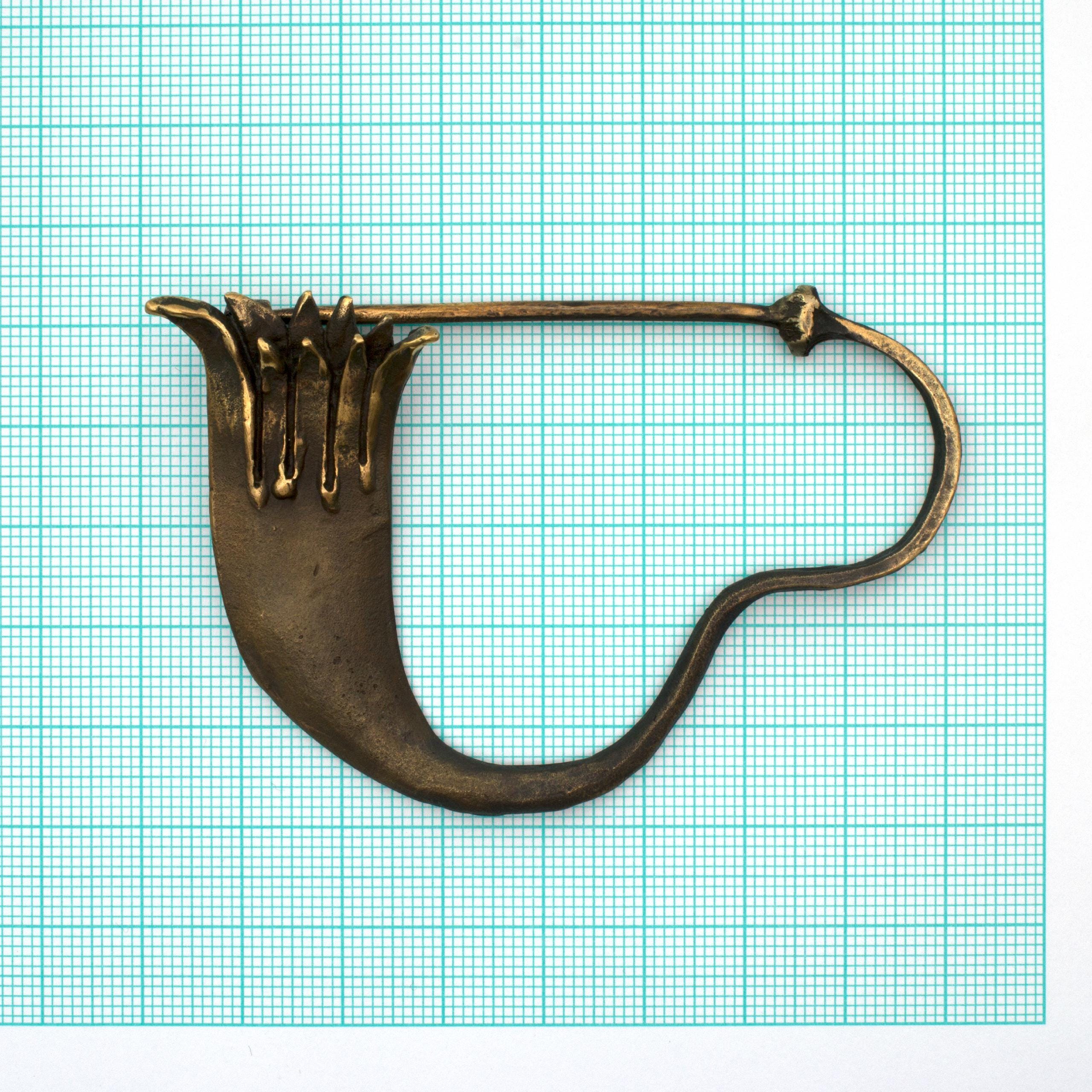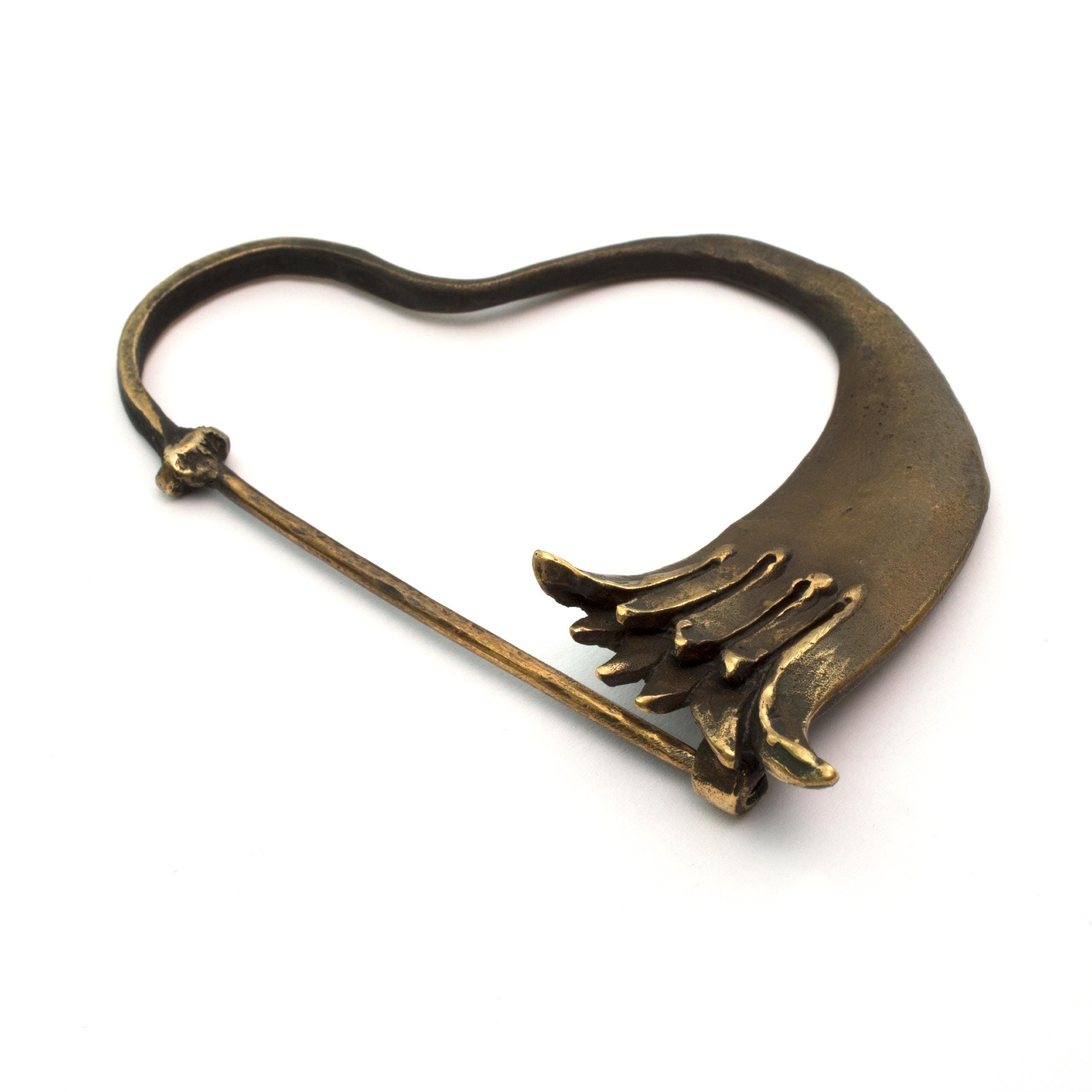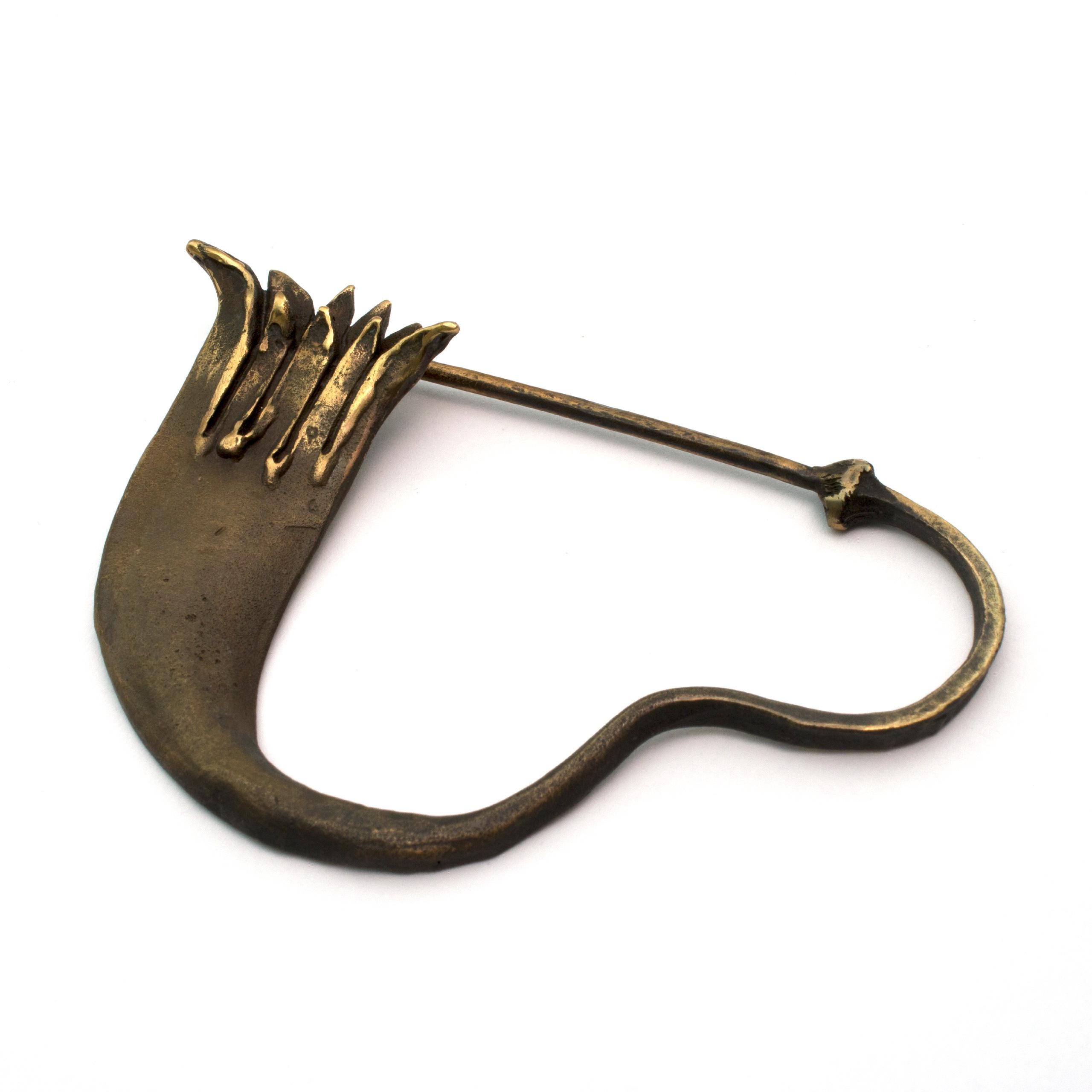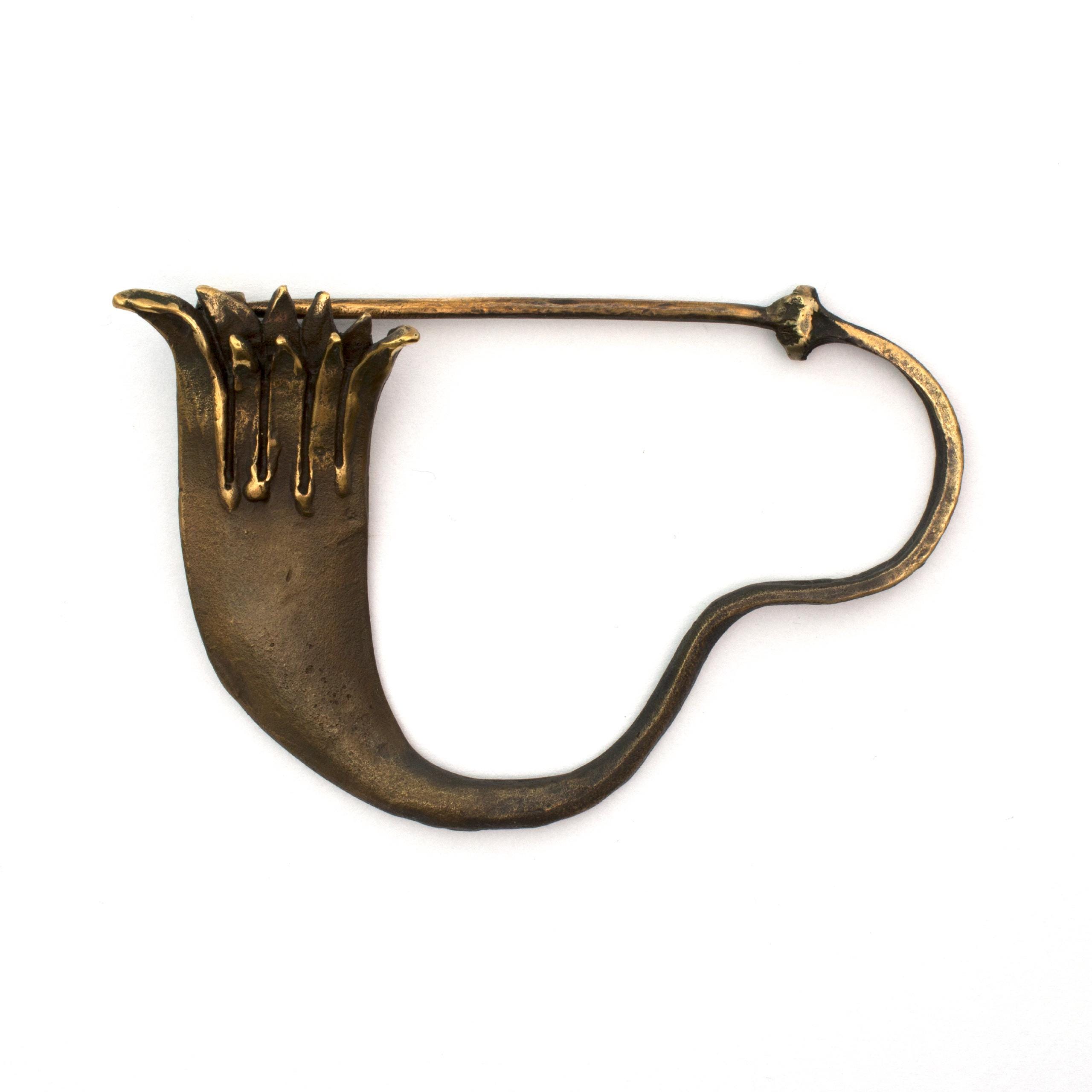 Bronze Coat Pin by Vojtěška Vlčková Catalogue number: 049 Original title: Starý zvonek Author: Vojtěška Vlčková Production: Jaromíra Pavlíková Material: bronze Technology: lost wax casting