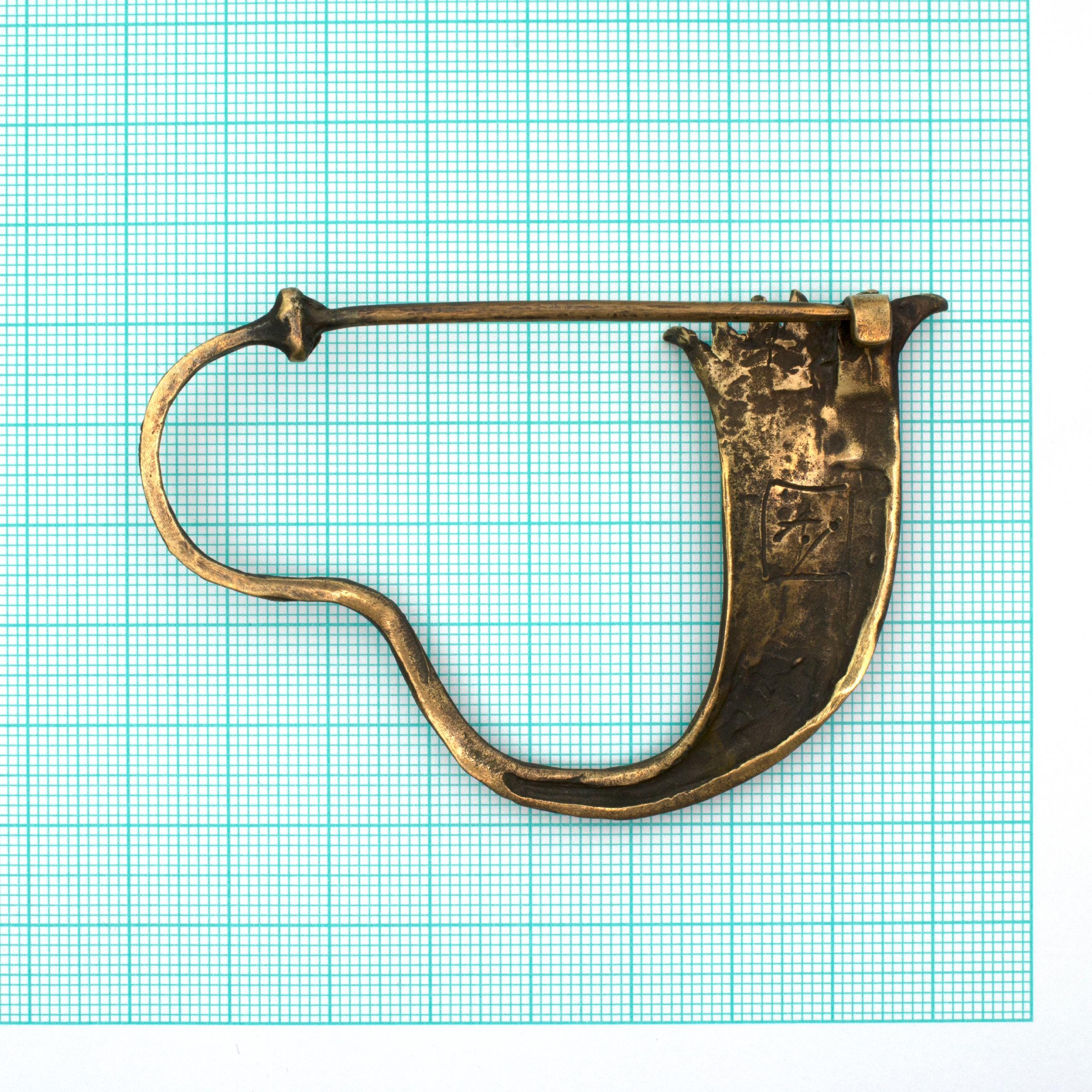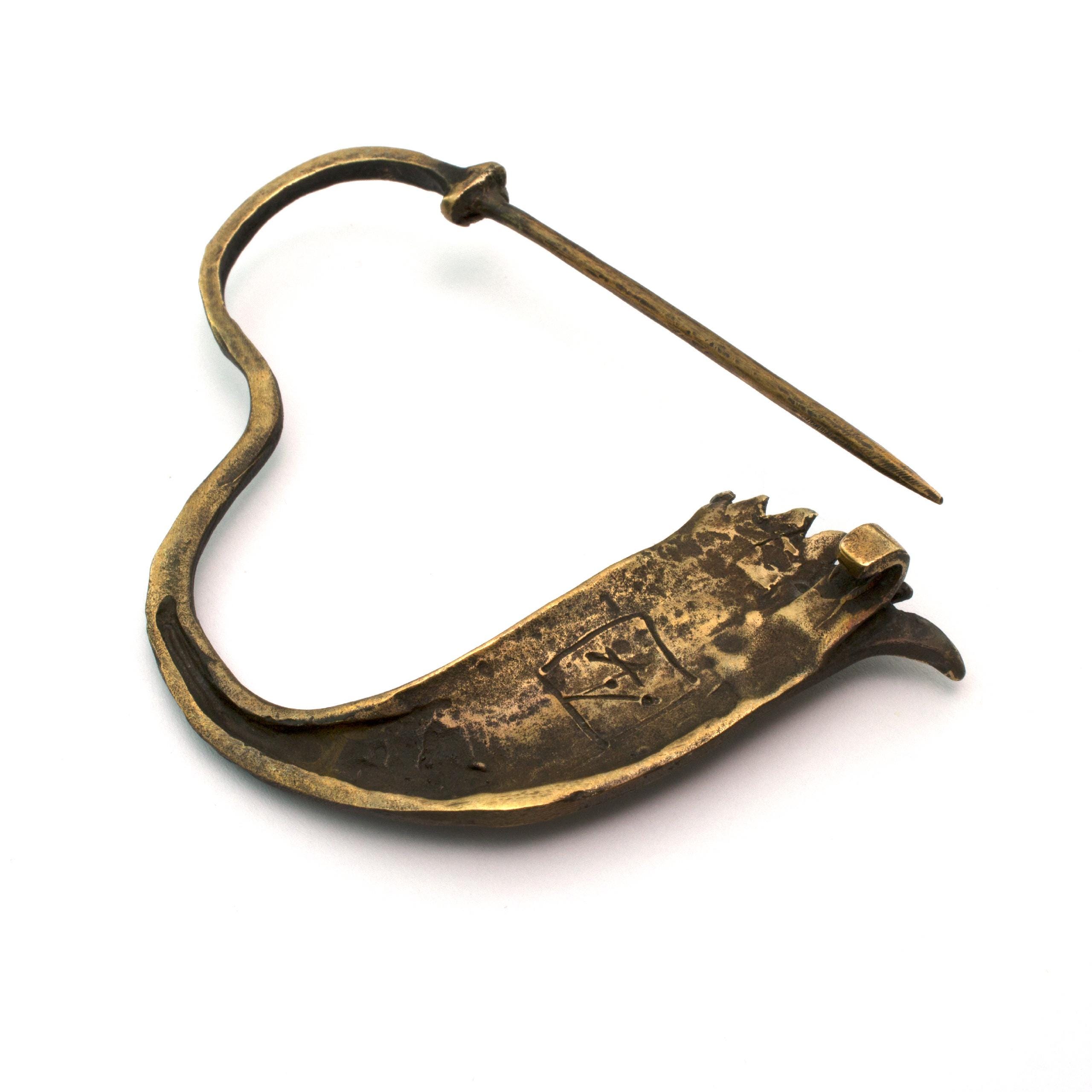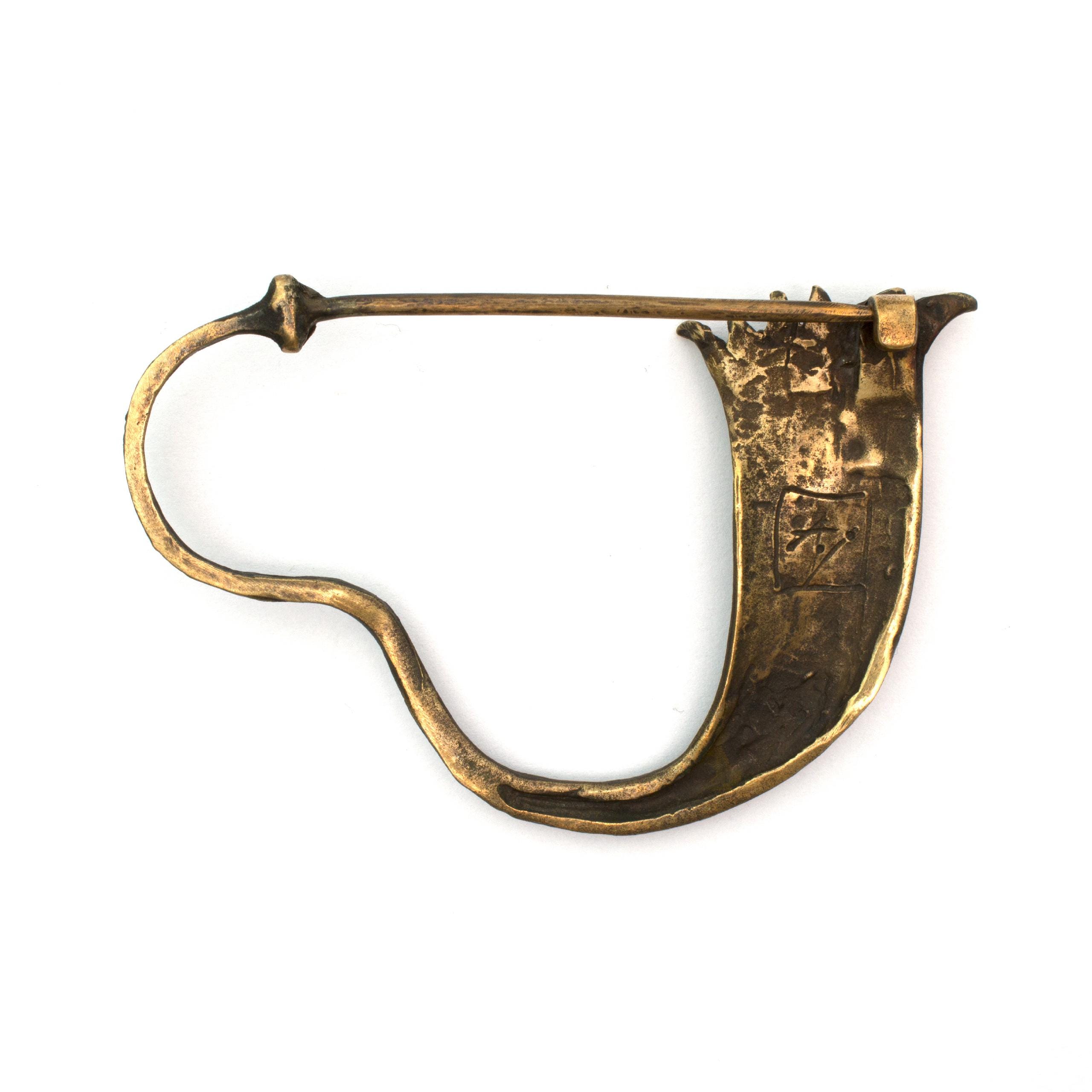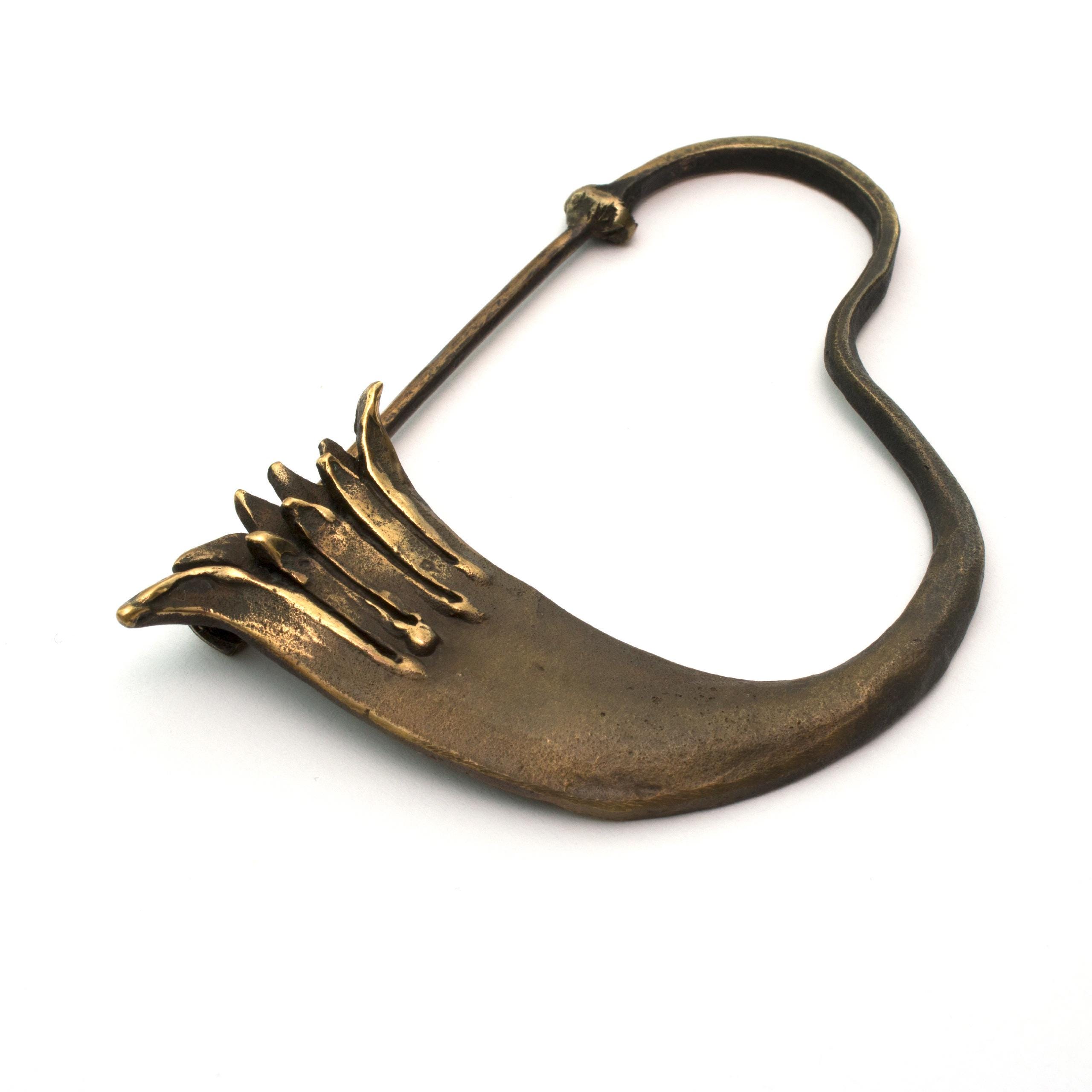 Bronze Coat Pin by Vojtěška Vlčková Catalogue number: 049 Original title: Starý zvonek Author: Vojtěška Vlčková Production: Jaromíra Pavlíková Material: bronze Technology: lost wax casting