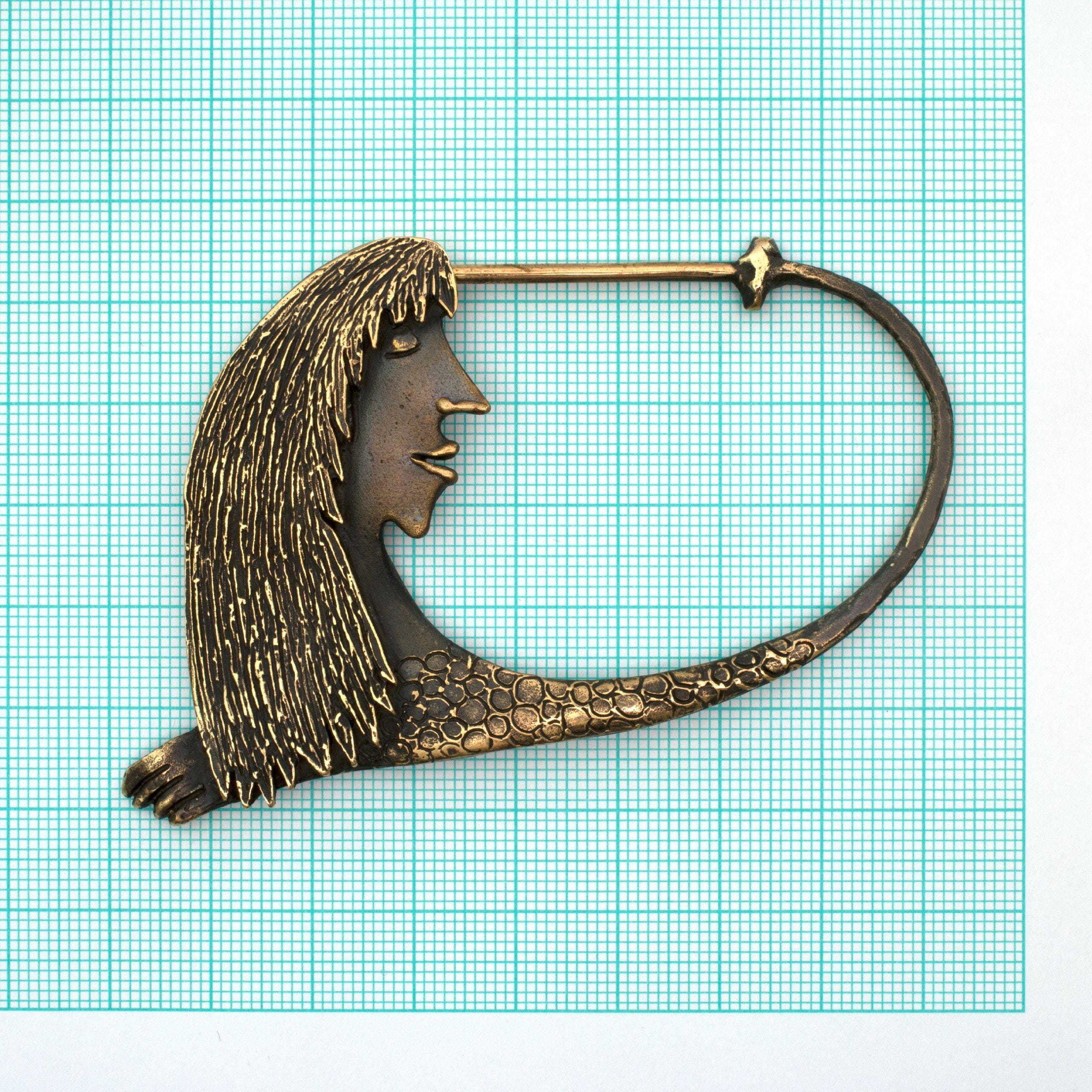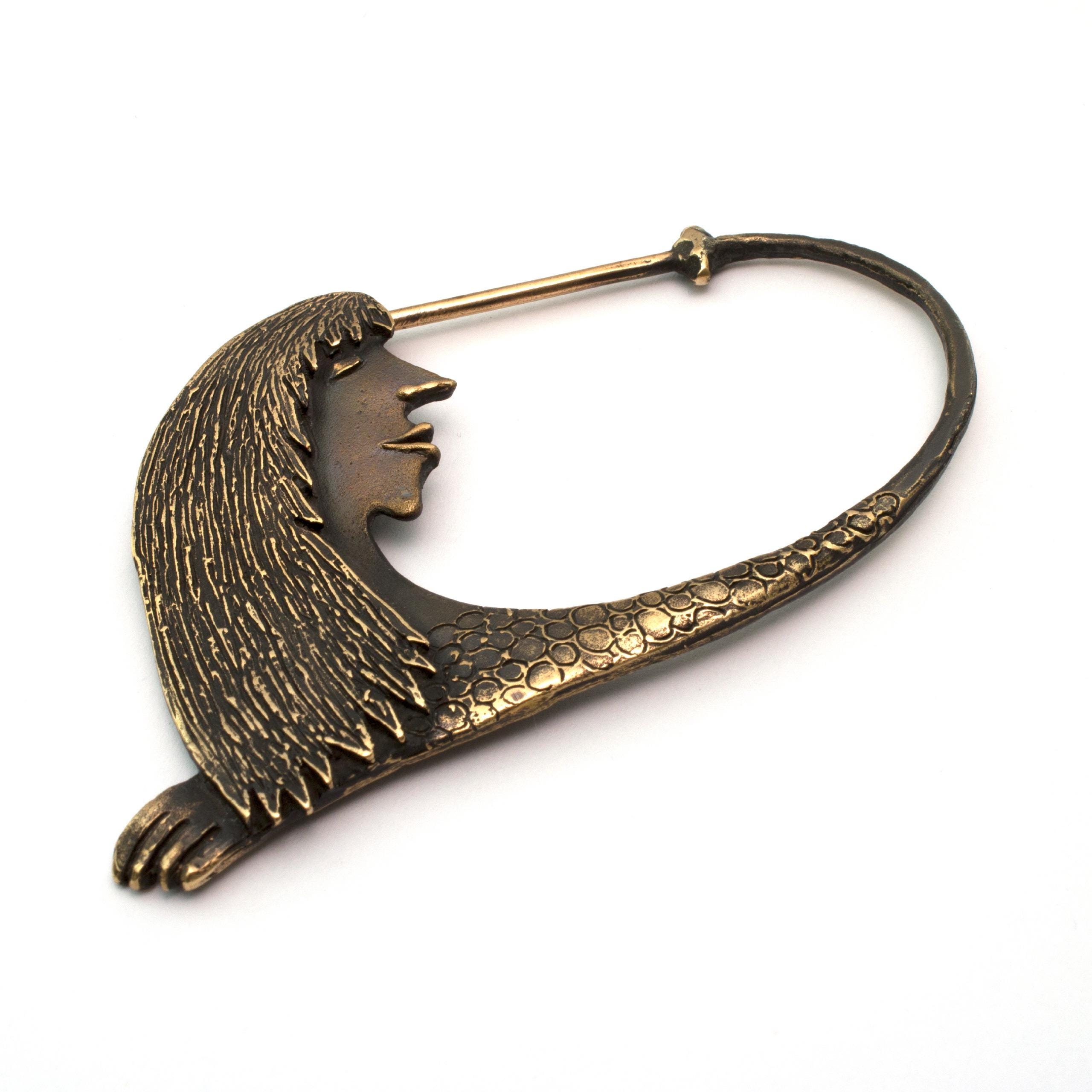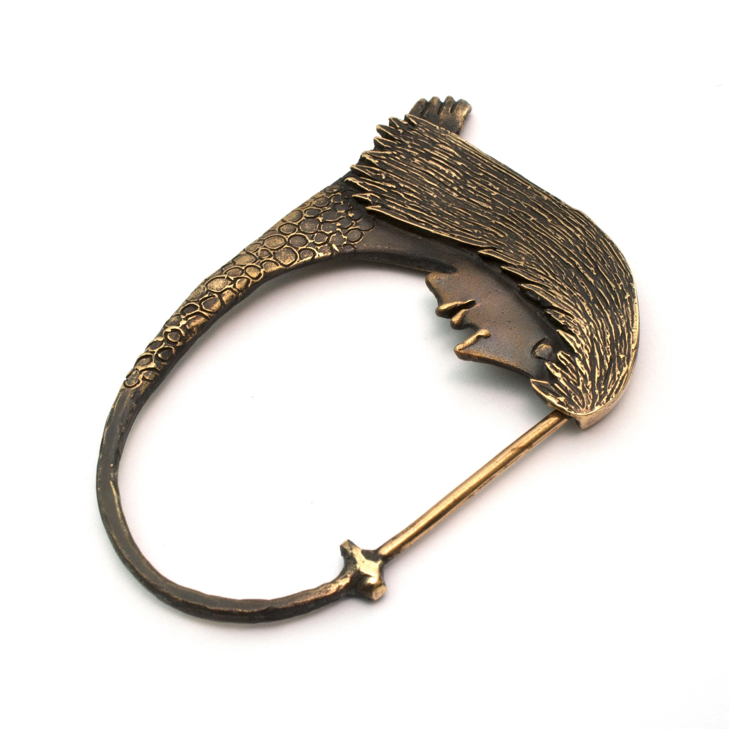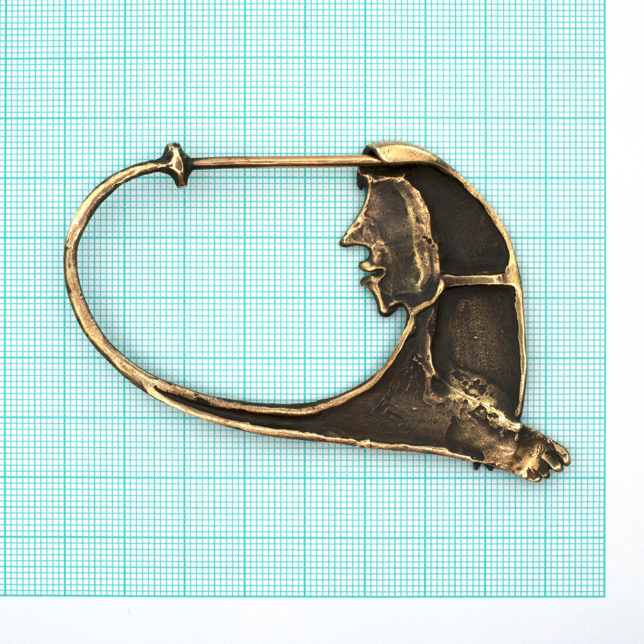 Bronze Coat Pin by Vojtěška Vlčková Catalogue number: 052 Original title: Sfinga Author: Vojtěška Vlčková Production: Jaromíra Pavlíková Material: bronze Technology: lost wax casting