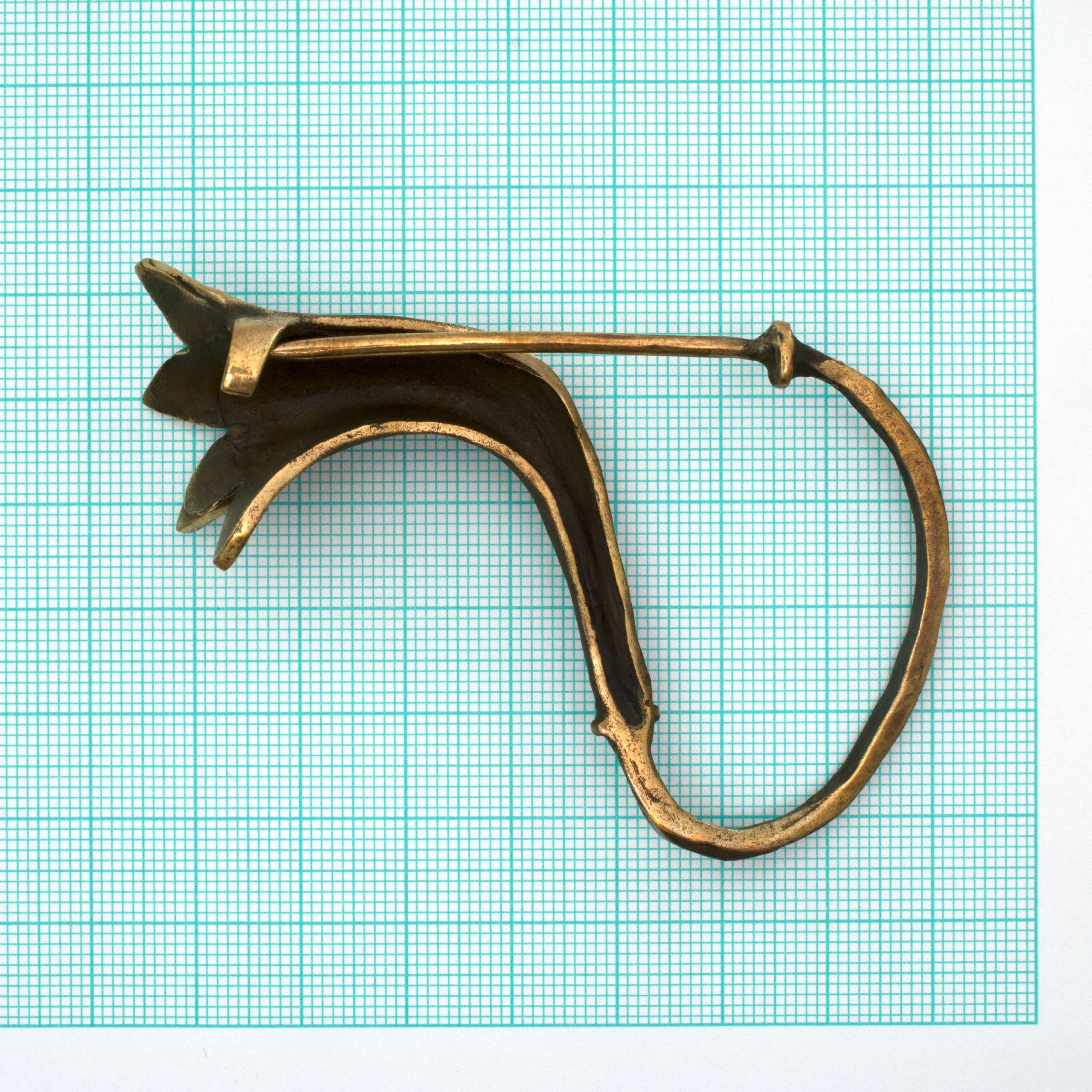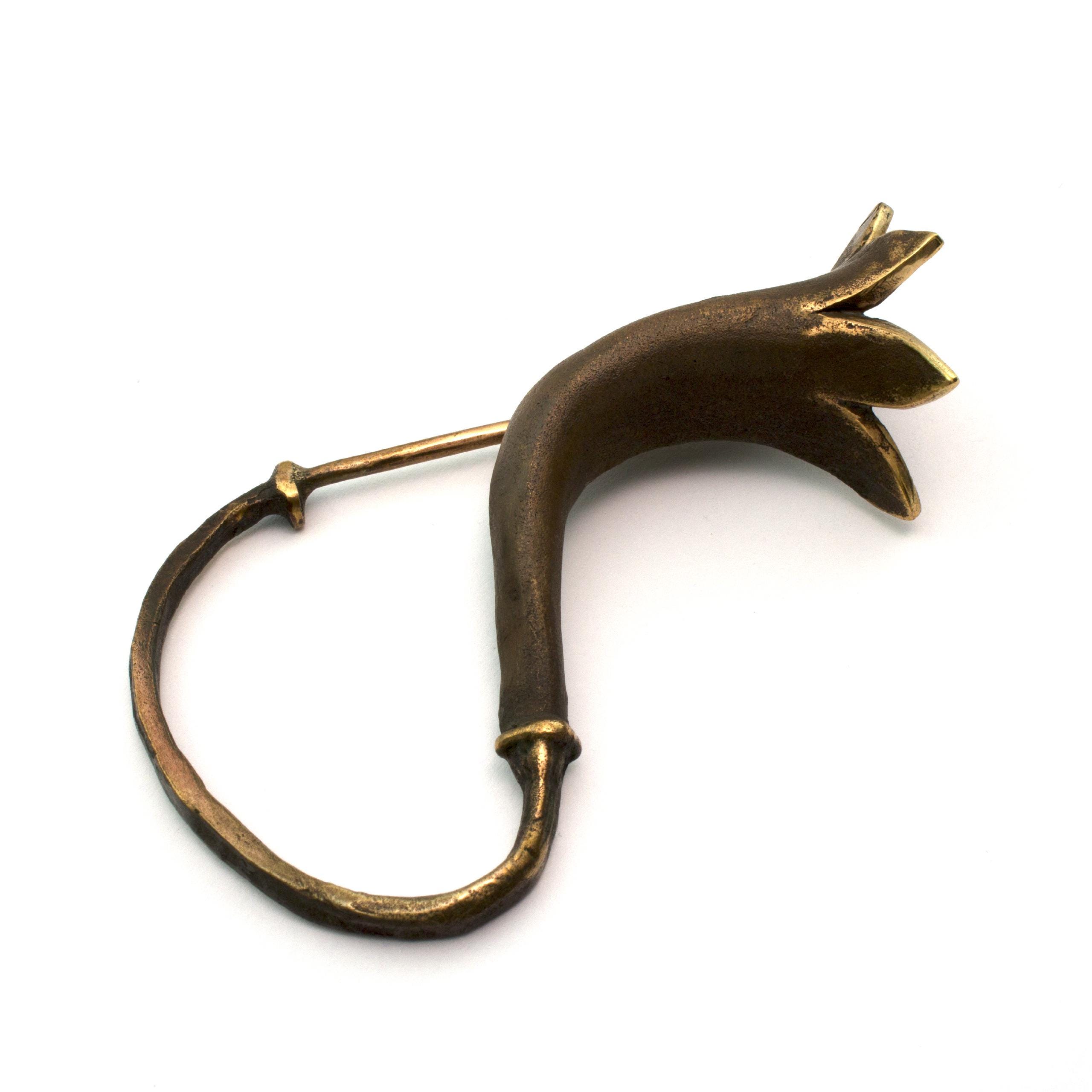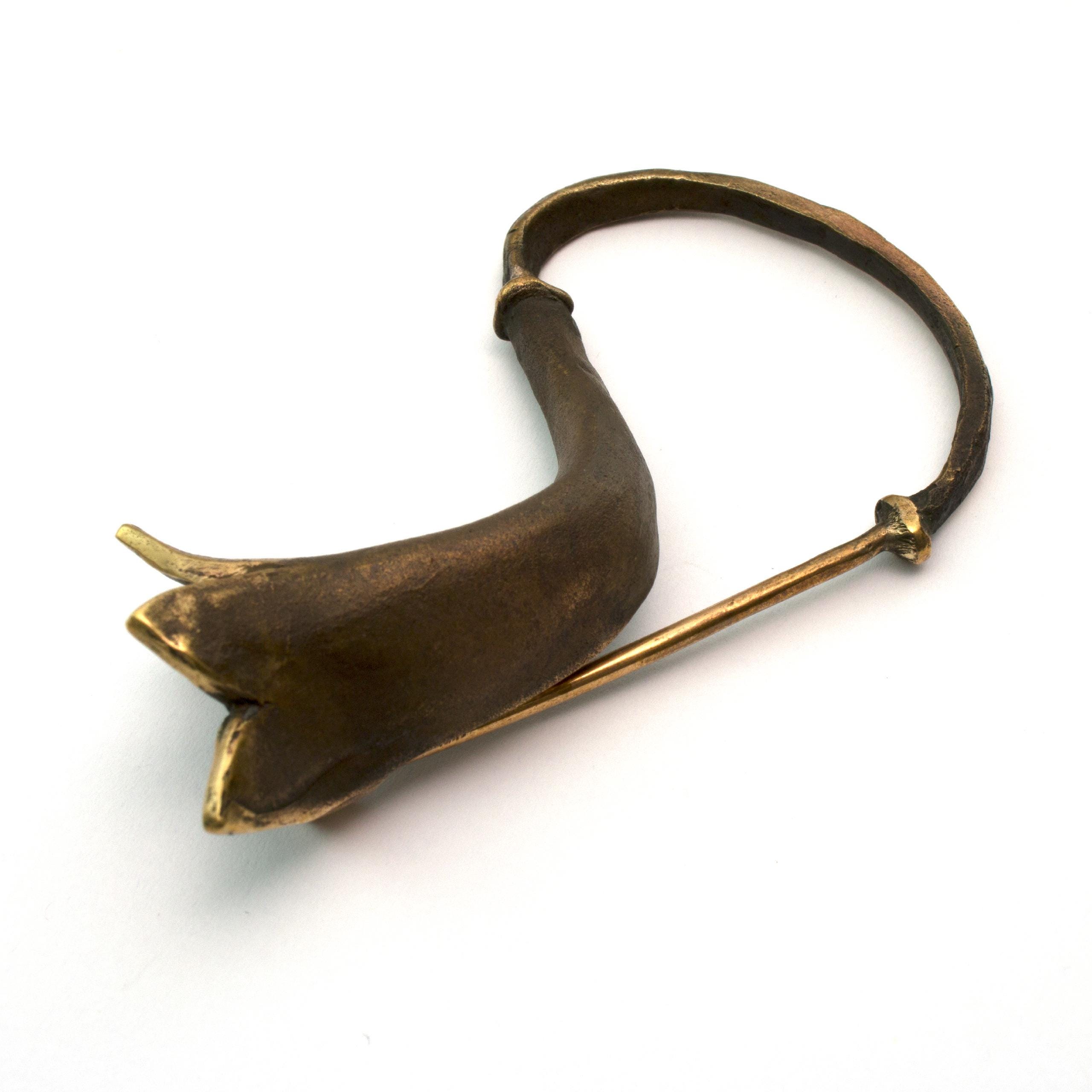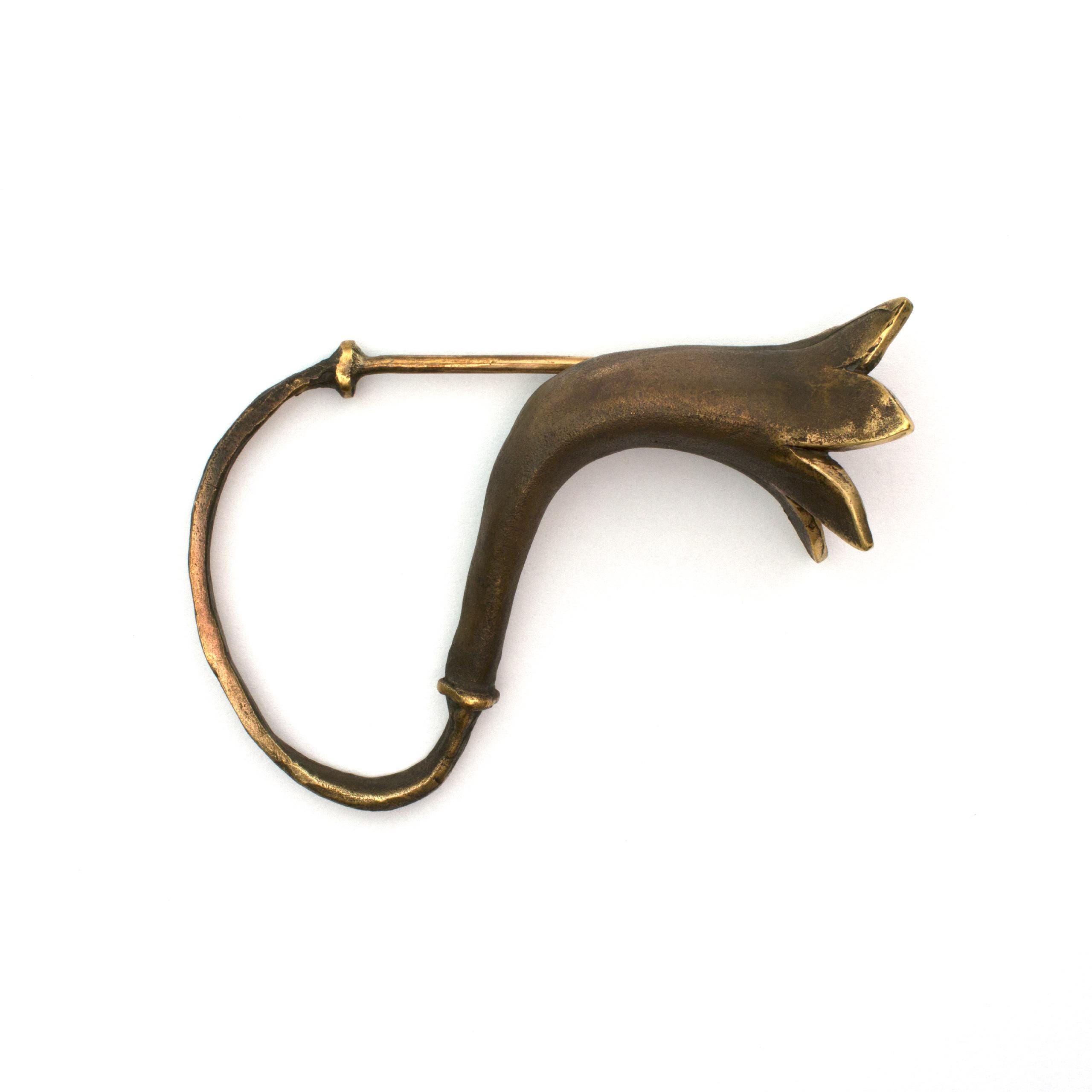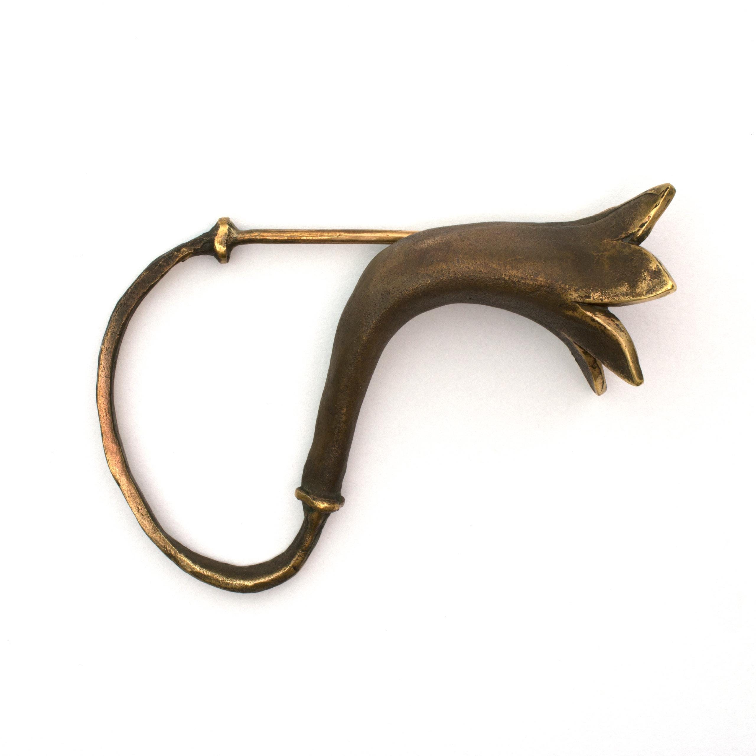 Bronze Coat Pin by Vojtěška Vlčková Catalogue number: 057 Original title: Zvonek velký Author: Vojtěška Vlčková Production: Jaromíra Pavlíková Material: bronze Technology: lost wax casting