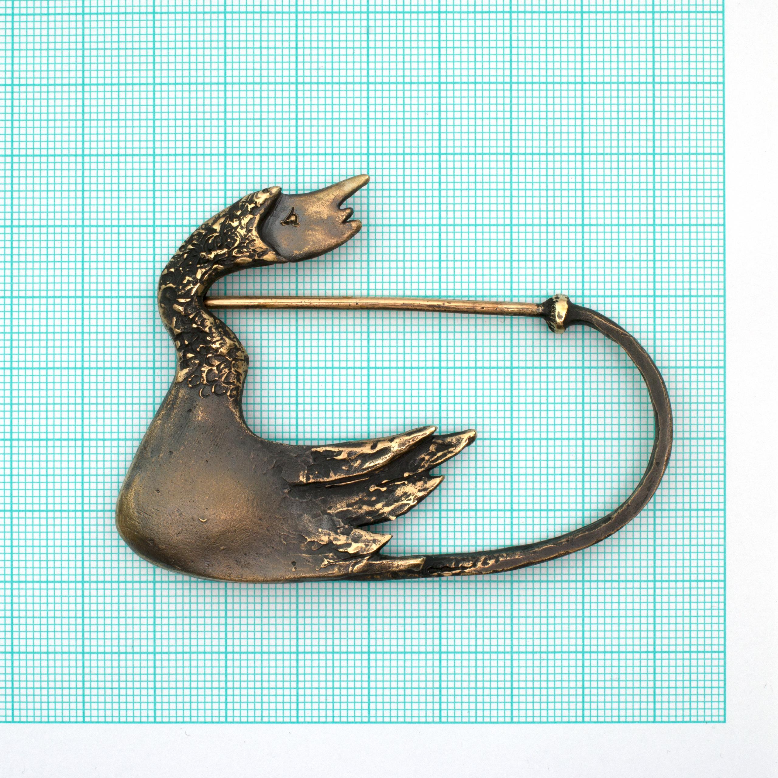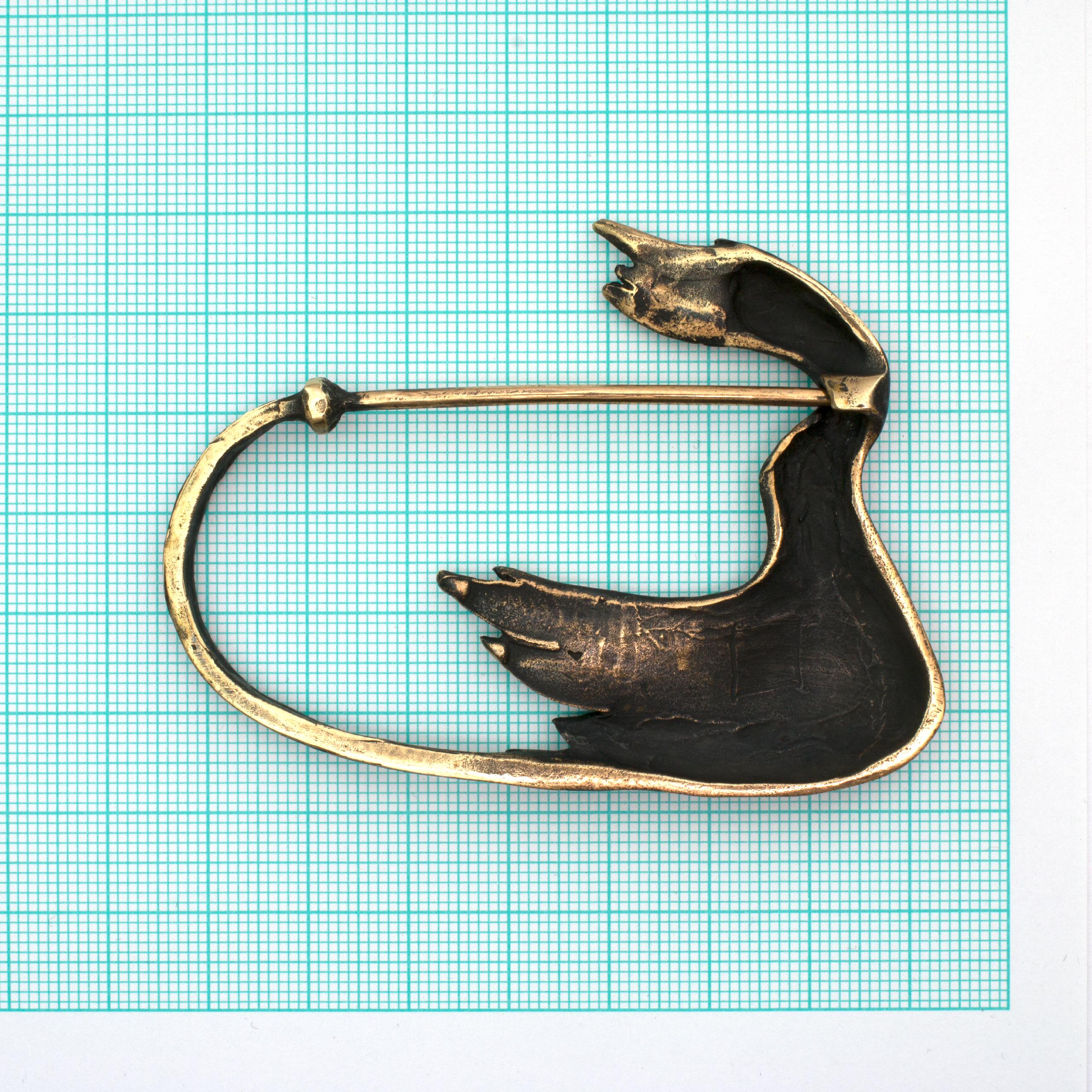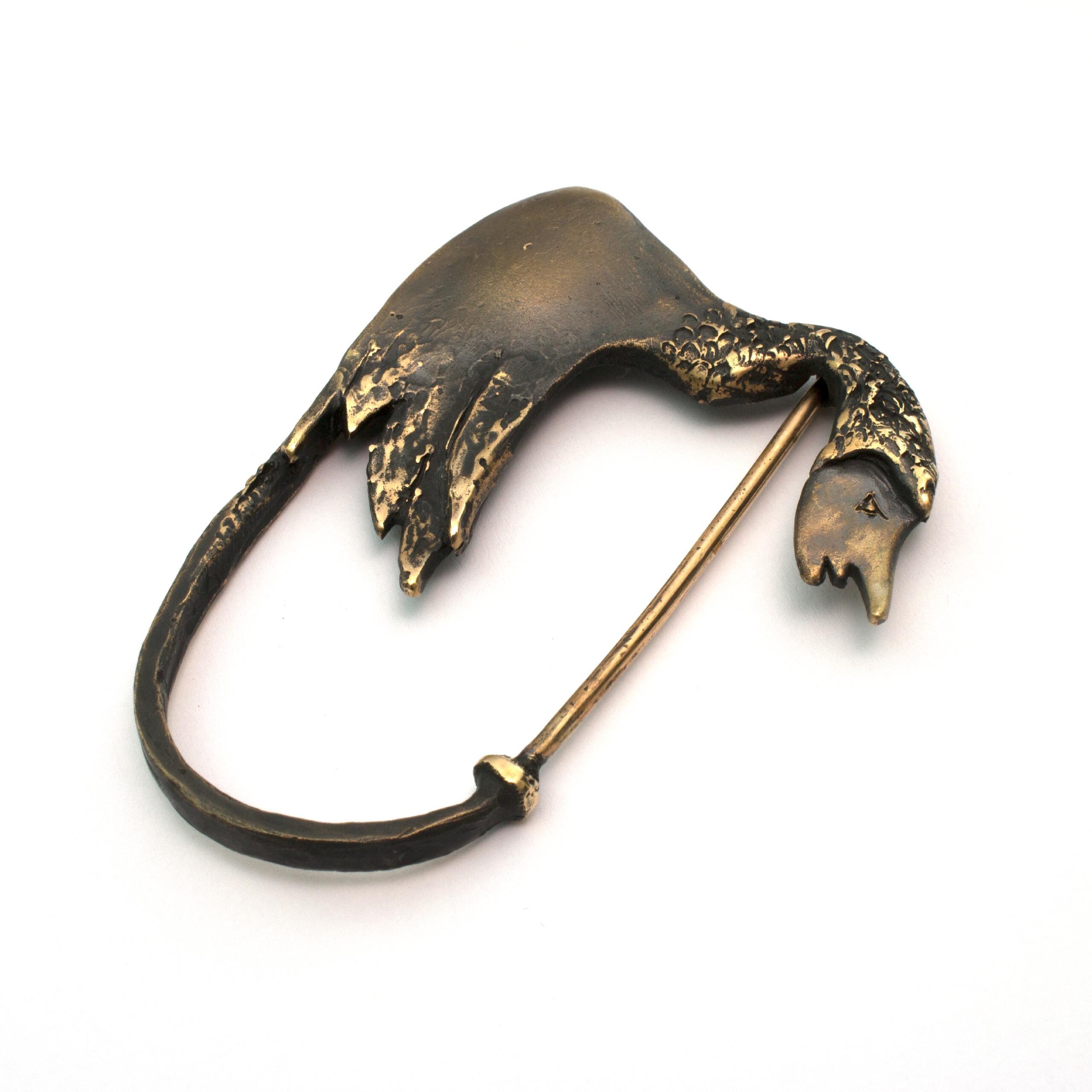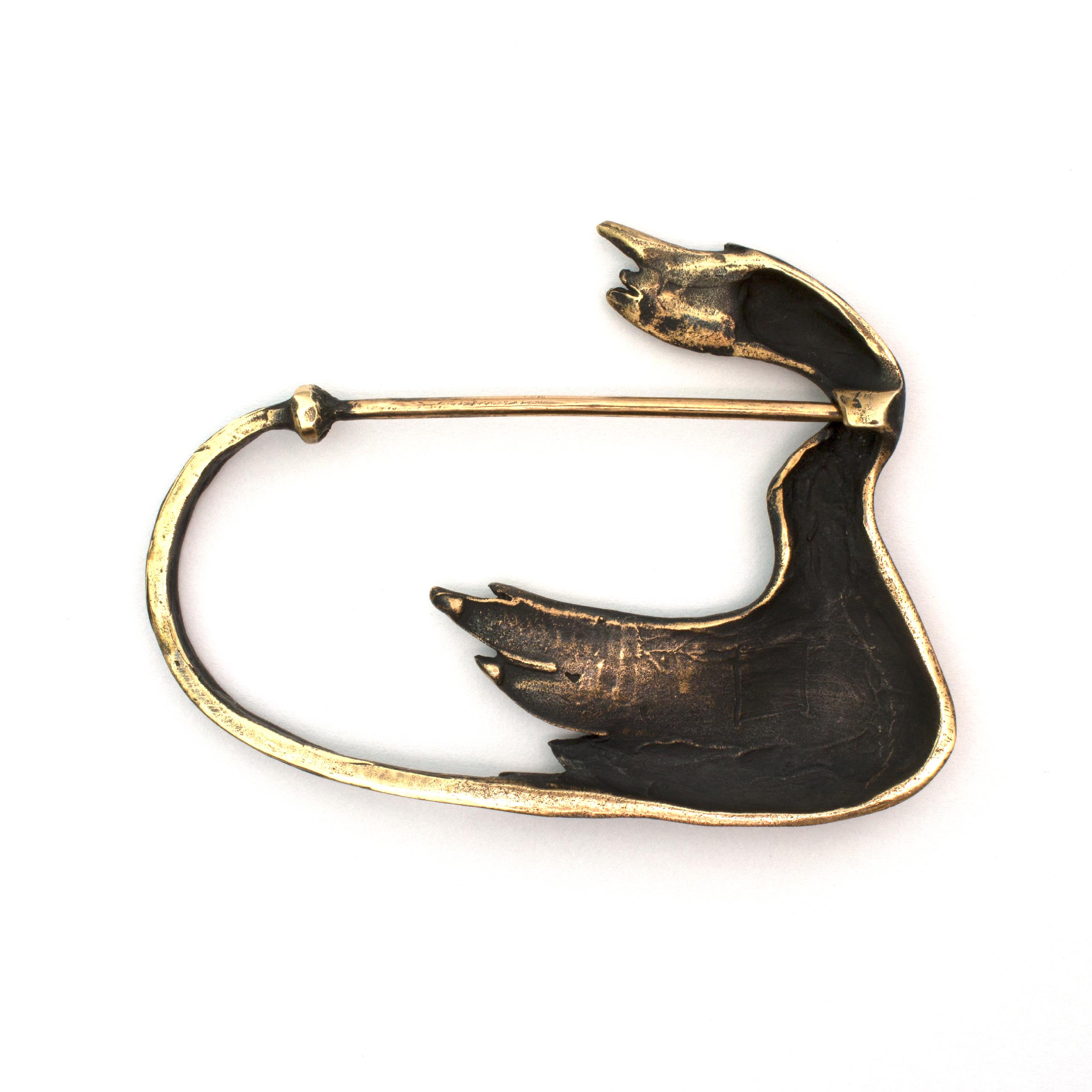 Bronze Coat Pin by Vojtěška Vlčková Catalogue number: 068 Original title: Kačenka Author: Vojtěška Vlčková Production: Jaromíra Pavlíková Material: bronze Technology: lost wax casting