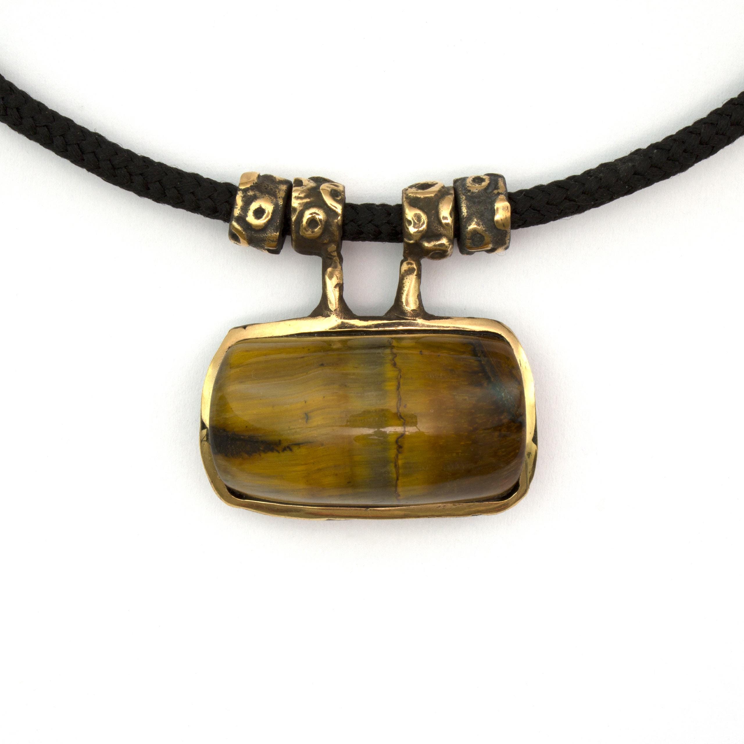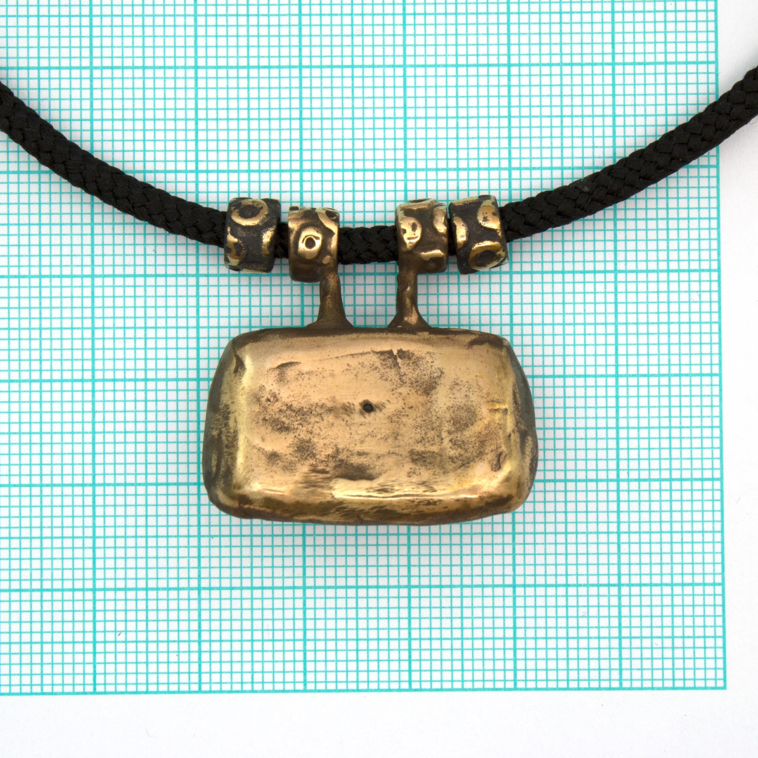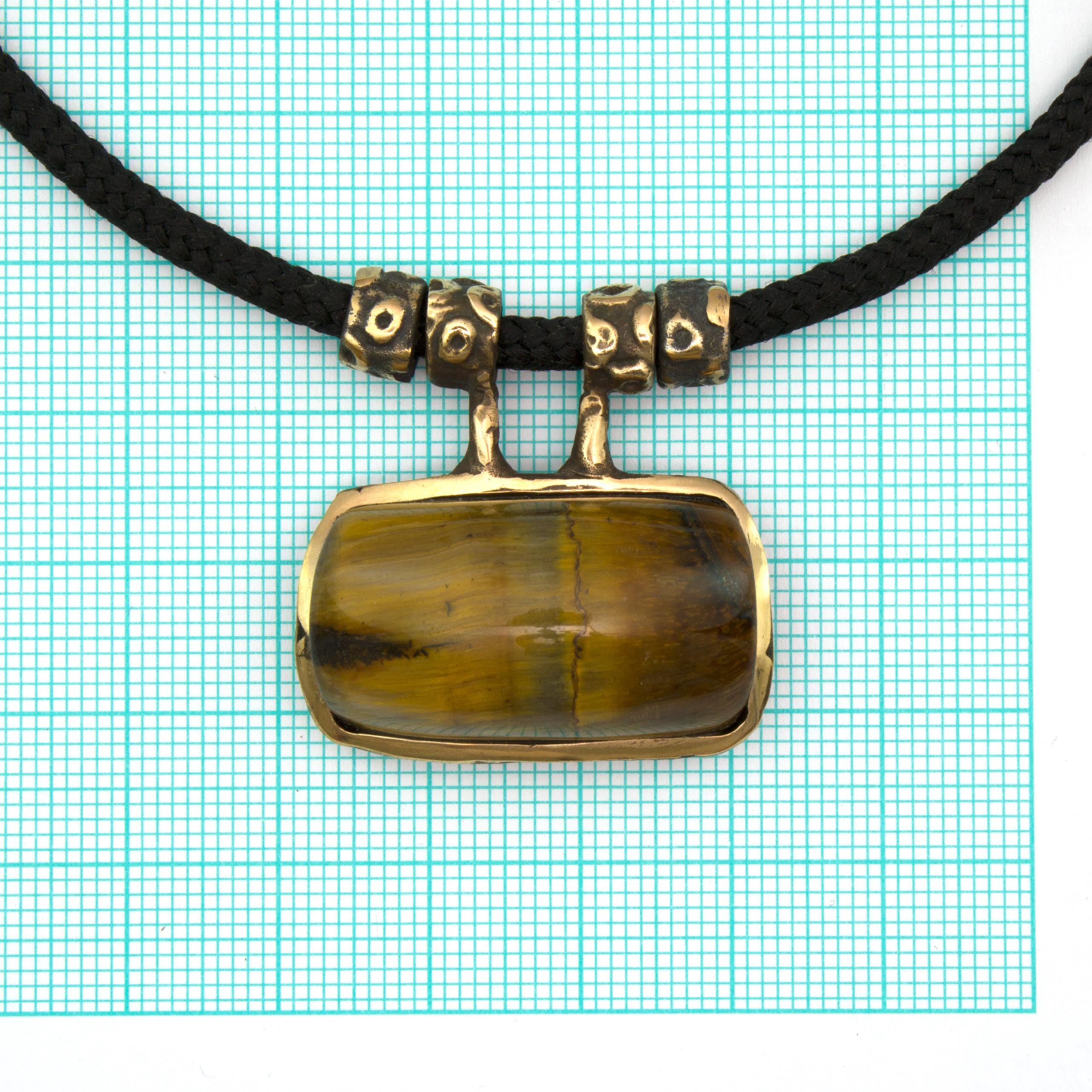 Bronze Pendant Necklace with Tiger's Eye by Vojtěška Vlčková Catalogue number: 071 Original title: Náhrdelník s kamenem Author: Vojtěška Vlčková Production: Jaromíra Pavlíková Material: bronze Technology: lost wax casting