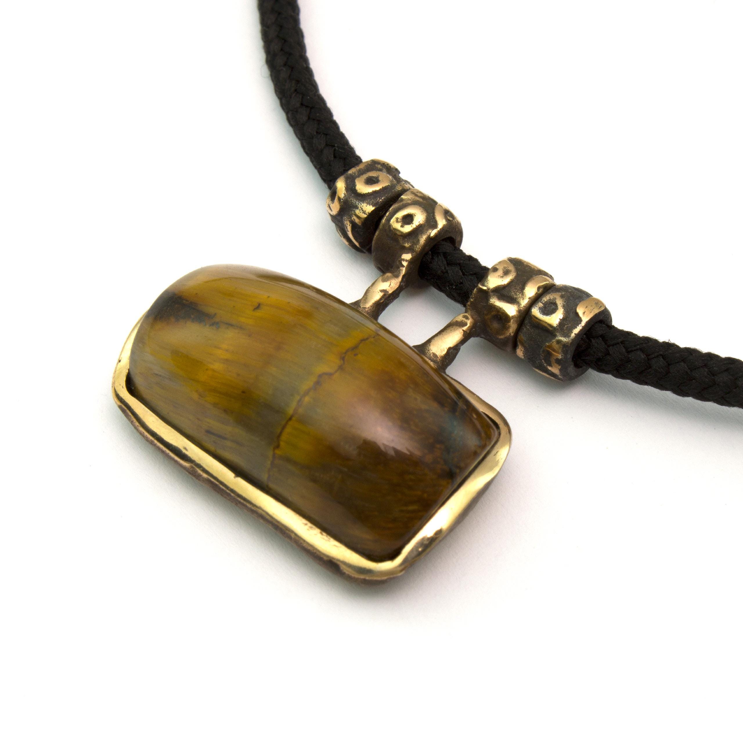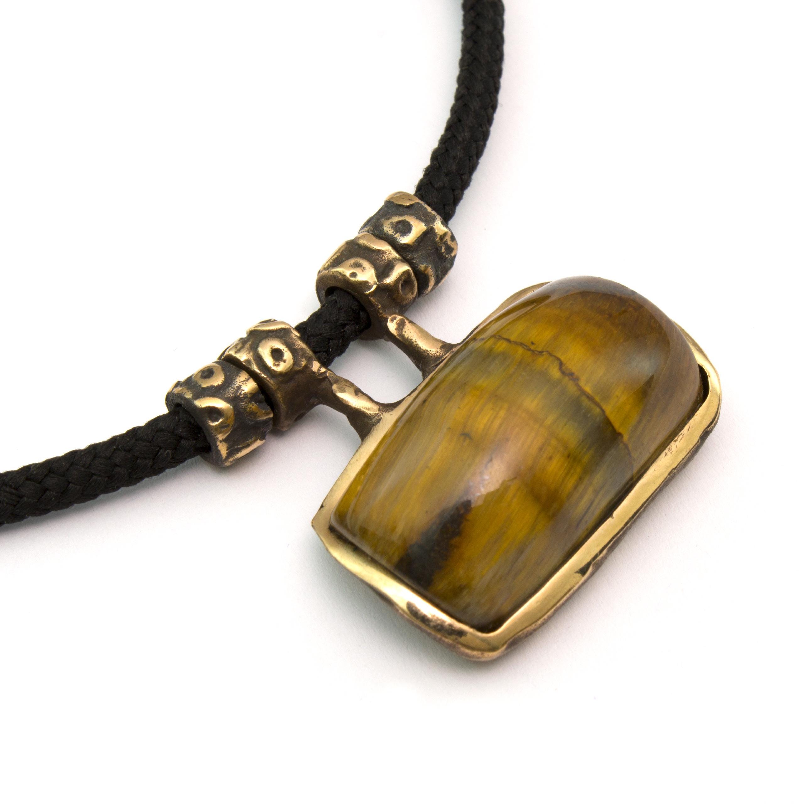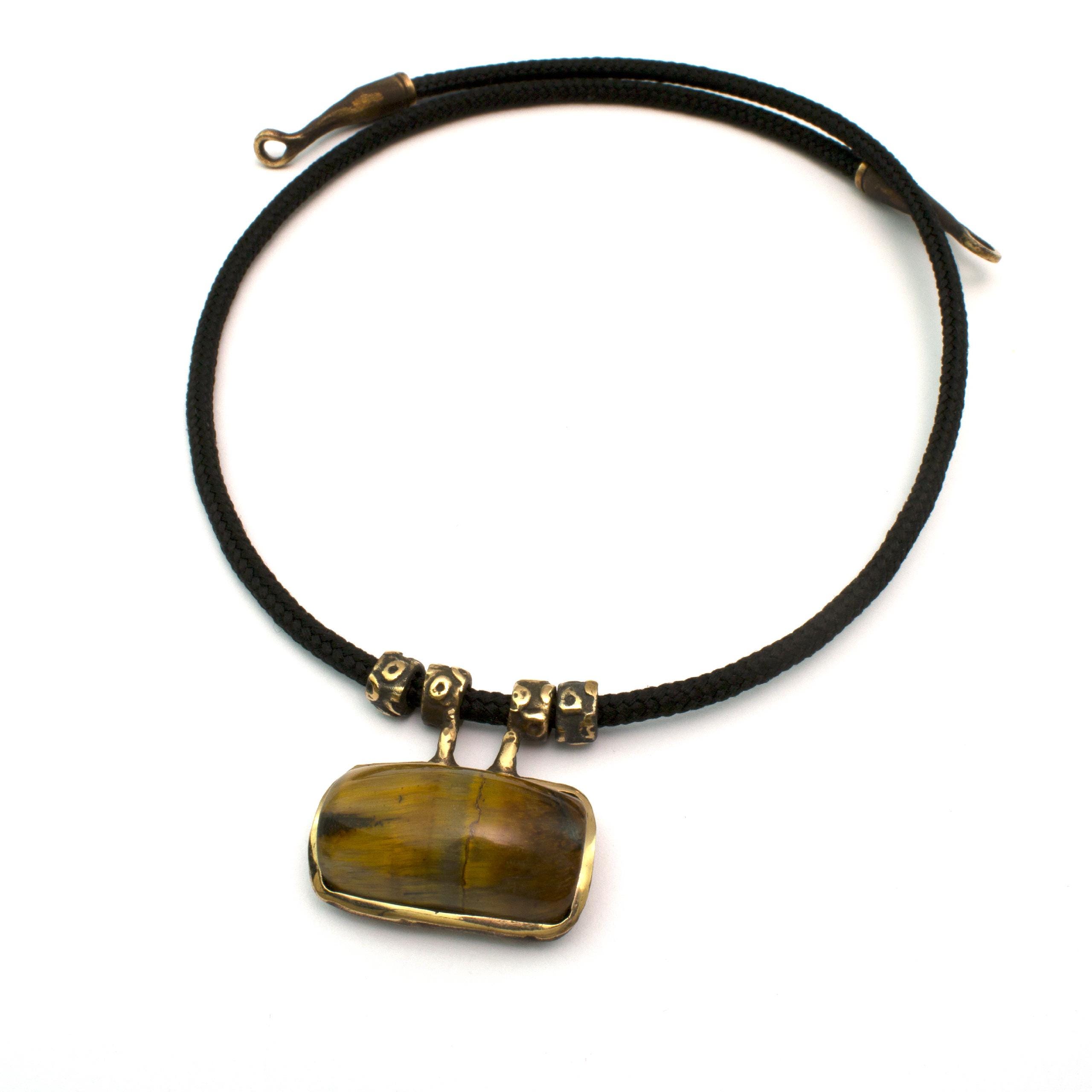 Bronze Pendant Necklace with Tiger's Eye by Vojtěška Vlčková Catalogue number: 071 Original title: Náhrdelník s kamenem Author: Vojtěška Vlčková Production: Jaromíra Pavlíková Material: bronze Technology: lost wax casting