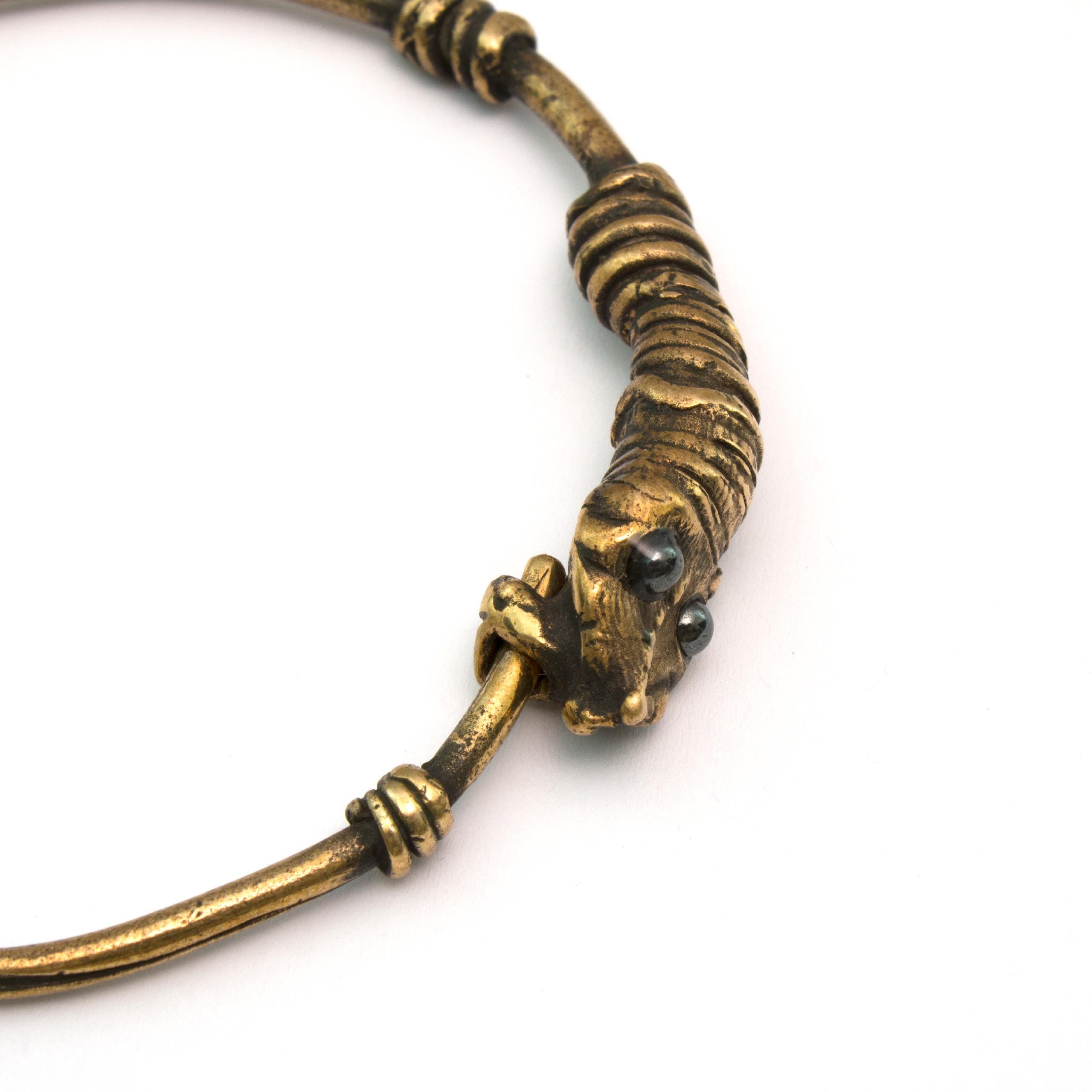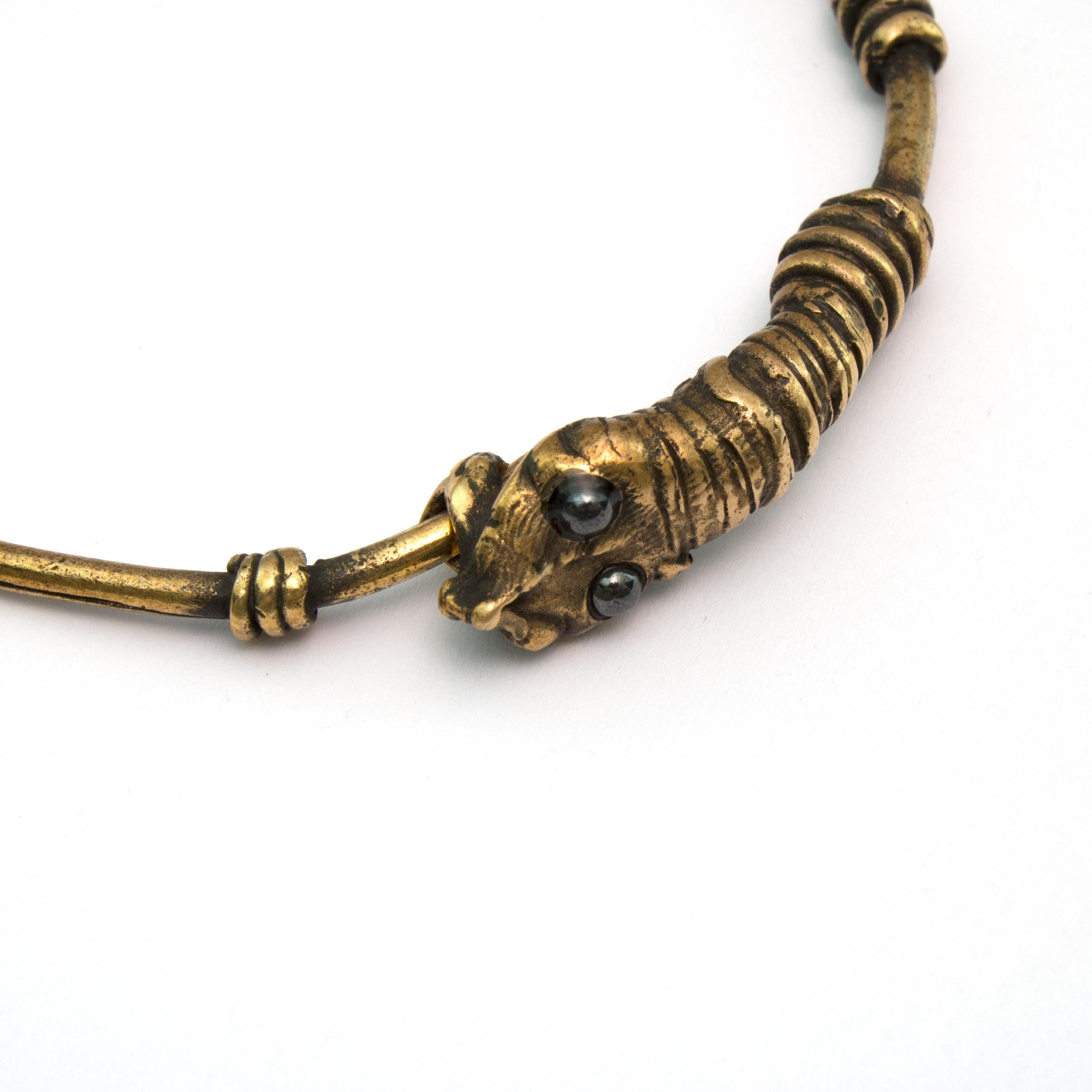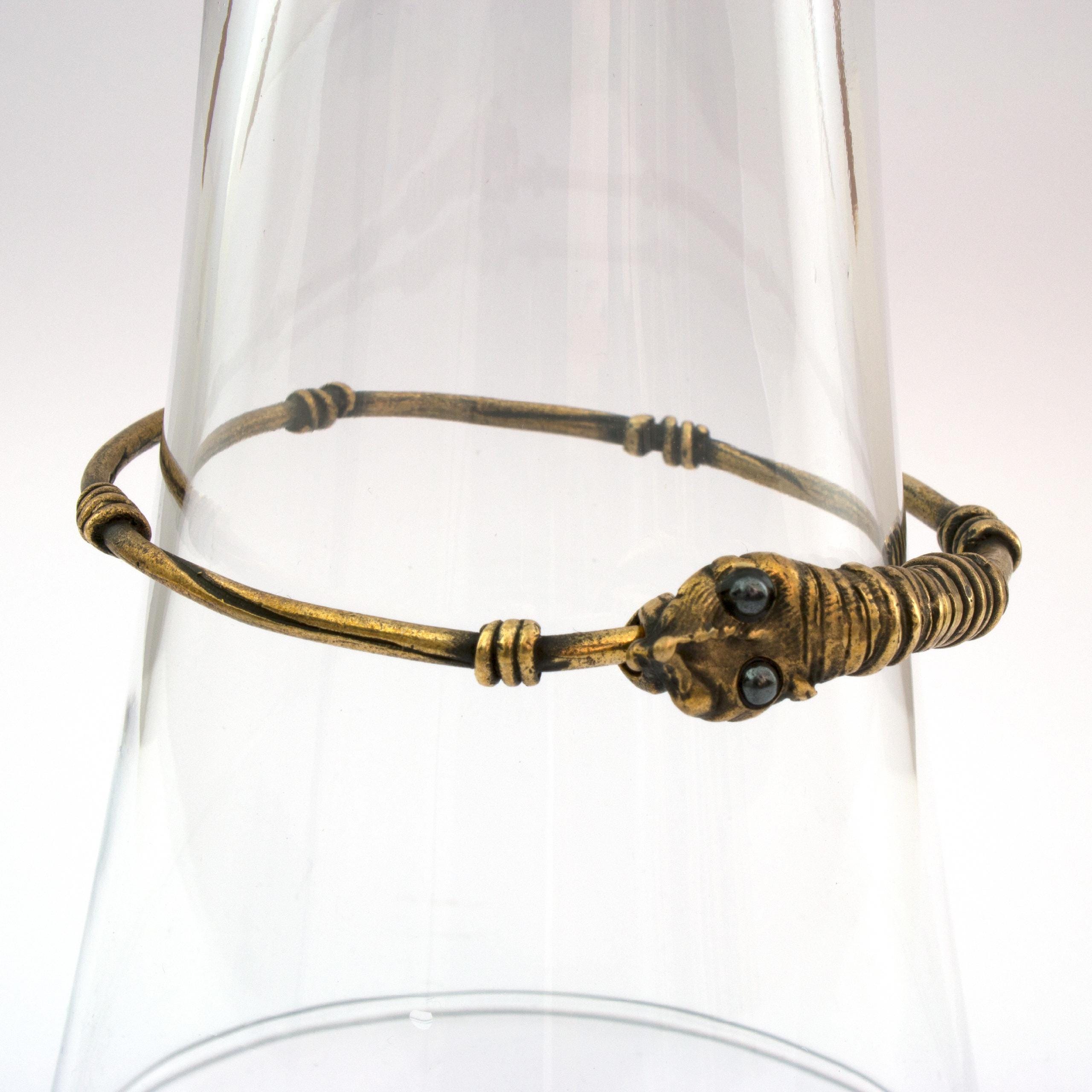 Bronze Bracelet with Hematite by Vojtěška Vlčková Catalogue number: 077 Original title: Žížala Author: Vojtěška Vlčková Production: Jaromíra Pavlíková Material: bronze Technology: lost wax casting