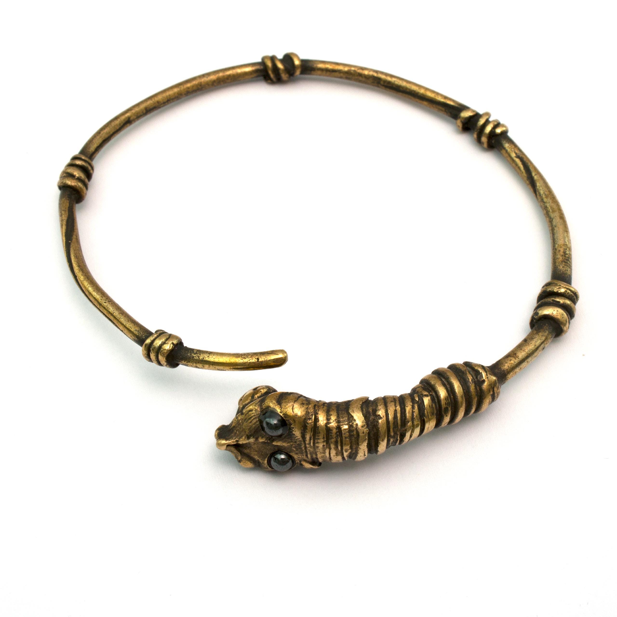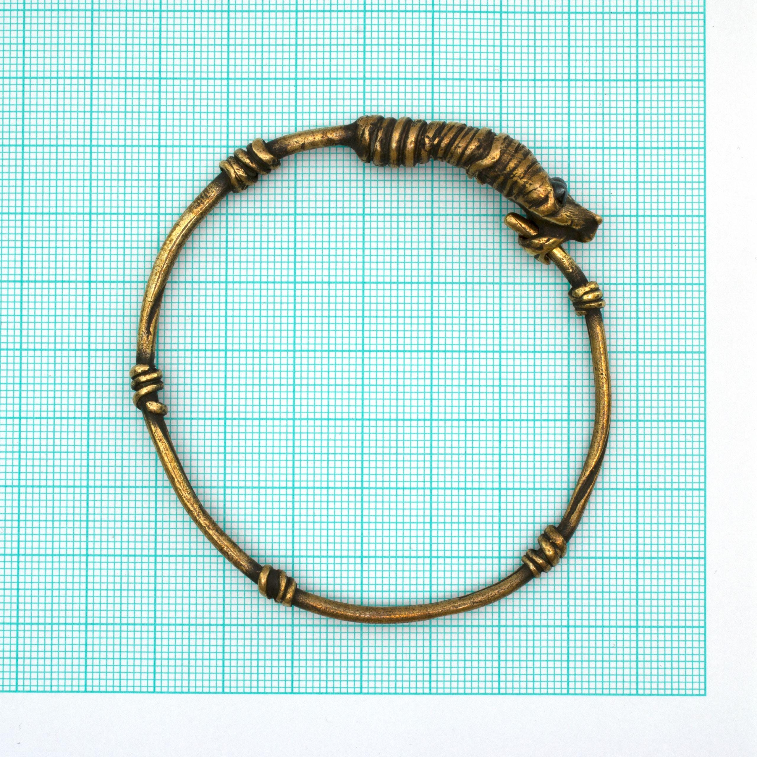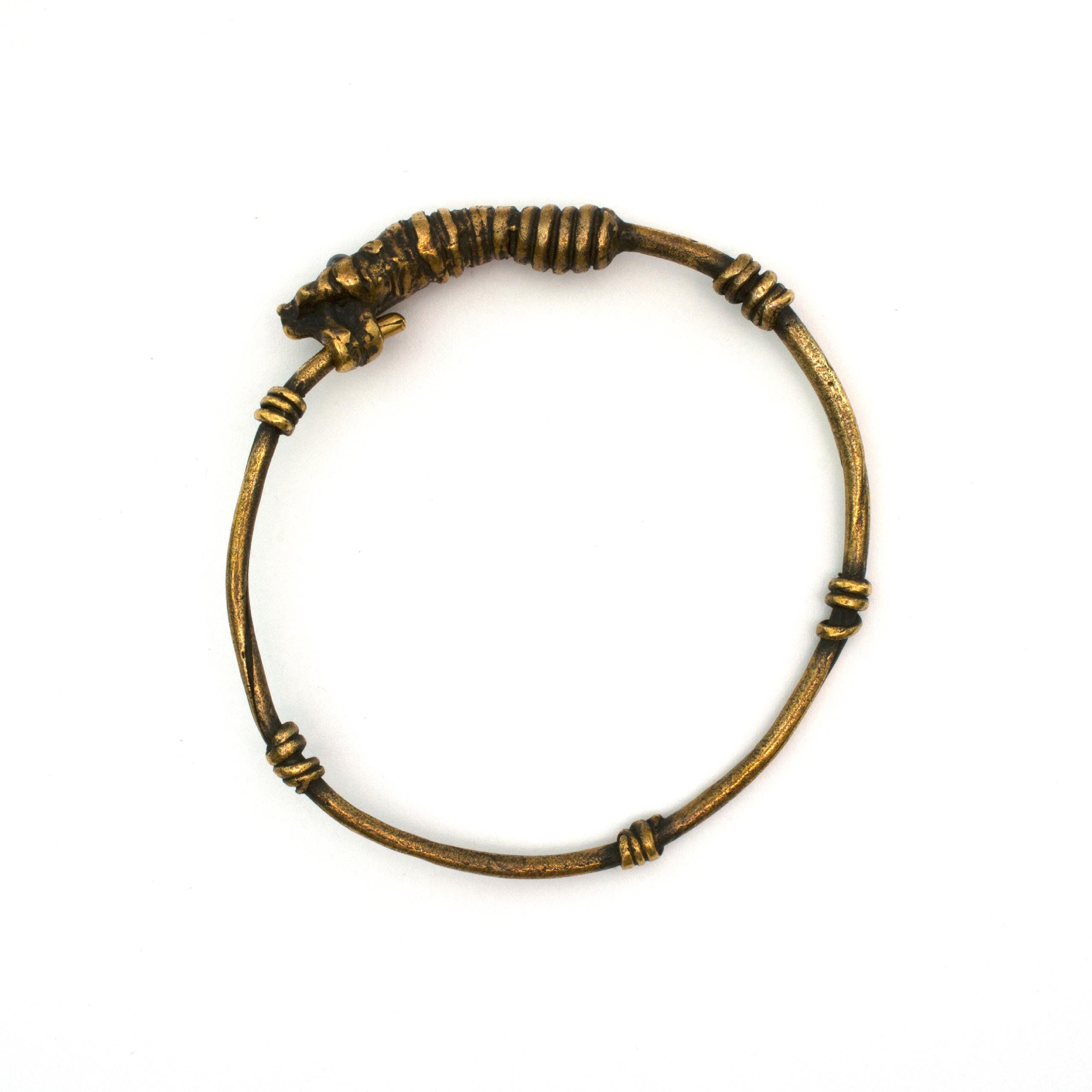 Bronze Bracelet with Hematite by Vojtěška Vlčková Catalogue number: 077 Original title: Žížala Author: Vojtěška Vlčková Production: Jaromíra Pavlíková Material: bronze Technology: lost wax casting