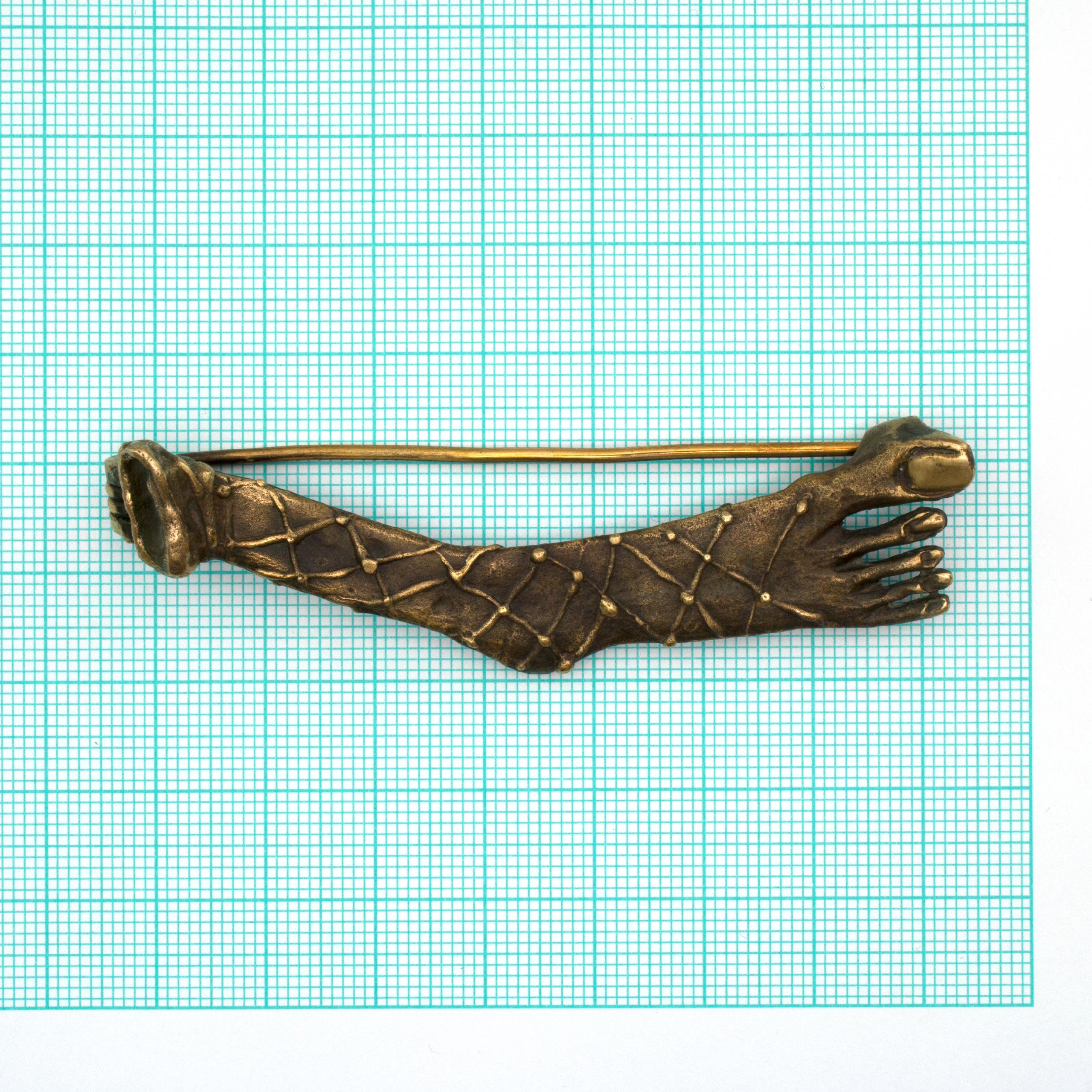 Bronze Brooch by Vojtěška Vlčková Catalogue number: 087 Original title: Noha Author: Vojtěška Vlčková Production: Jaromíra Pavlíková Material: bronze Technology: lost wax casting
