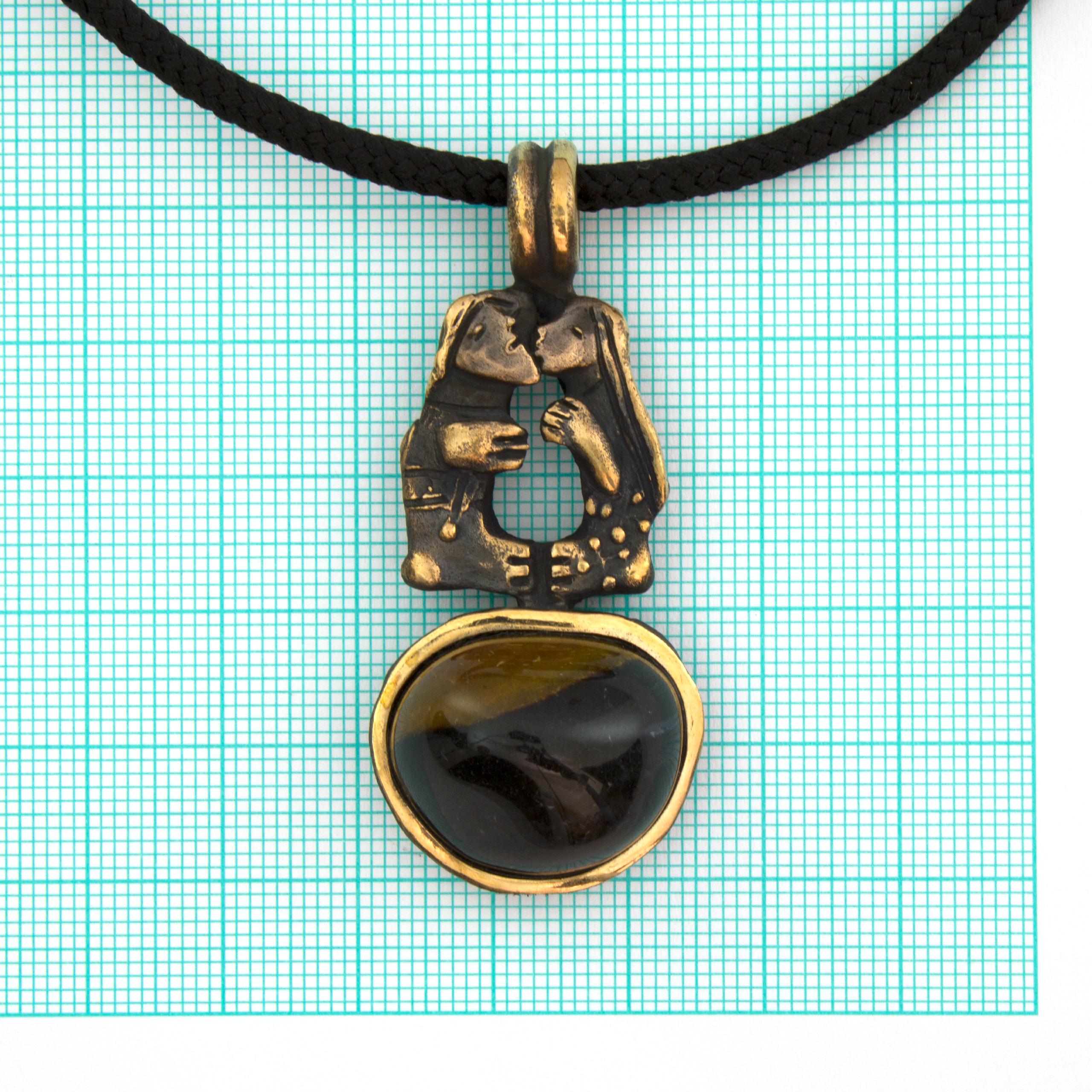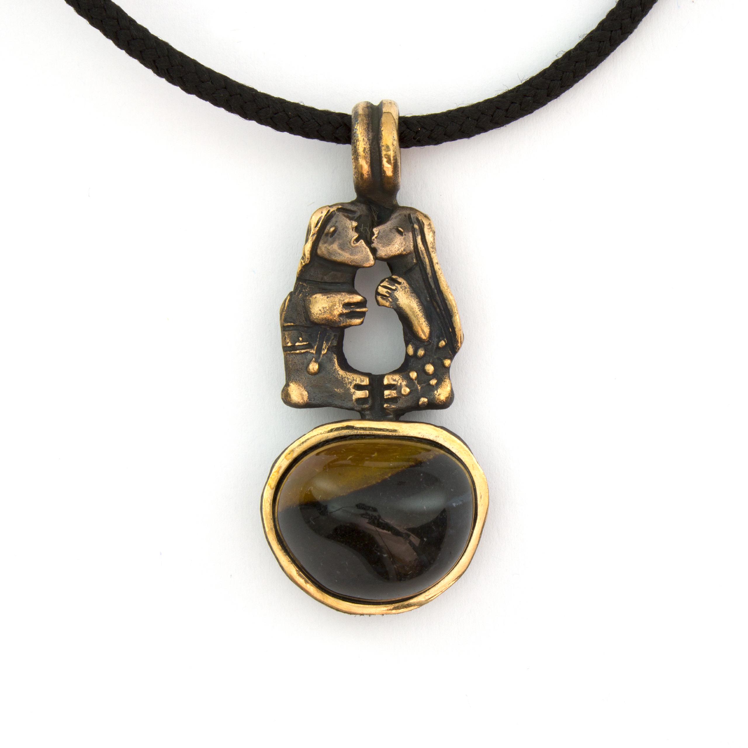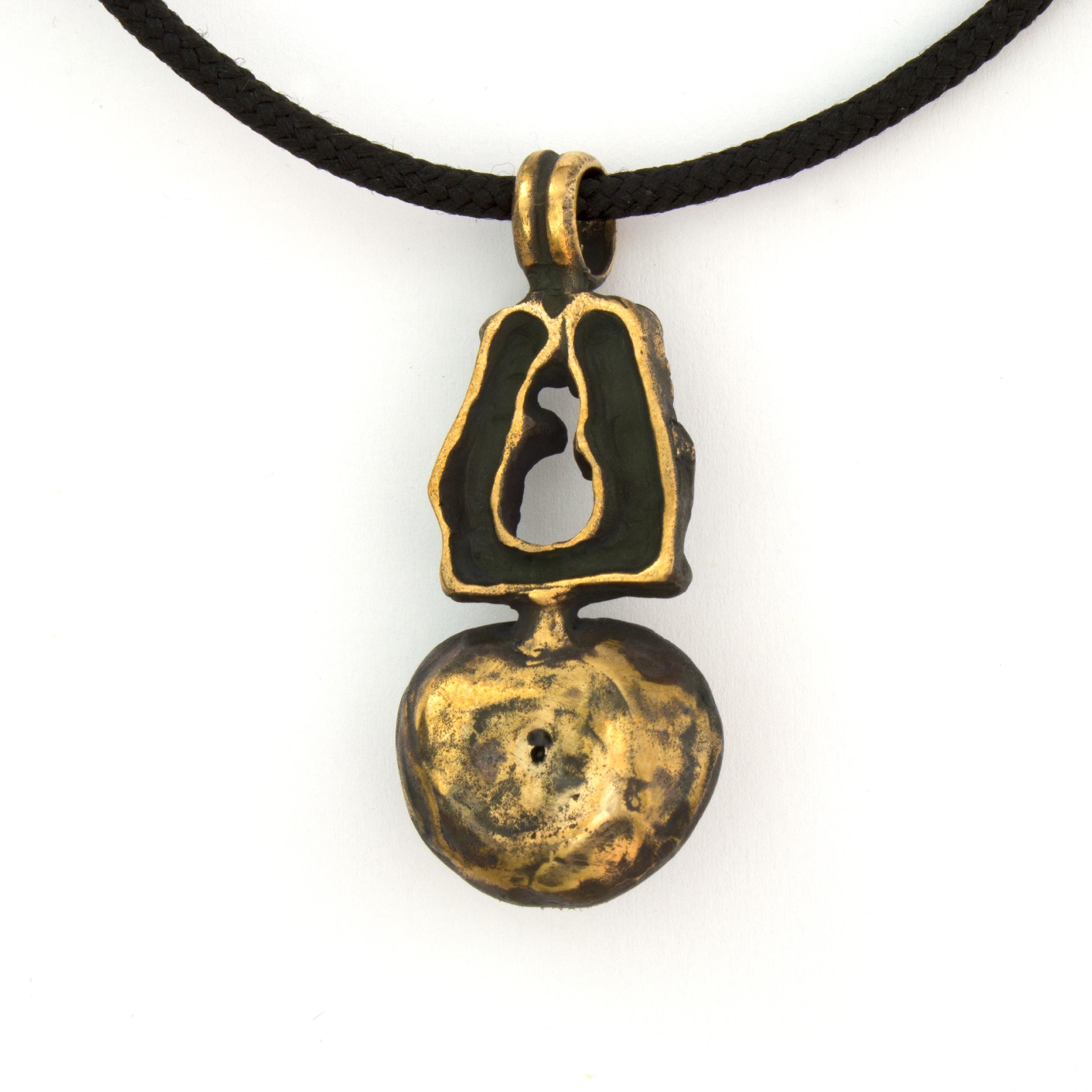 Bronze Pendant Necklace with Jasper by Vojtěška Vlčková Catalogue number: 097 Original title: Tristan a Isolda Author: Vojtěška Vlčková Production: Jaromíra Pavlíková Material: bronze Technology: lost wax casting