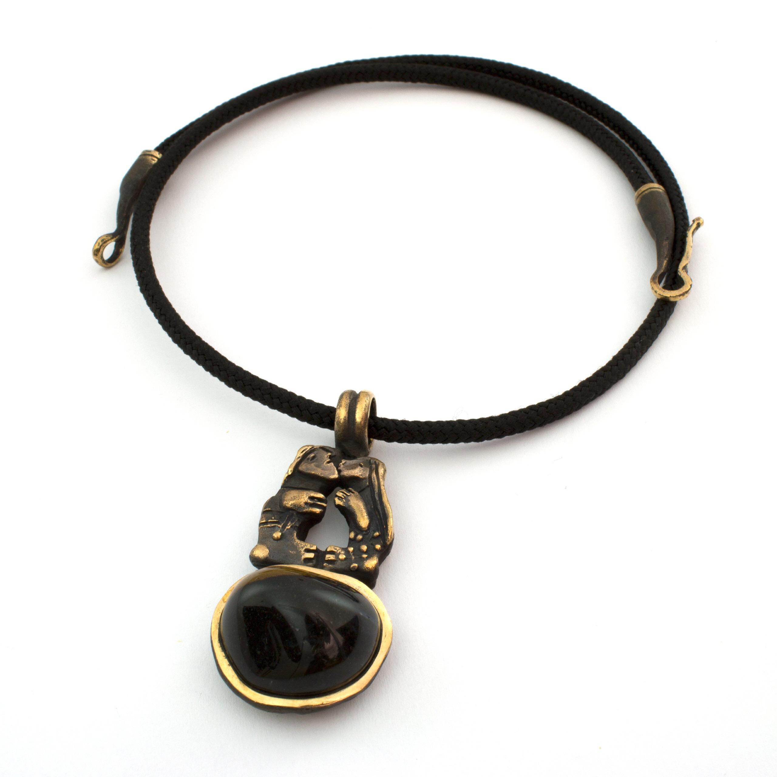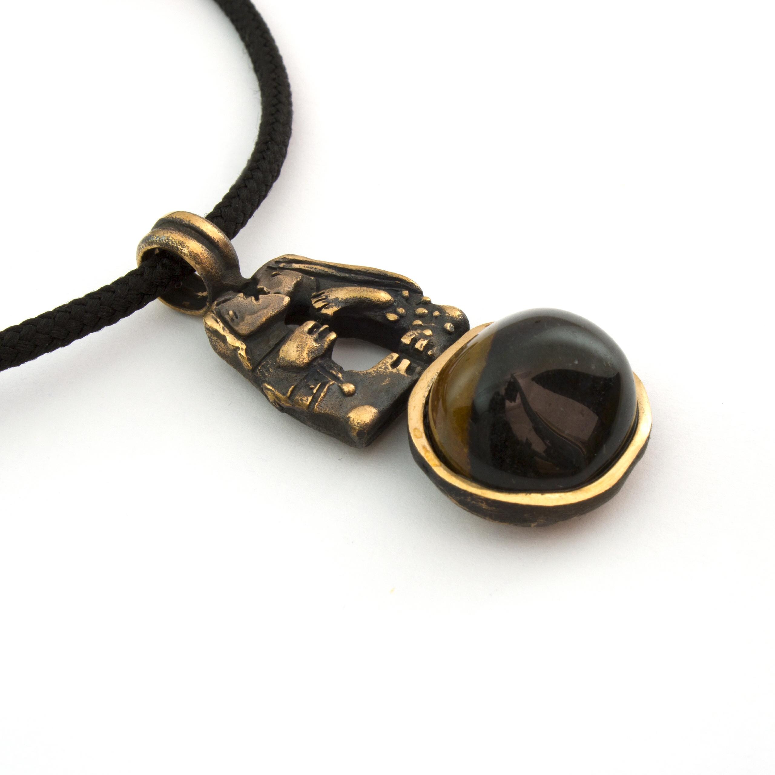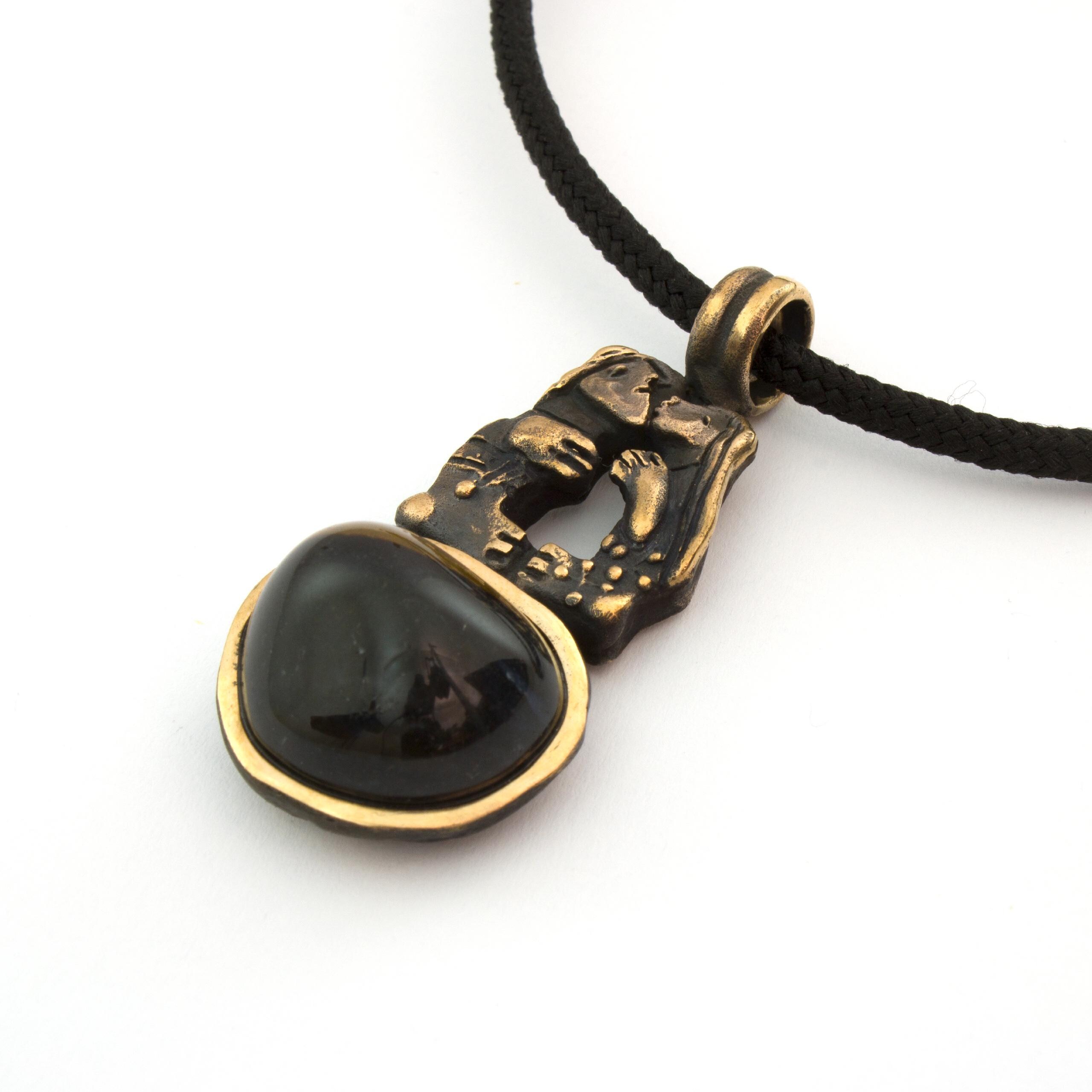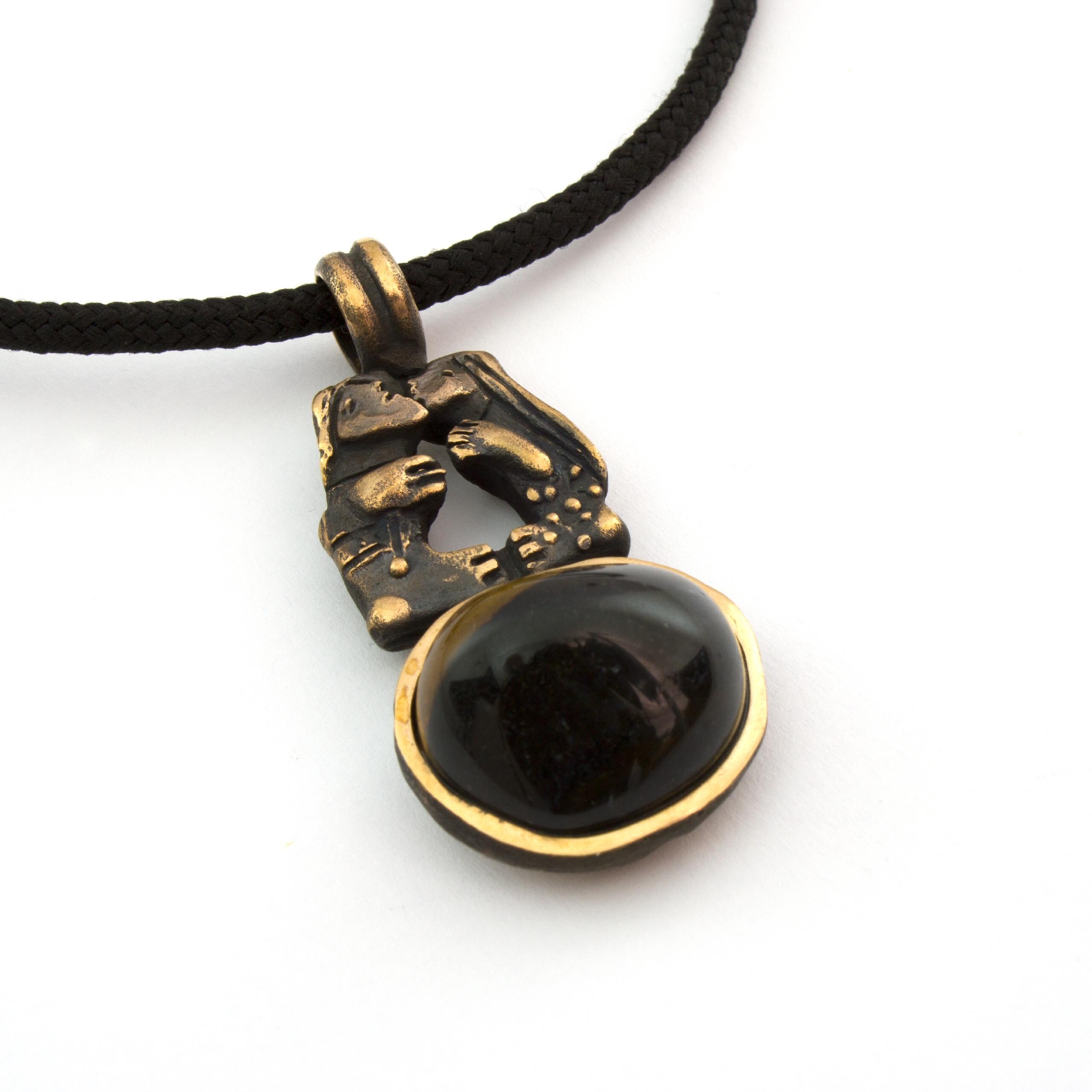 Bronze Pendant Necklace with Jasper by Vojtěška Vlčková Catalogue number: 097 Original title: Tristan a Isolda Author: Vojtěška Vlčková Production: Jaromíra Pavlíková Material: bronze Technology: lost wax casting