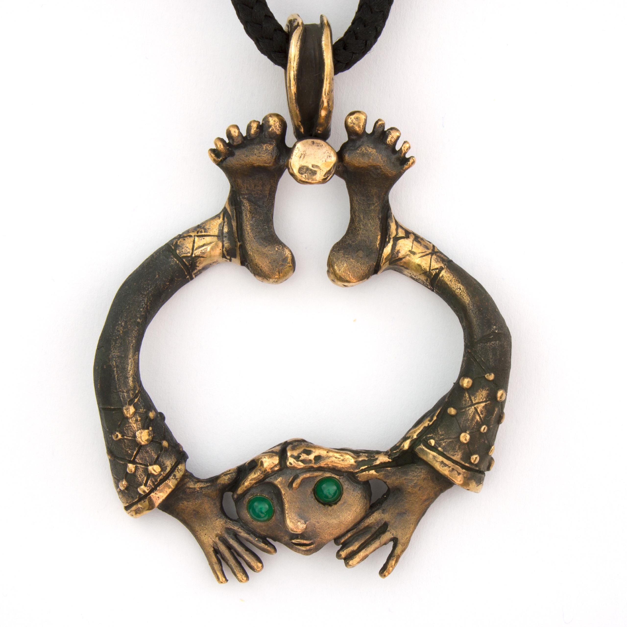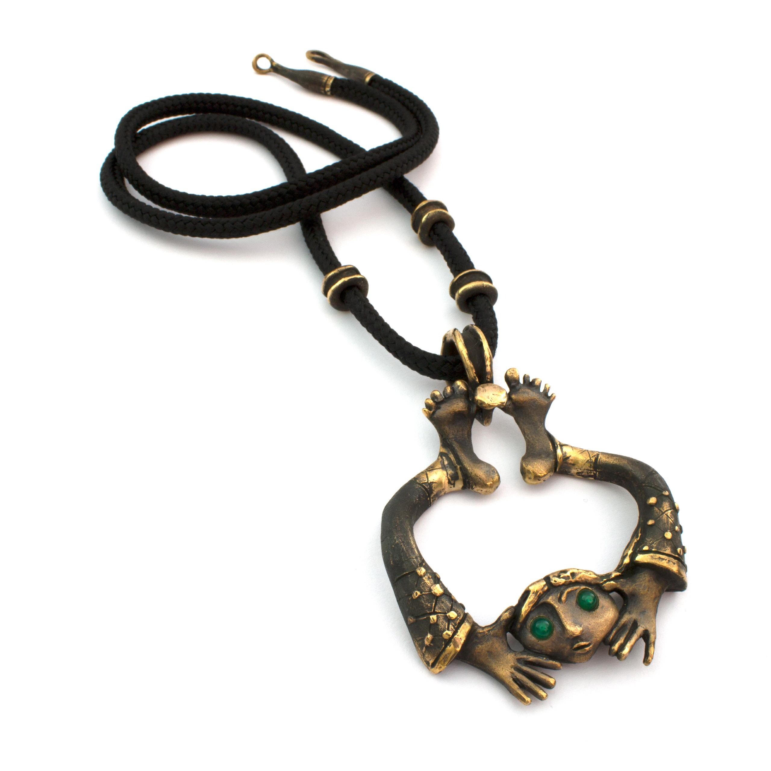 Bronze Pendant Necklace with Chrysoprase by Vojtěška Vlčková
