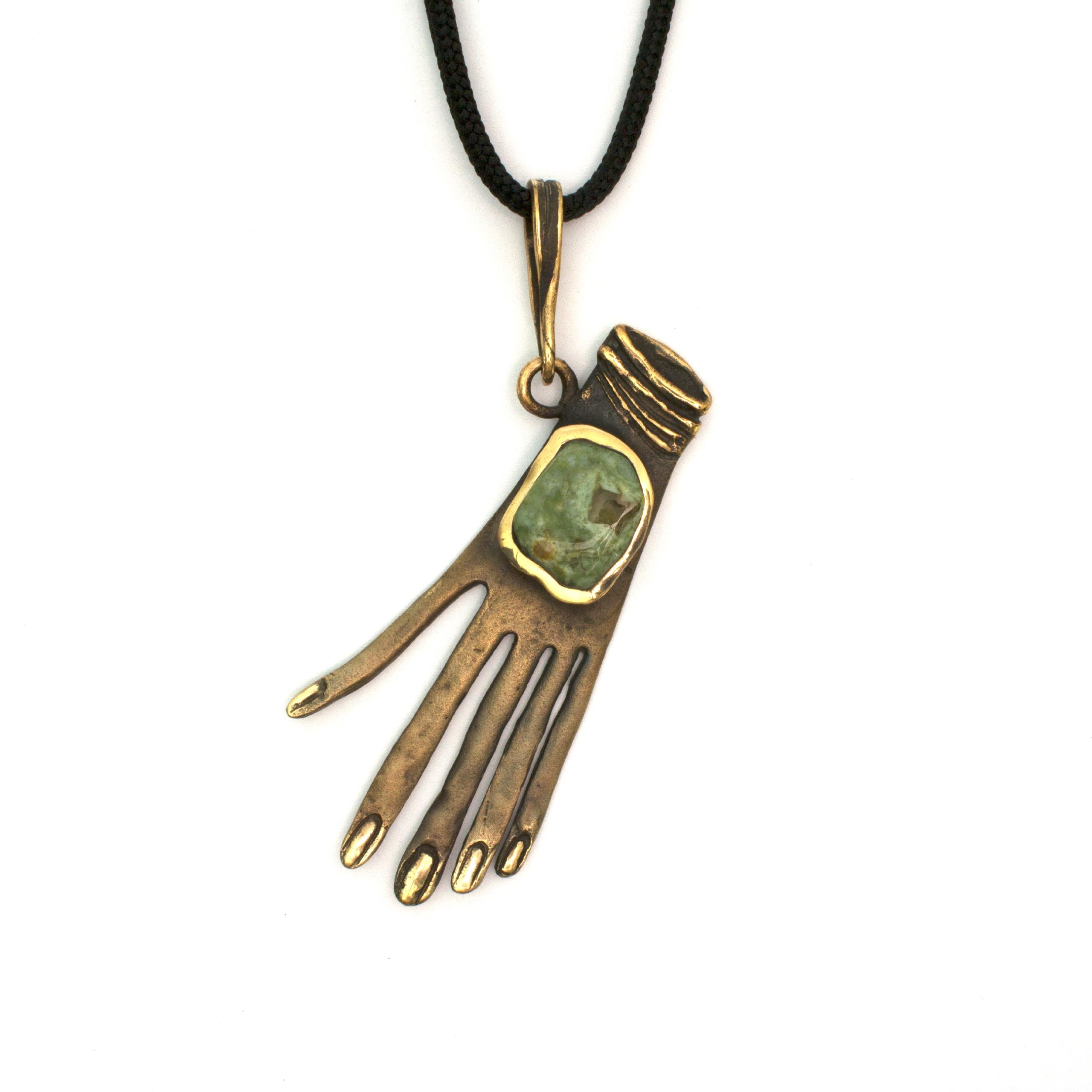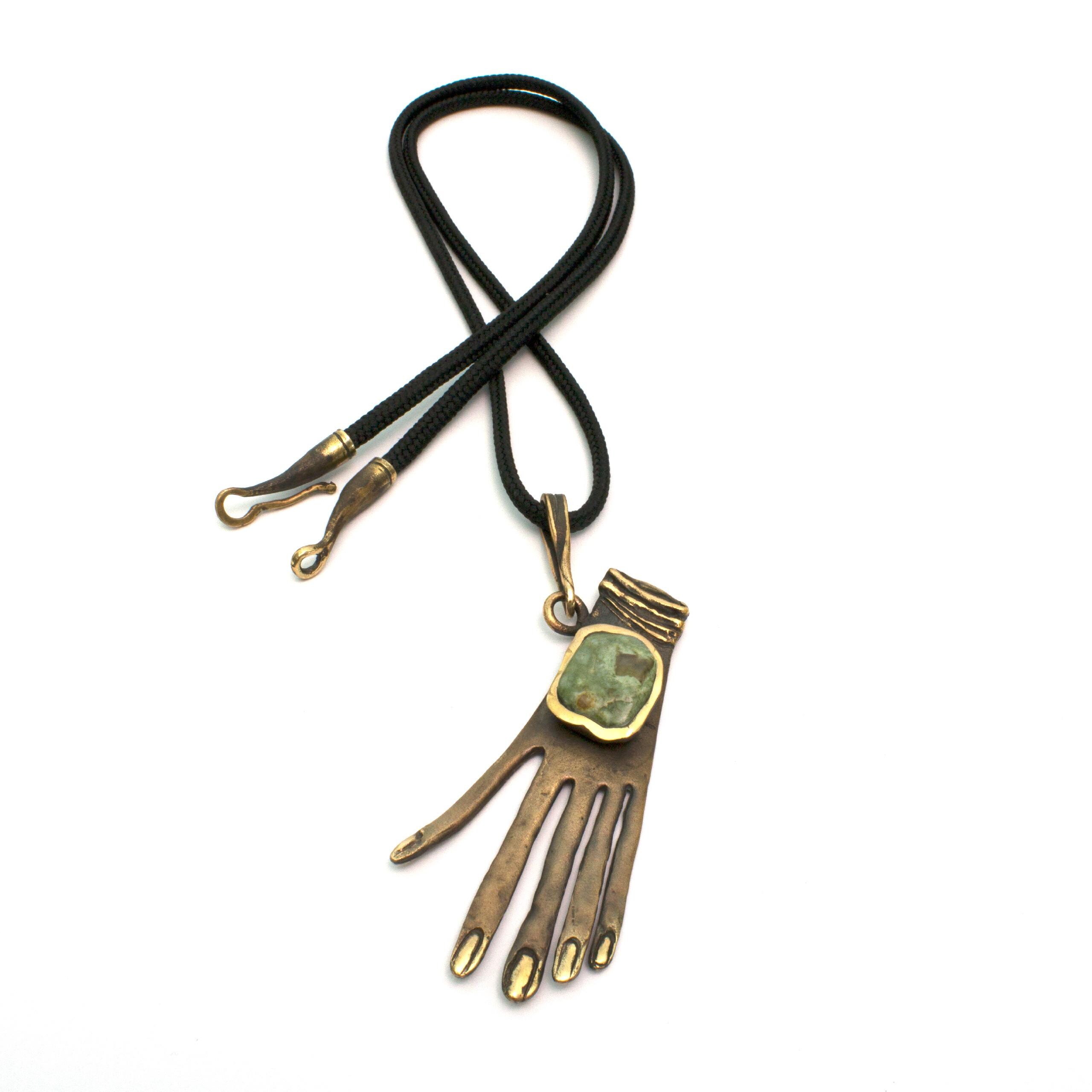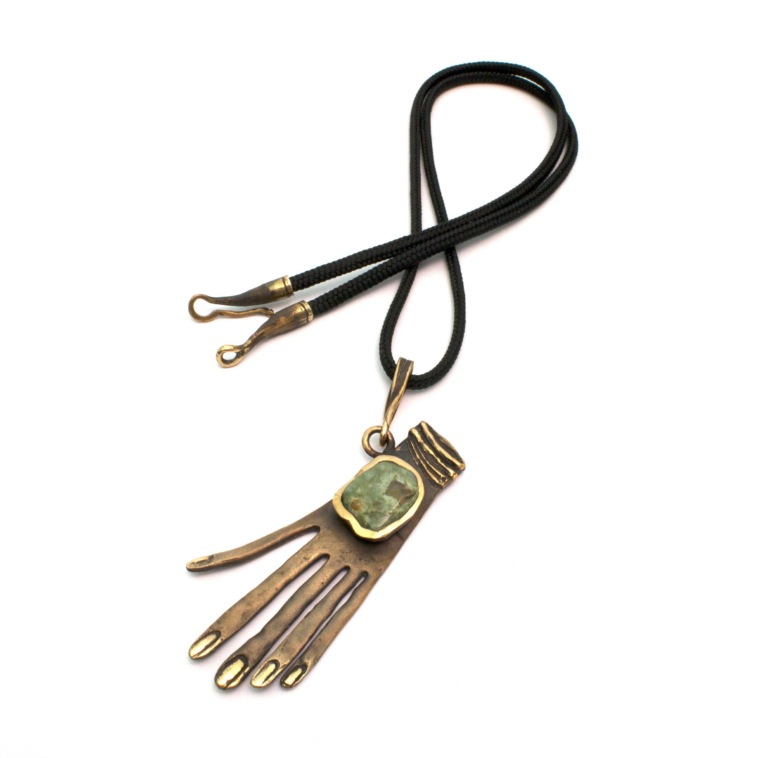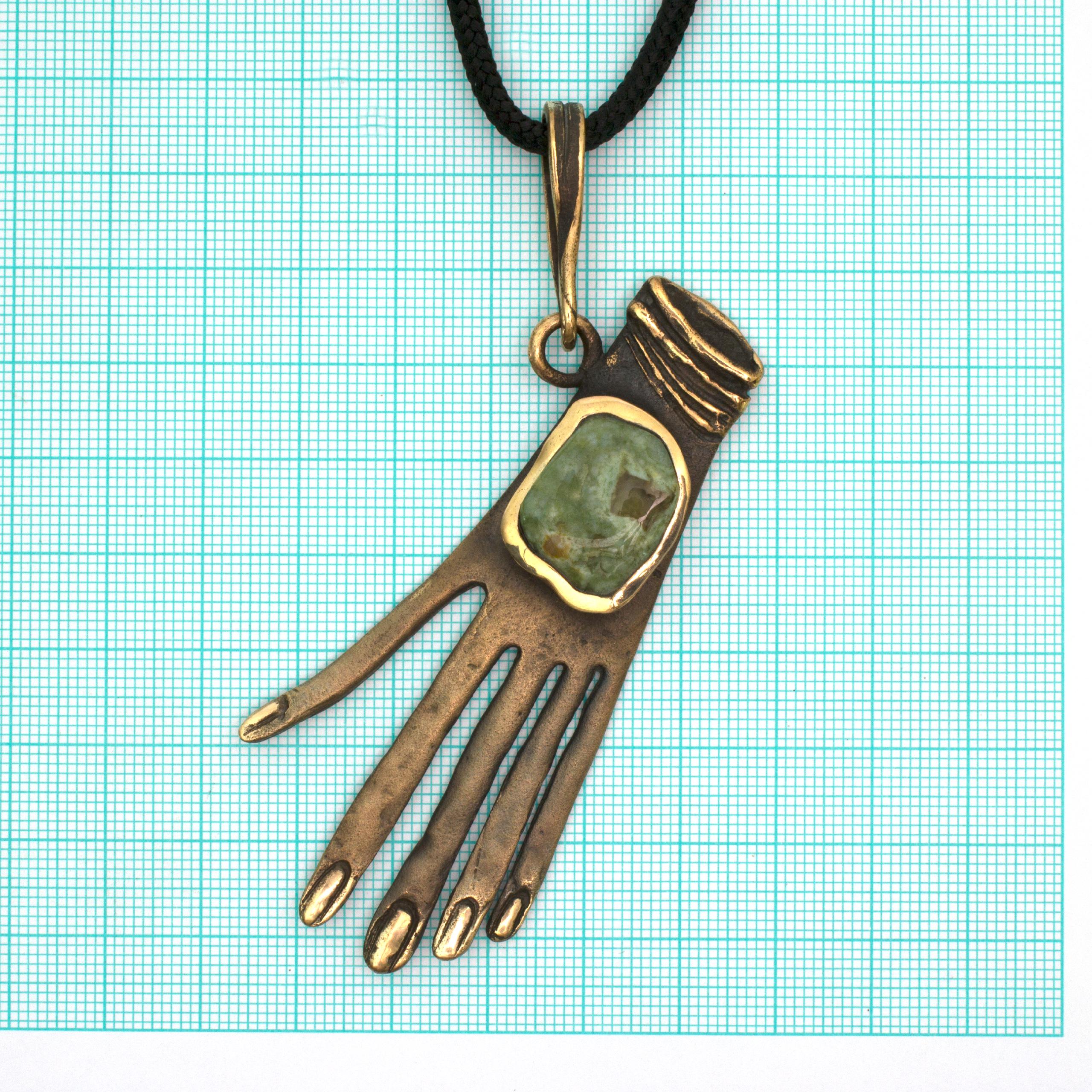 Bronze Pendant Necklace with Jasper by Vojtěška Vlčková Catalogue number: 137 Original title: Ruka Author: Vojtěška Vlčková Production: Jaromíra Pavlíková Material: bronze Technology: lost wax casting