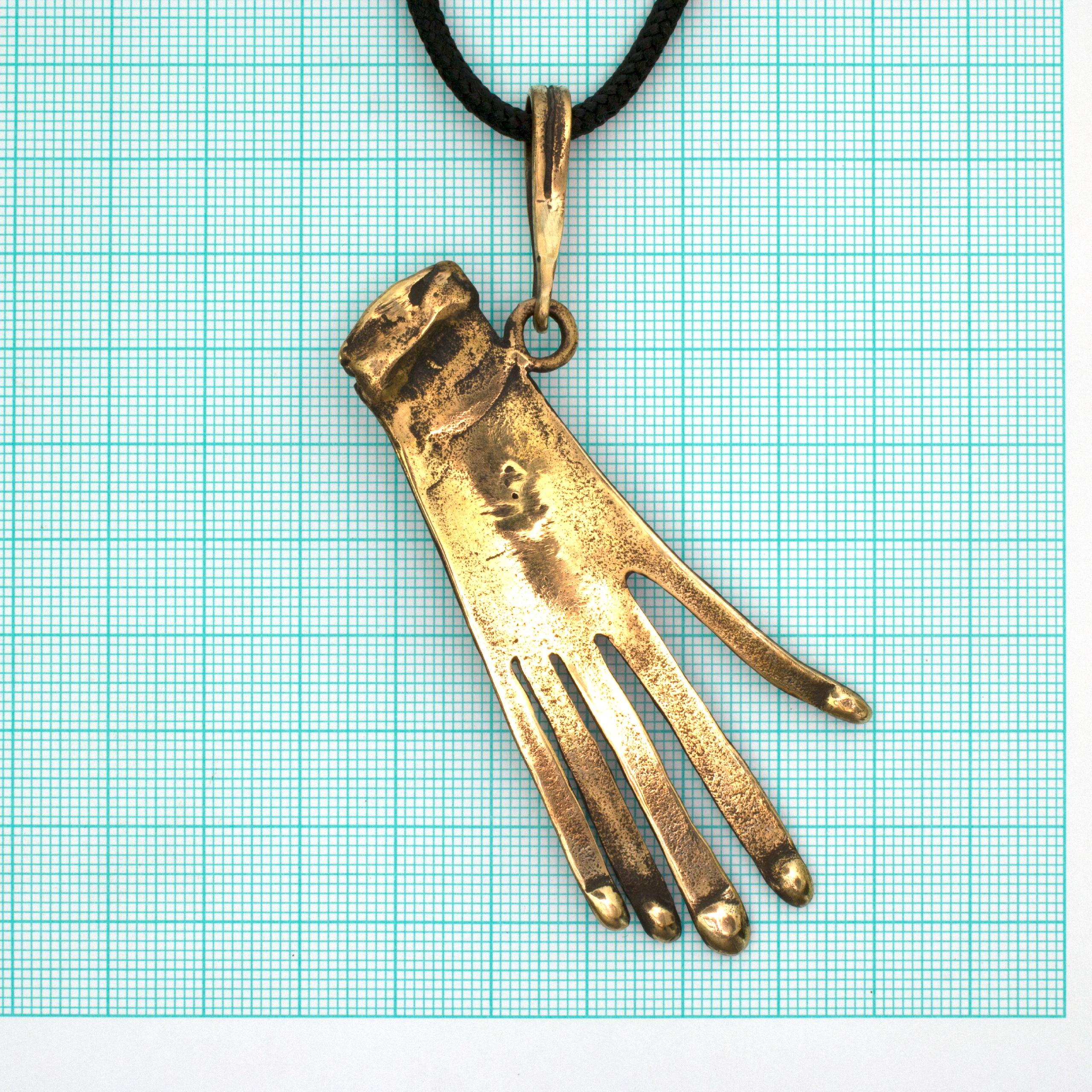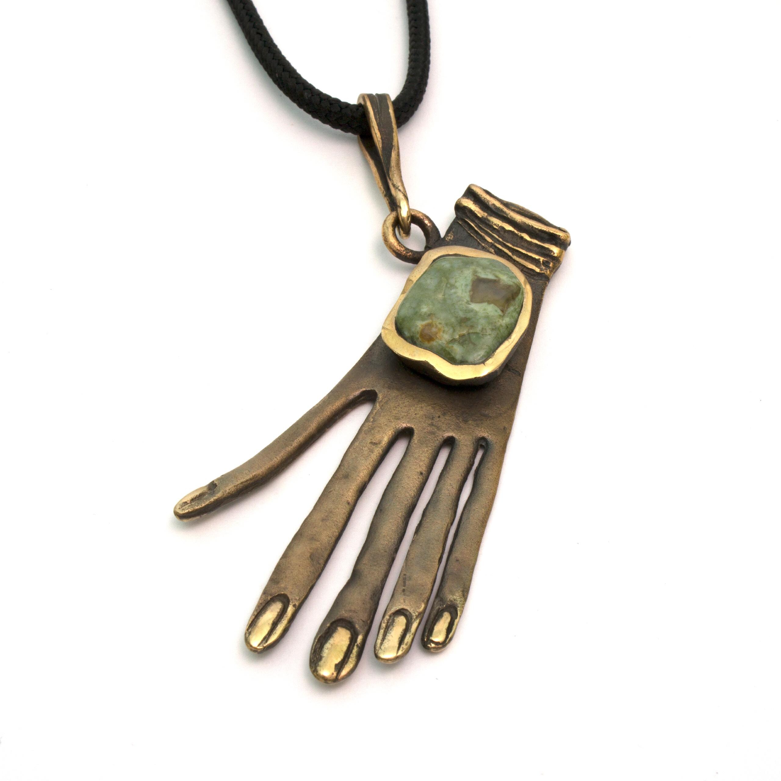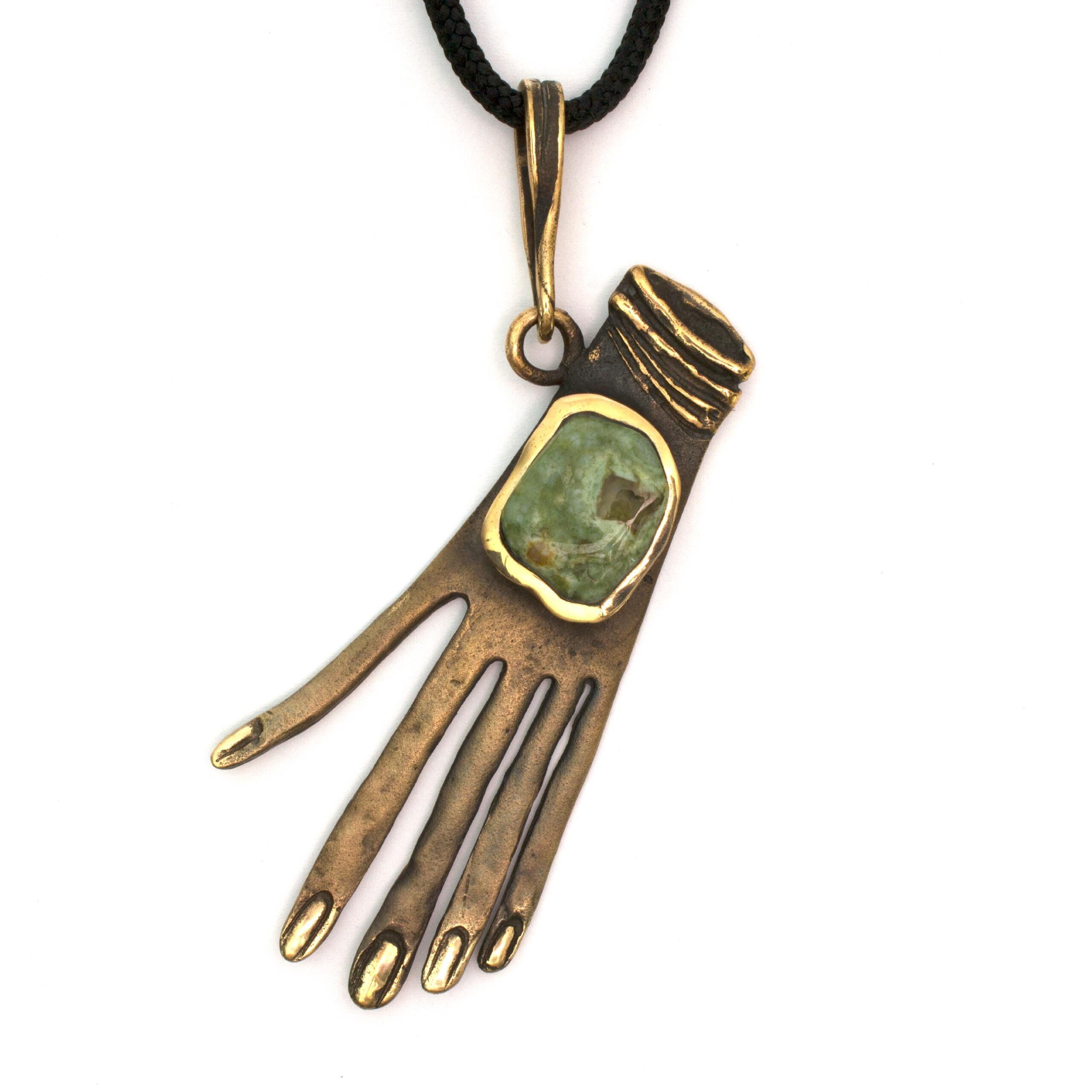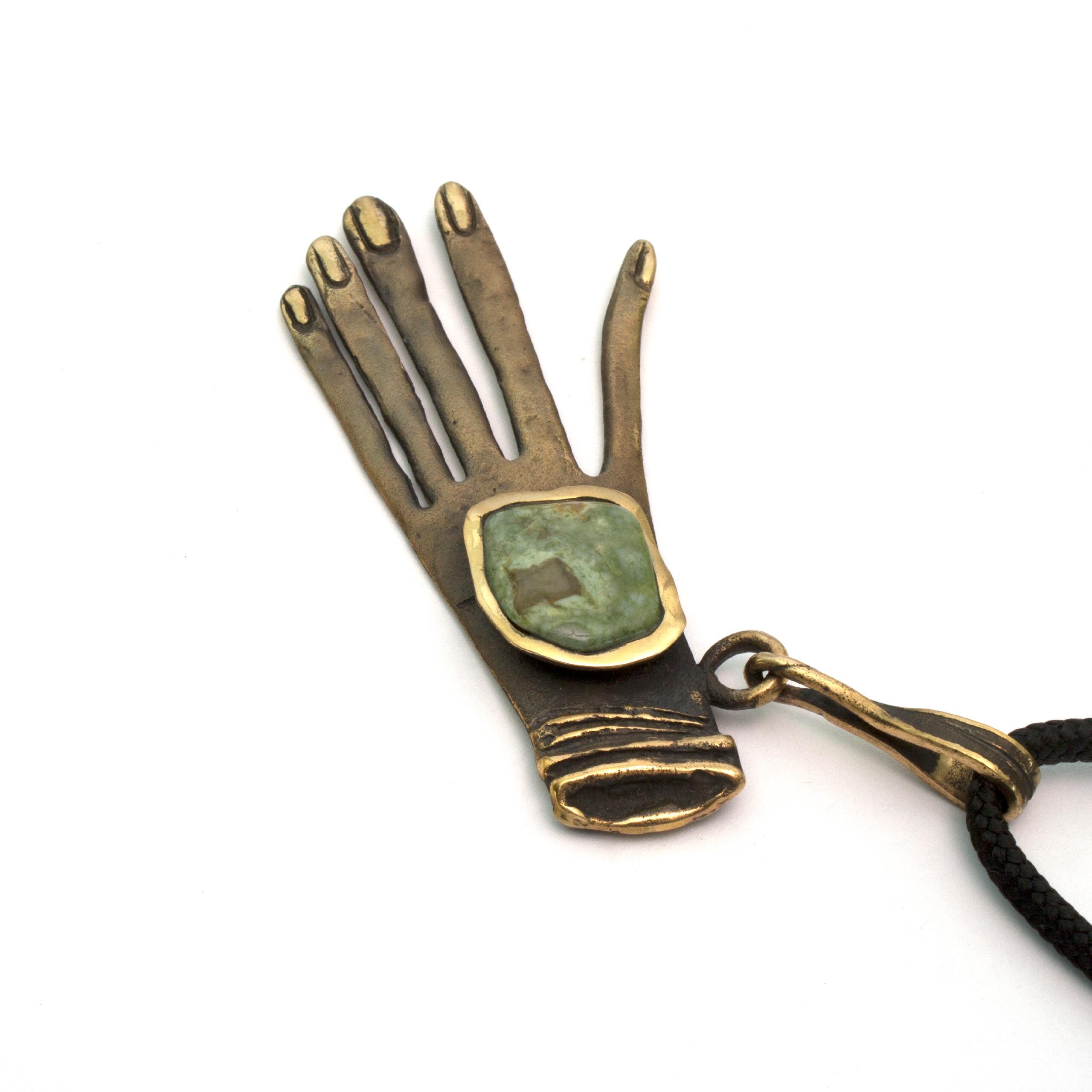 Bronze Pendant Necklace with Jasper by Vojtěška Vlčková Catalogue number: 137 Original title: Ruka Author: Vojtěška Vlčková Production: Jaromíra Pavlíková Material: bronze Technology: lost wax casting