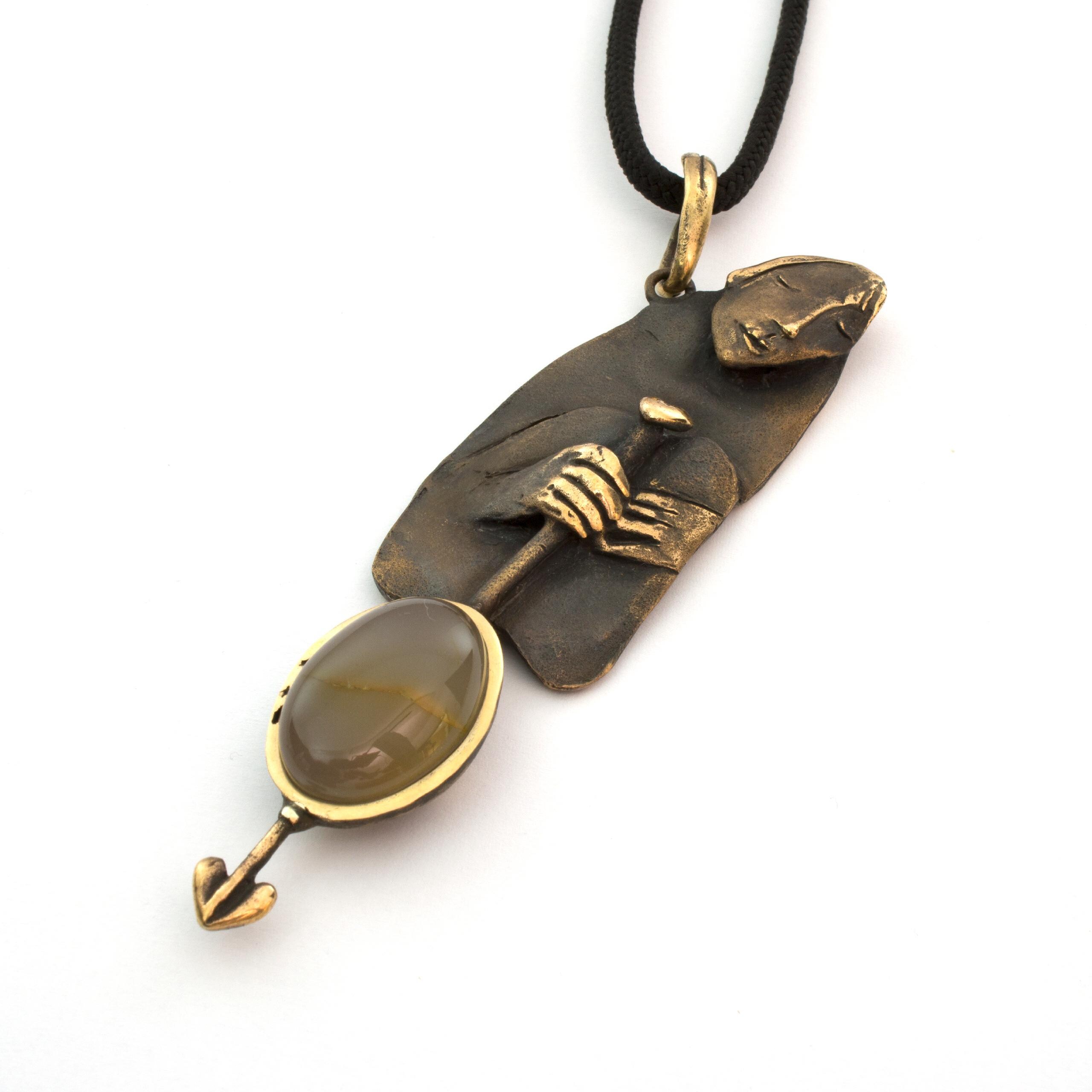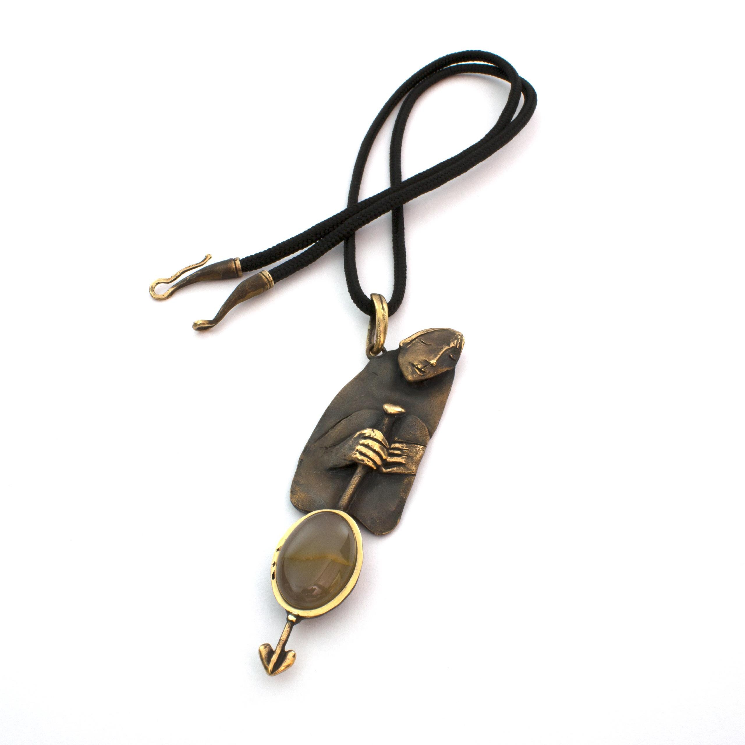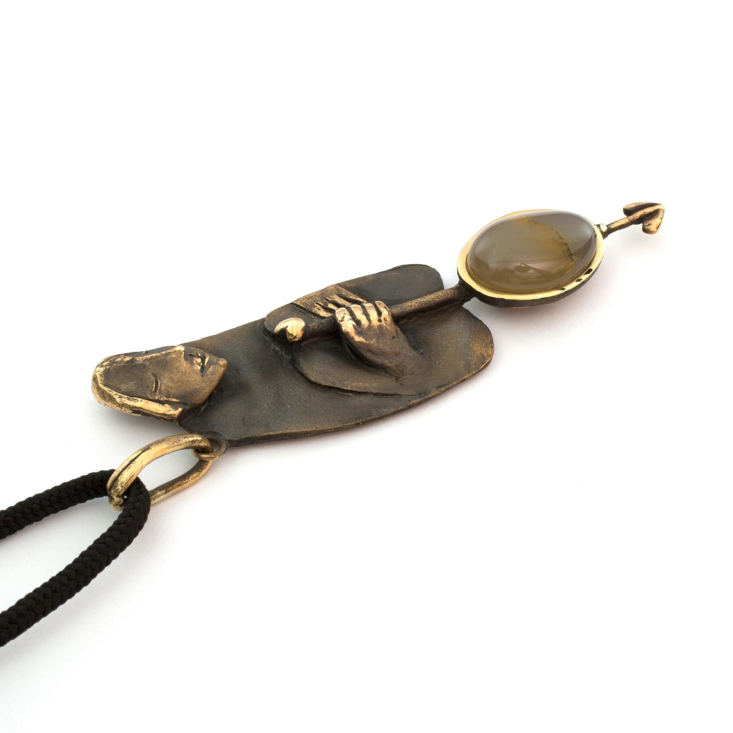 Bronze Pendant Necklace with Agate by Vojtěška Vlčková Catalogue number: 150 Original title: Bloud Author: Vojtěška Vlčková Production: Jaromíra Pavlíková Material: bronze Technology: lost wax casting