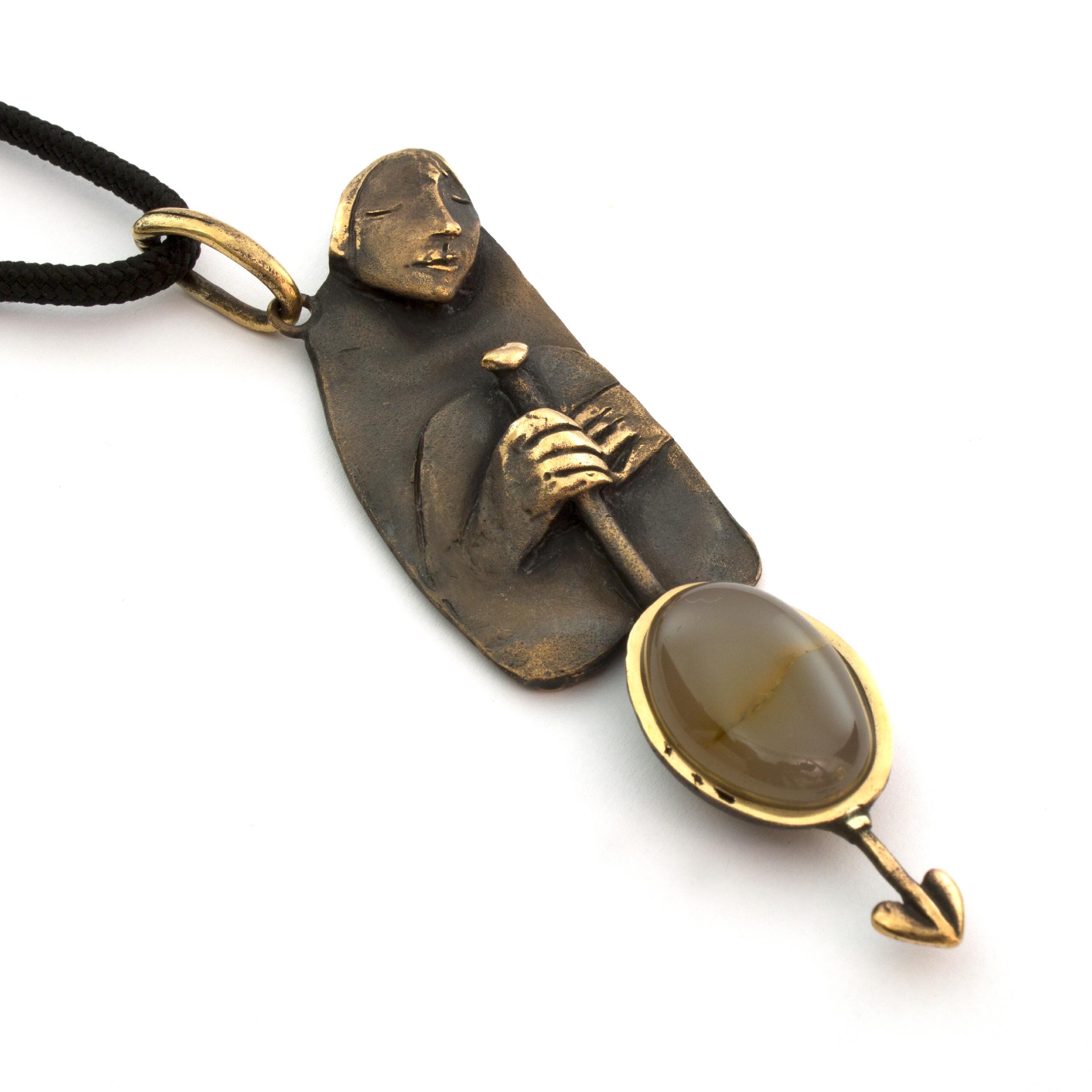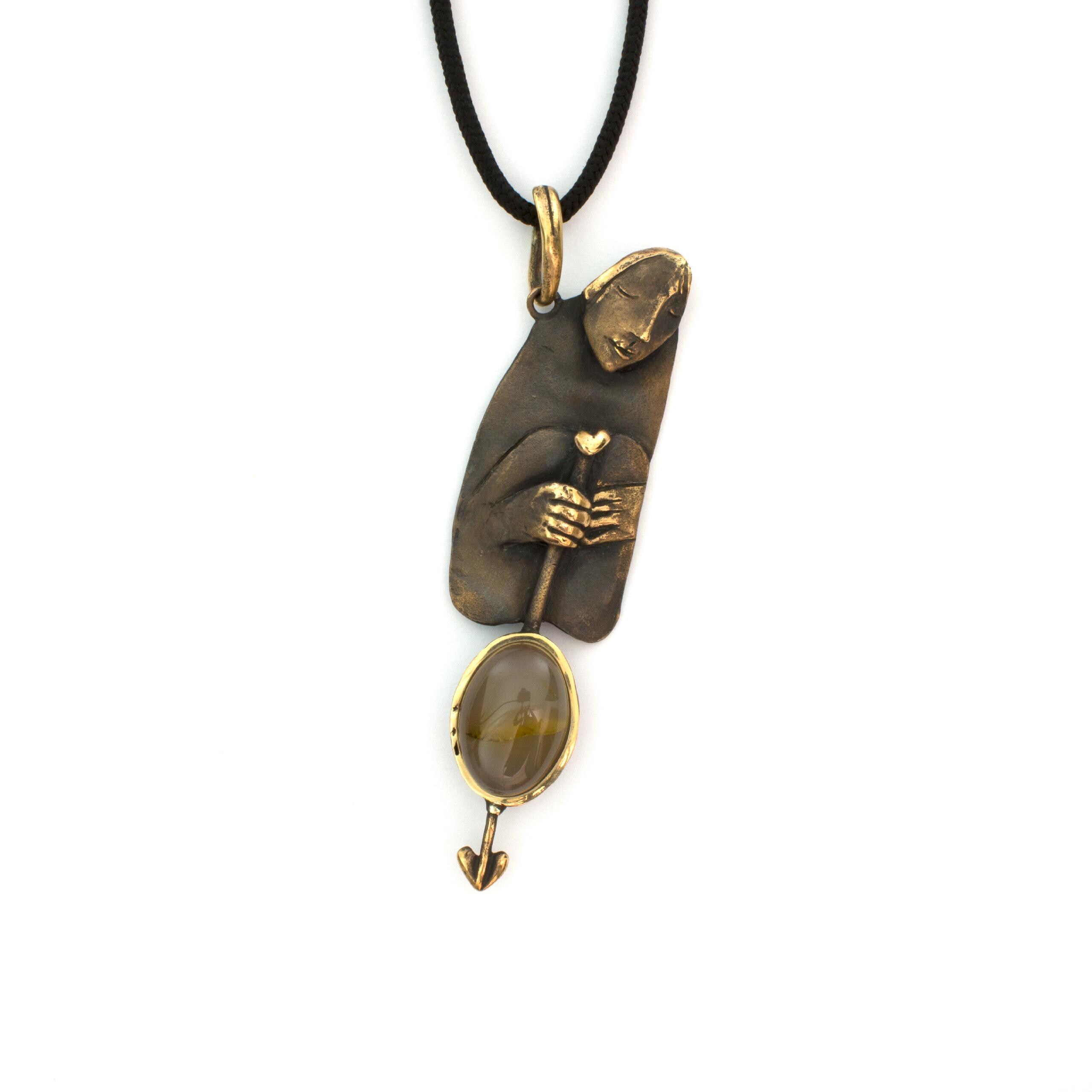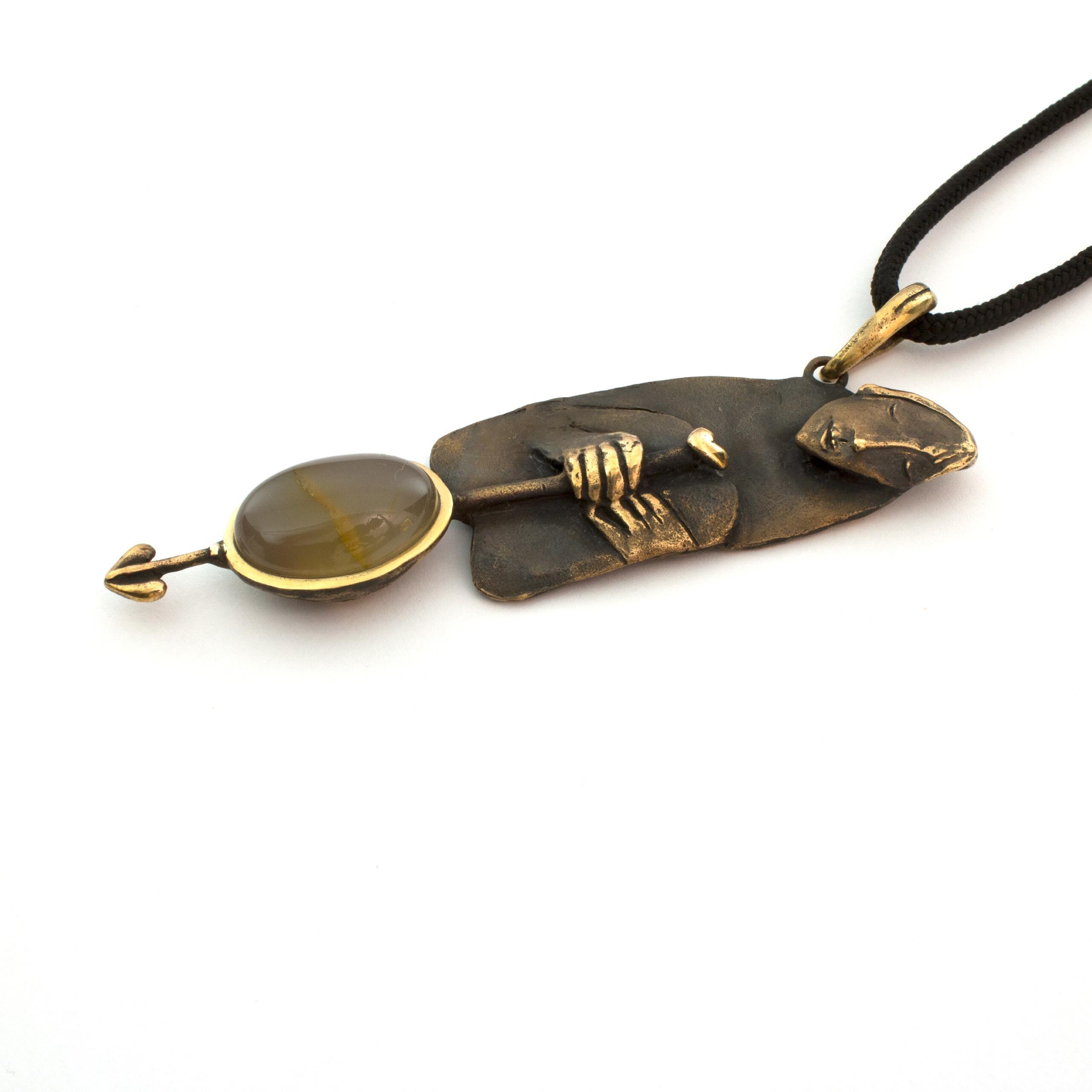 Bronze Pendant Necklace with Agate by Vojtěška Vlčková Catalogue number: 150 Original title: Bloud Author: Vojtěška Vlčková Production: Jaromíra Pavlíková Material: bronze Technology: lost wax casting