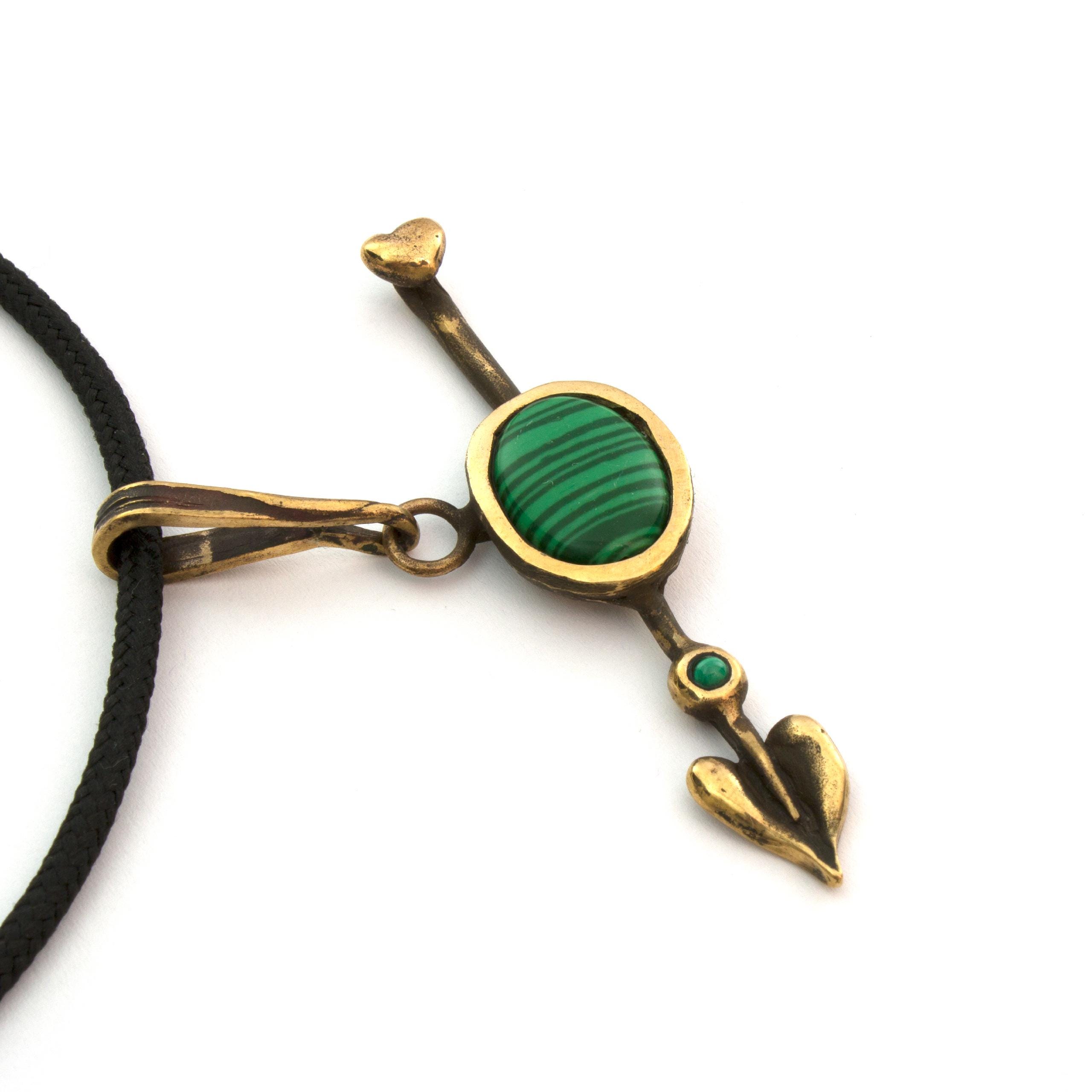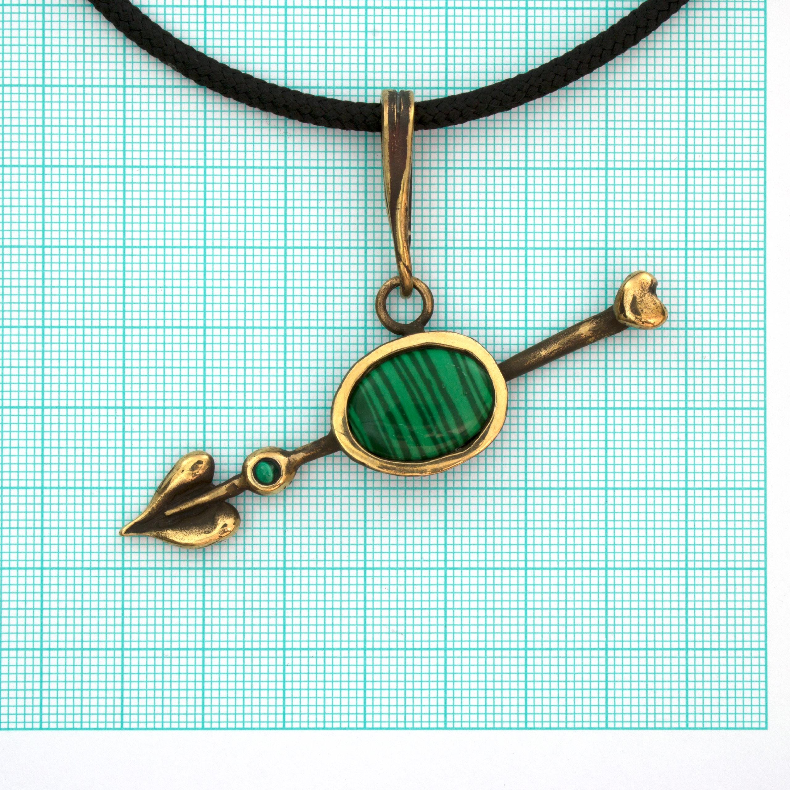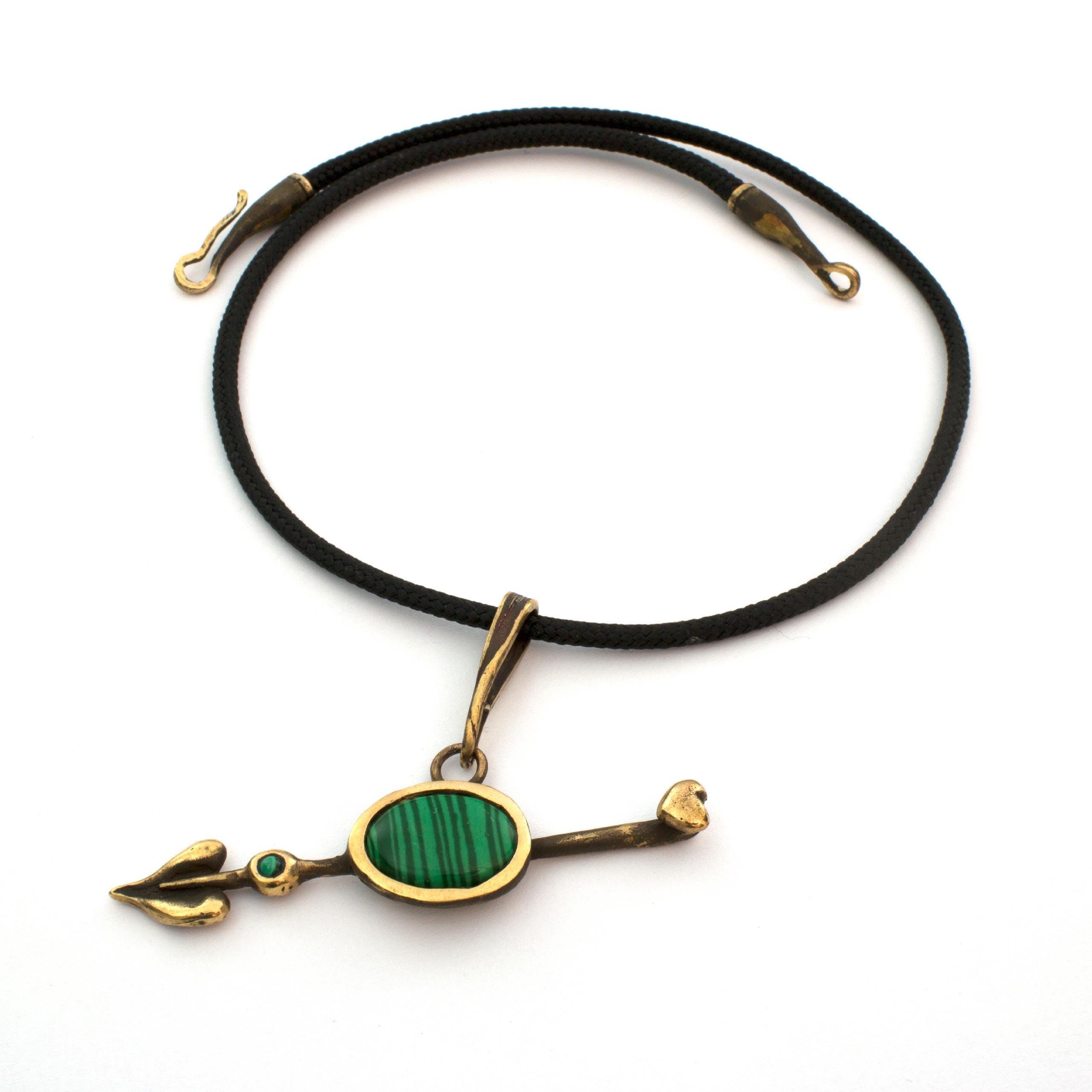 Bronze Pendant Necklace with Malachite by Vojtěška Vlčková Catalogue number: 151 Original title: Šipka Author: Vojtěška Vlčková Production: Jaromíra Pavlíková Material: bronze Technology: lost wax casting