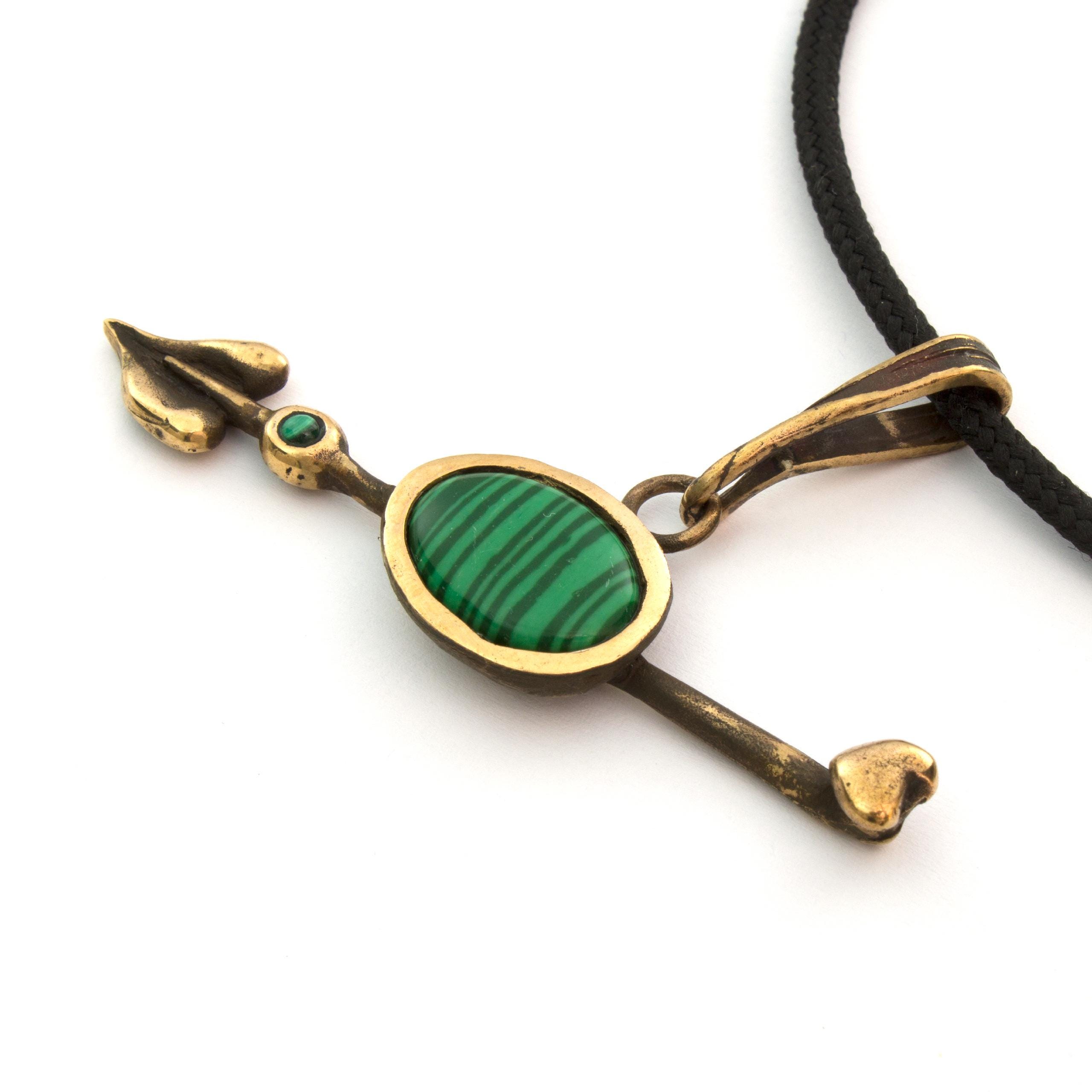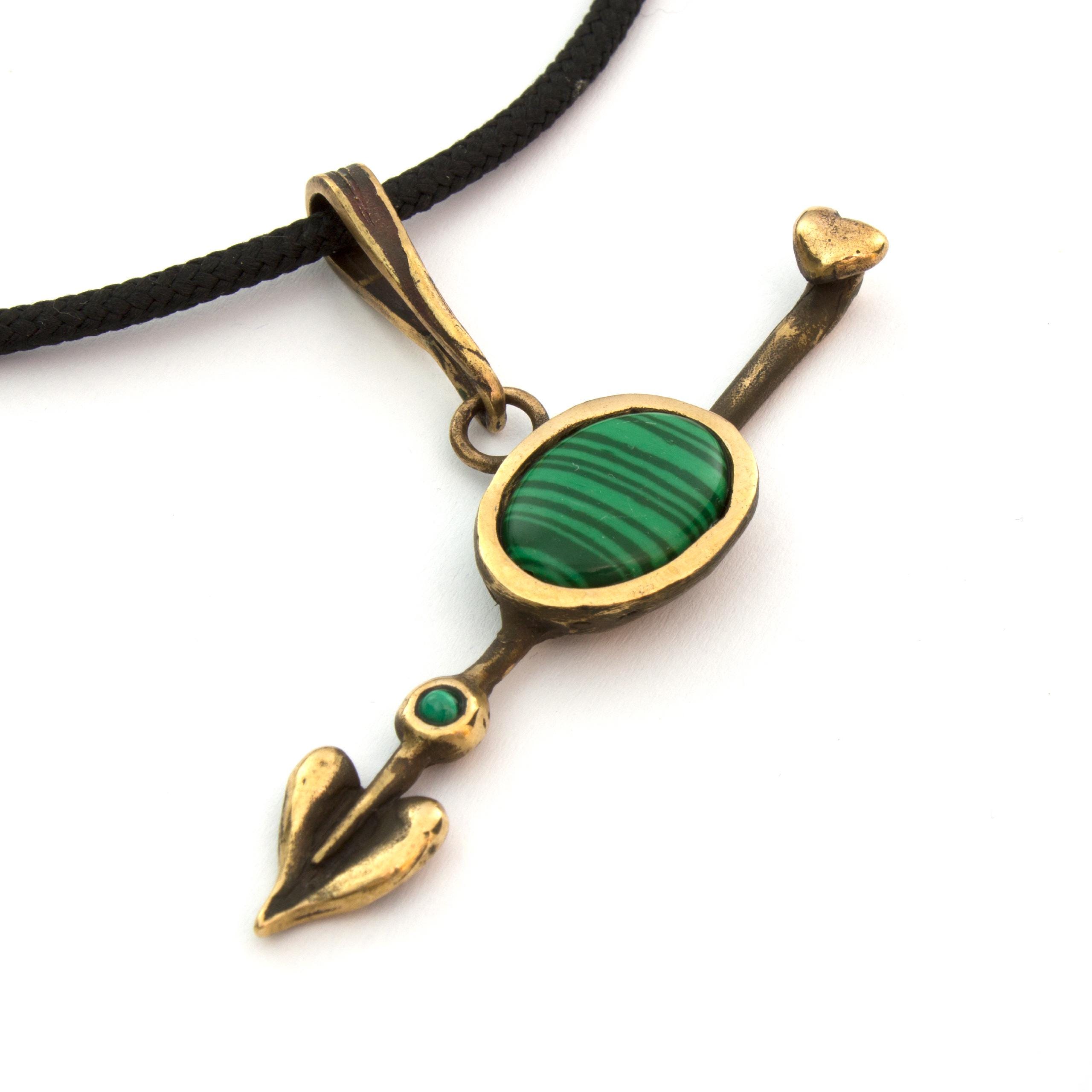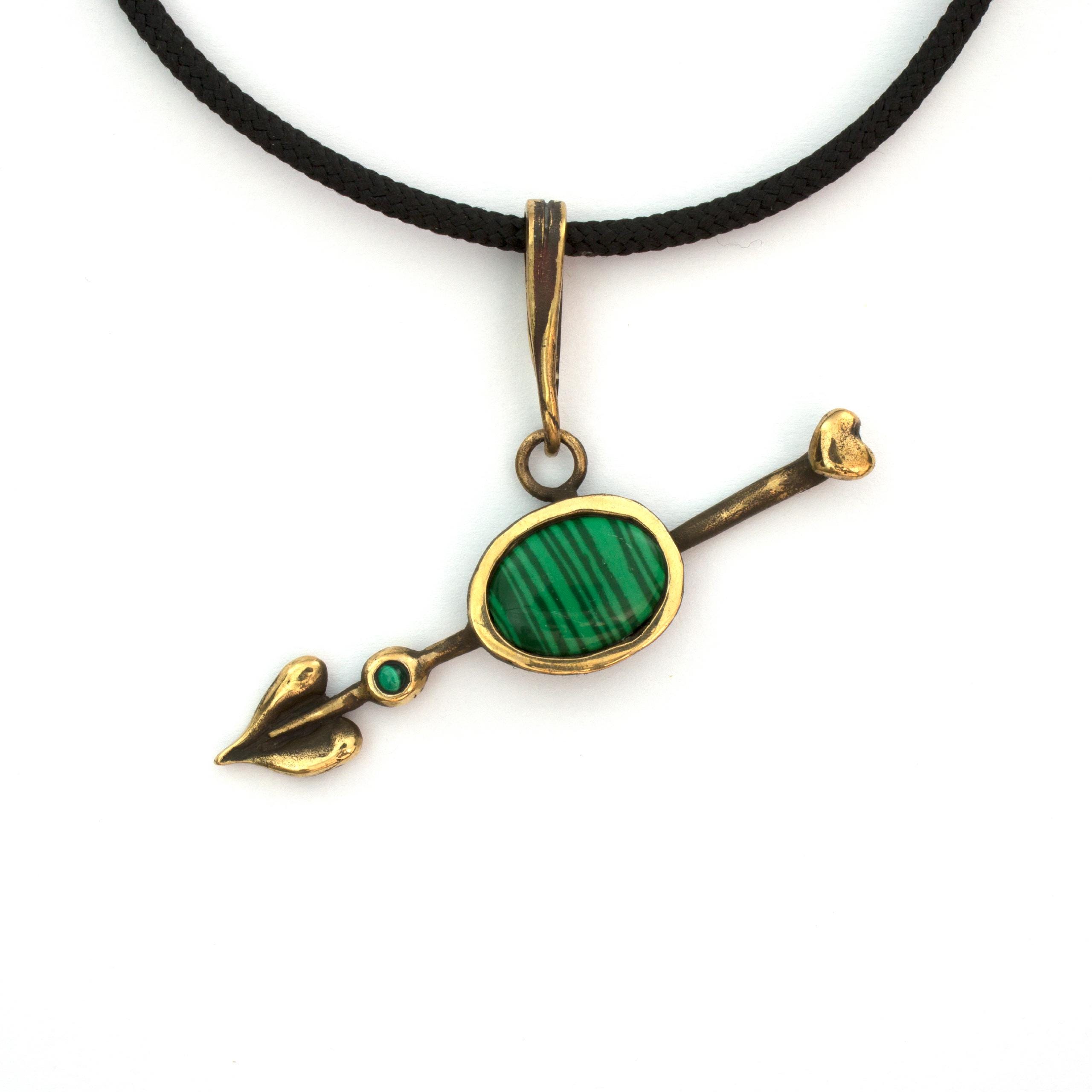 Bronze Pendant Necklace with Malachite by Vojtěška Vlčková Catalogue number: 151 Original title: Šipka Author: Vojtěška Vlčková Production: Jaromíra Pavlíková Material: bronze Technology: lost wax casting