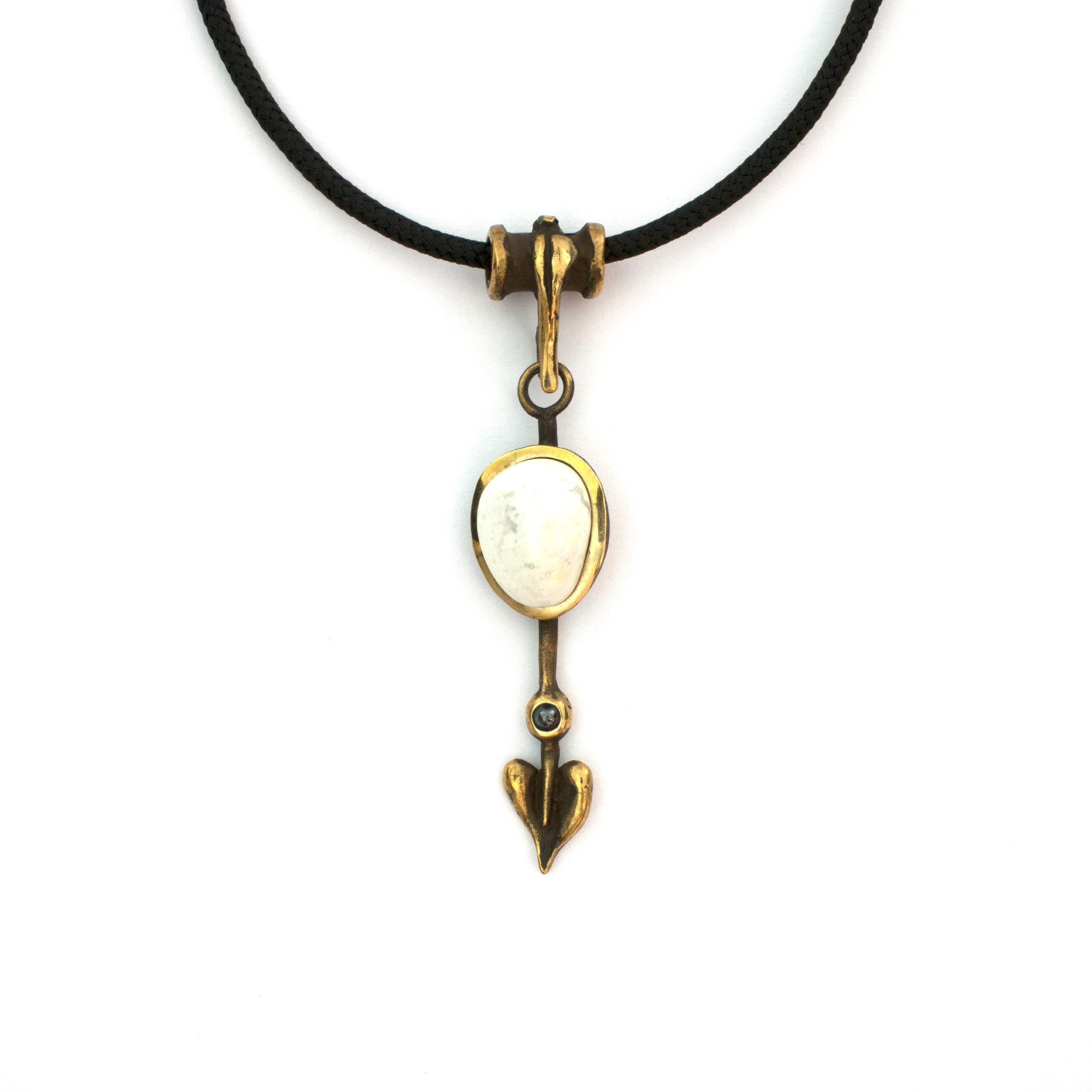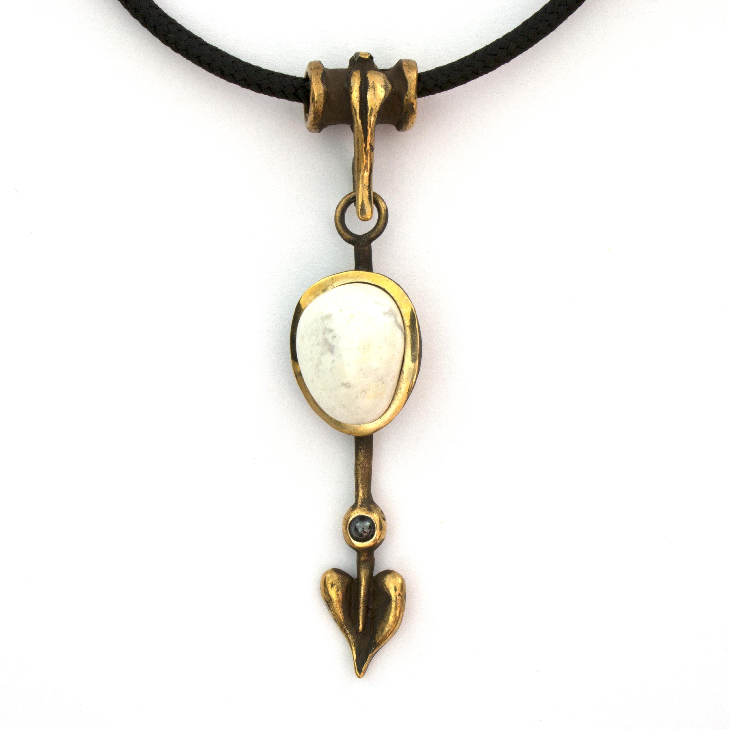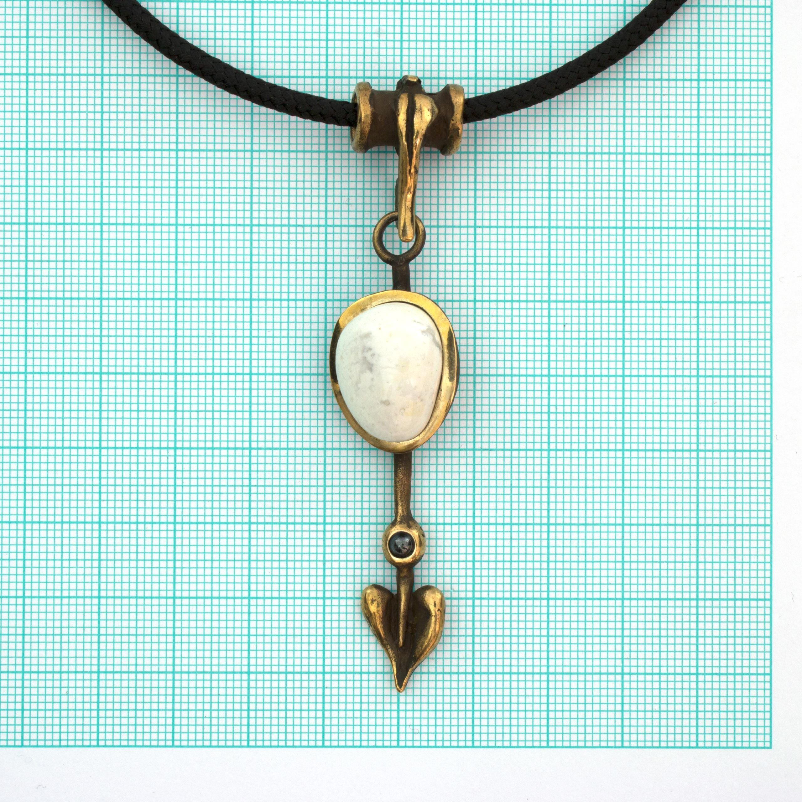 Bronze Pendant Necklace with Magnesite and Hematite by Vojtěška Vlčková Catalogue number: 152 Original title: Šipka Author: Vojtěška Vlčková Production: Jaromíra Pavlíková Material: bronze Technology: lost wax casting