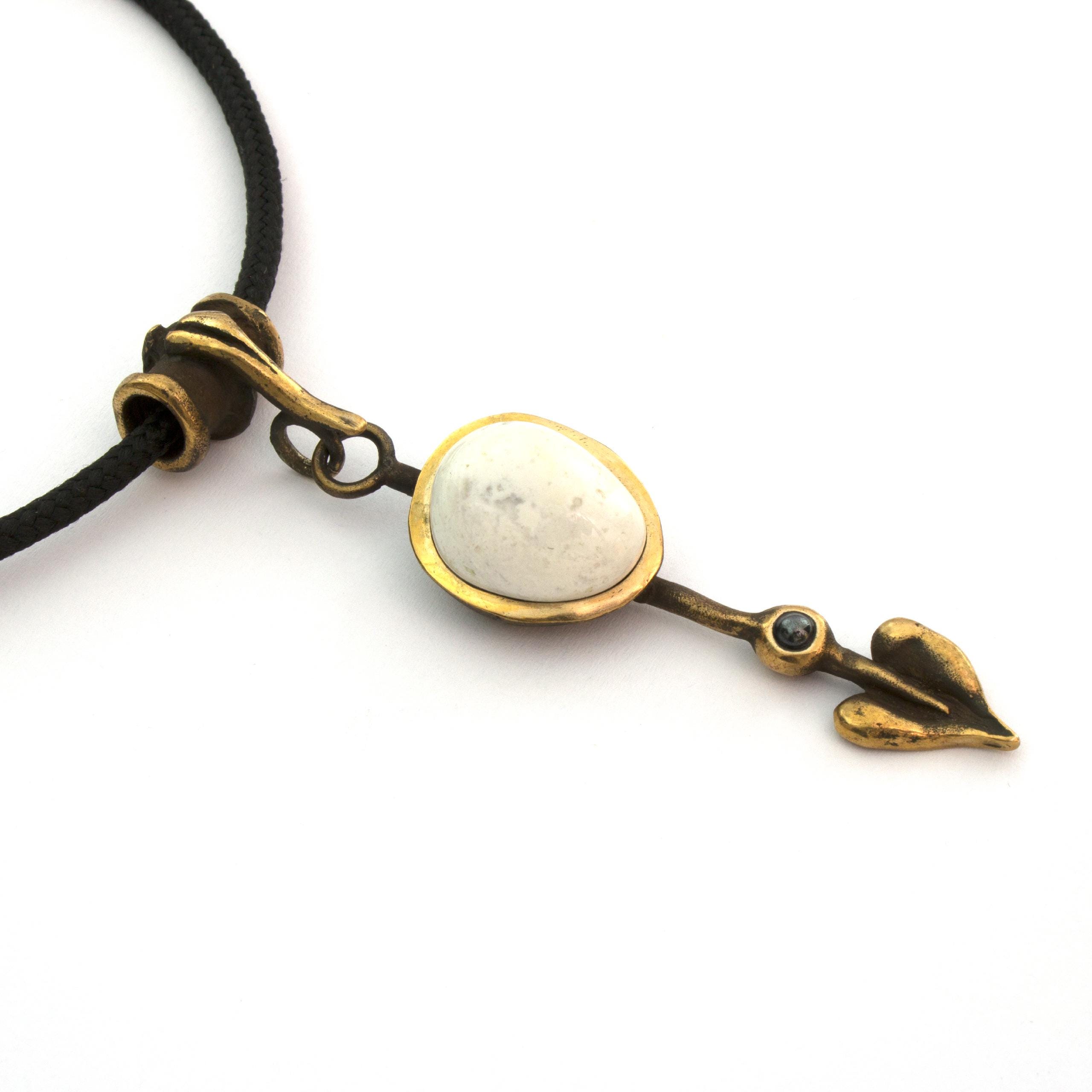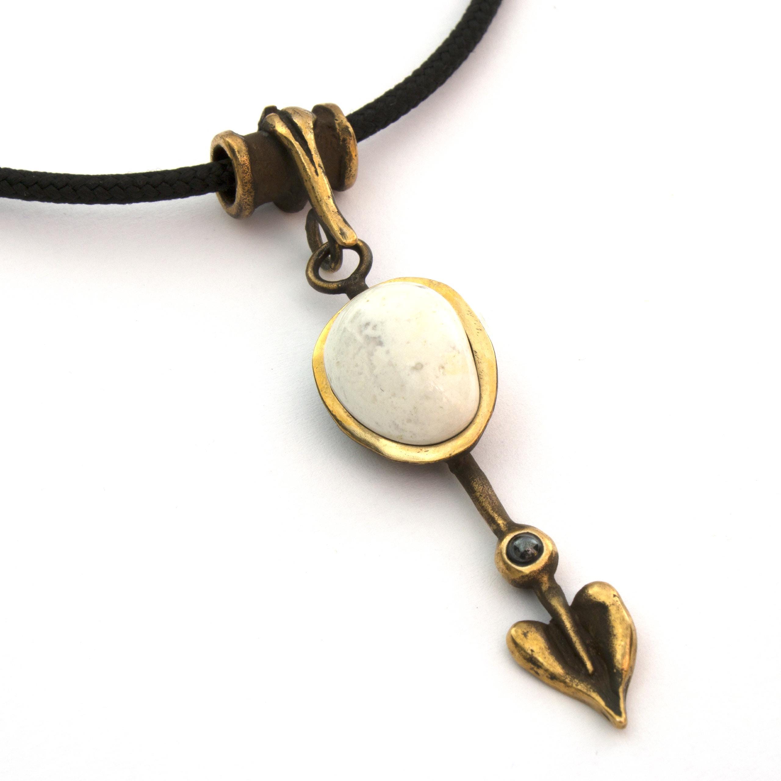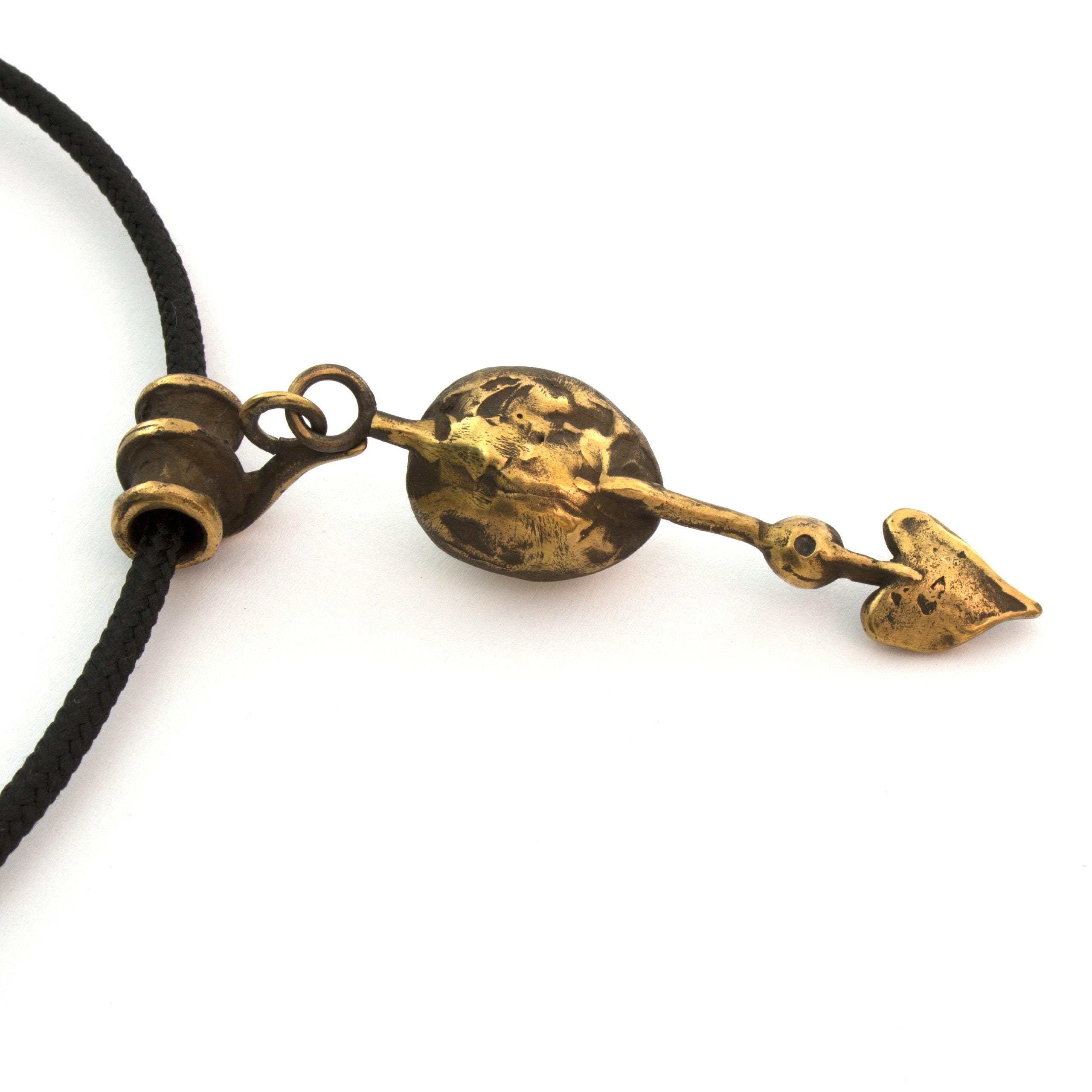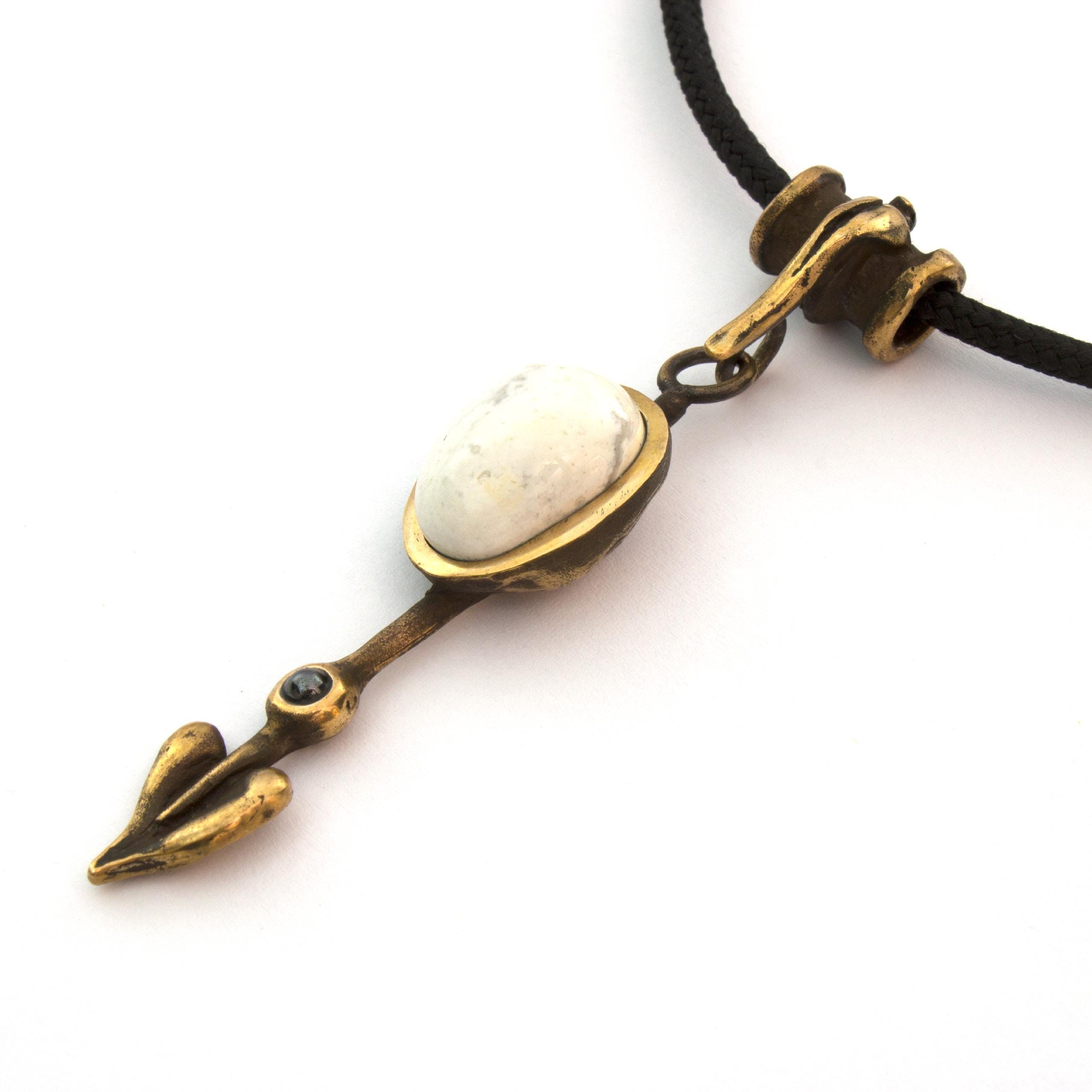 Bronze Pendant Necklace with Magnesite and Hematite by Vojtěška Vlčková Catalogue number: 152 Original title: Šipka Author: Vojtěška Vlčková Production: Jaromíra Pavlíková Material: bronze Technology: lost wax casting
