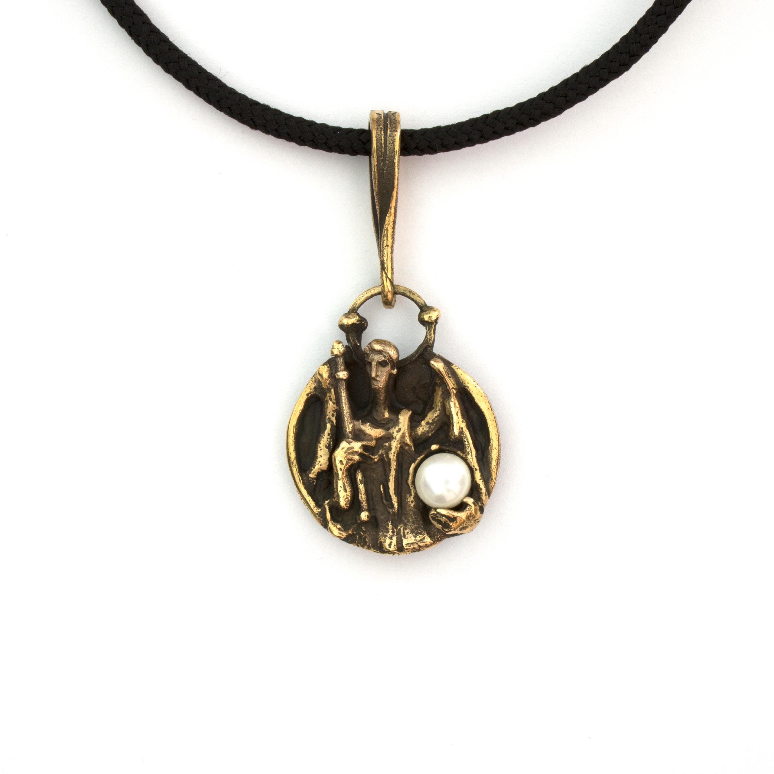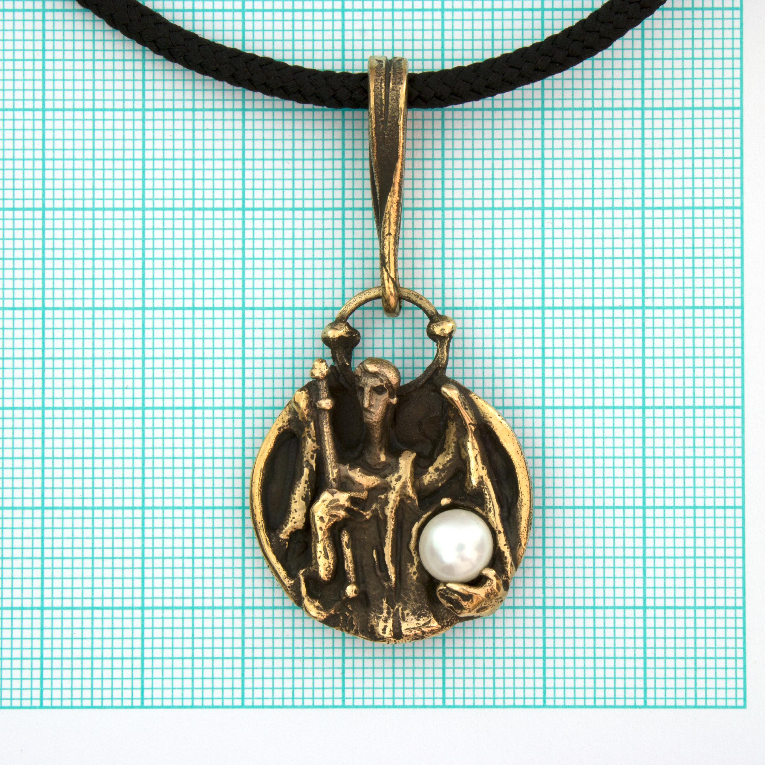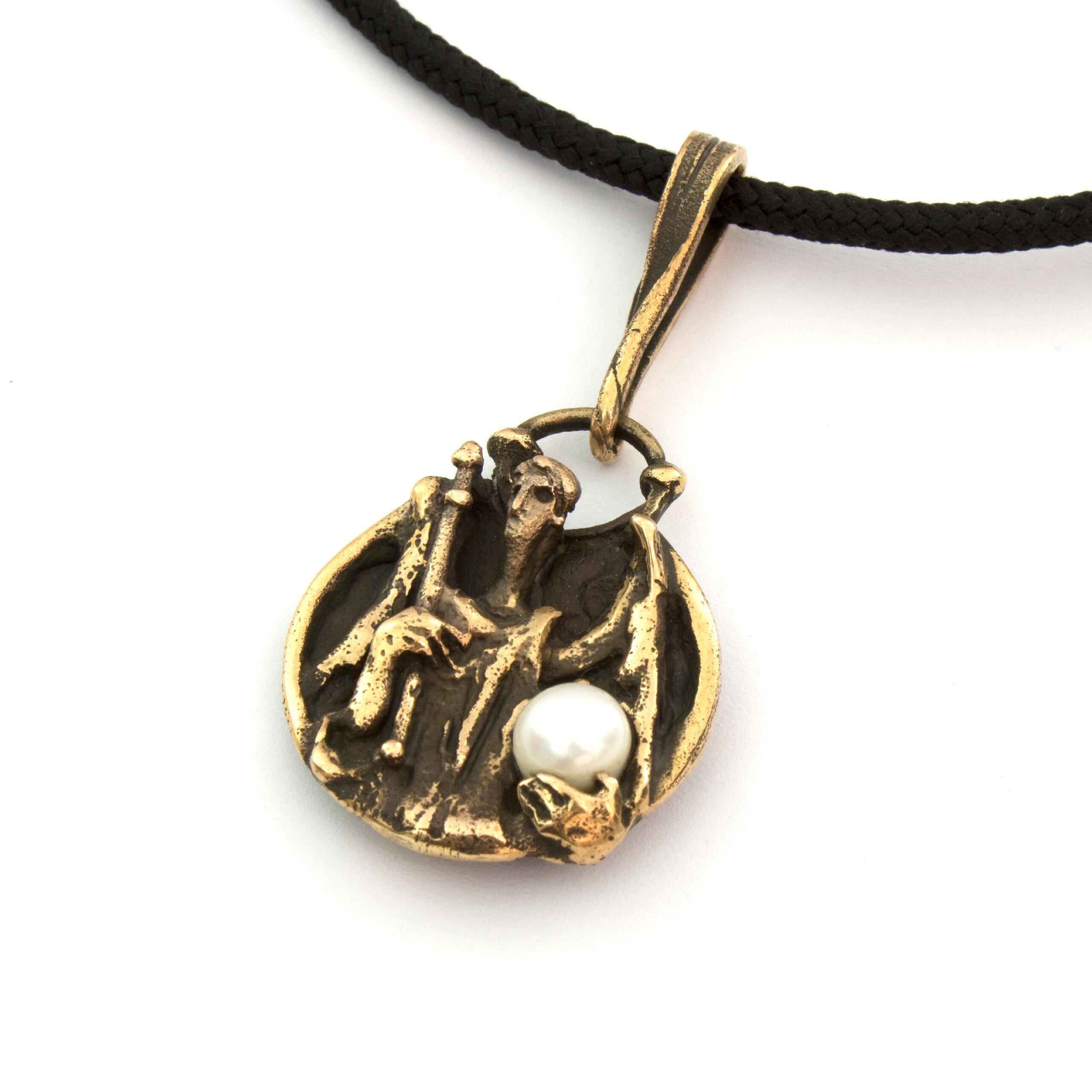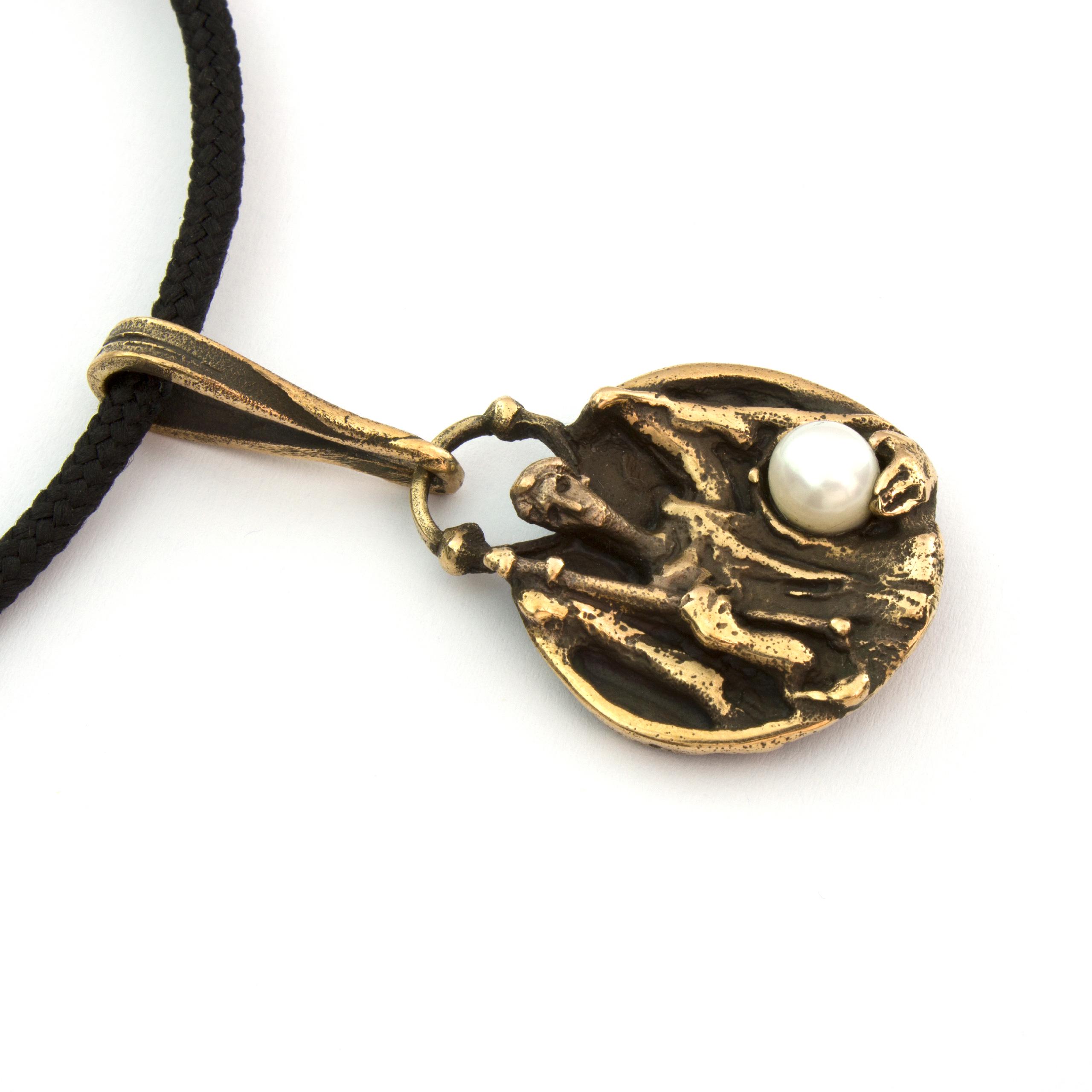 Bronze Pendant Necklace with Pearl by Vojtěška Vlčková