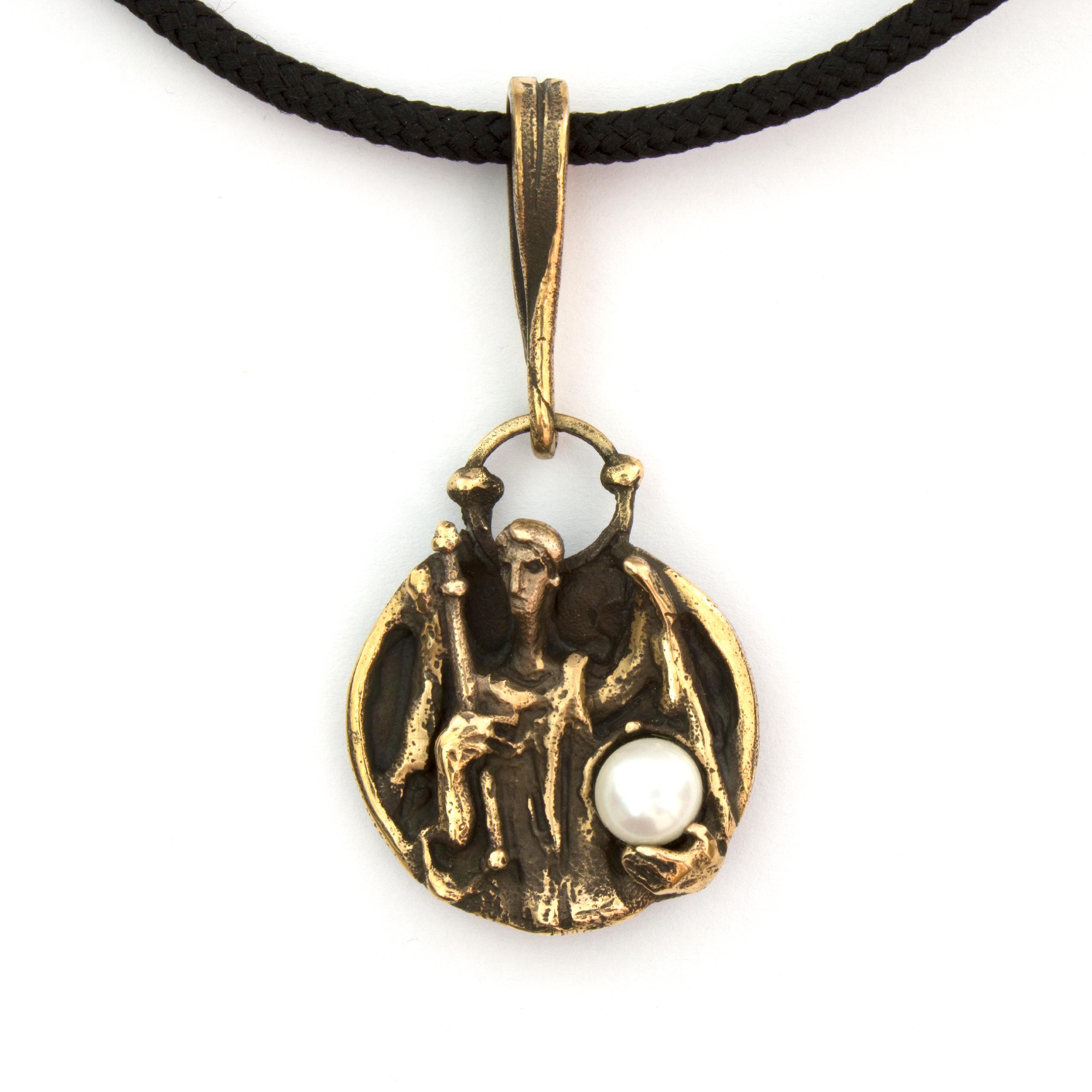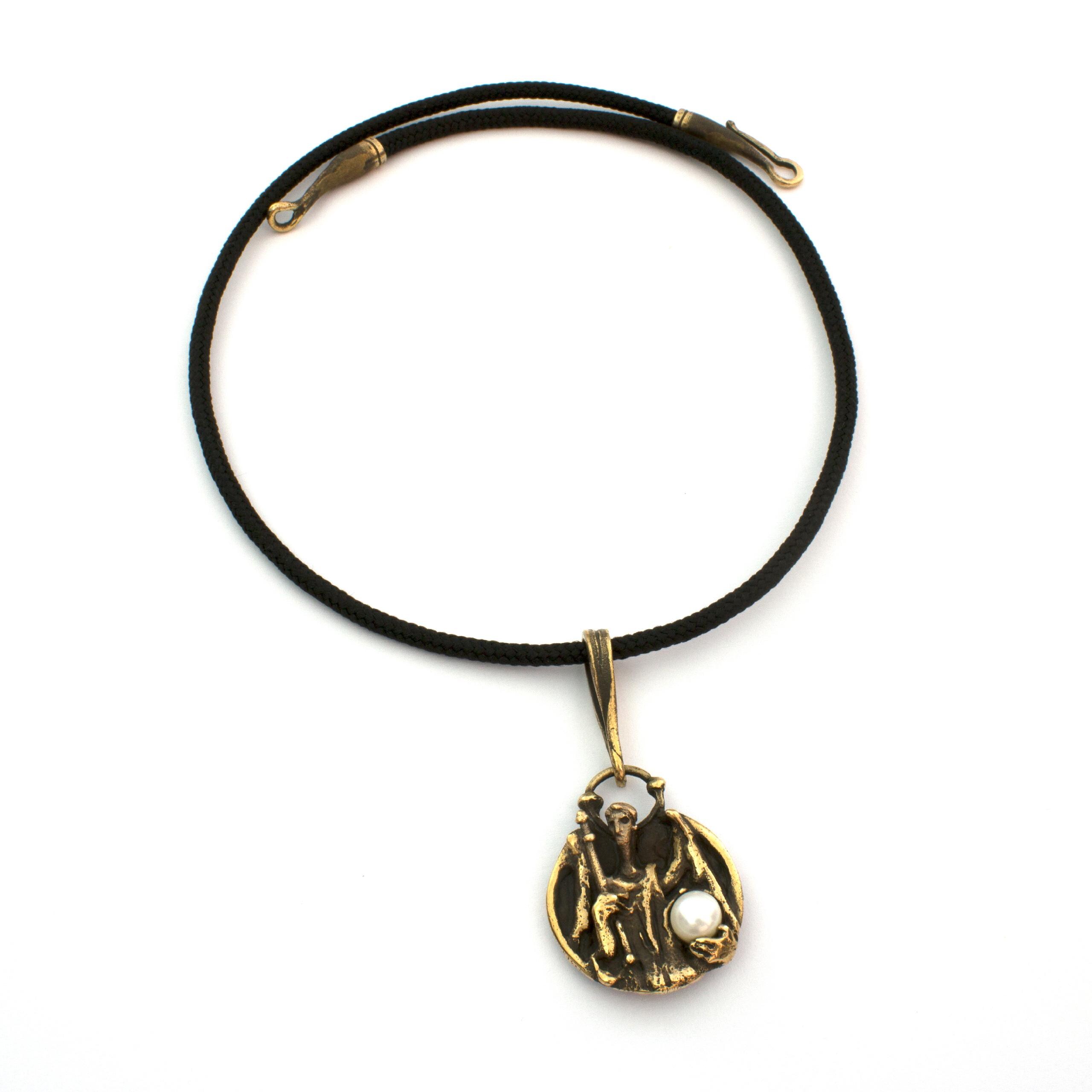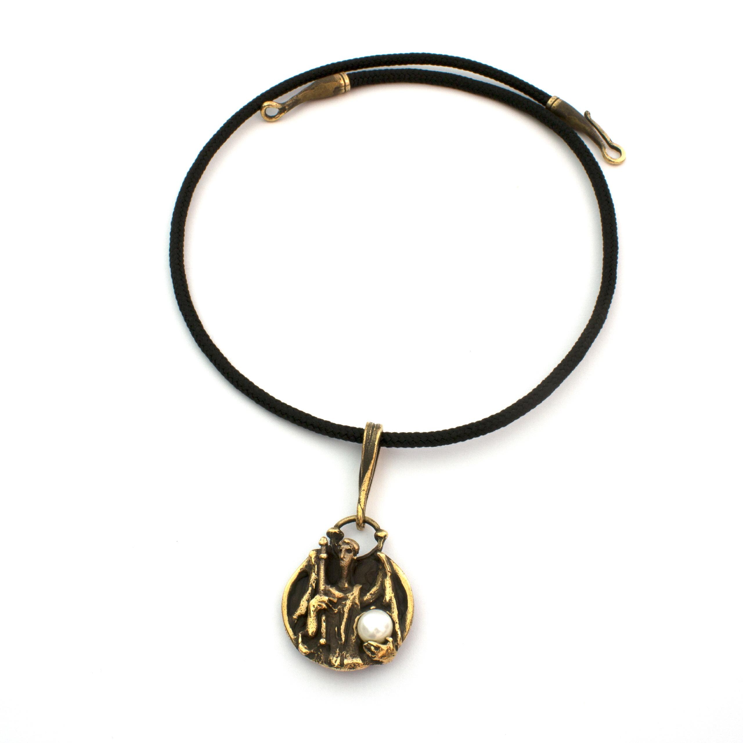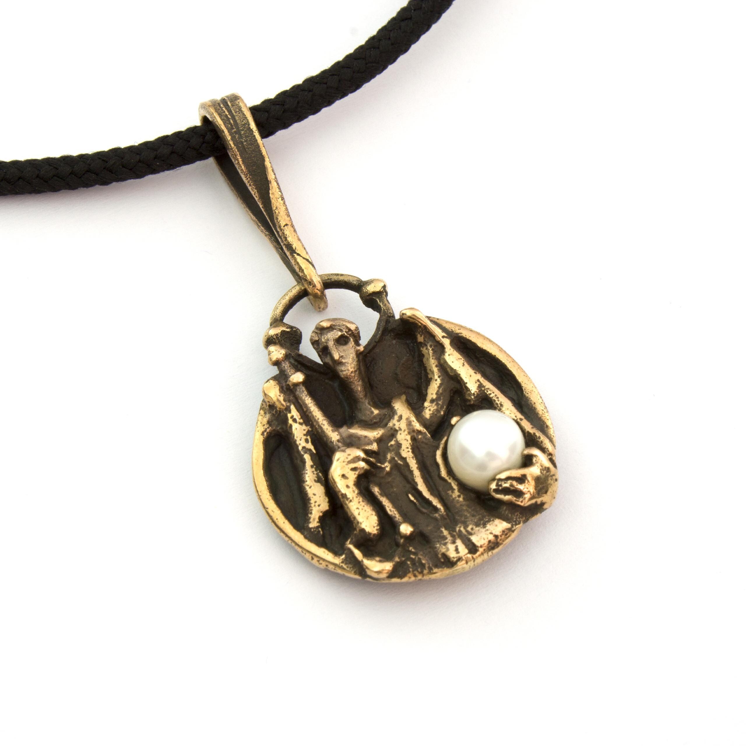 Bronze Pendant Necklace with Pearl by Vojtěška Vlčková