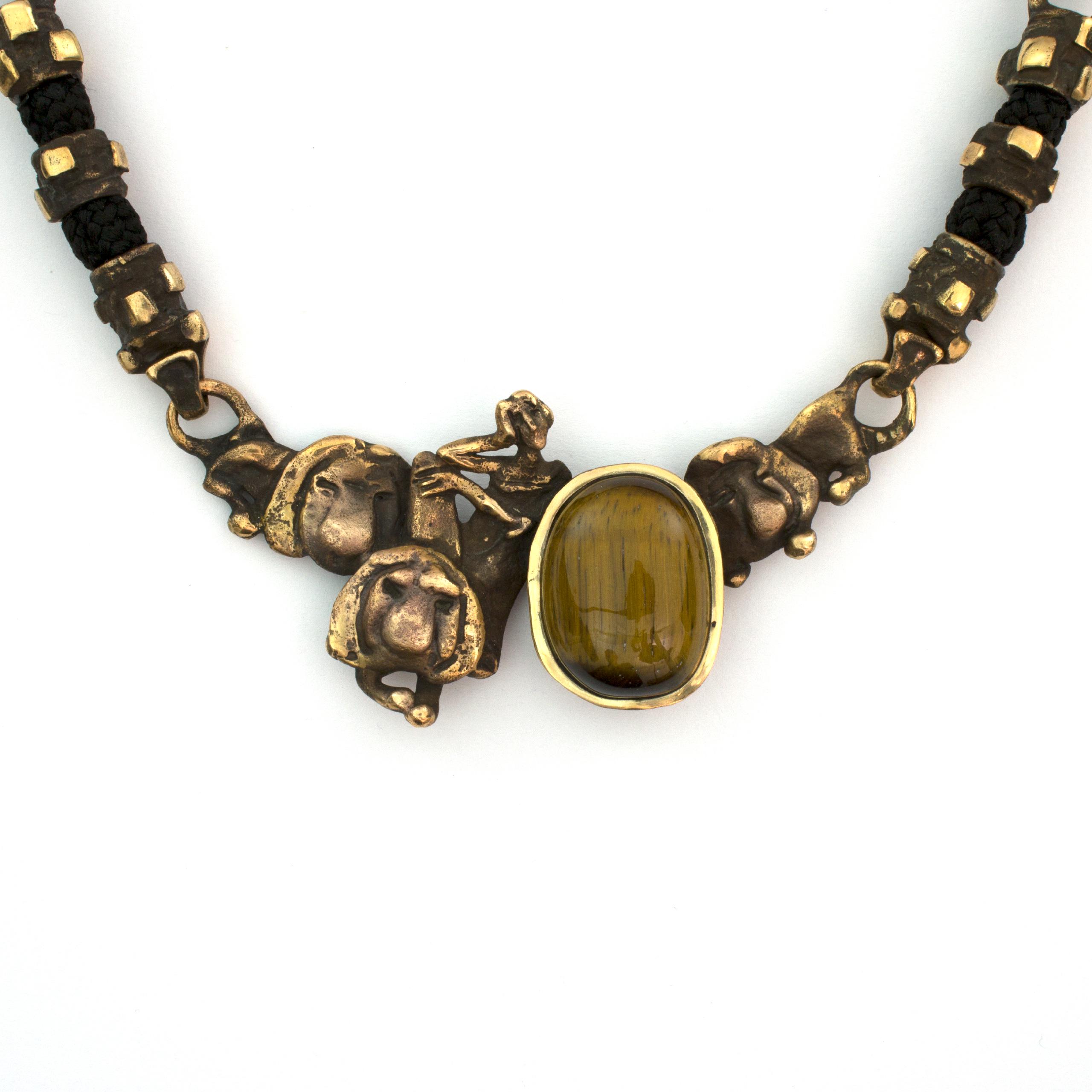 Bronze Necklace with Tiger's Eye by Vojtěška Vlčková Catalogue number: 220 Original title: Daniel v jámě lvové Author: Vojtěška Vlčková Production: Jaromíra Pavlíková Material: bronze Technology: lost wax casting