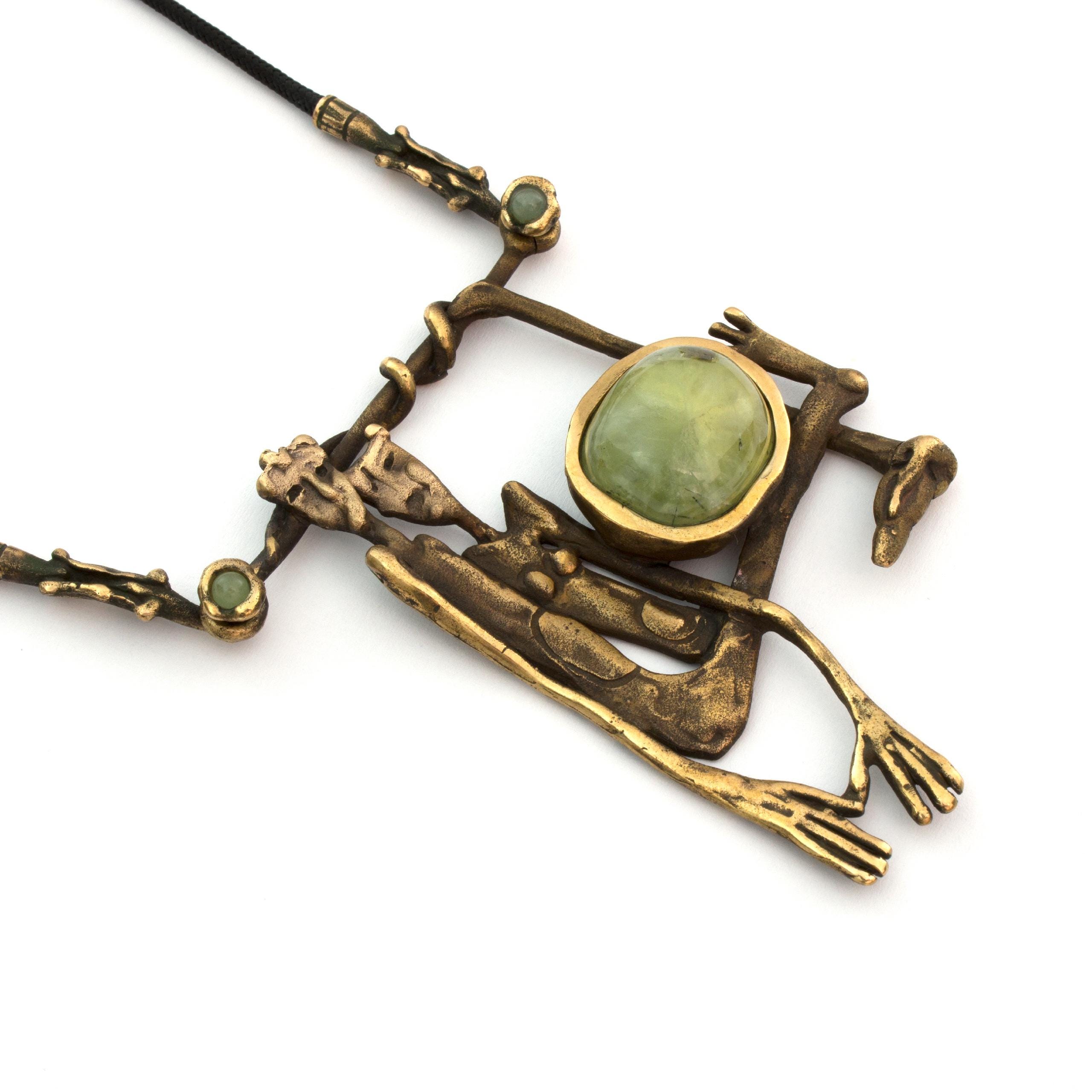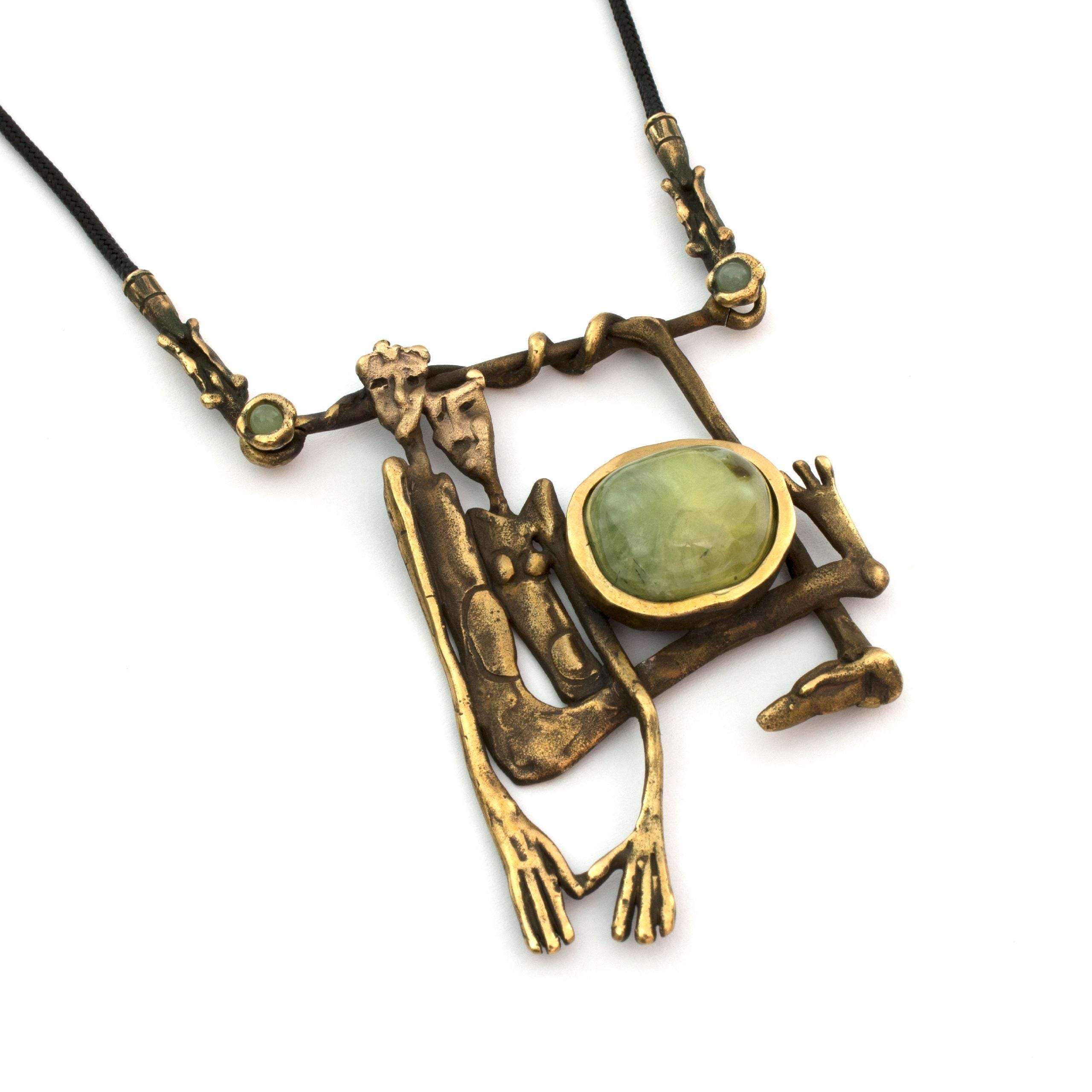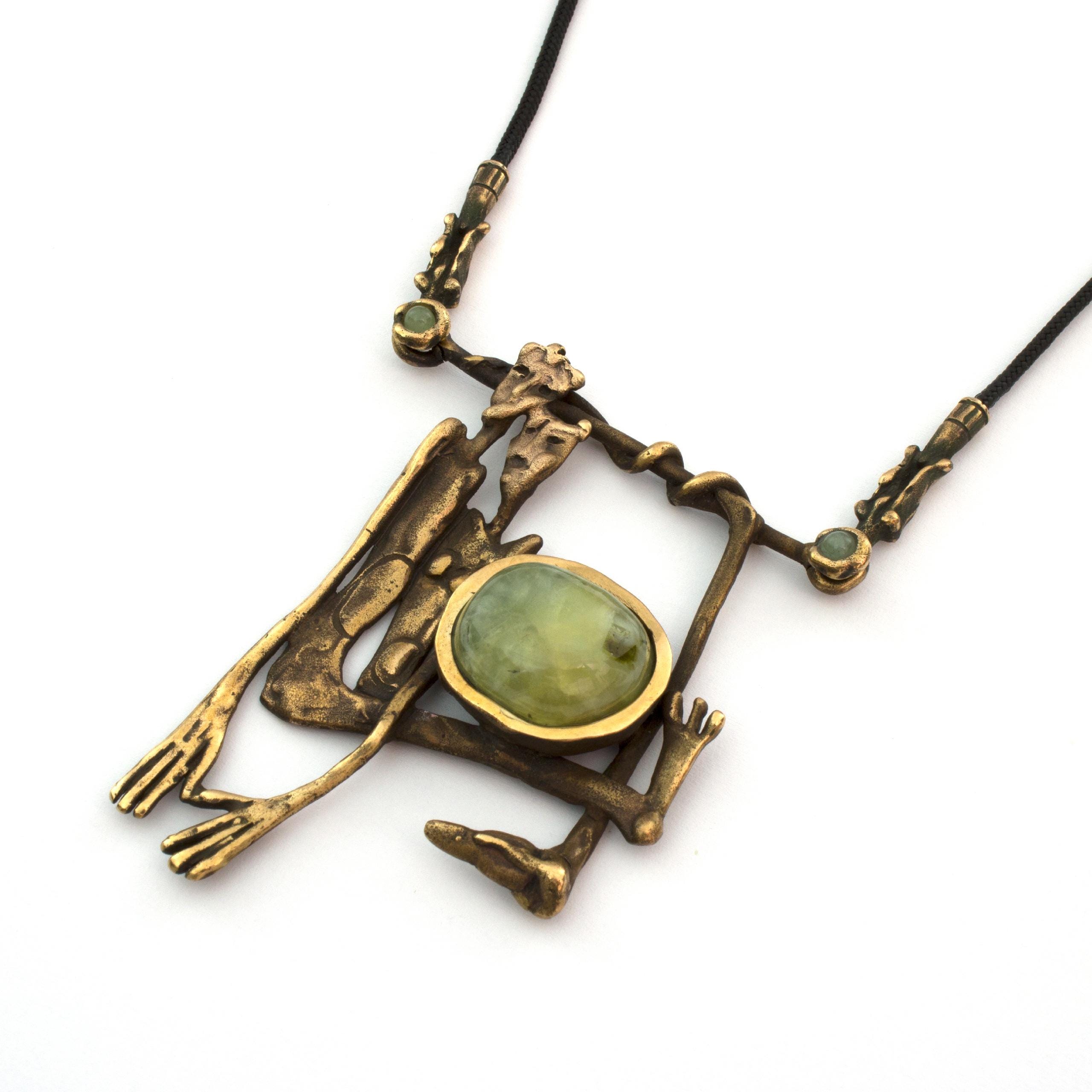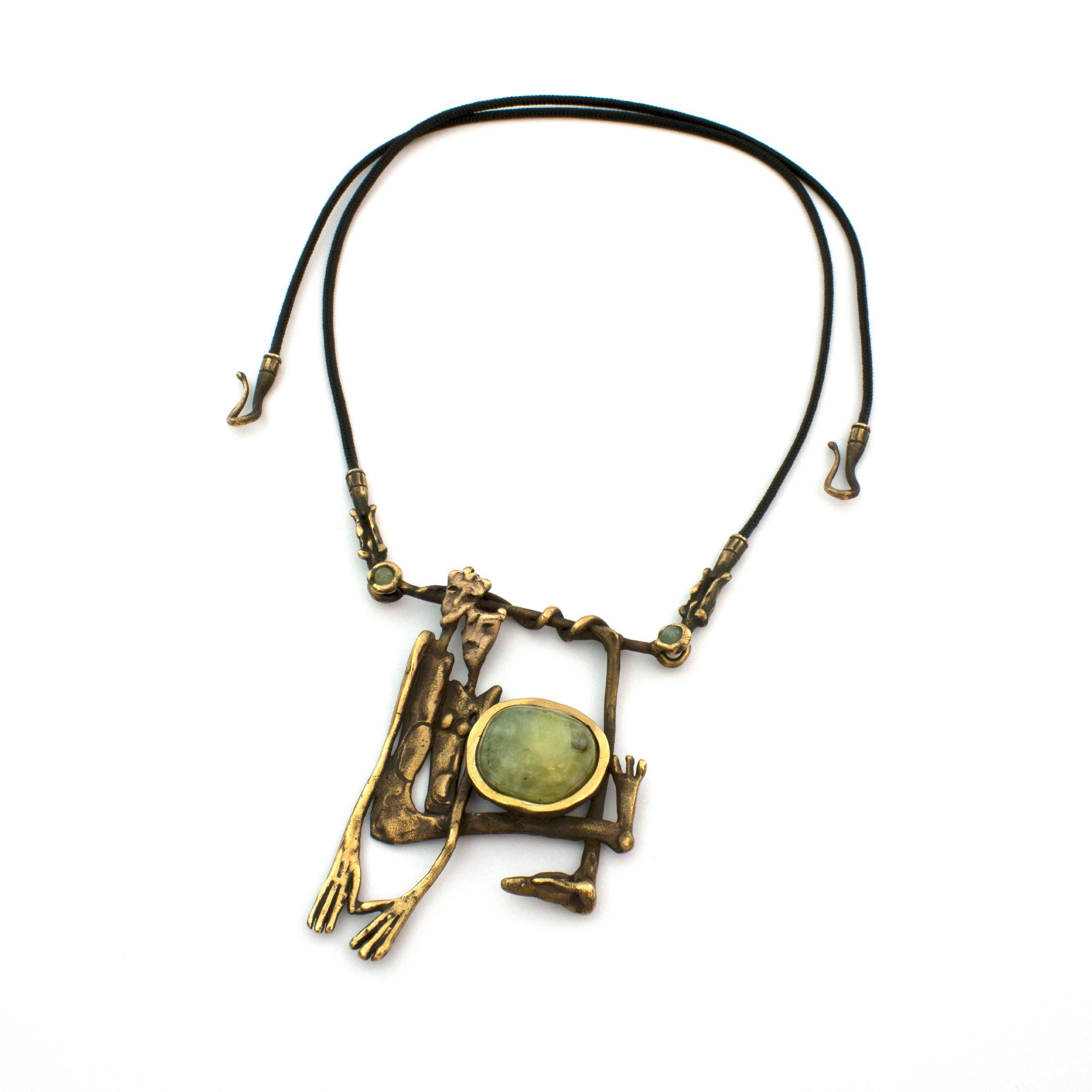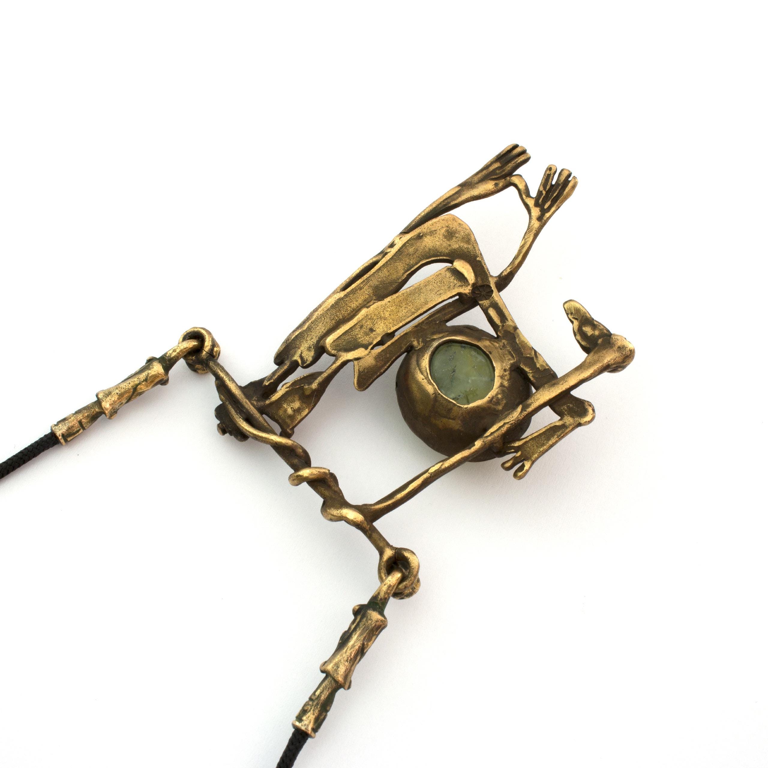 Bronze Necklace with Prehnite by Vojtěška Vlčková Catalogue number: 233 Original title: Ráj Author: Vojtěška Vlčková Production: Jaromíra Pavlíková Material: bronze Technology: lost wax casting