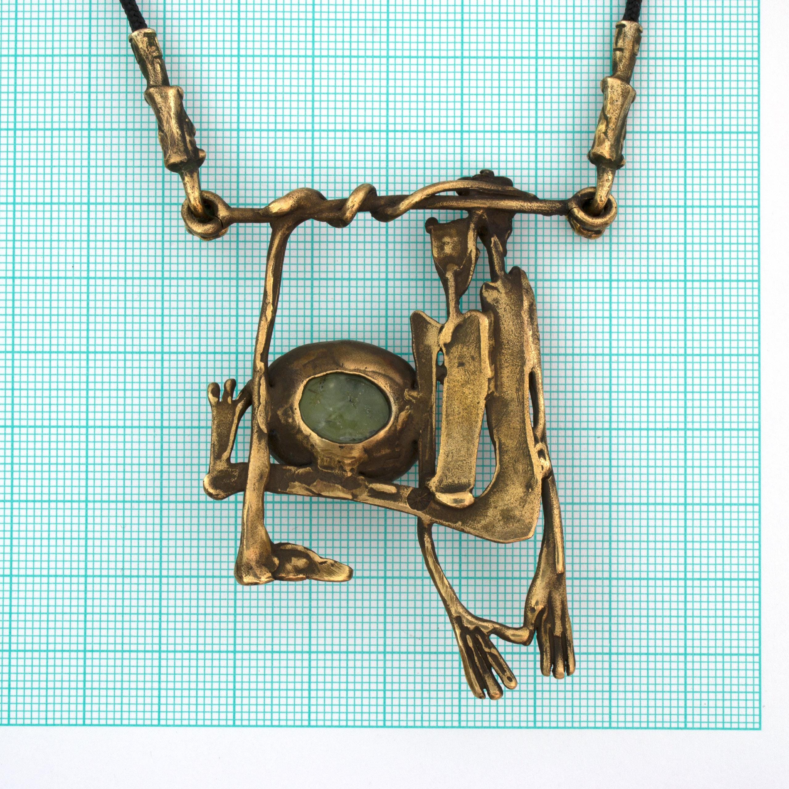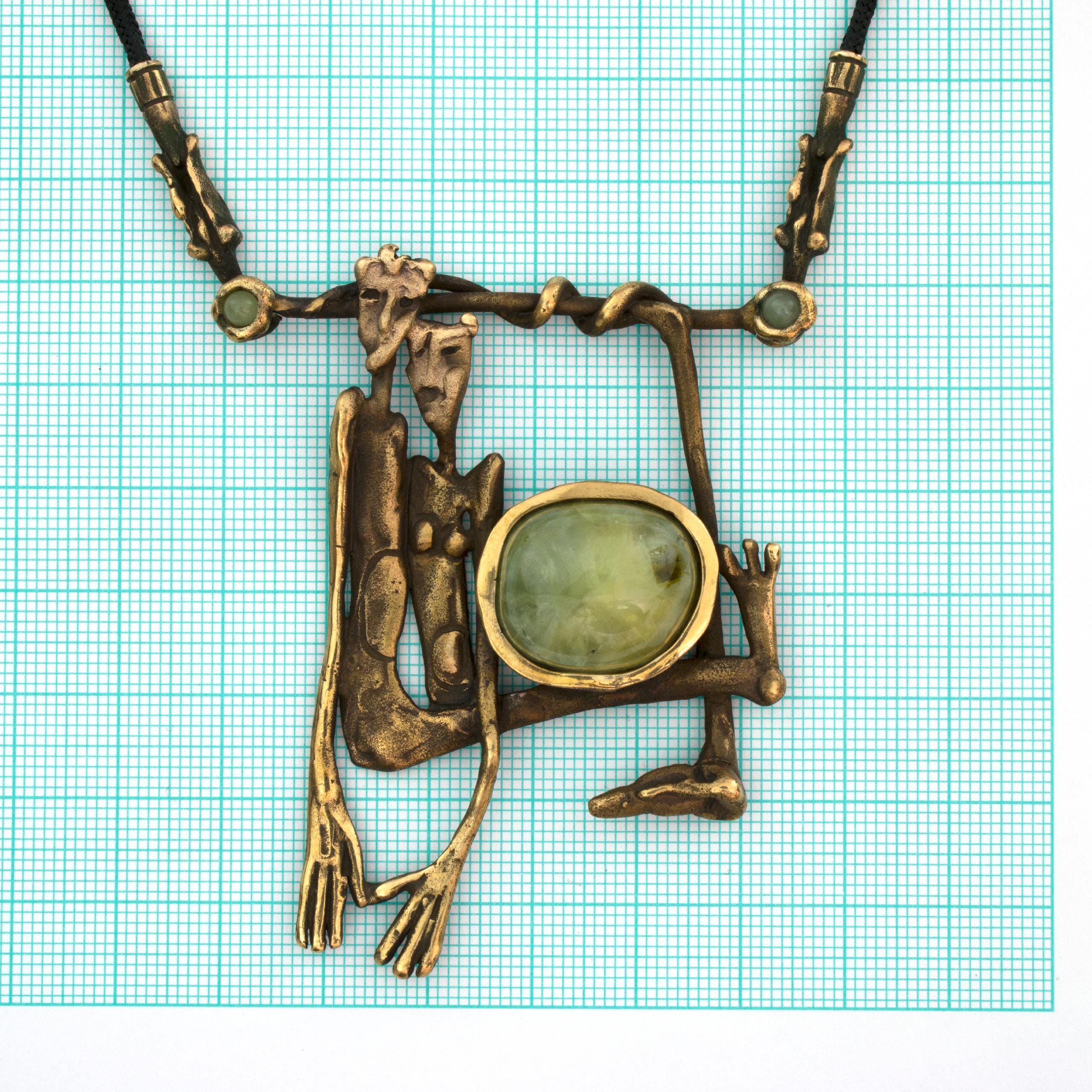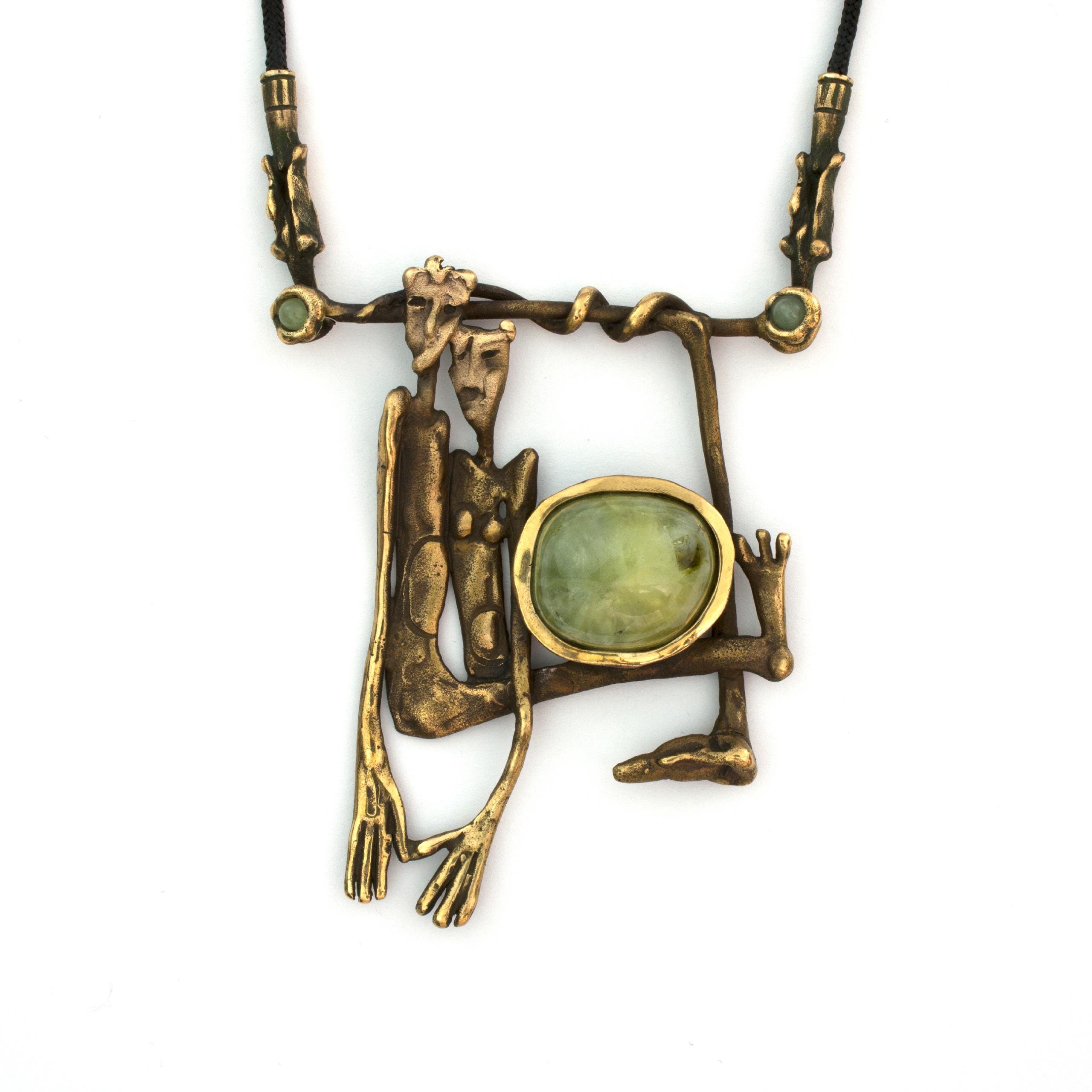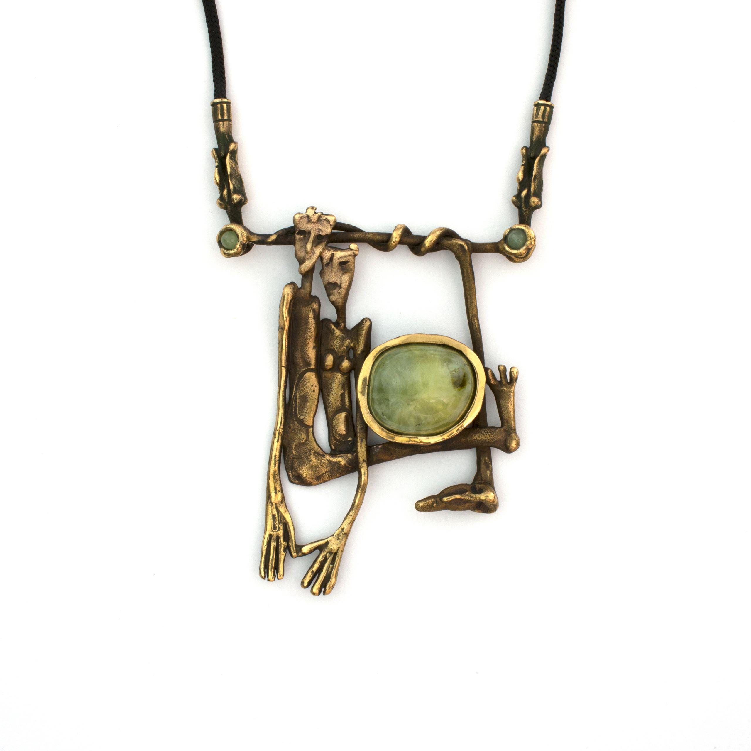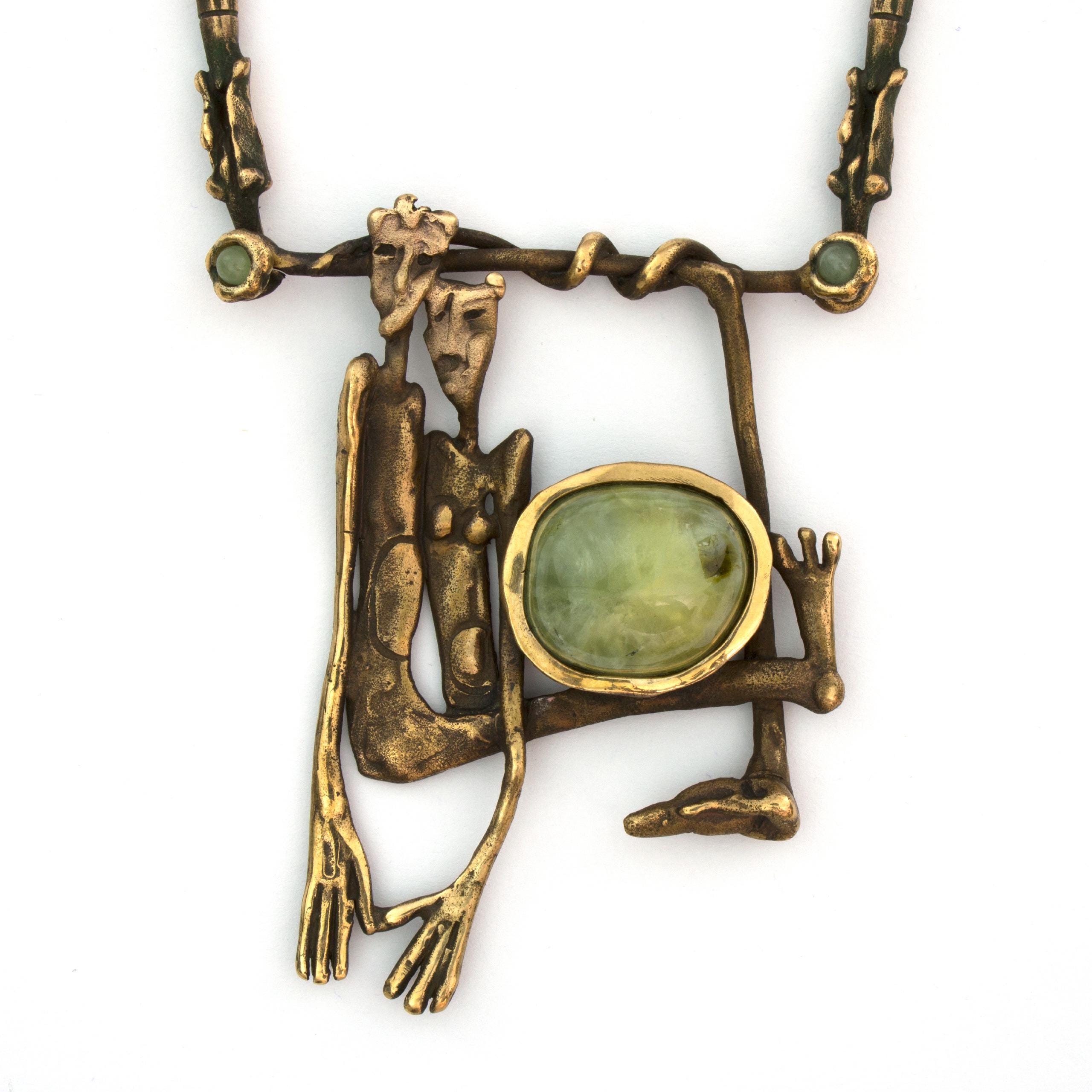 Bronze Necklace with Prehnite by Vojtěška Vlčková Catalogue number: 233 Original title: Ráj Author: Vojtěška Vlčková Production: Jaromíra Pavlíková Material: bronze Technology: lost wax casting