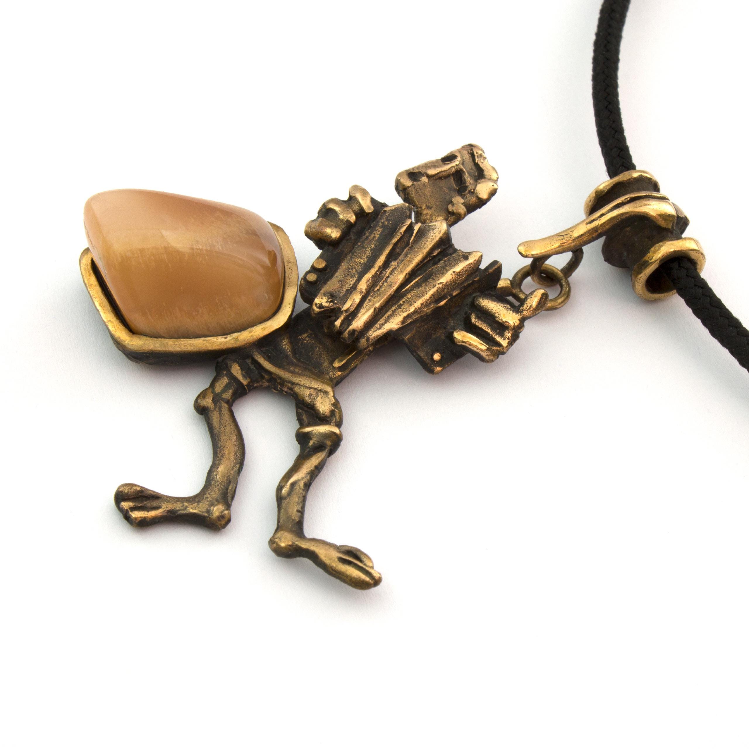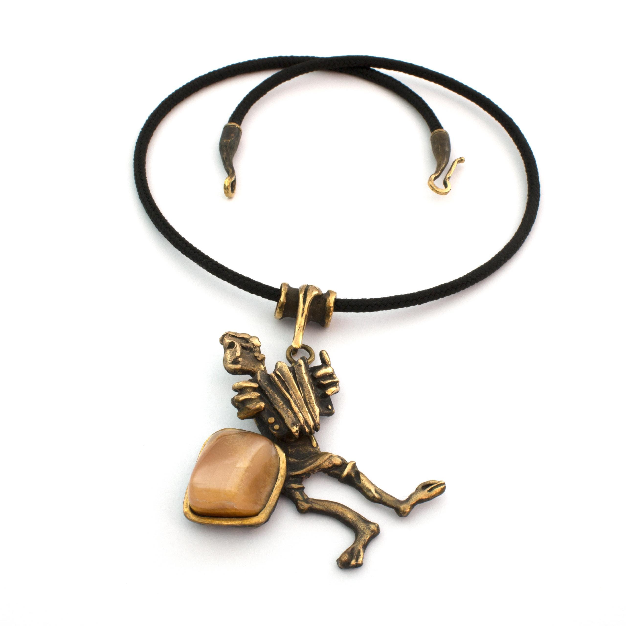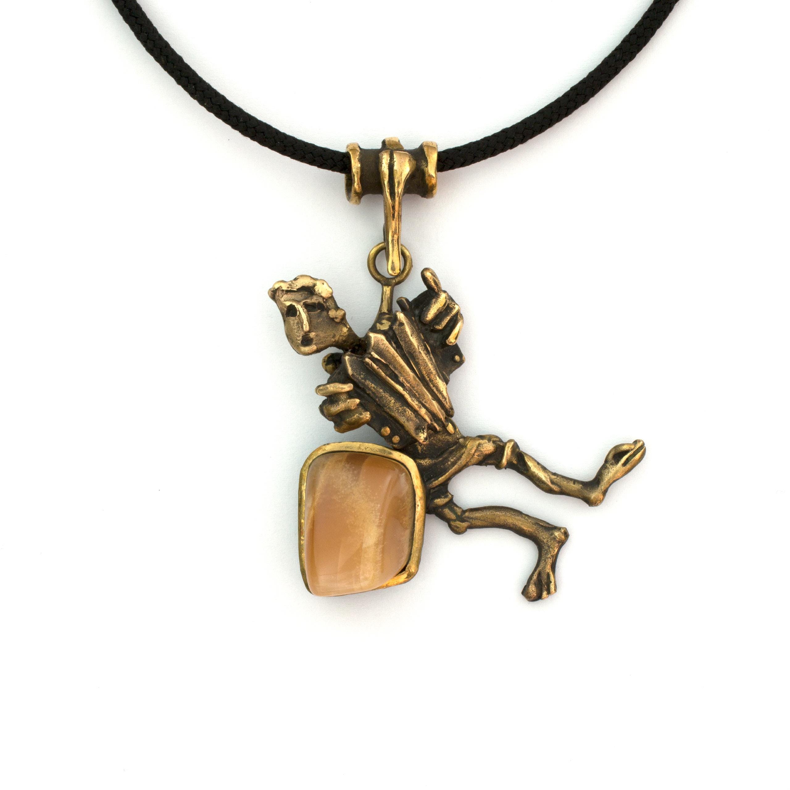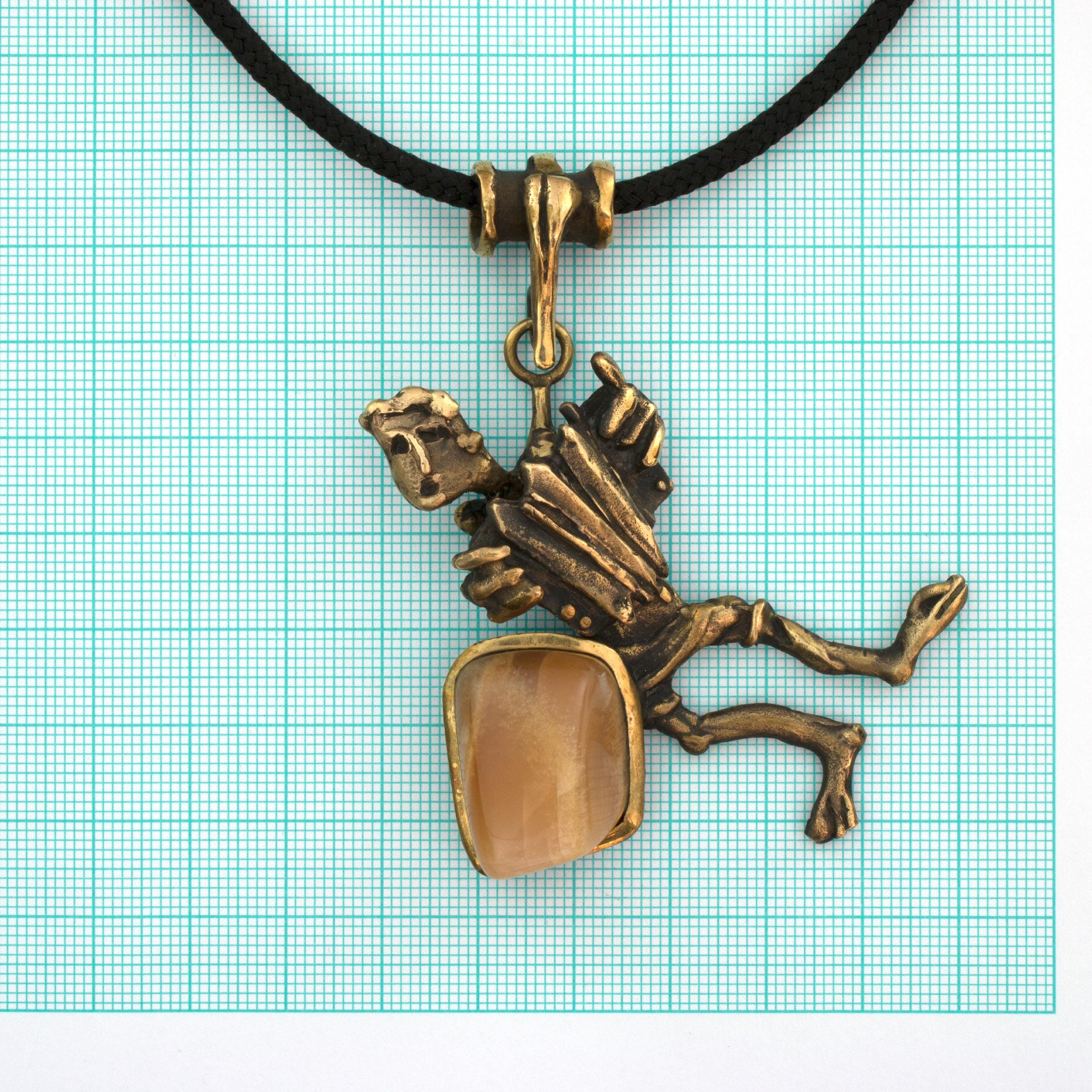 Bronze Pendant Necklace with Moonstone by Vojtěška Vlčková Catalogue number: 250 Original title: Harmonikář Author: Vojtěška Vlčková Production: Jaromíra Pavlíková Material: bronze Technology: lost wax casting