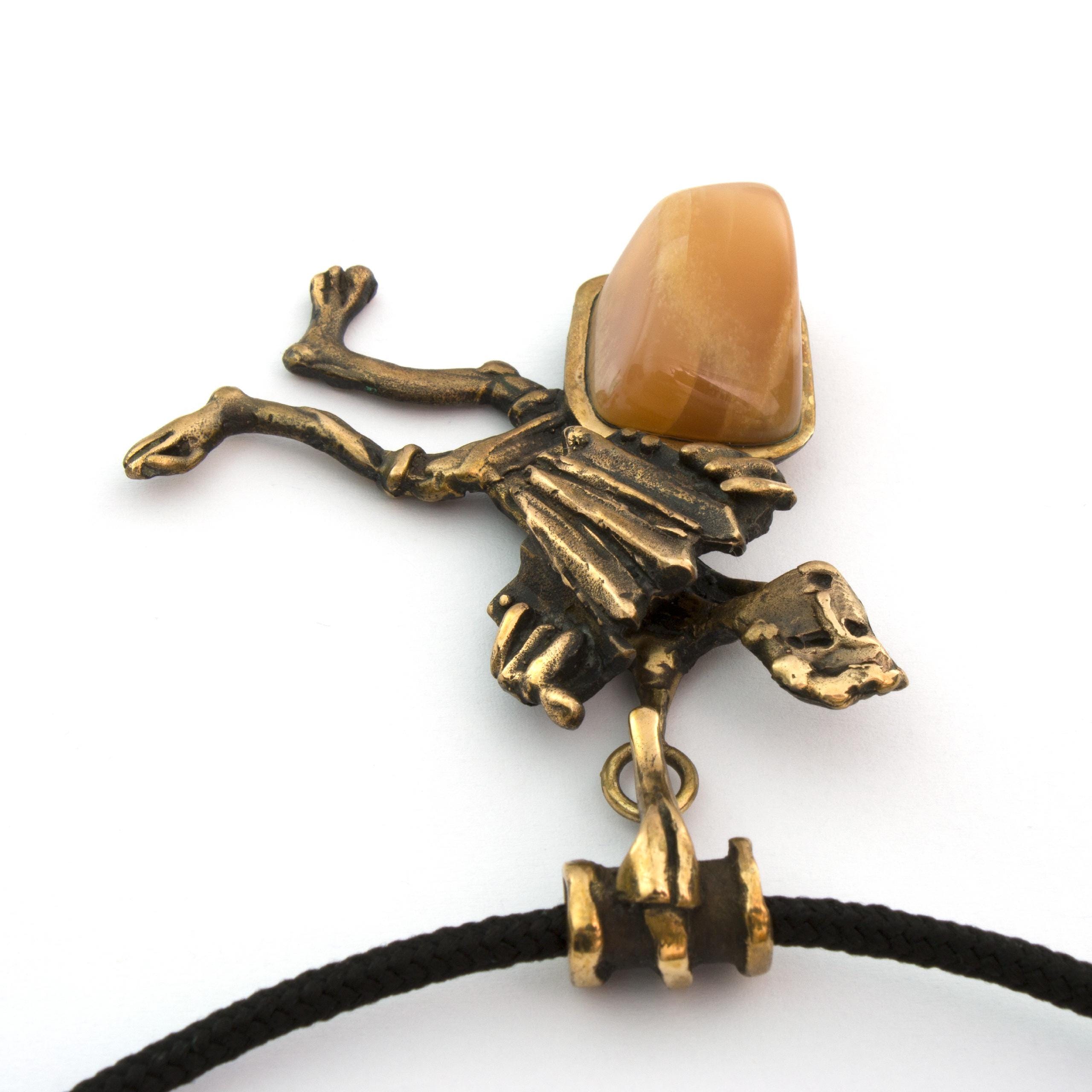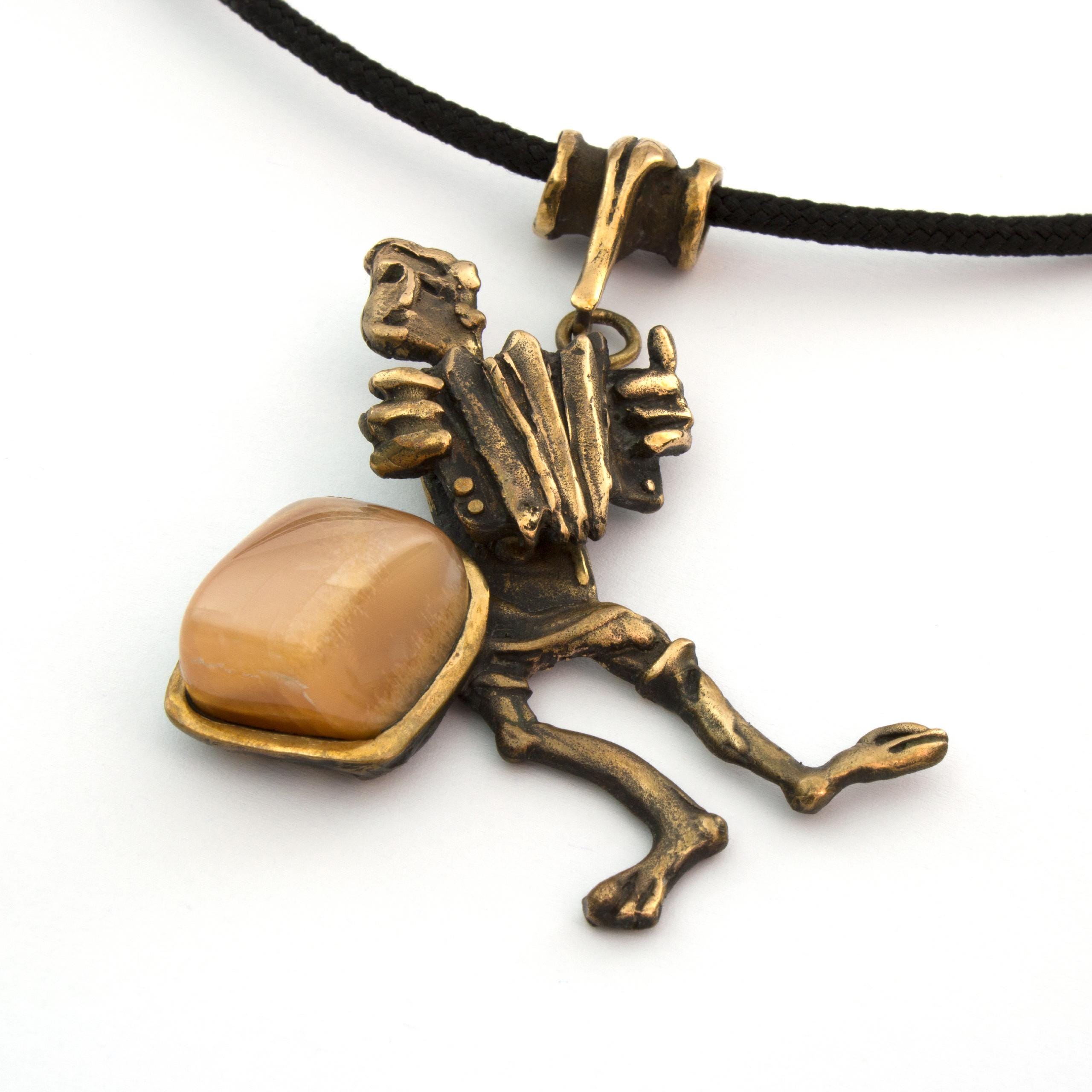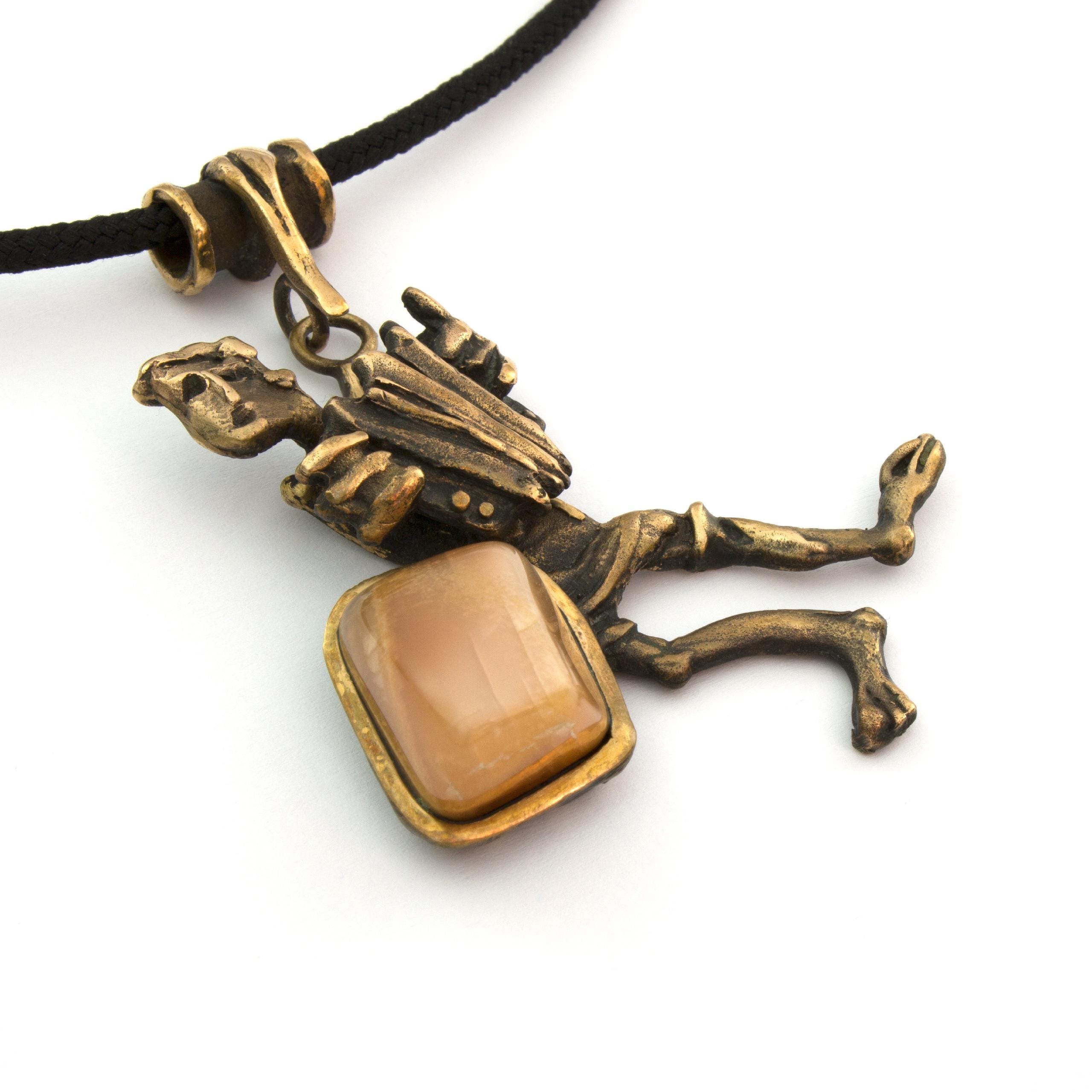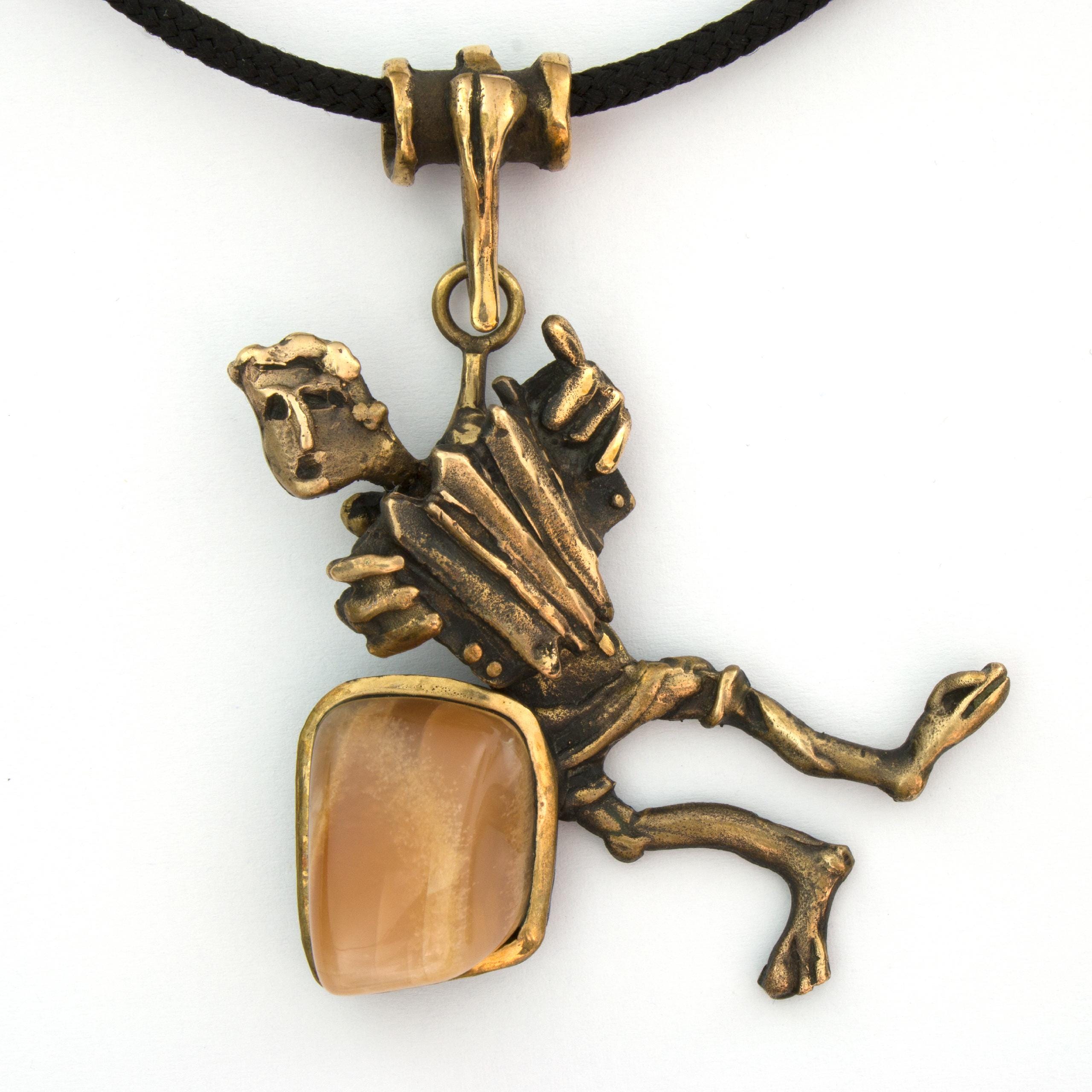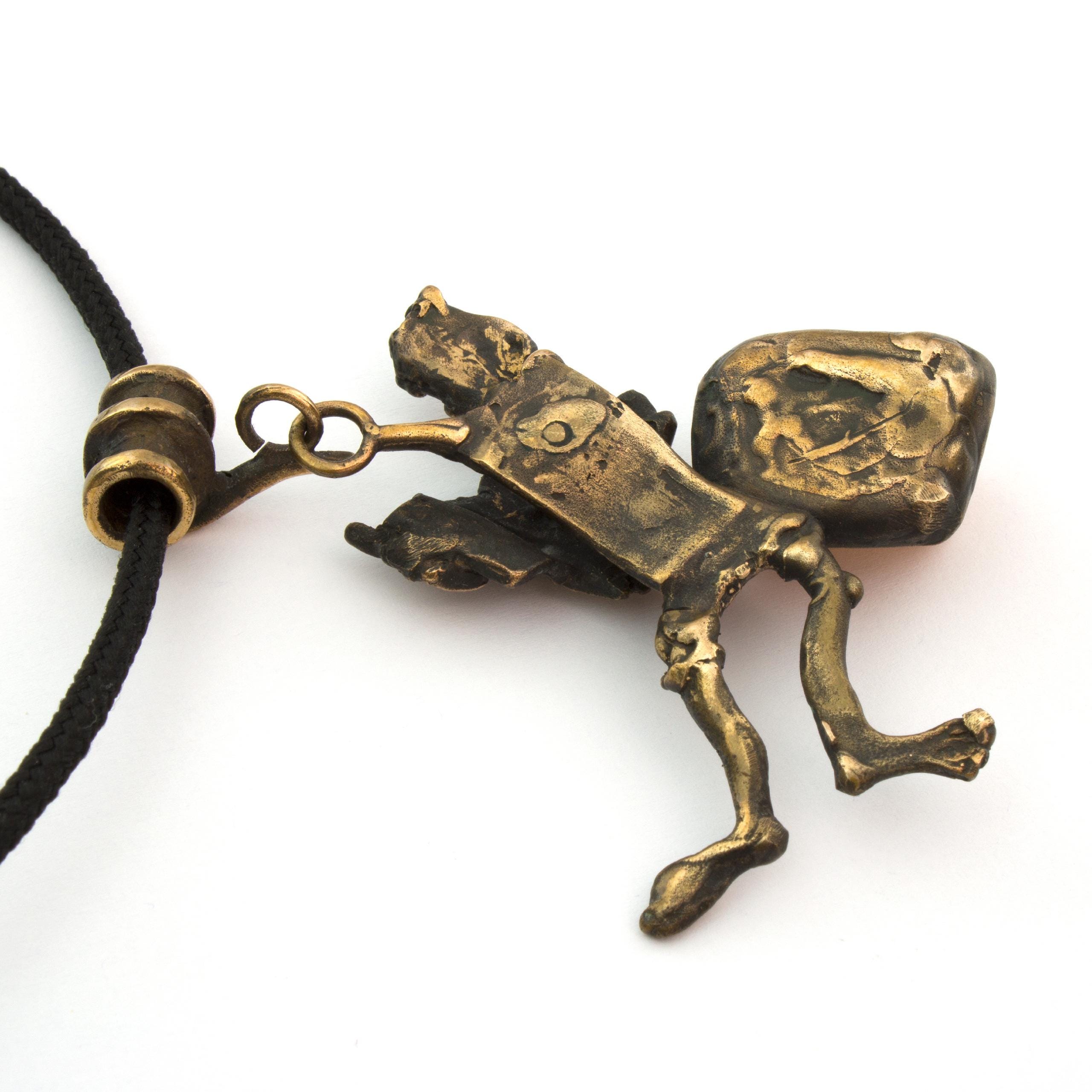 Bronze Pendant Necklace with Moonstone by Vojtěška Vlčková Catalogue number: 250 Original title: Harmonikář Author: Vojtěška Vlčková Production: Jaromíra Pavlíková Material: bronze Technology: lost wax casting