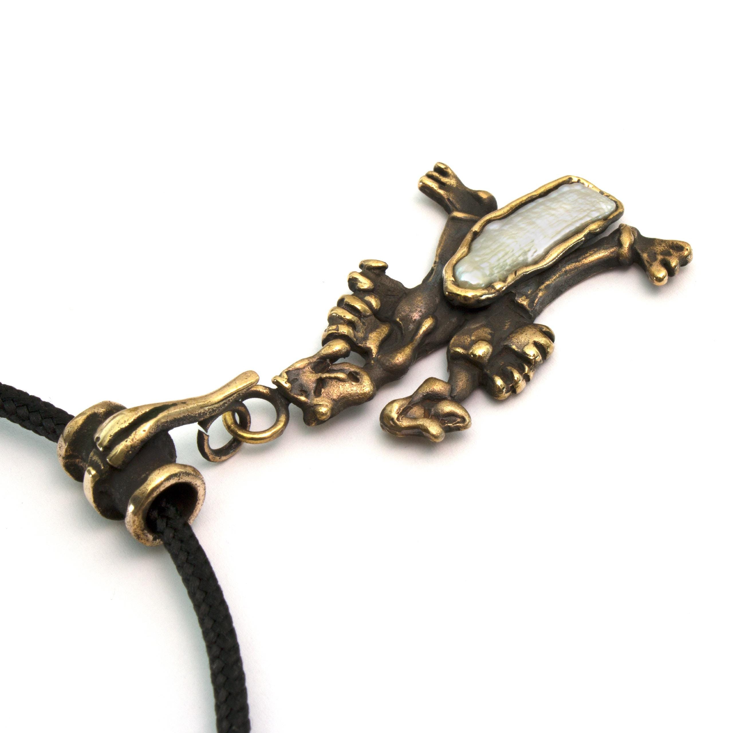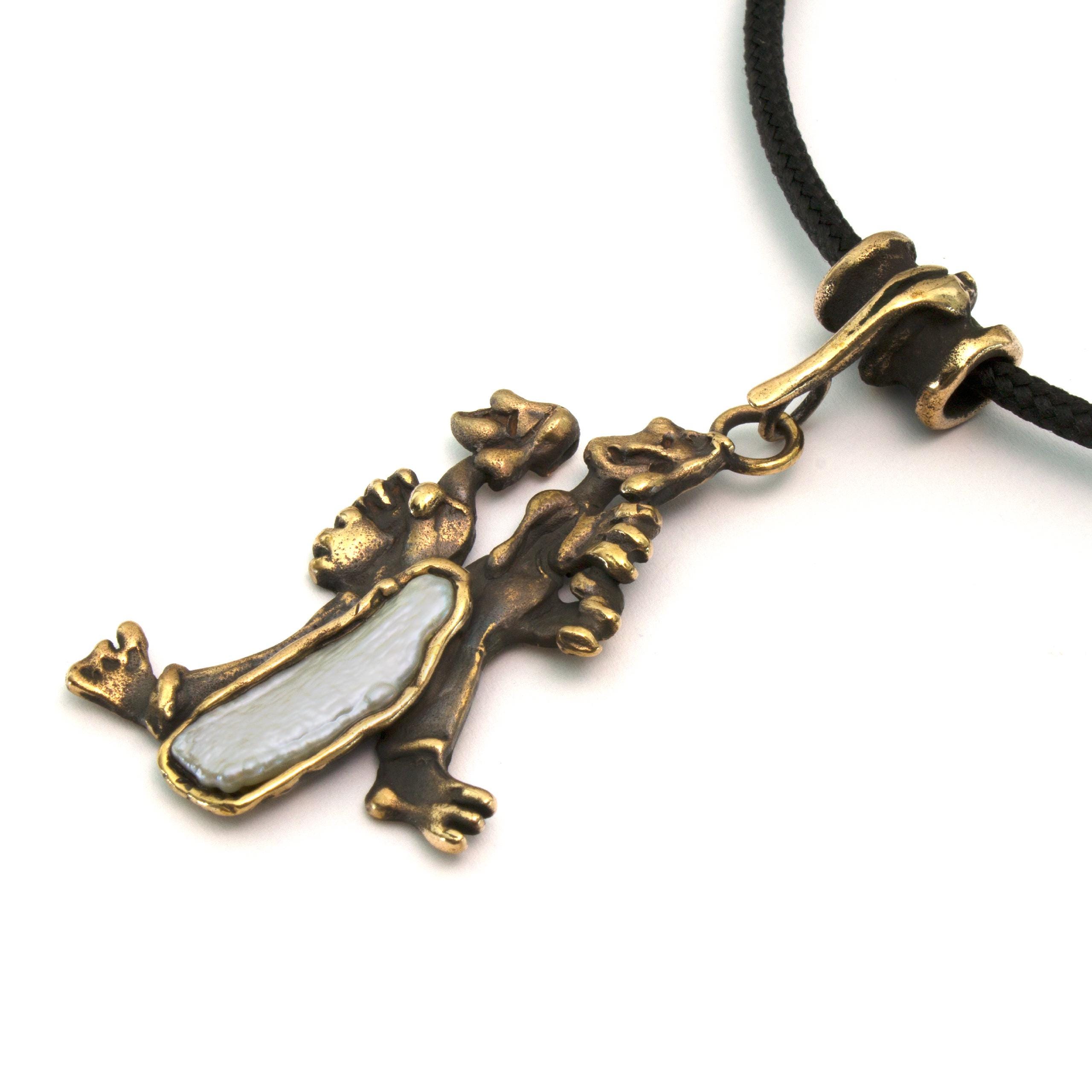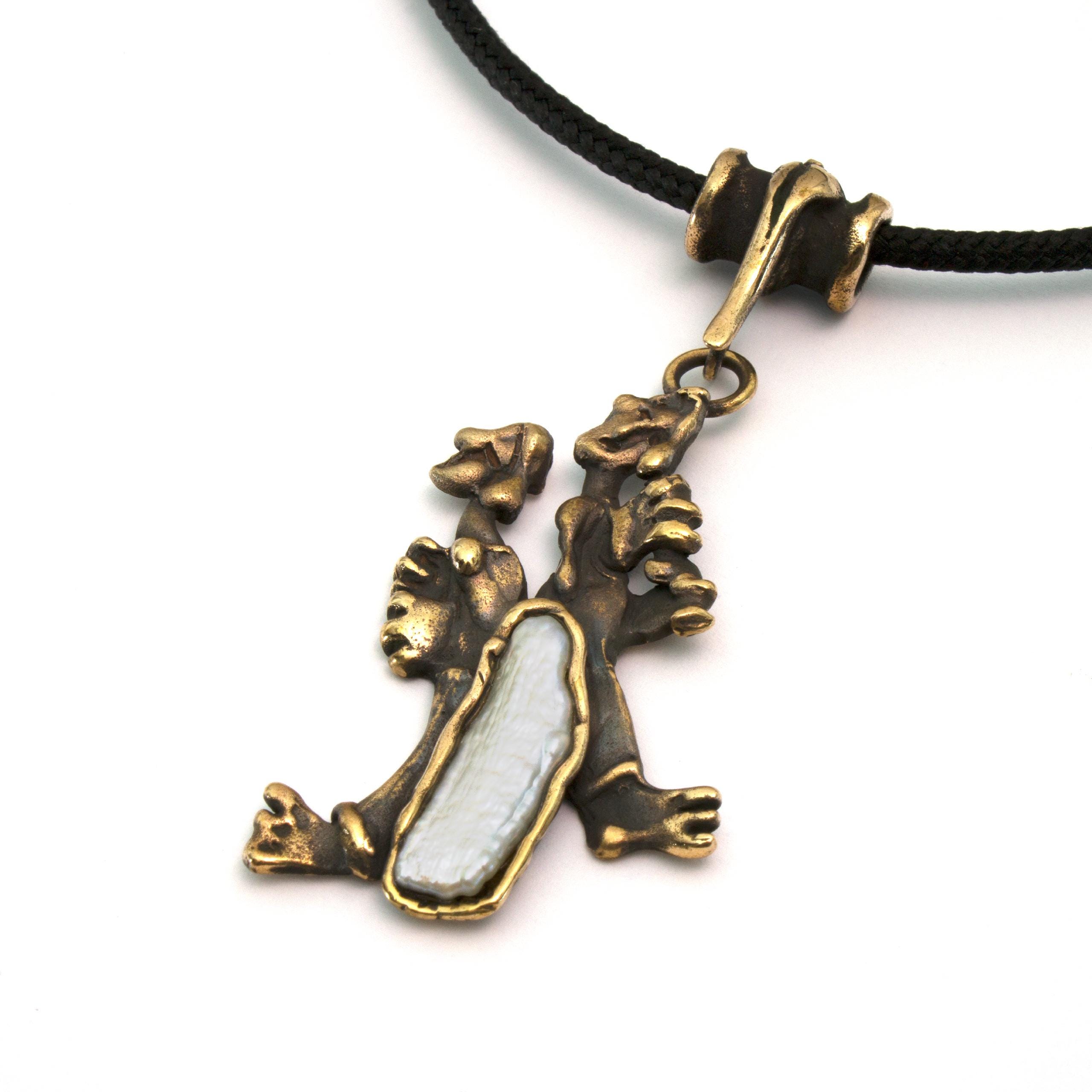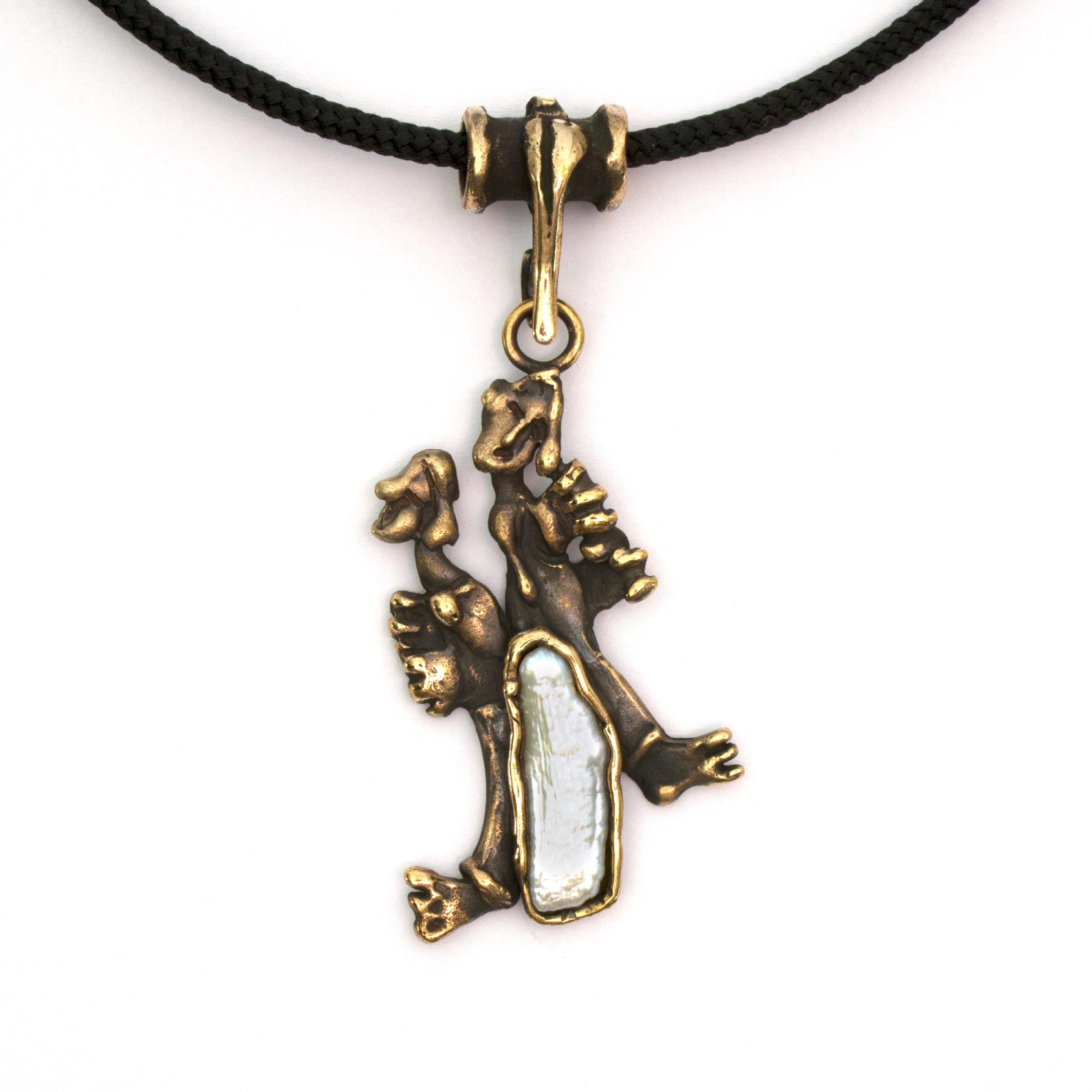 Bronze Pendant Necklace with Pearl by Vojtěška Vlčková Catalogue number: 252 Original title: Šumaři Author: Vojtěška Vlčková Production: Jaromíra Pavlíková Material: bronze Technology: lost wax casting