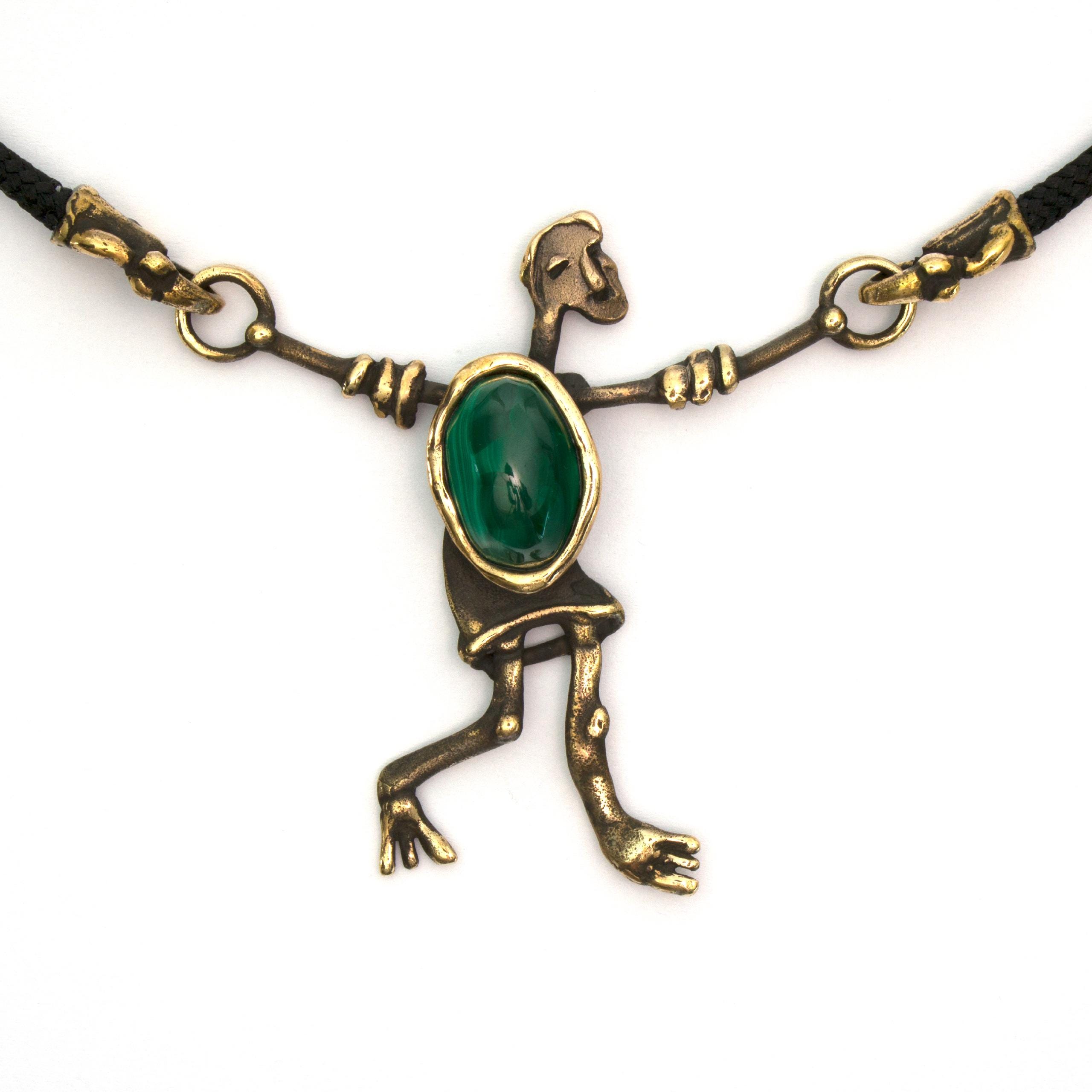 Bronze Necklace with Malachite by Vojtěška Vlčková