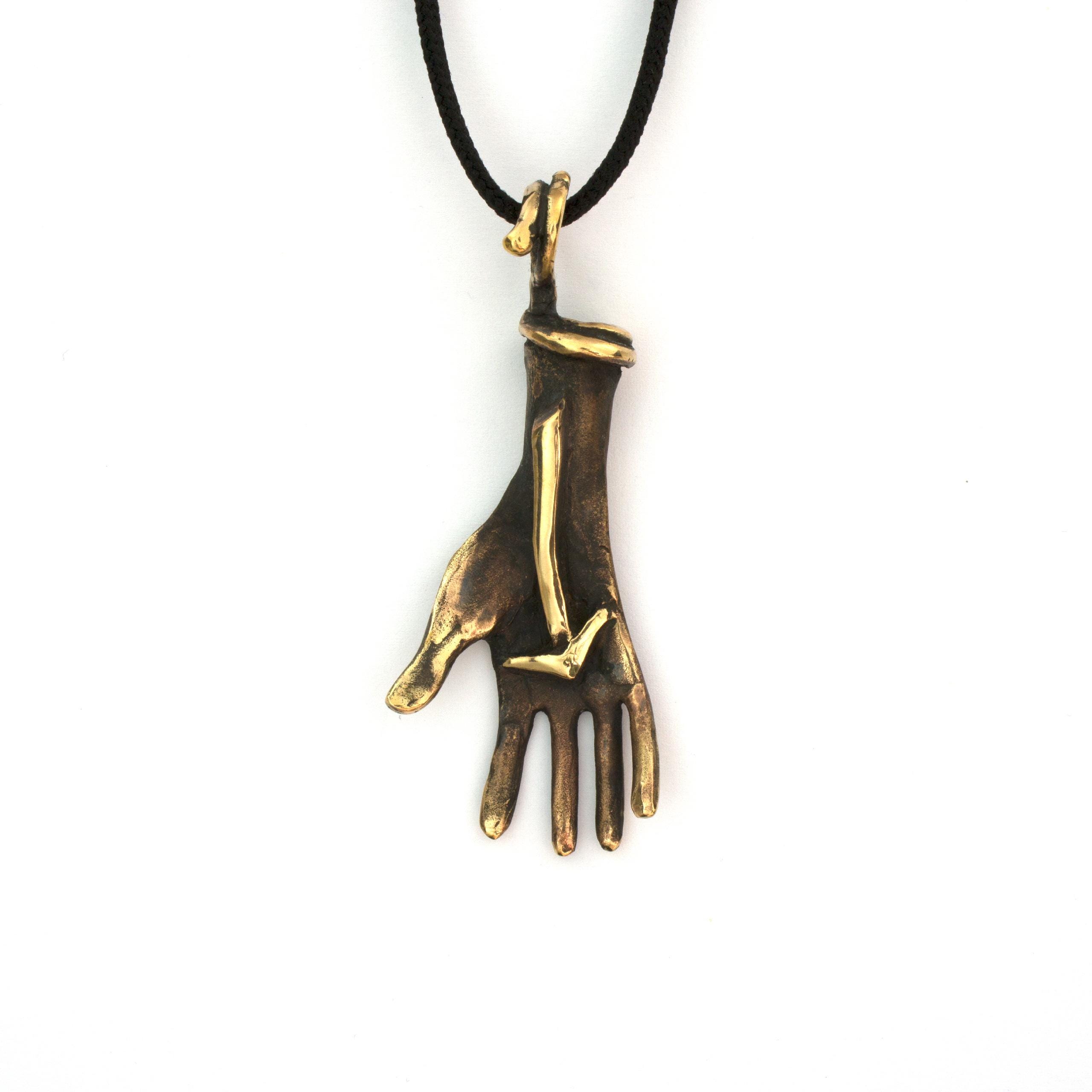Bronze Pendant Necklace by Vojtěška Vlčková Catalogue number: 266 Original title: Ruka šipka visící Author: Vojtěška Vlčková Production: Jaromíra Pavlíková Material: bronze Technology: lost wax casting