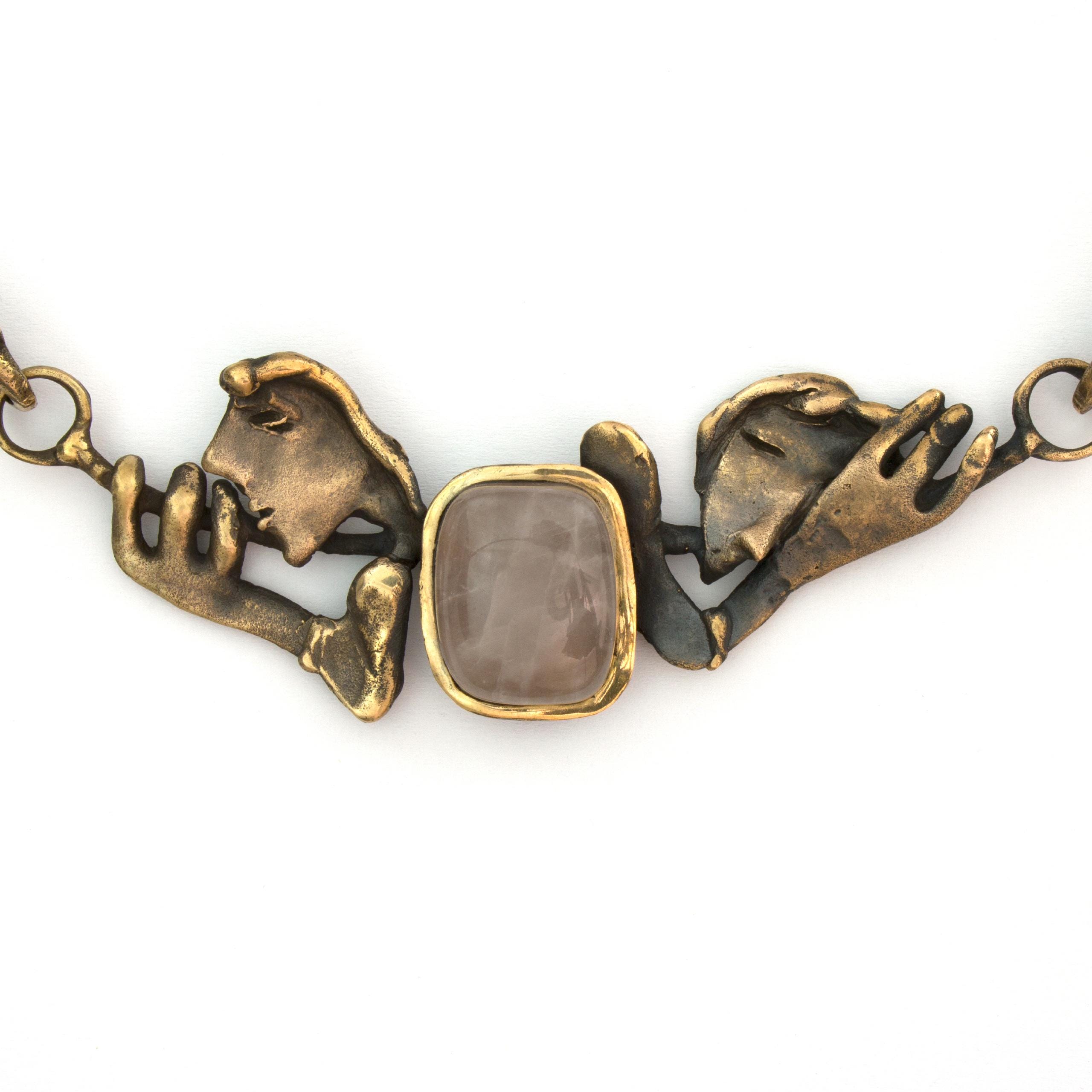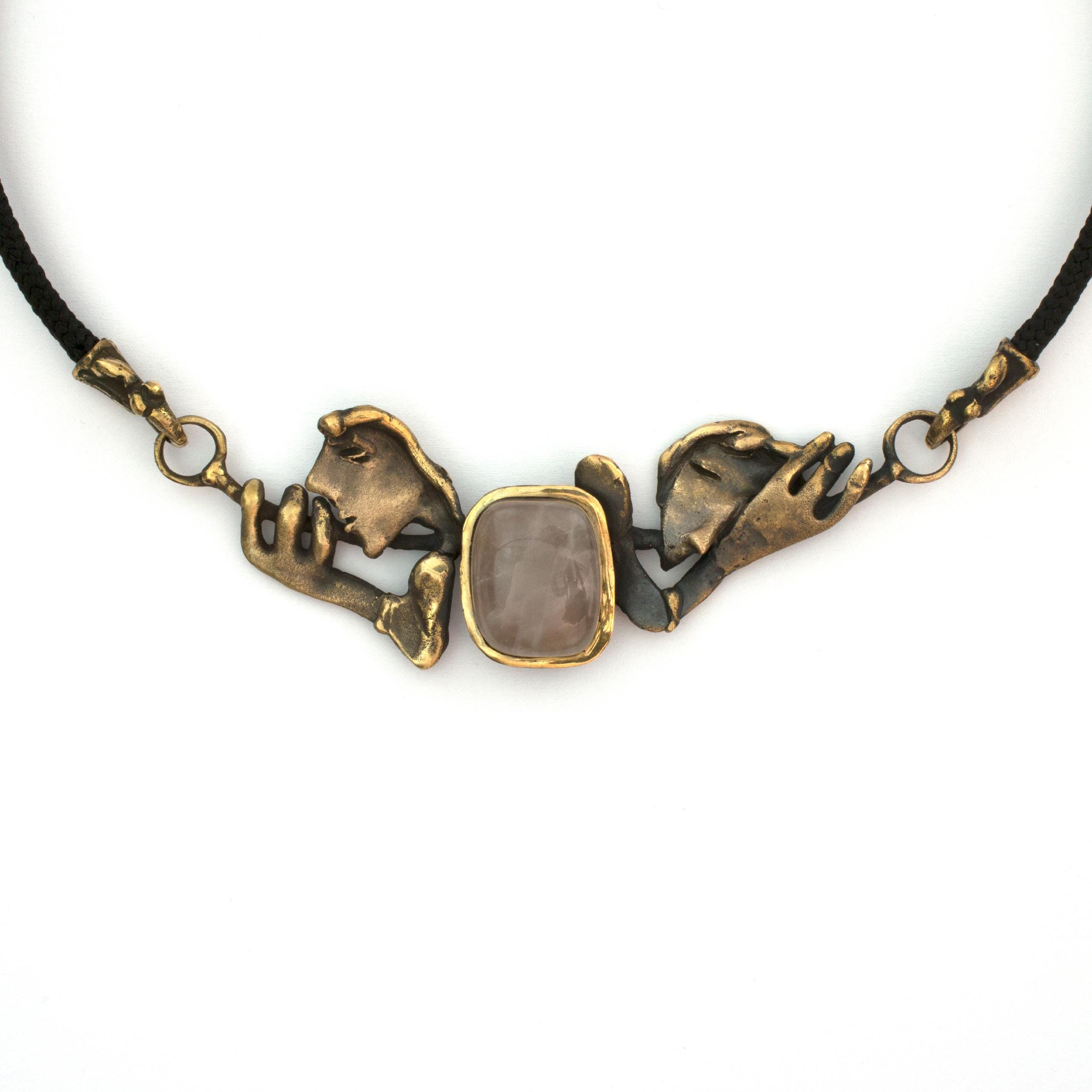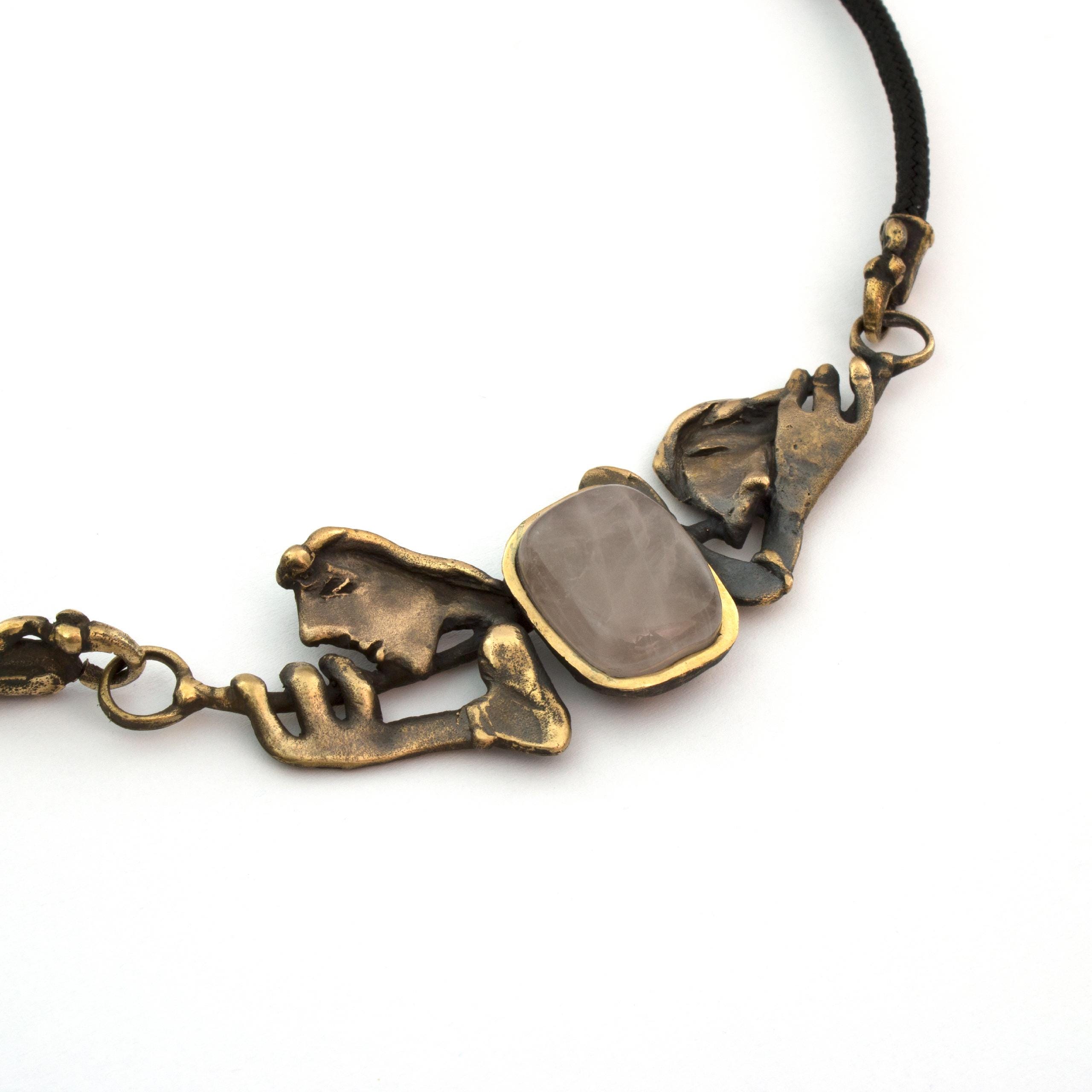 Bronze Necklace with Rose Quartz by Vojtěška Vlčková Catalogue number: 269 Original title: Šípkový Růženek Author: Vojtěška Vlčková Production: Jaromíra Pavlíková Material: bronze Technology: lost wax casting