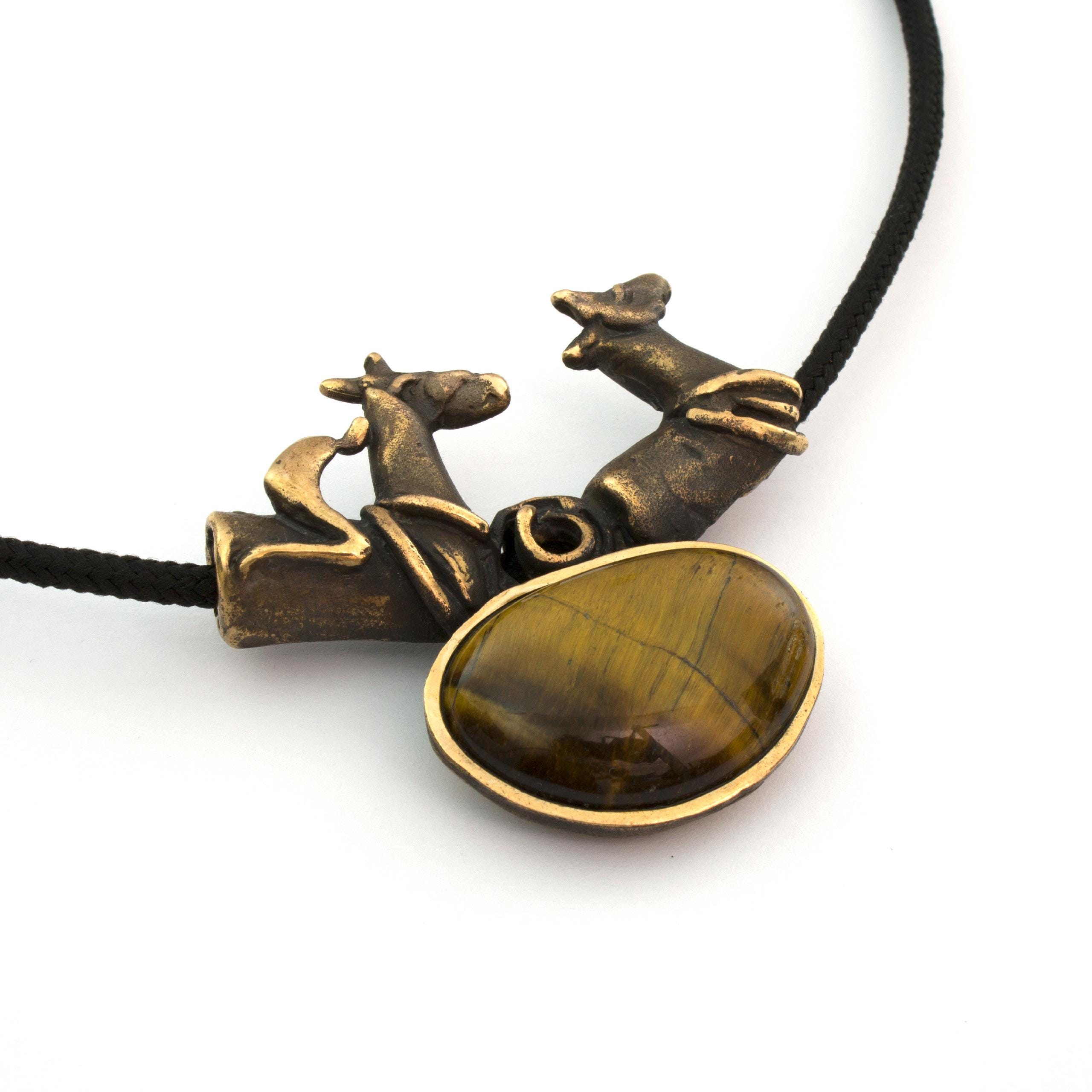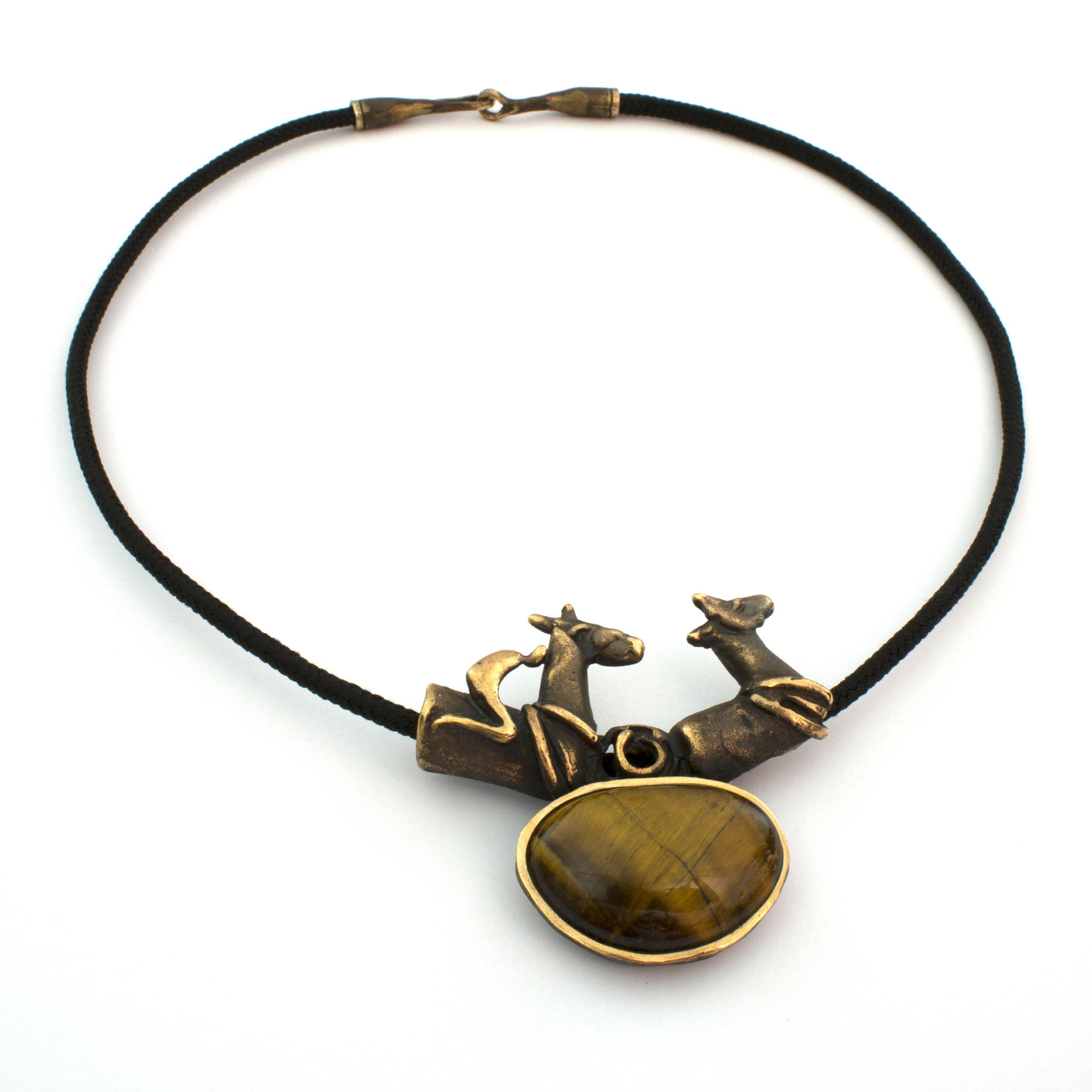 Bronze Necklace with Tiger's Eye by Vojtěška Vlčková Catalogue number: 278 Author: Vojtěška Vlčková Production: Jaromíra Pavlíková Material: bronze Technology: lost wax casting