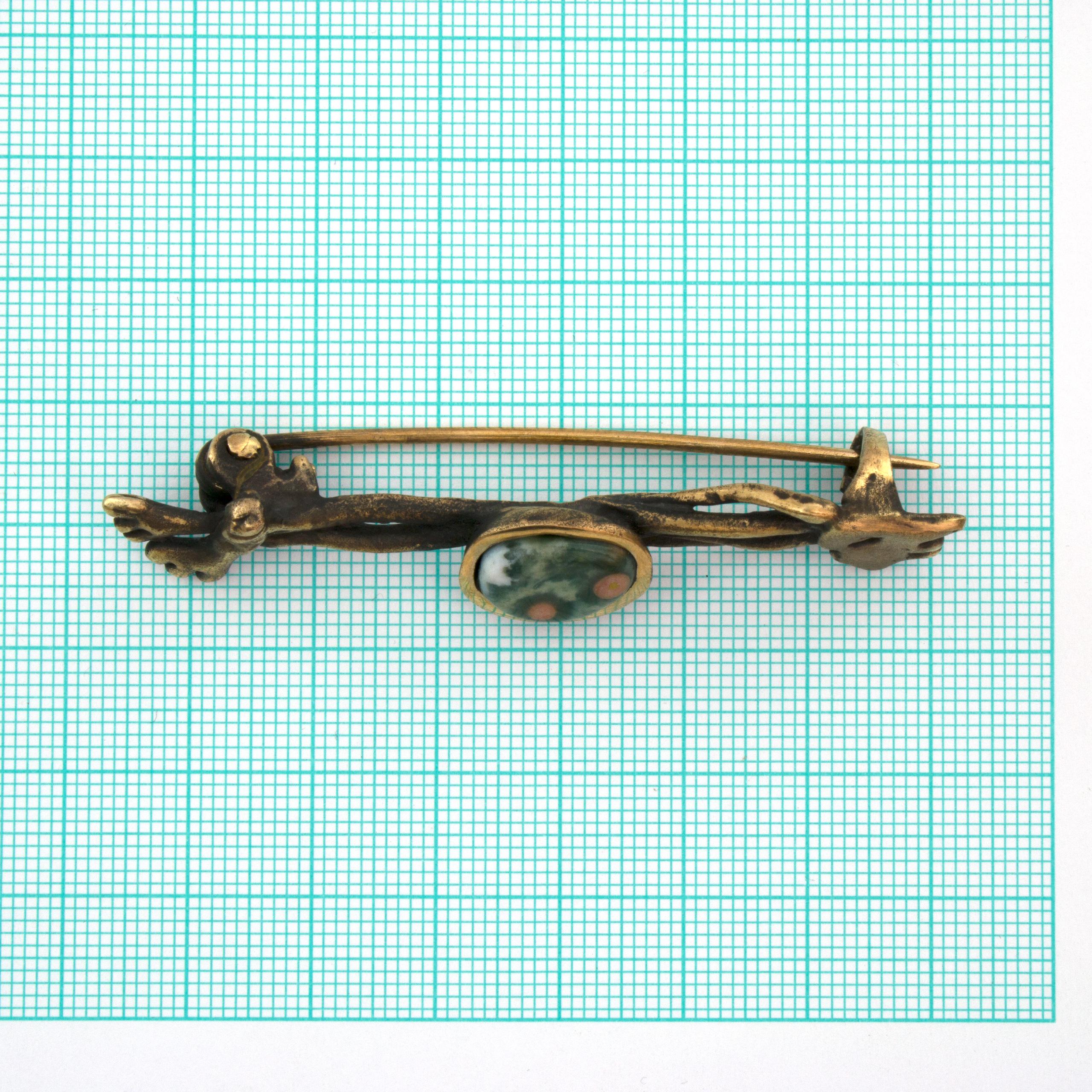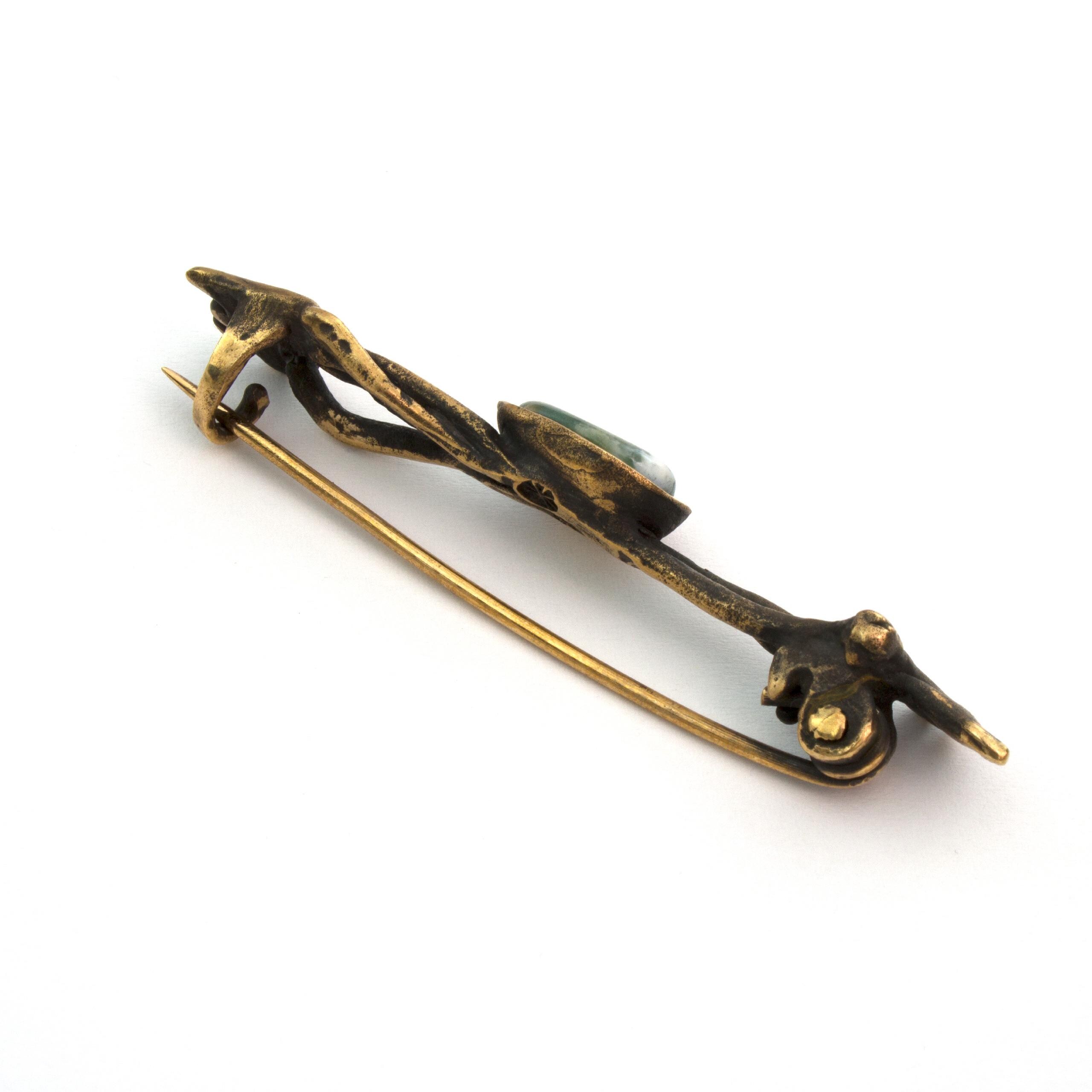 An original bronze brooch with jasper by Czech sculptor and jewelry artist Vojtěška Vlčková, combining natural stone with refined artistic craftsmanship. A distinctive collectible piece of timeless elegance.