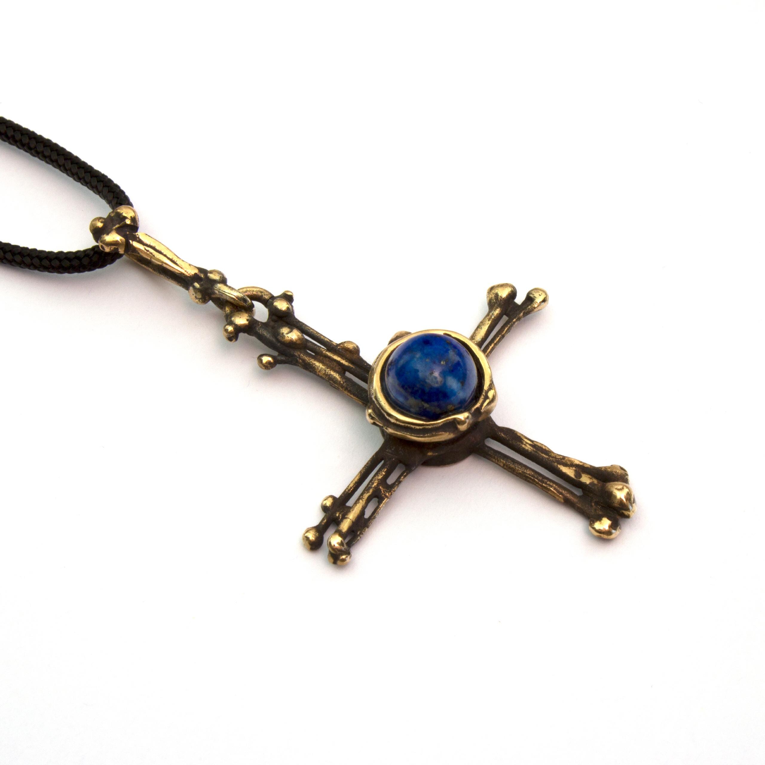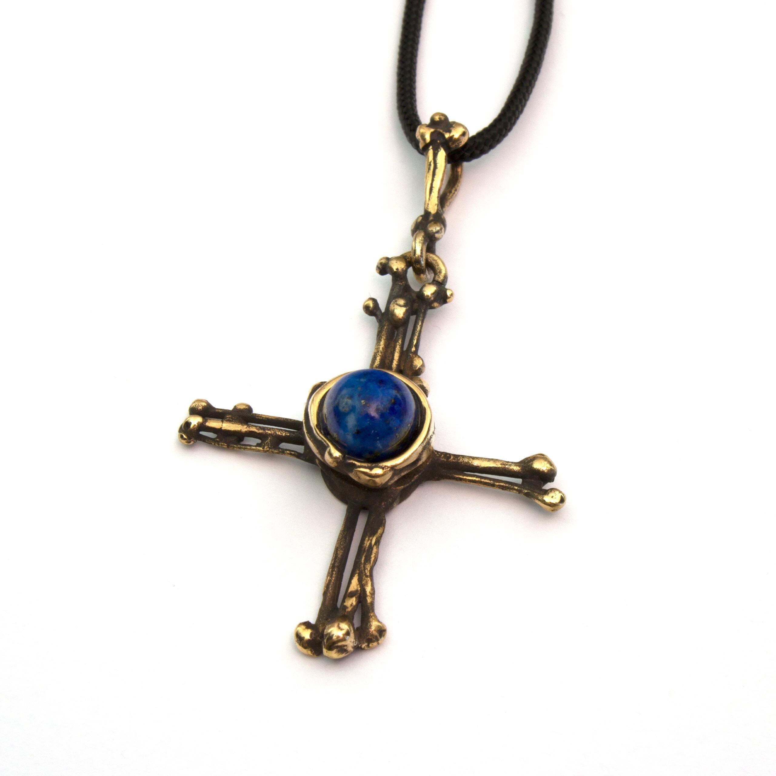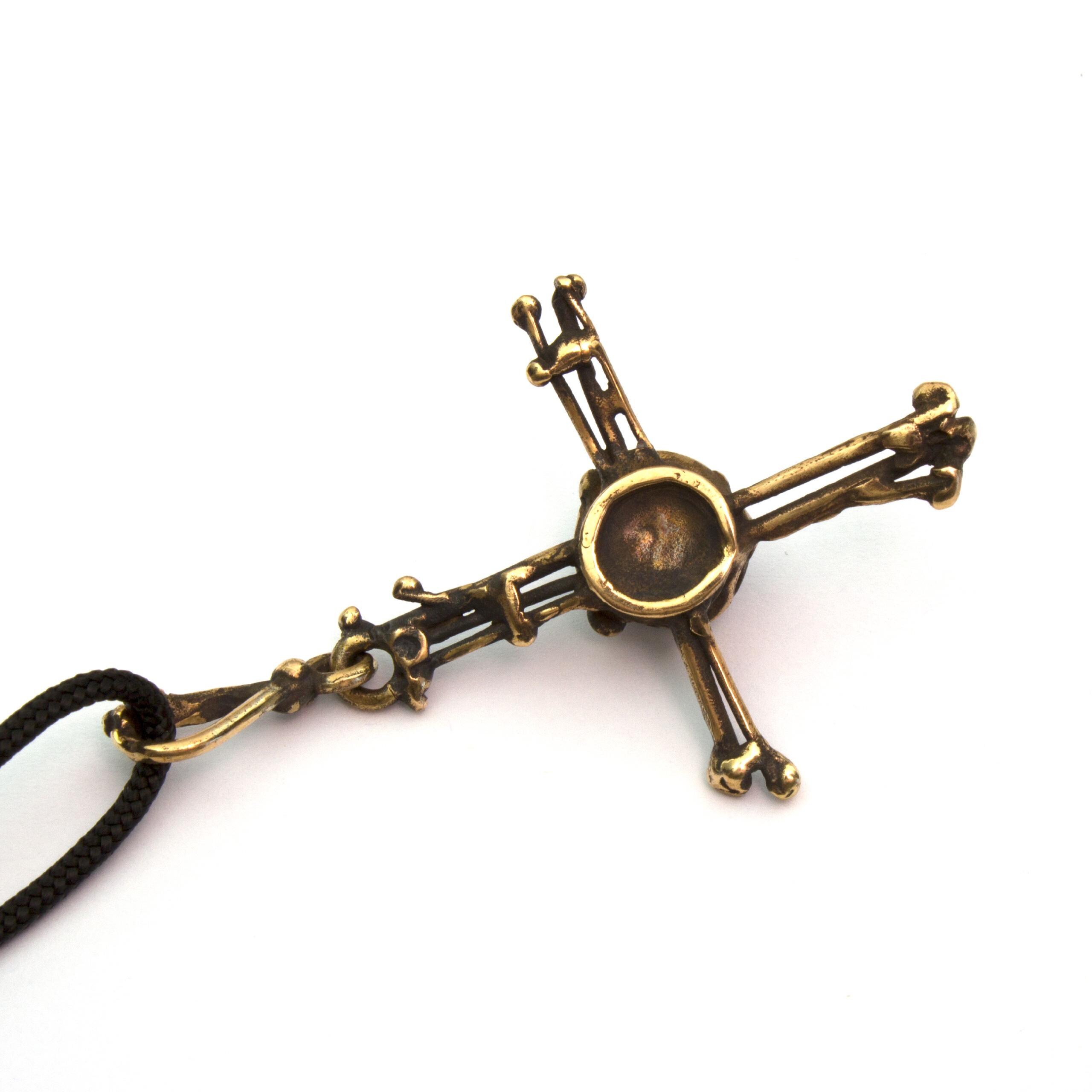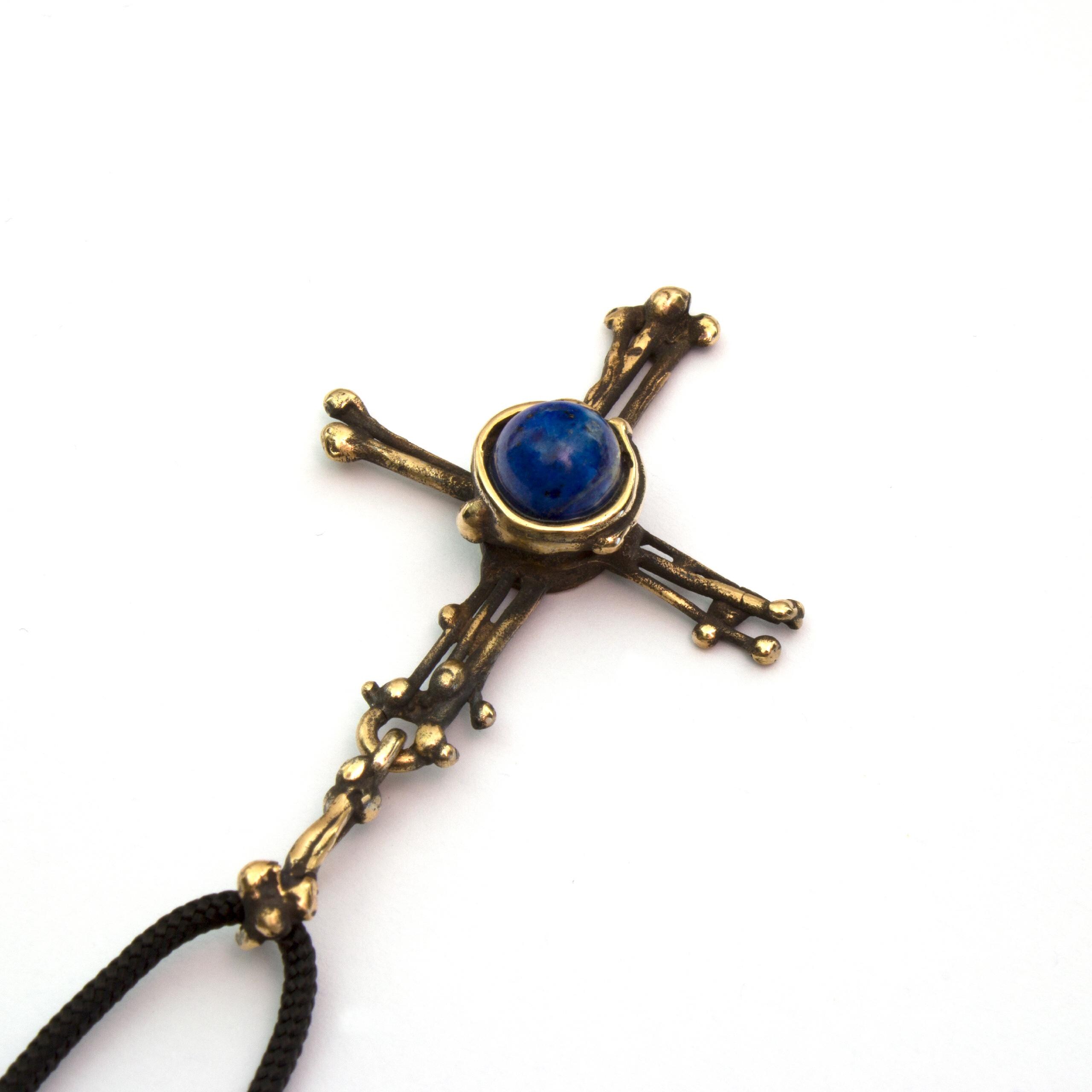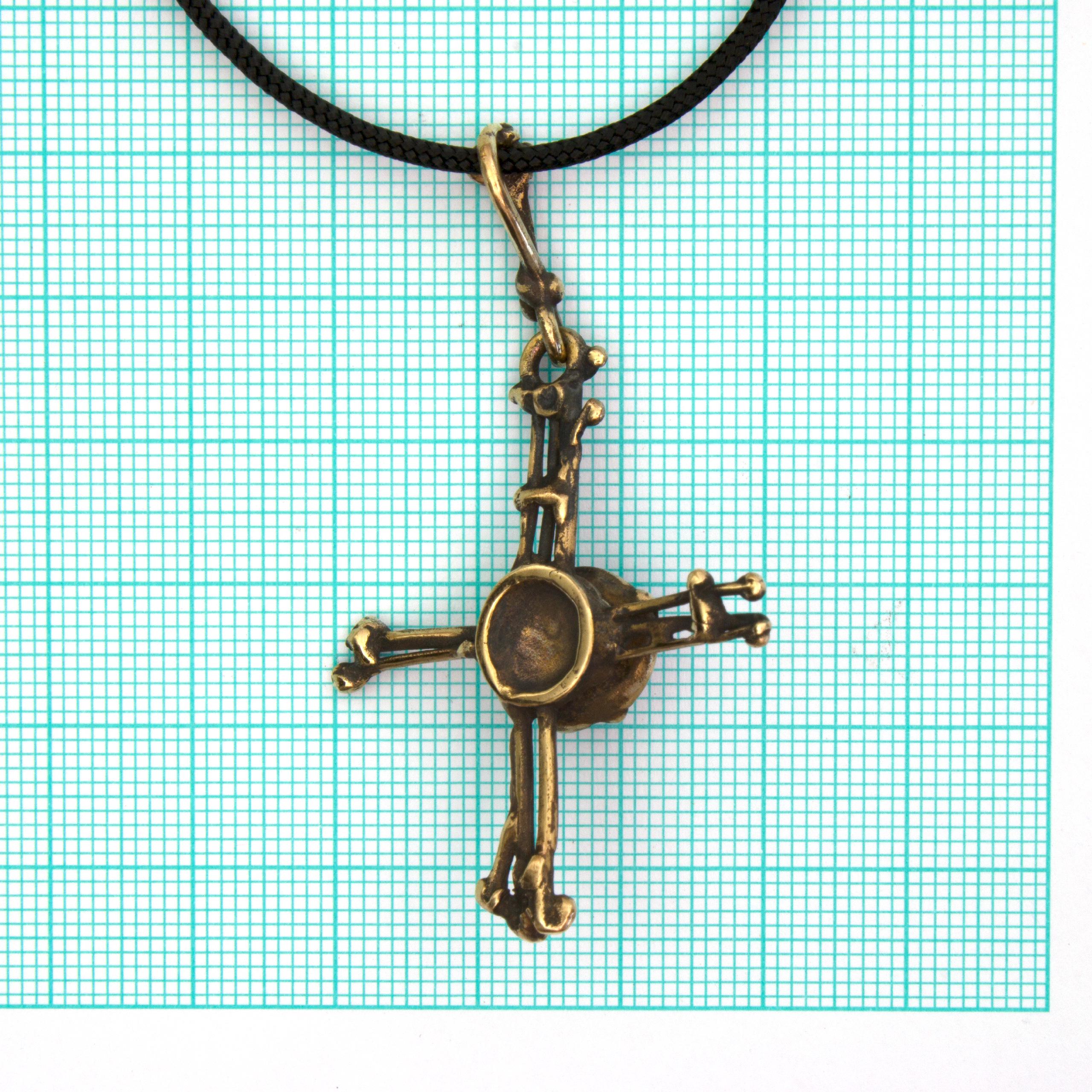Bronze Pendant Necklace by Vojtěška Vlčková Catalogue number: 304 Original title: Křížek s perlou Author: Vojtěška Vlčková Production: Jaromíra Pavlíková Material: bronze Technology: lost wax casting