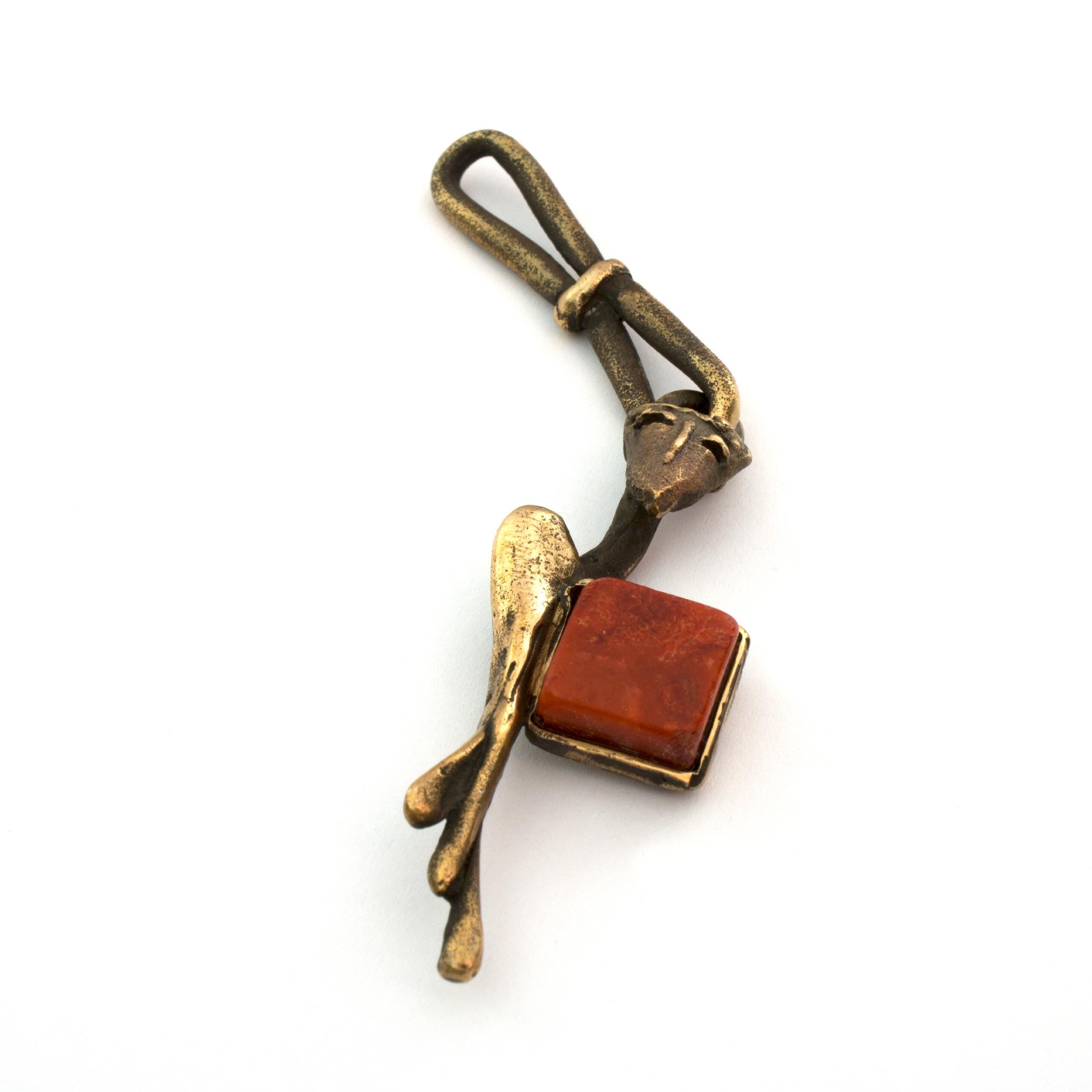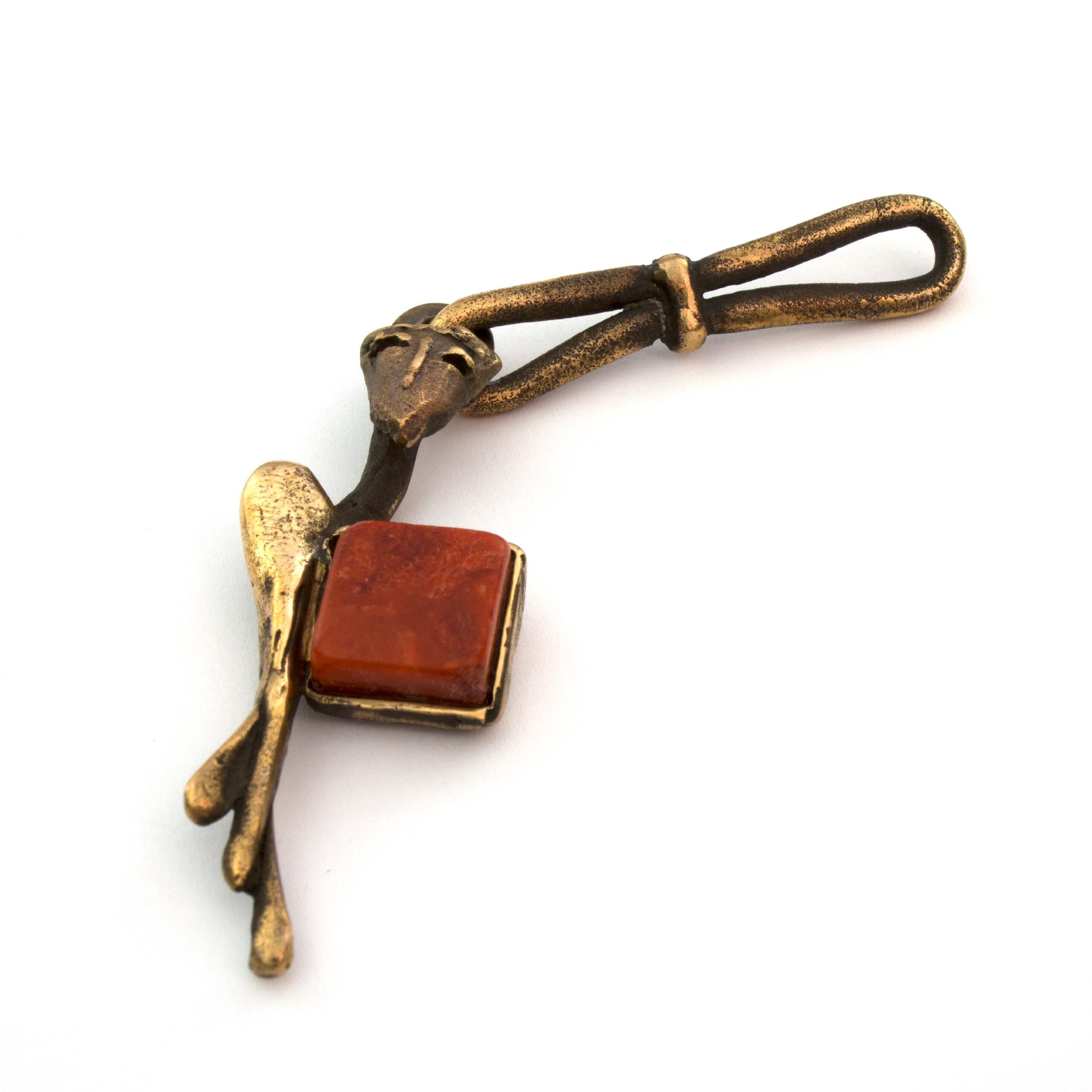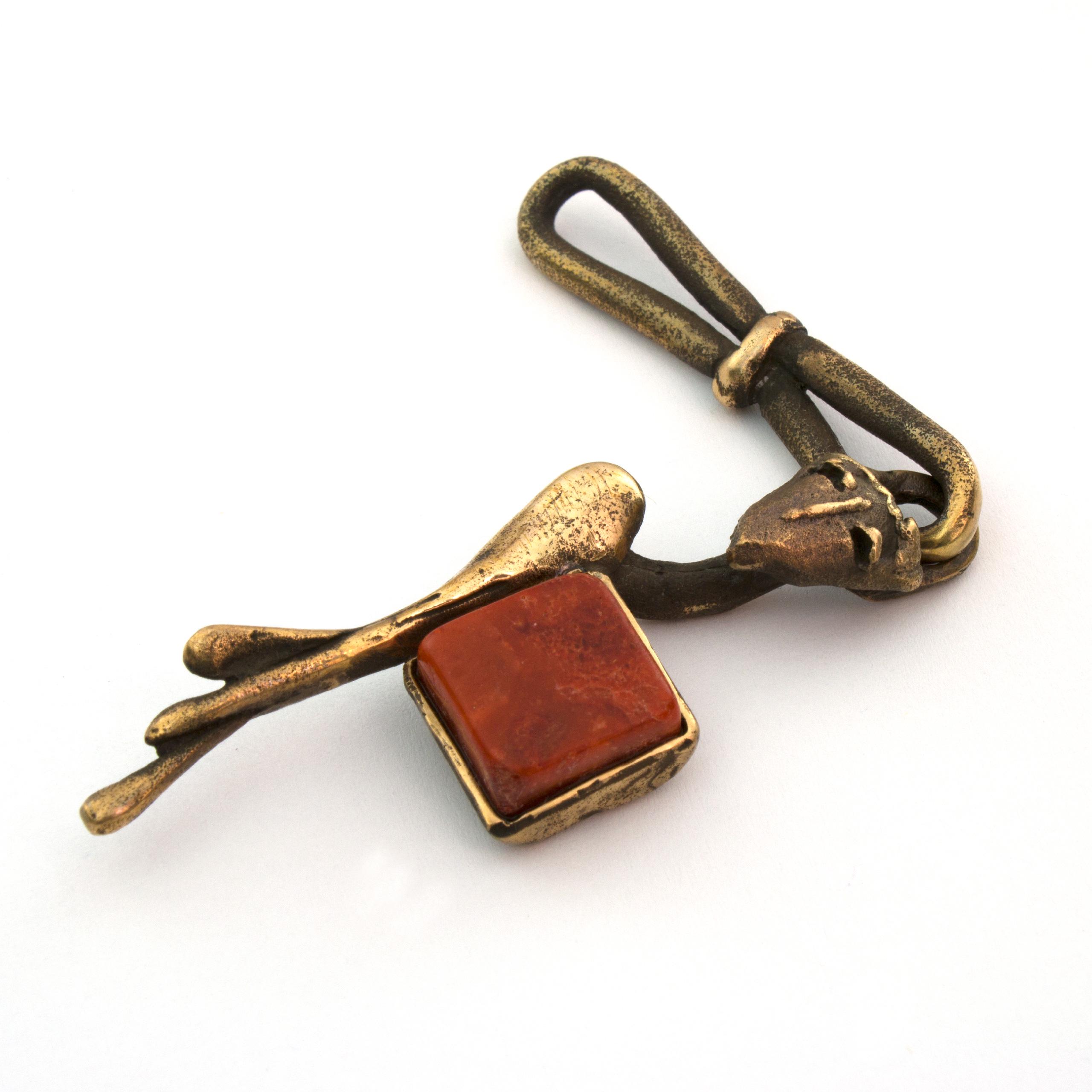 Elegant bronze keychain pendant featuring an angel motif with natural coral by Vojtěška Vlčková. This exclusive art piece combines traditional craftsmanship with timeless design. Every detail reflects the author's mastery and the uniqueness of handmade work.
