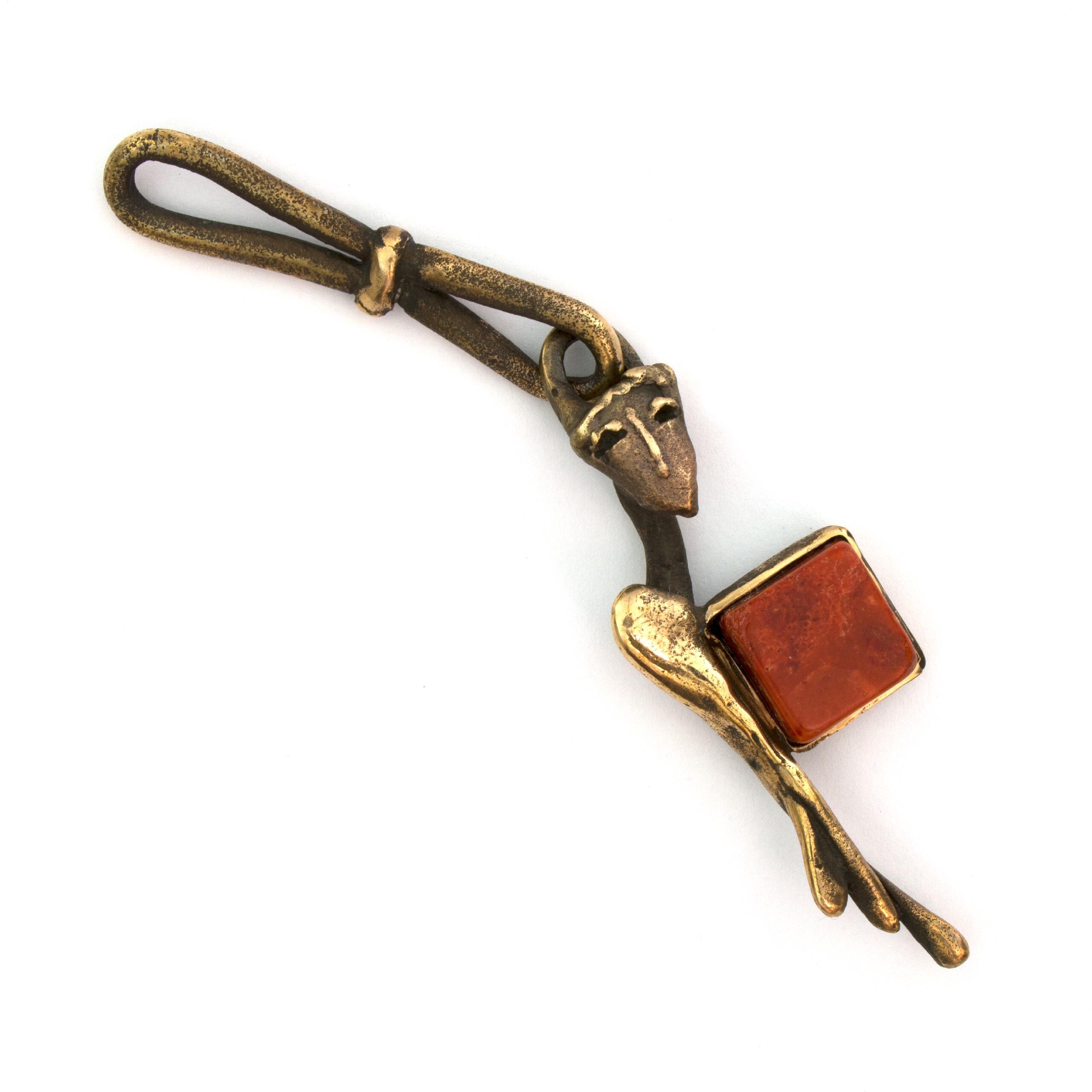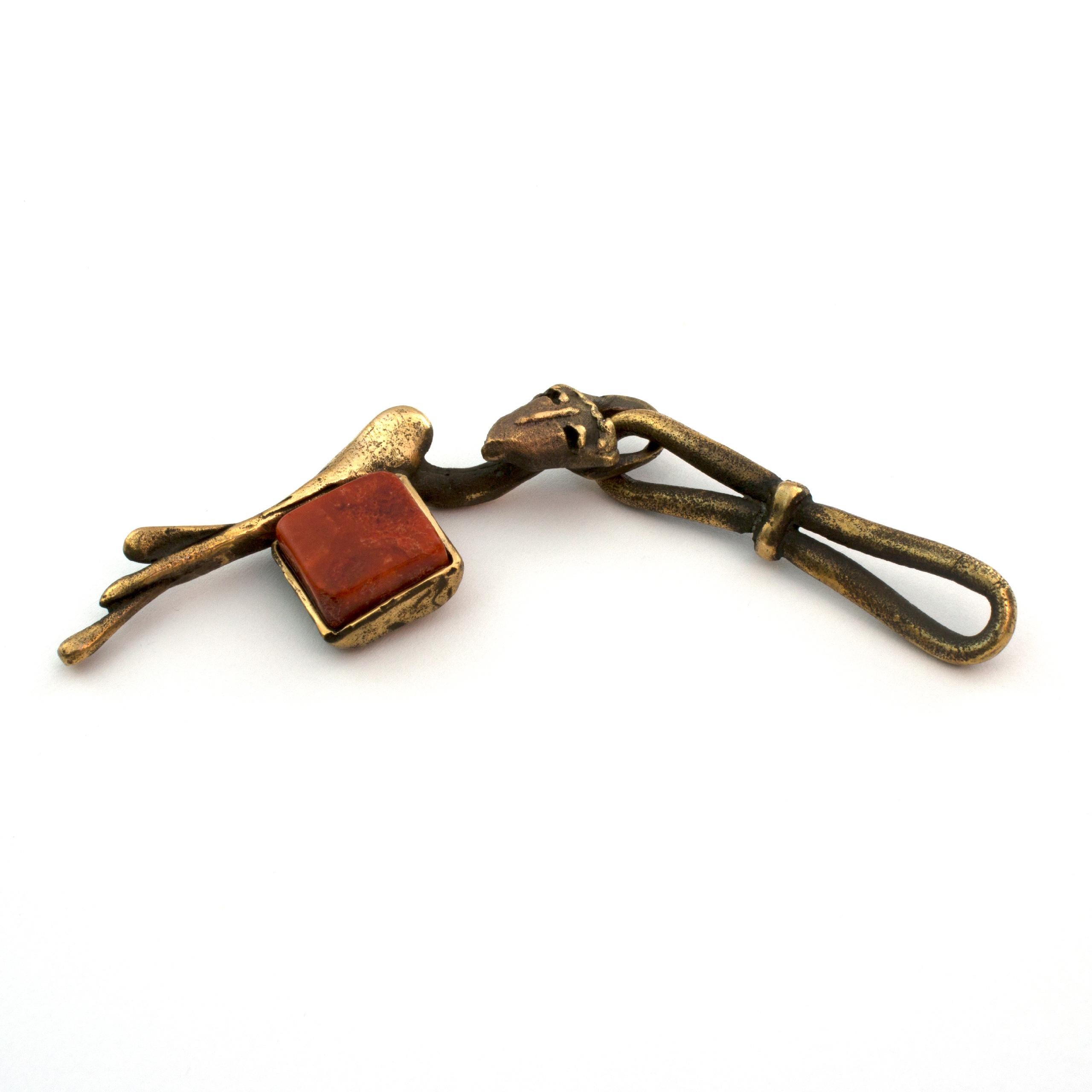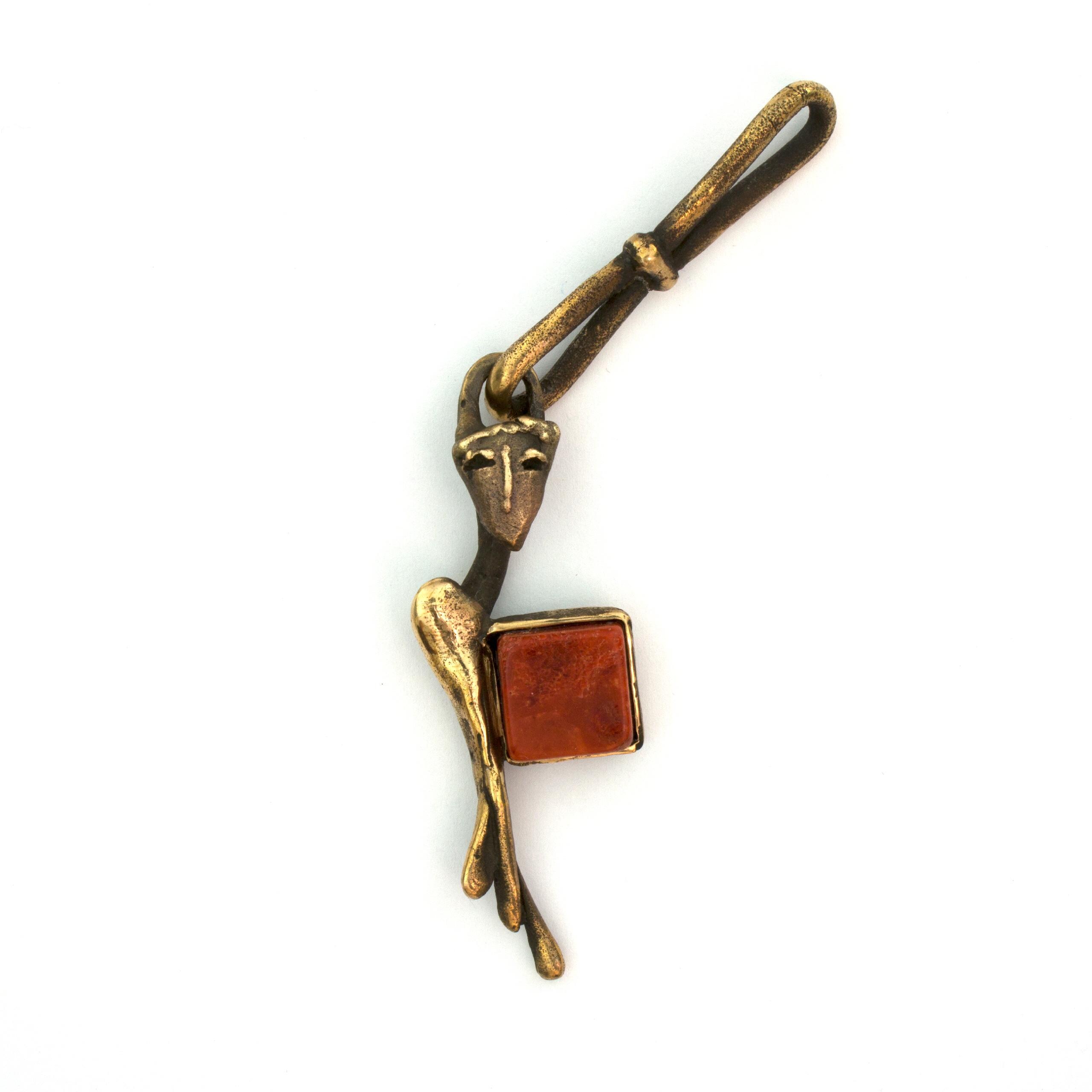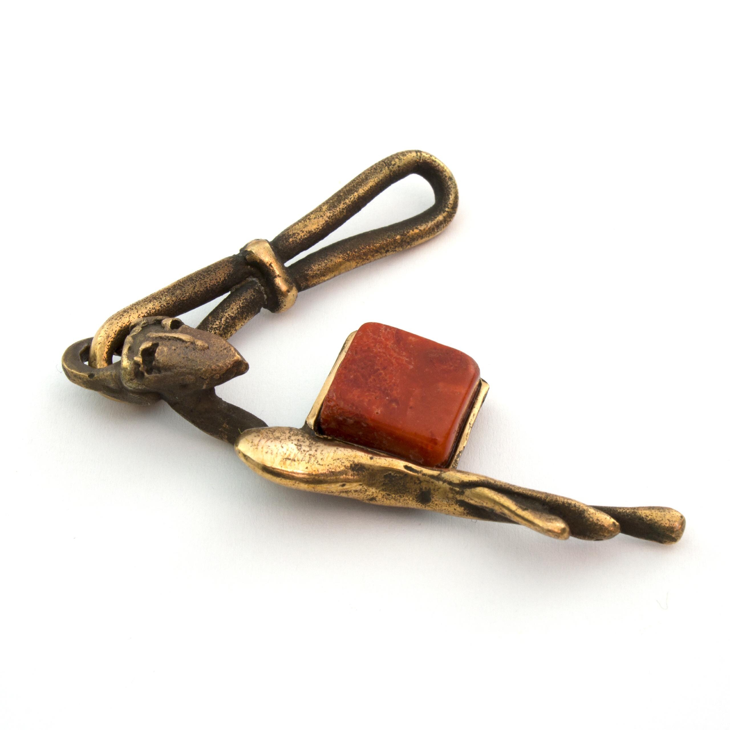 Elegant bronze keychain pendant featuring an angel motif with natural coral by Vojtěška Vlčková. This exclusive art piece combines traditional craftsmanship with timeless design. Every detail reflects the author's mastery and the uniqueness of handmade work.
