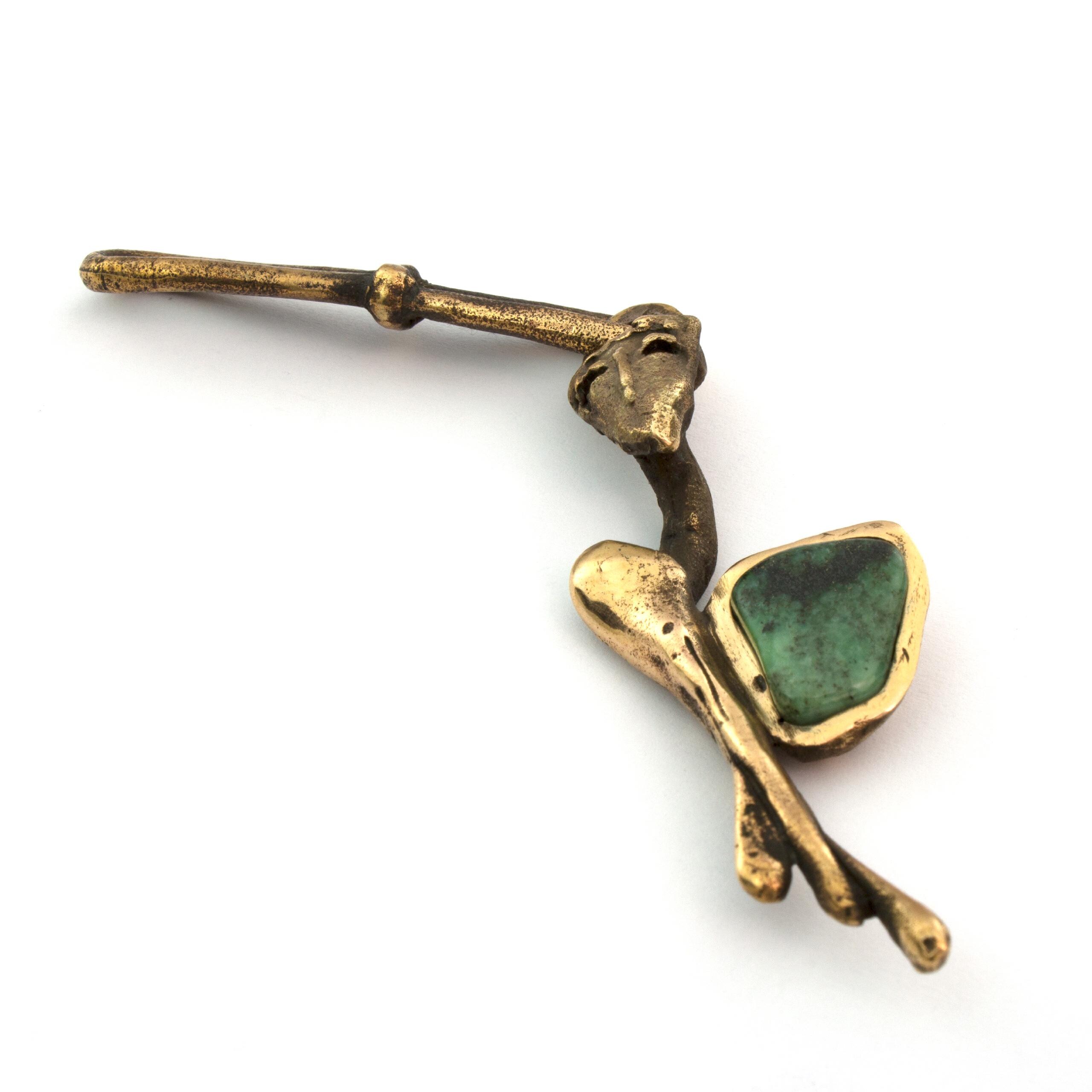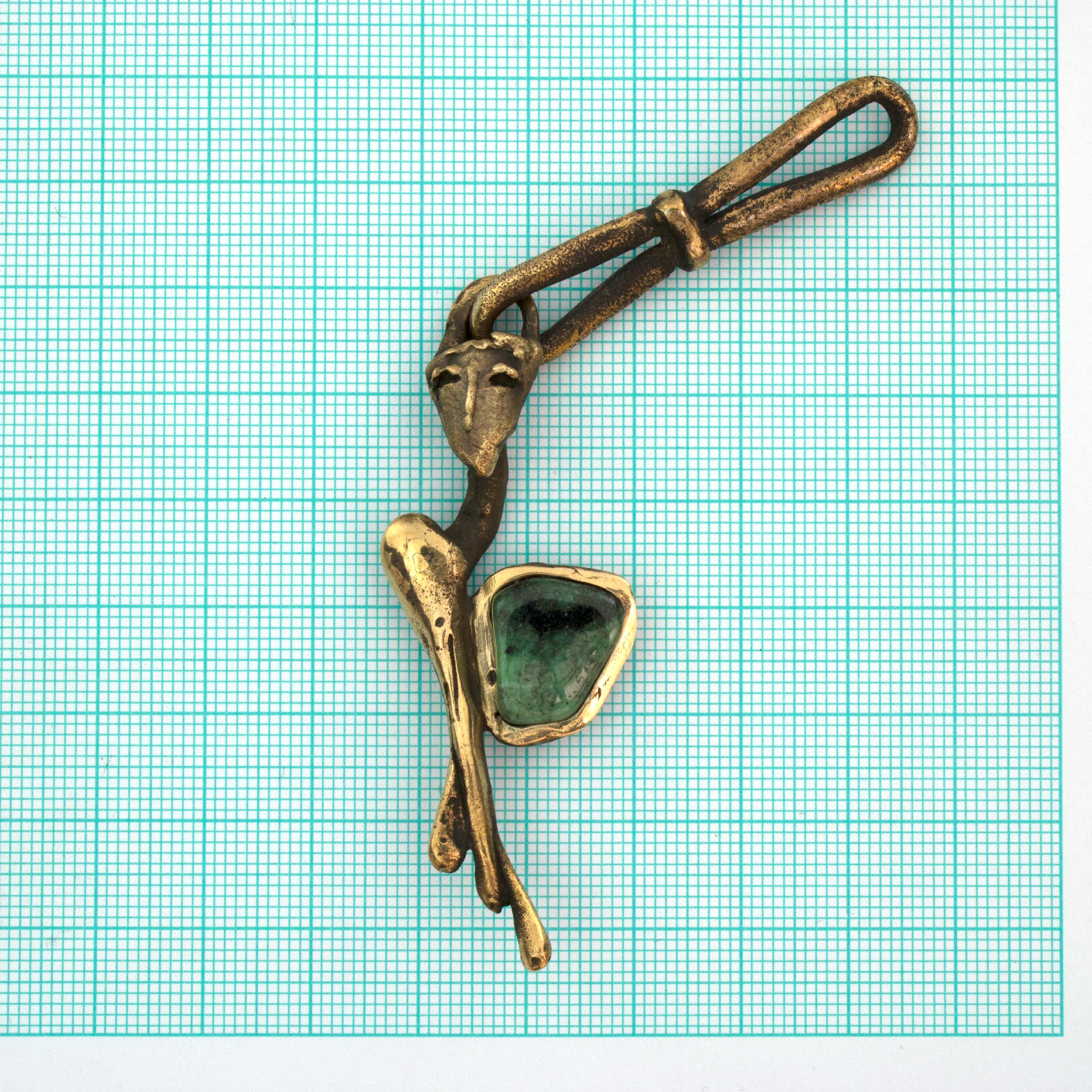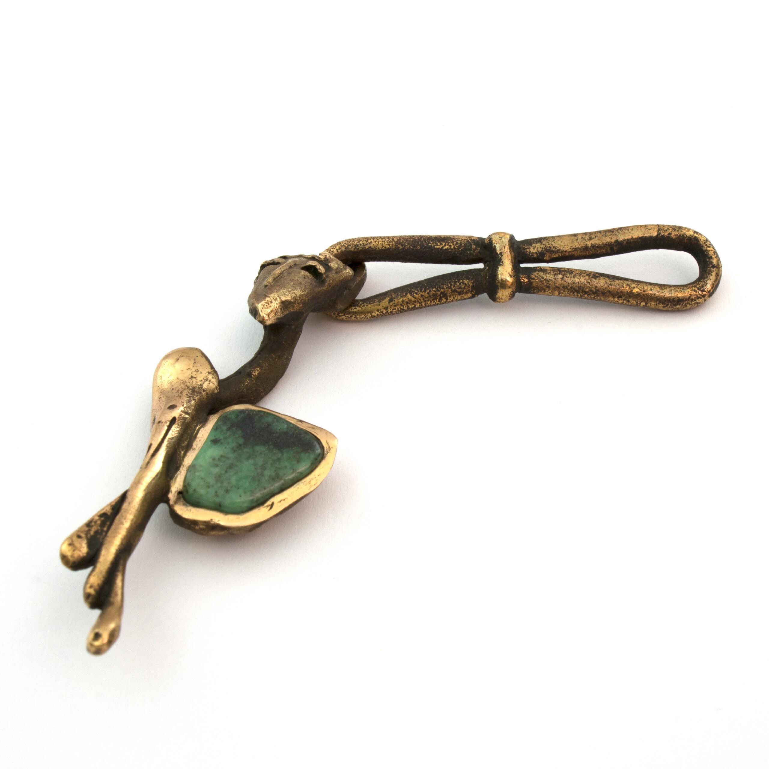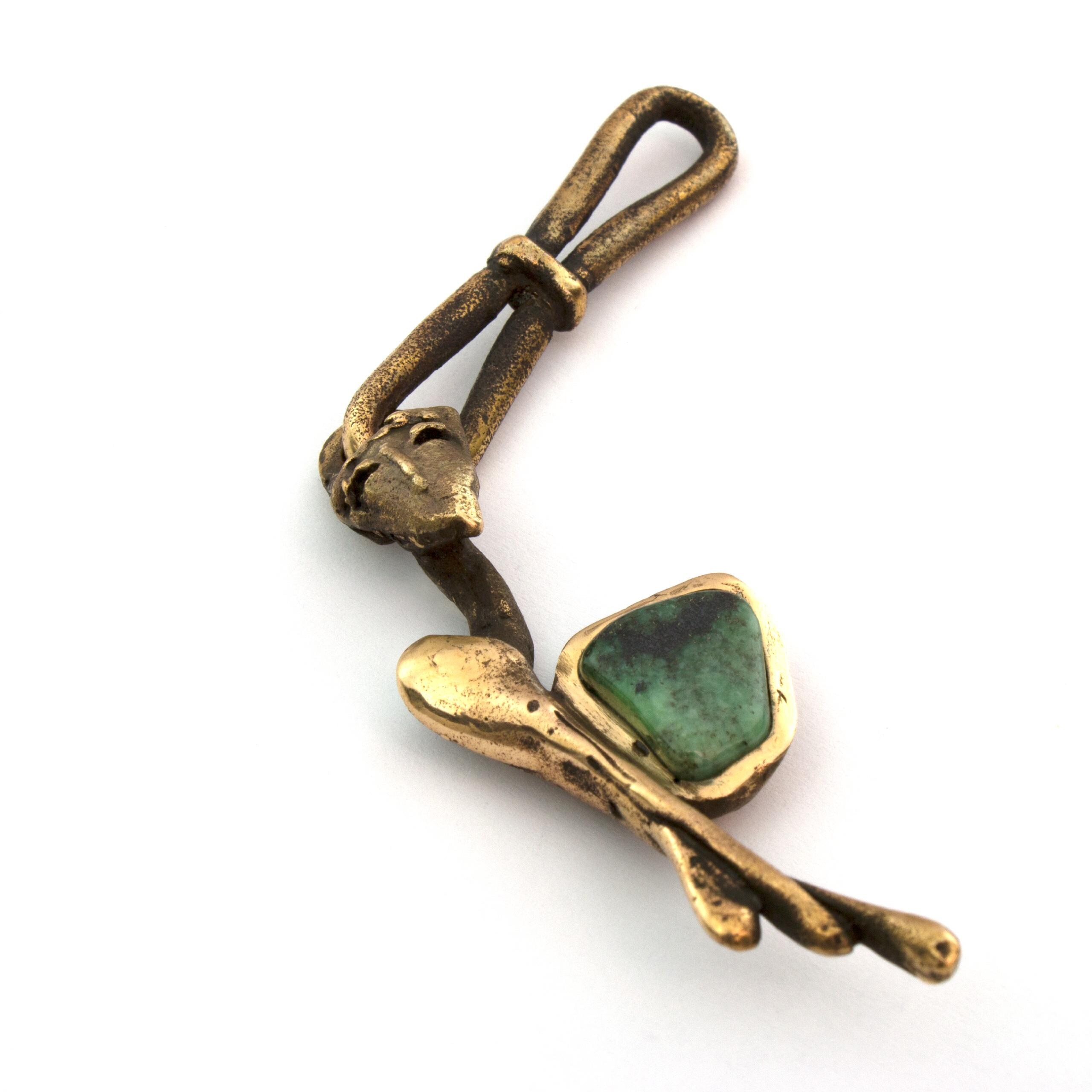 This angelic pendant by Vojtěška Vlčková (1948-2023) represents the perfect fusion of artistic vision and practical use. Patinated bronze, crafted using the lost wax casting technique, creates an intimate sculptural work that can be carried along. With natural jasper at the heart of the composition, this piece becomes a personal talisman – a small but powerful artistic statement that transforms an ordinary moment into an encounter with beauty.
