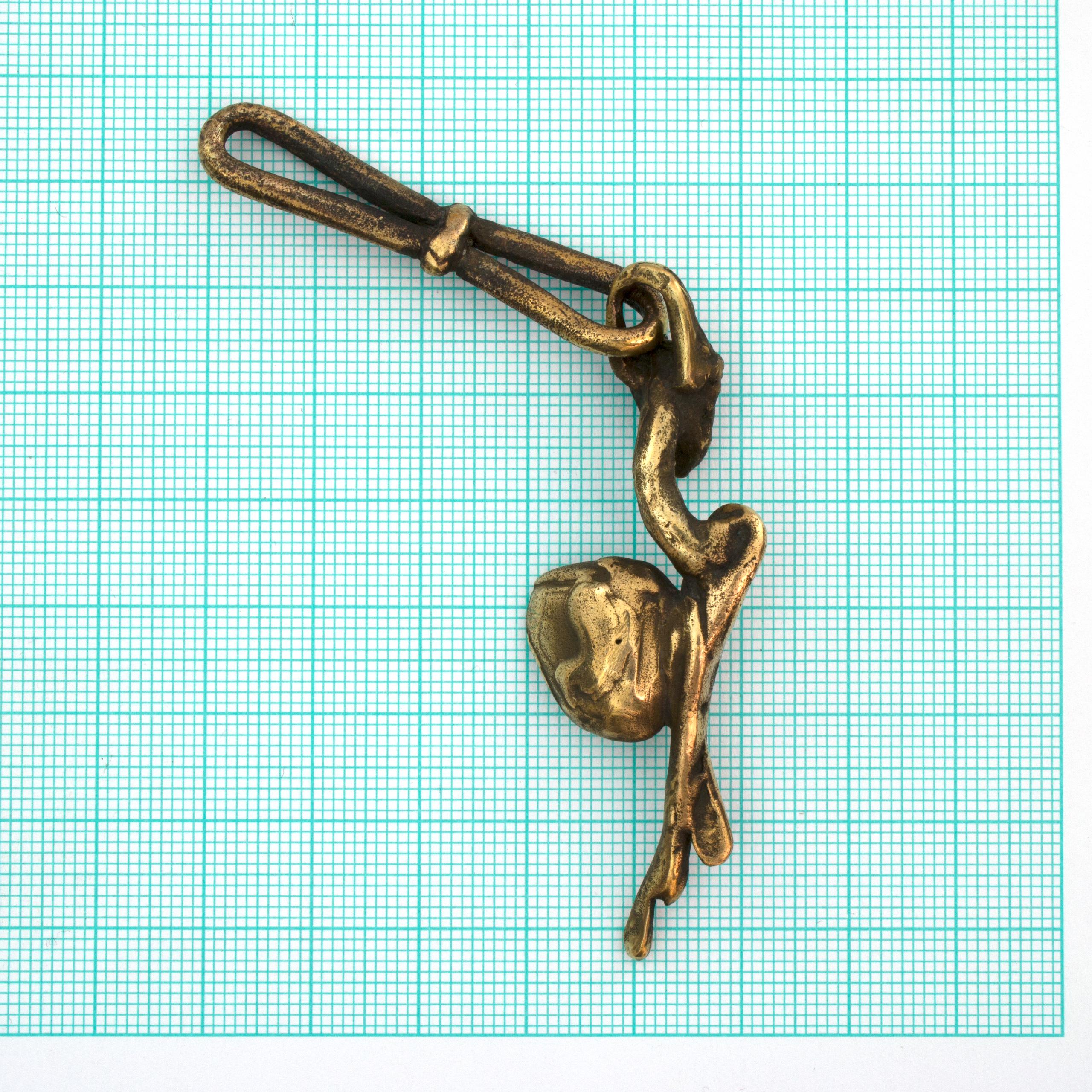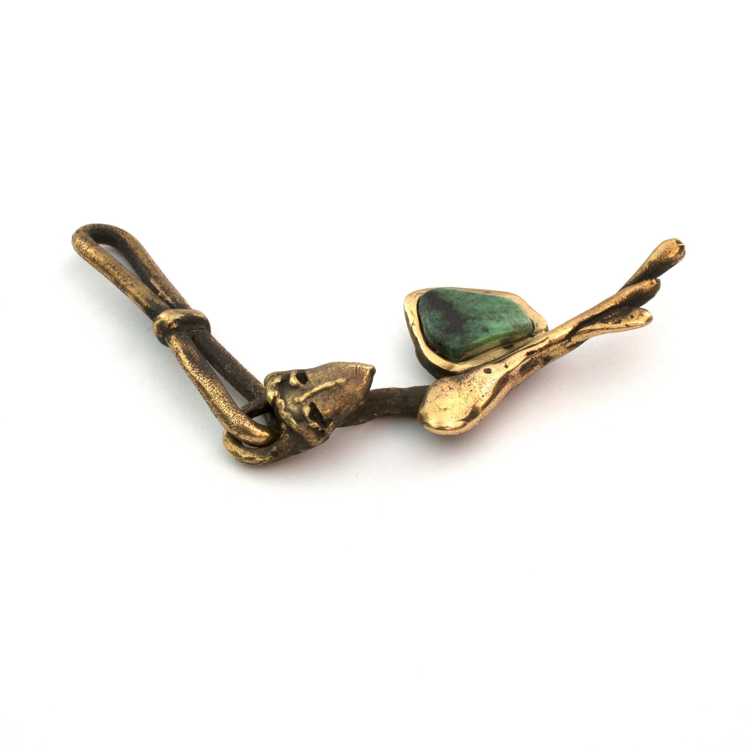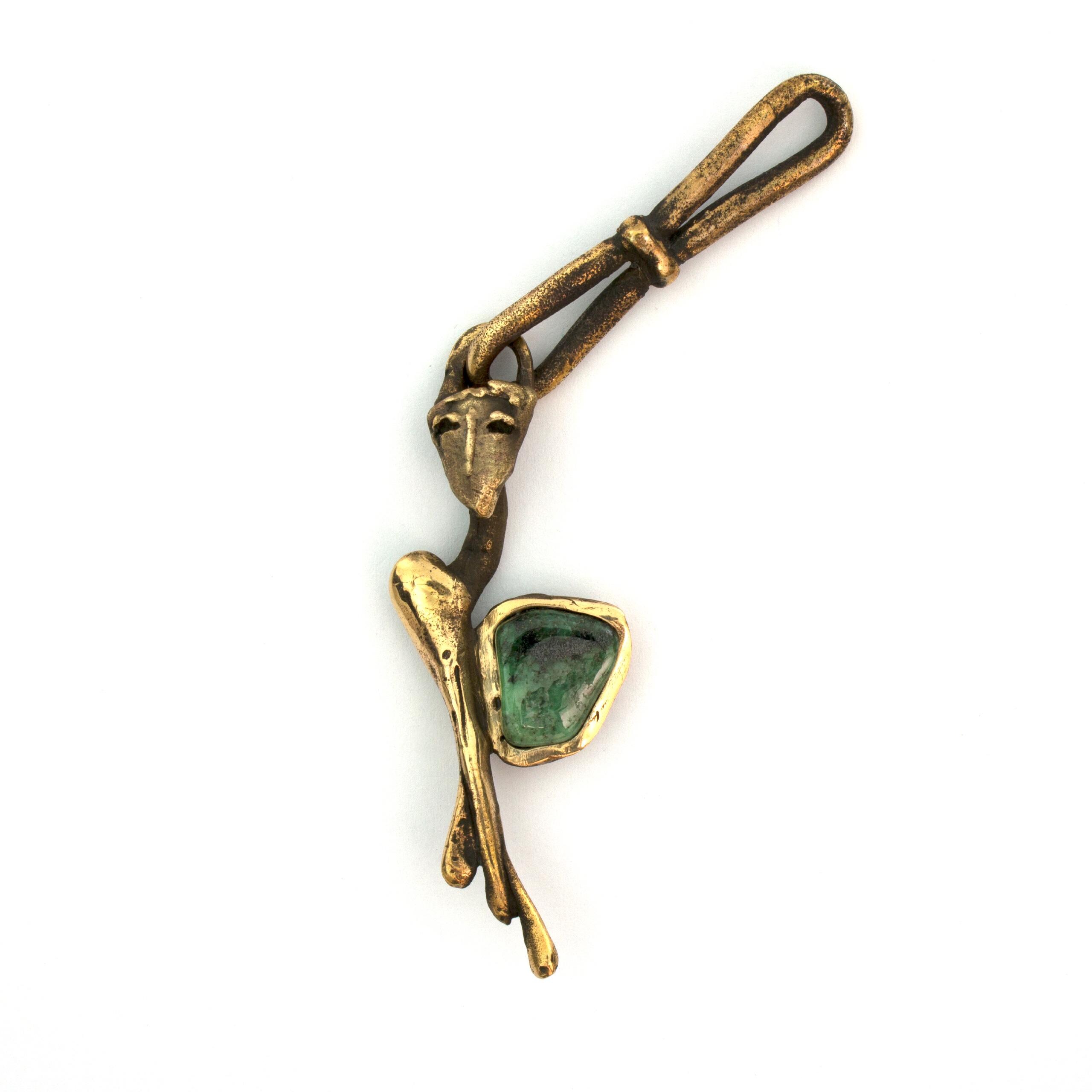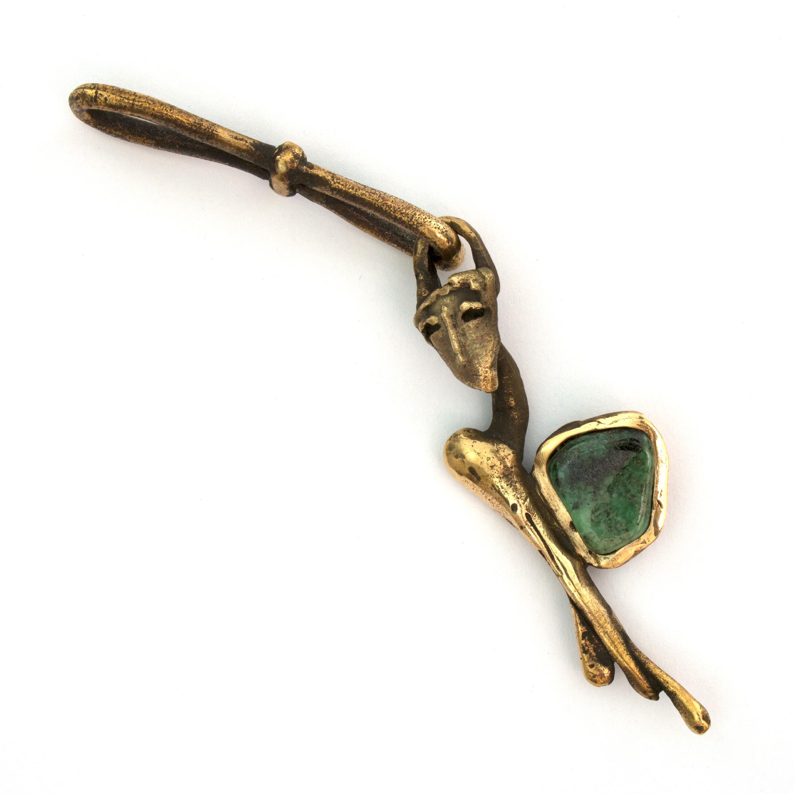 This angelic pendant by Vojtěška Vlčková (1948-2023) represents the perfect fusion of artistic vision and practical use. Patinated bronze, crafted using the lost wax casting technique, creates an intimate sculptural work that can be carried along. With natural jasper at the heart of the composition, this piece becomes a personal talisman – a small but powerful artistic statement that transforms an ordinary moment into an encounter with beauty.