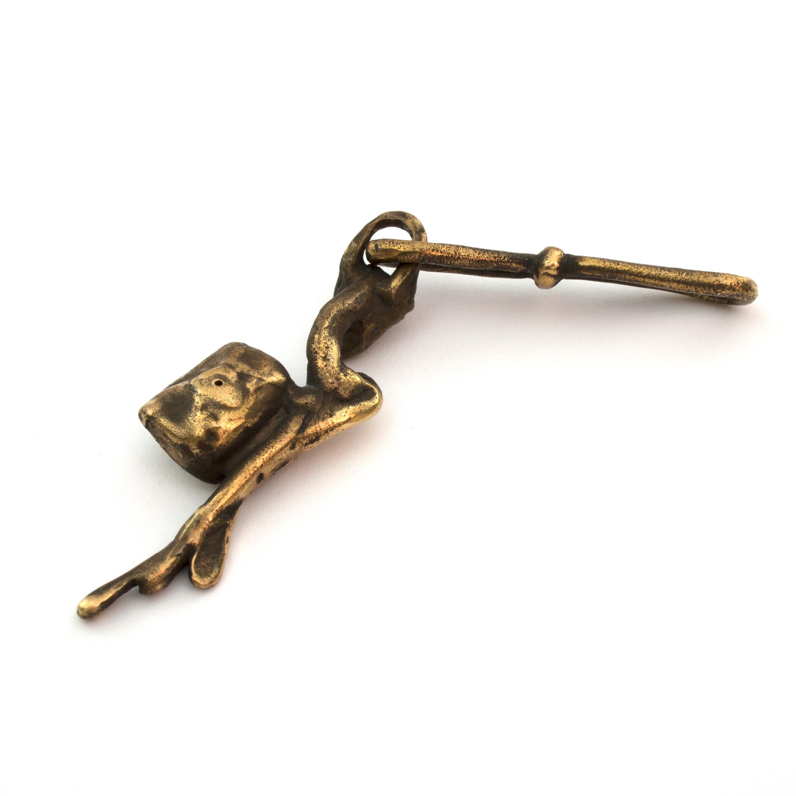The "Angel Key Ring" by Vojtěška Vlčková (1948-2023) transforms an everyday object into wearable sculpture. This exceptional pendant in patinated bronze, accented with jasper, carries the protective symbolism of an angelic guide. Every detail reflects the artist's unique sculptural handwriting and ability to imbue material with spiritual dimension. A distinctive piece for those seeking to connect art with daily life.