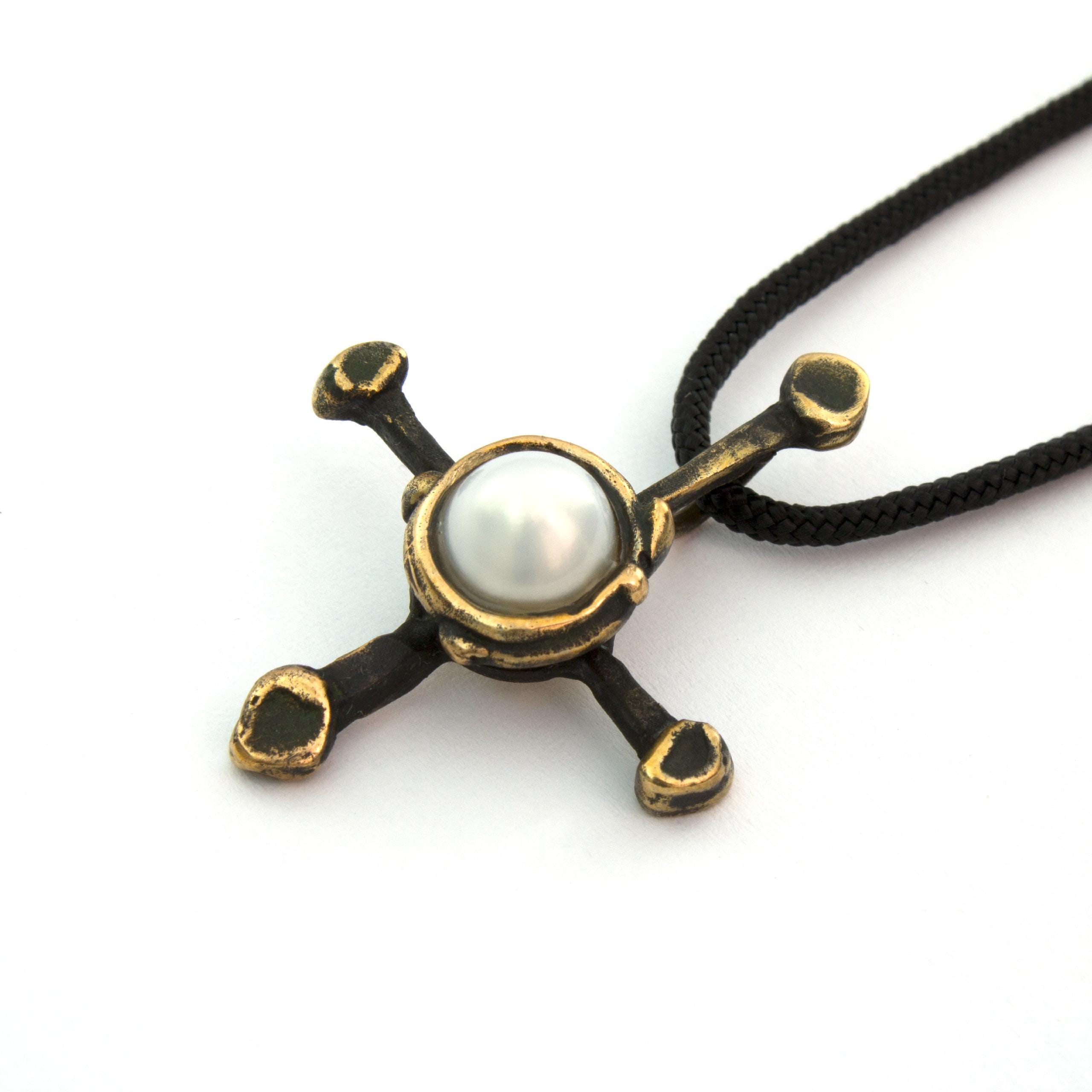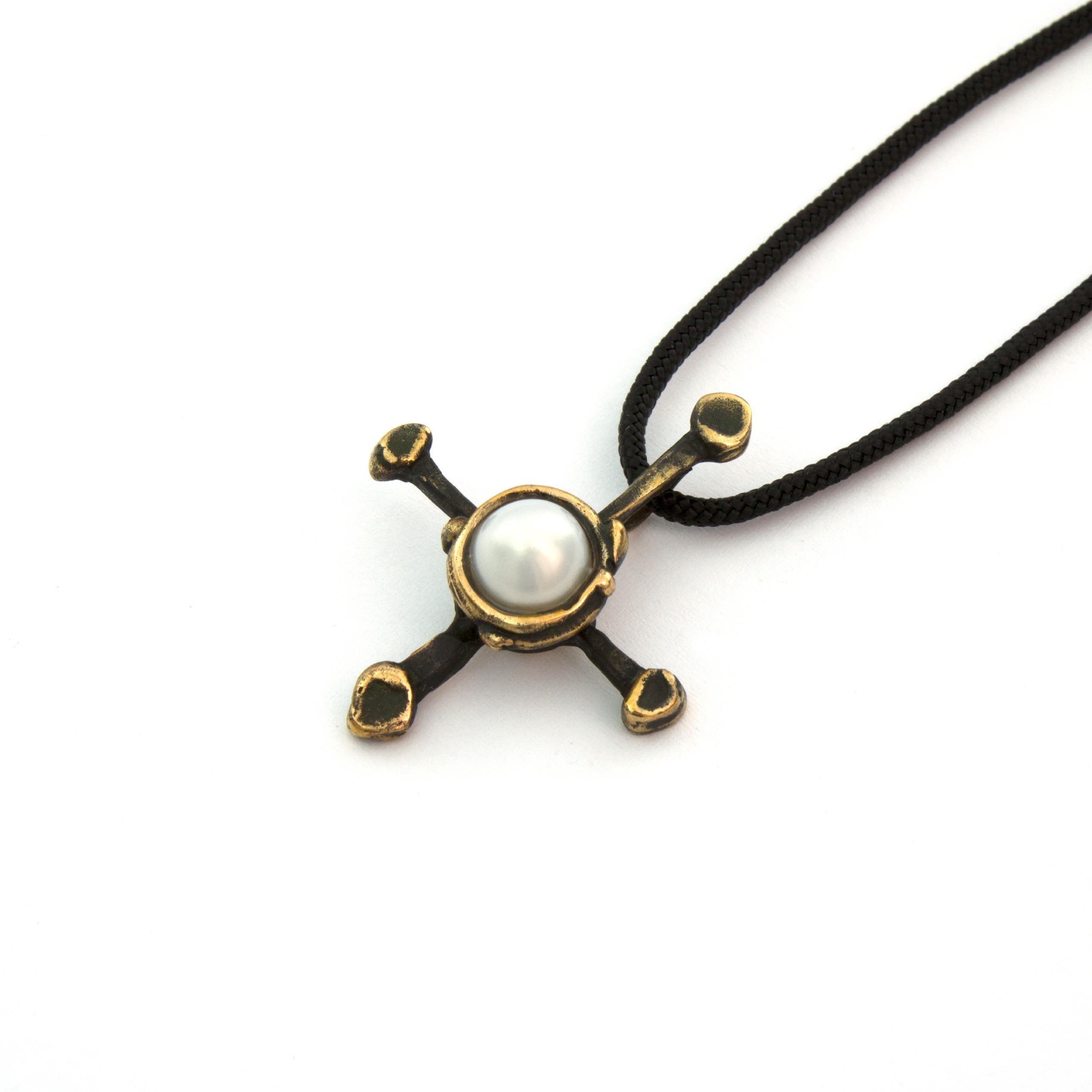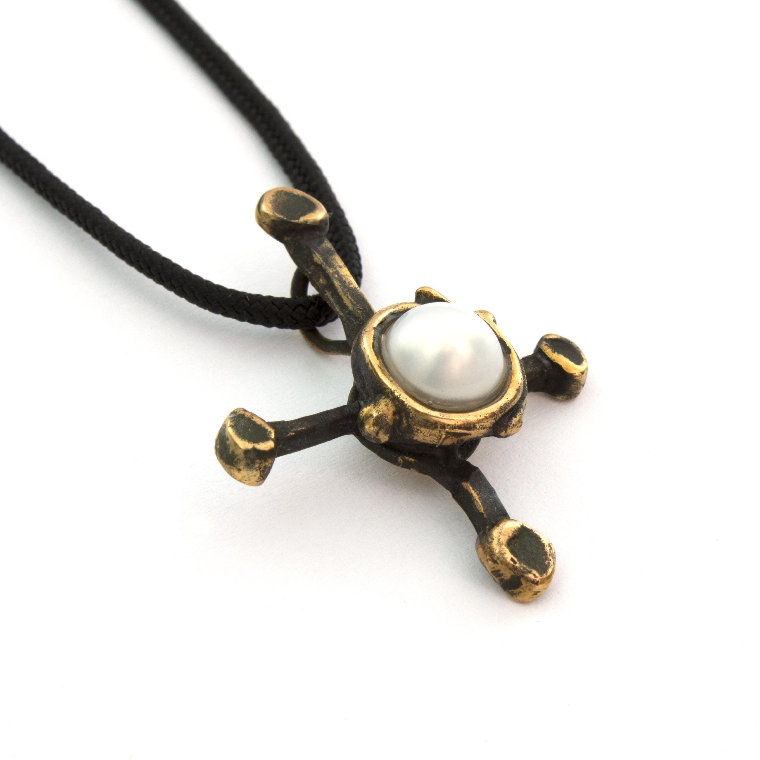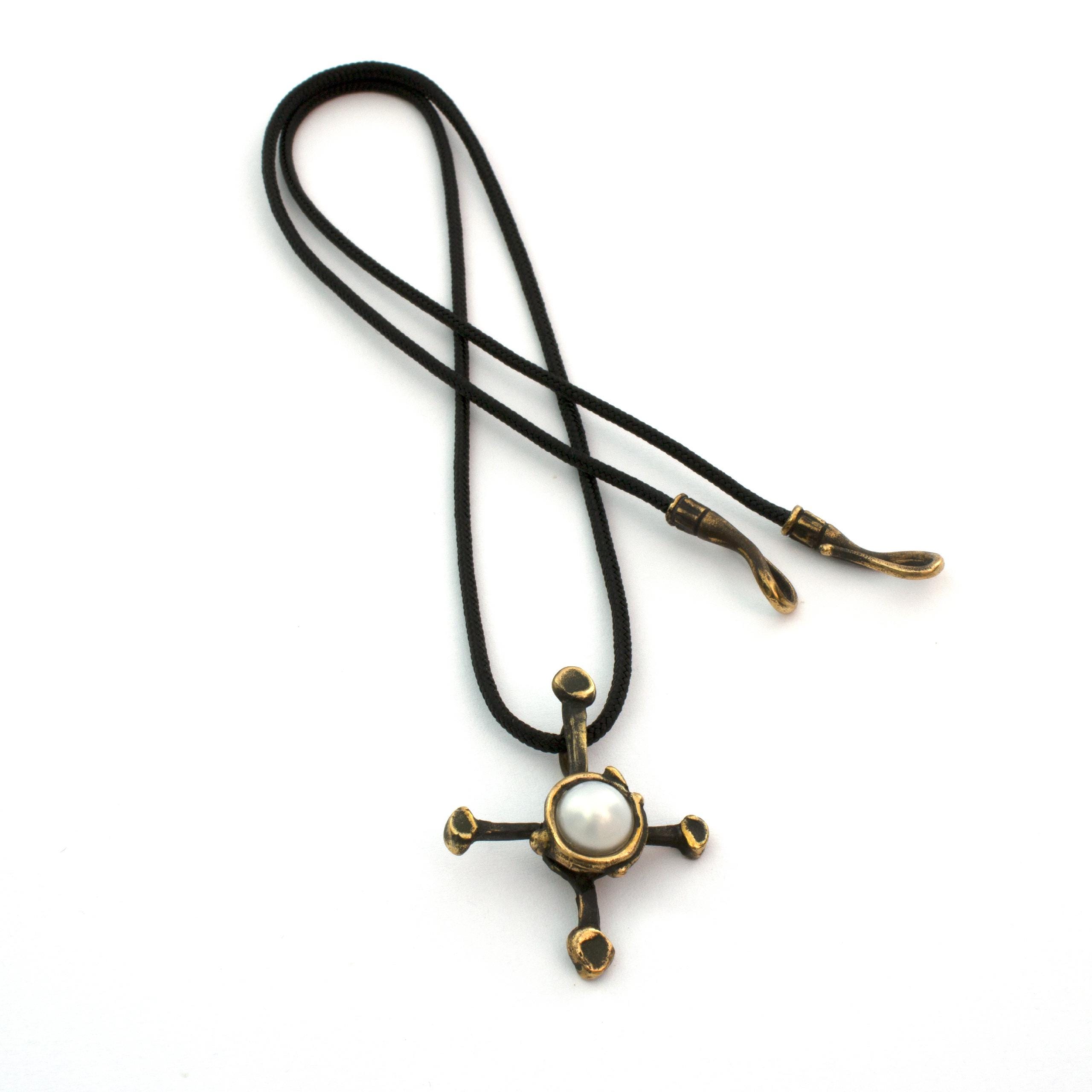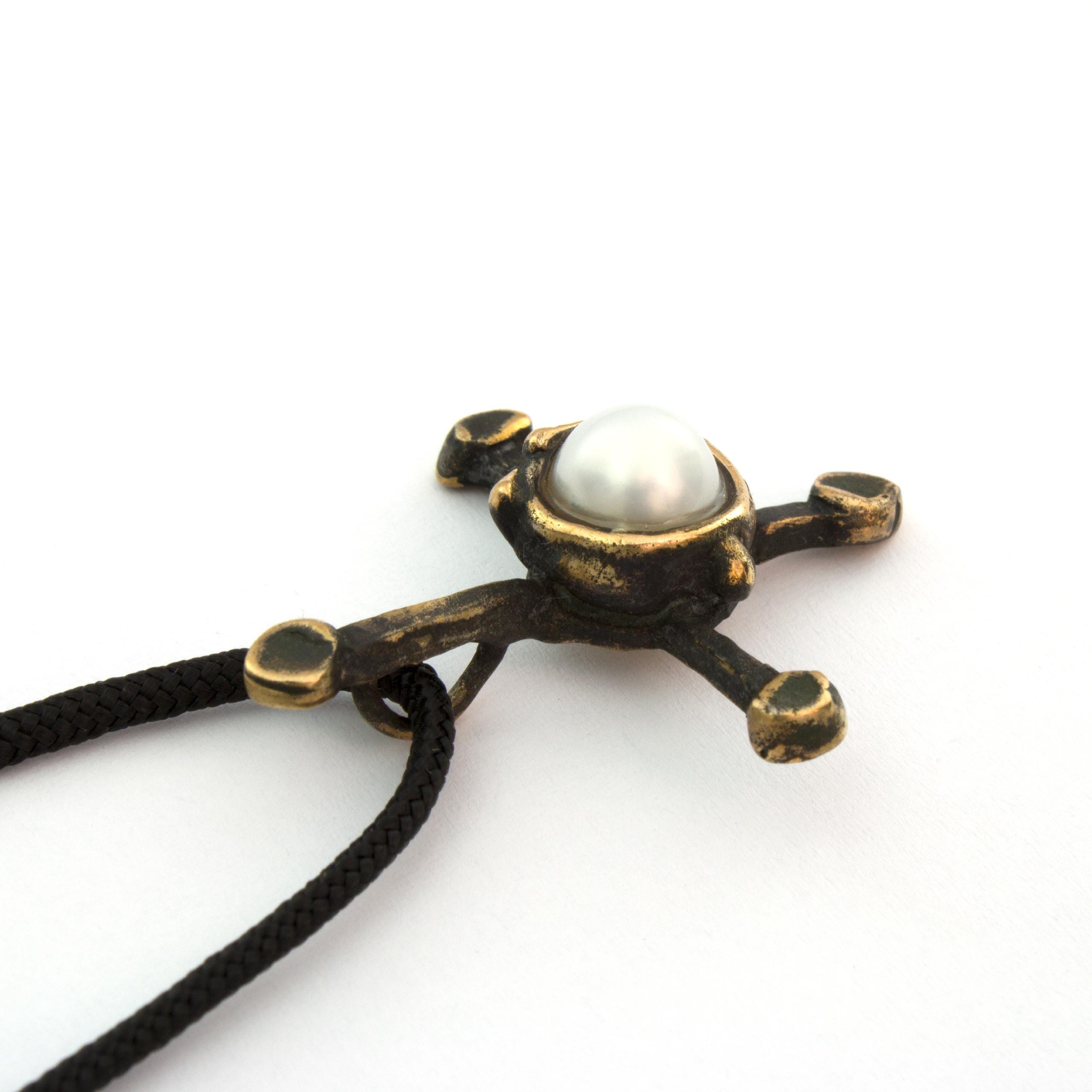 The "Light Small Cross" pendant by Vojtěška Vlčková (1948-2023) is a valuable collector's piece that combines patinated bronze with a delicate pearl. This exceptional work represents the perfect union of sculptural sensibility and jewelry craftsmanship. Crafted using the lost wax casting technique, it bears the stamp of exceptional artistic handwriting and serves as a meaningful addition to any collection.