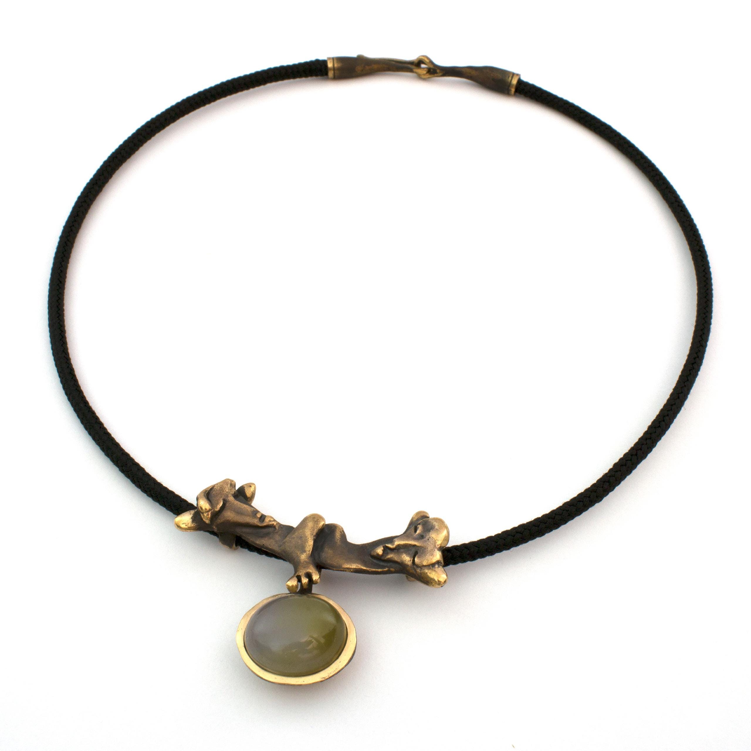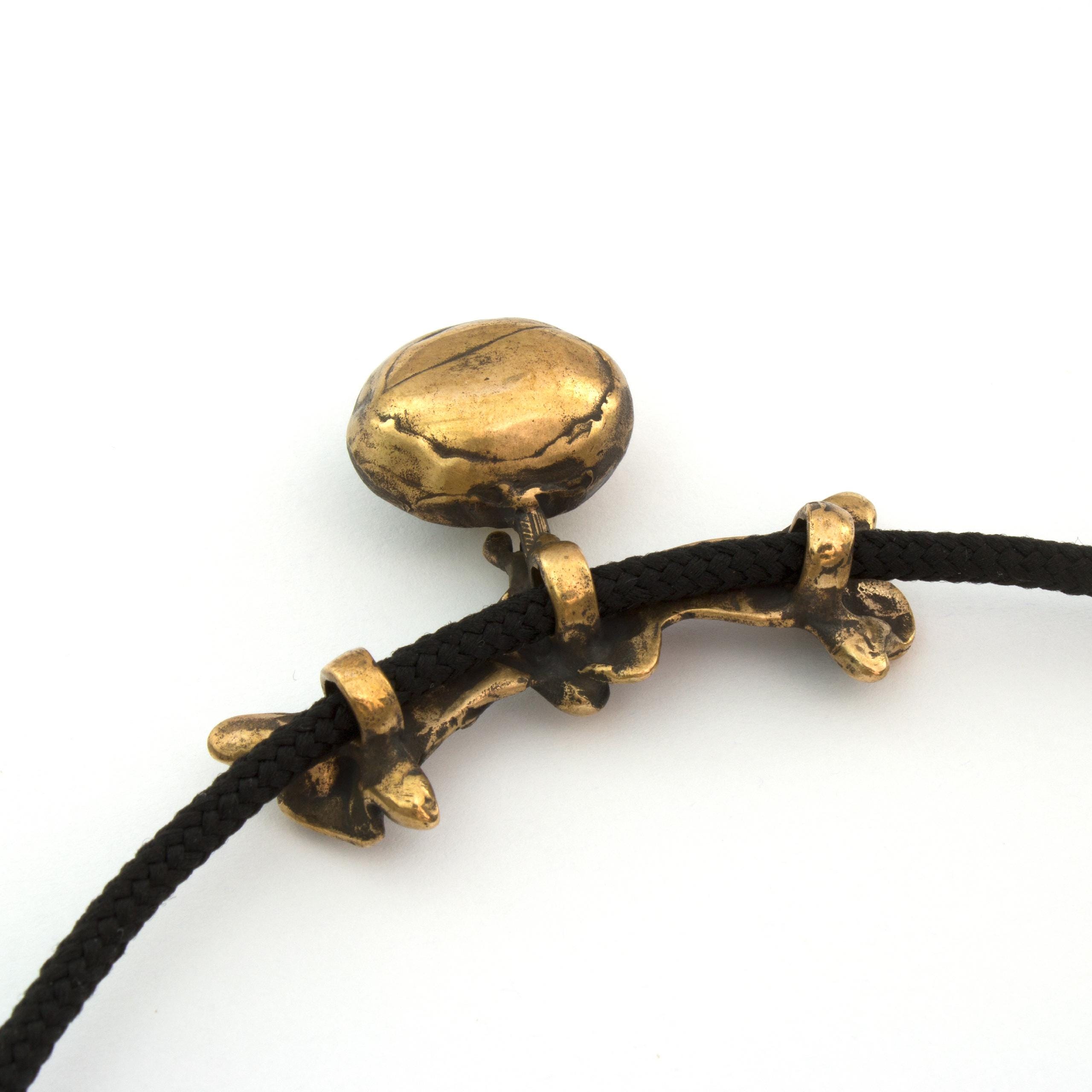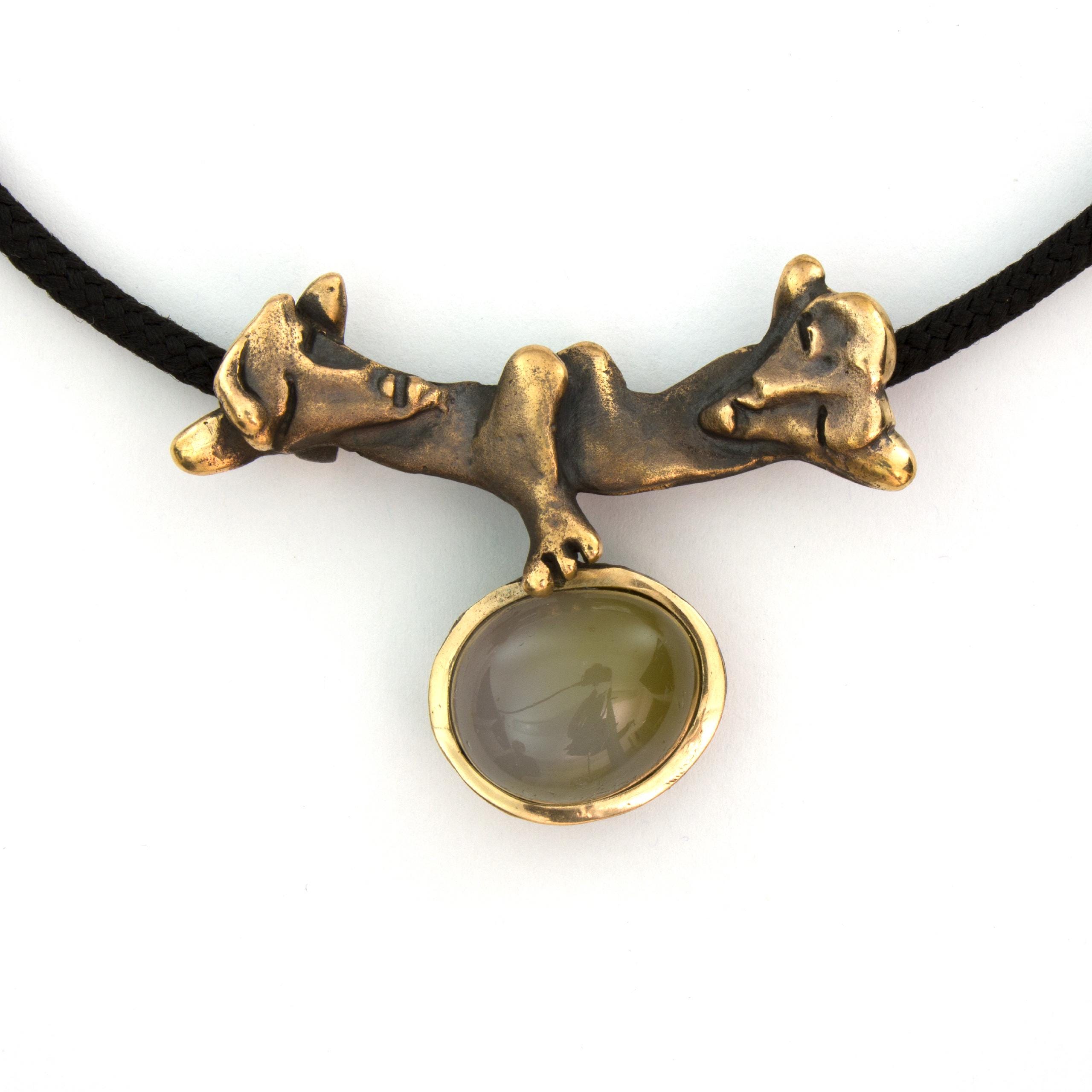 The "Knights of Blaník" necklace by Vojtěška Vlčková (1948-2023) is an authorial jewel that combines patinated bronze with natural agate. This unique piece represents the perfect union of sculptural sensibility and jewelry craftsmanship. The work, crafted using the lost wax casting technique, bears the stamp of exceptional artistic handwriting.